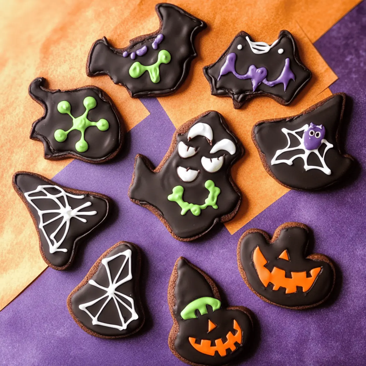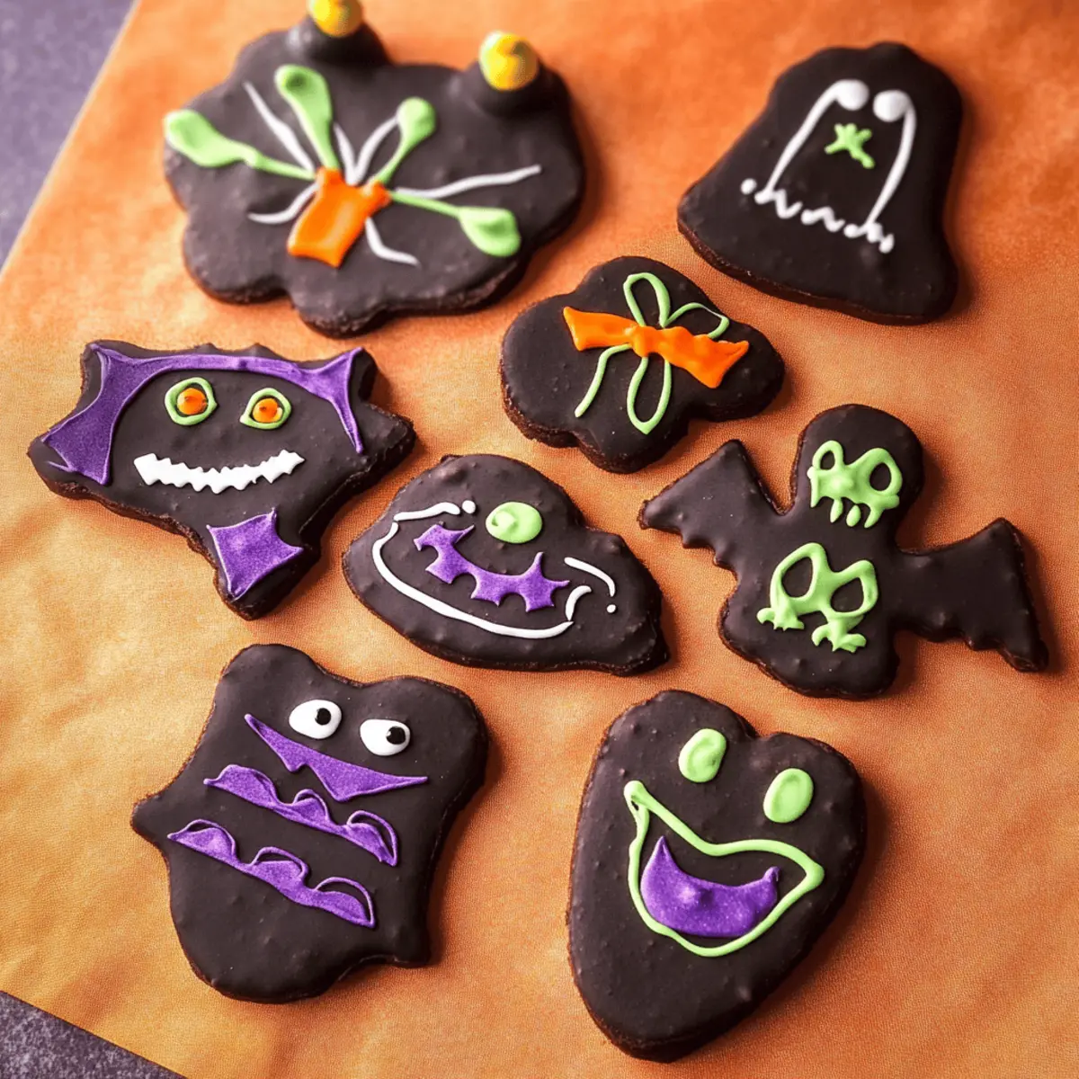 Jump to Recipe Print RecipeAs the leaves turn and the air grows crisp, my kitchen transforms into a mystical realm of sugar and spice. This Halloween, I’m thrilled to whip up Spooktacular Halloween Decorated Cookies! These rich, chocolatey delights are not only a feast for the eyes, but they also make for a fantastic family-friendly activity—perfect for gathering the kids and igniting their creativity as they adorn these cookies with vibrant royal icing. Whether you’re aiming for spooky ghosts, grinning pumpkins, or whimsical bats, these treats promise to bring your Halloween festivities to life. Plus, they maintain their delightful shape during baking, ensuring that each cookie looks as good as it tastes. Are you ready to unleash your inner baker and create some deliciously spooky memories? Why are these cookies a must-try? Unforgettable Family Fun: Turn your kitchen into a Halloween haven while bonding with loved ones as you decorate these delightful cookies. Rich Chocolatey Goodness: Made with black cocoa powder, each bite is velvety and indulgent, delighting kids and adults alike. Decorative Canvas: The royal icing offers endless creativity; make spooky or silly designs for every personality. Perfect for Celebrations: These cookies not only look festive but make perfect gifts or treats for parties. Easy to Bake: Follow straightforward steps to create these enchanting cookies with minimal fuss—perfect for busy bakers! Discover other delicious options like Chocolate Chip Cookies that you can easily whip up along with these festive treats! Halloween Decorated Cookies Ingredients • Get ready for a frightfully delicious treat! For the Cookie Dough Butter – Provides richness and moisture; ensure it is softened to room temperature for easy creaming. Powdered Sugar – Adds sweetness and a light texture; use for smoother icing consistency. Egg – Binds ingredients and softens texture; ensure it’s at room temperature for better incorporation. All-Purpose Flour – Forms the cookie structure; sifting helps in aeration. Black Cocoa Powder – Provides deep color and flavor; mix with natural cocoa for a milder taste or substitute with Dutch cocoa. Dutch Process Cocoa Powder – Adds richness and balances the chocolate flavor. Salt – Enhances overall flavor; do not omit as it contrasts sweetness. For the Royal Icing Egg Whites – Essential for creating a light and airy icing; be cautious of raw eggs—consider using meringue powder for safety. Powdered Sugar – Blends perfectly with egg whites for a glossy finish; add gradually for best results. Gel Food Coloring – Use for vibrant hues; provides a fun pop of color to your spooky designs. Get ready to bake the most delightful Halloween Decorated Cookies that will charm both young and old! Step‑by‑Step Instructions for Halloween Decorated Cookies Step 1: Cream the Butter and Sugar In a stand mixer, cream the softened butter on medium speed until it’s light and fluffy, about 2-3 minutes. Gradually add in the powdered sugar, mixing until fully incorporated and airy. This will give your Halloween Decorated Cookies a rich base. Finally, add the room-temperature egg and beat until just combined for a perfectly smooth batter. Step 2: Mix the Dry Ingredients In a separate bowl, whisk together the all-purpose flour, black cocoa powder, Dutch cocoa powder, and salt until evenly blended. This step ensures a uniform texture in your cookies. Gradually add the dry mixture into the wet batter, mixing on low speed until just combined, taking care not to overmix to keep your Halloween Decorated Cookies tender. Step 3: Chill the Dough Turn the dough out onto a lightly floured surface and shape it into a disc for easy rolling. Wrap the disc tightly in cling film, then chill in the refrigerator for at least 30-45 minutes, or up to 2 days. Chilling the dough is essential for maintaining the shape of your Halloween Decorated Cookies during baking, so don’t skip this step! Step 4: Roll Out the Dough Once chilled, remove the dough from the fridge and let it sit for about 5 minutes at room temperature for easier handling. Roll the dough between two sheets of parchment paper to about 4mm thickness. This prevents sticking and keeps your Halloween Decorated Cookies perfectly shaped when cut with cookie cutters. Step 5: Cut and Chill Shapes Using your favorite cookie cutters, cut out festive shapes from the rolled dough. Carefully transfer the shapes to a lined baking tray, placing them 1 inch apart. Cover the tray with plastic wrap and chill for an additional hour, or overnight if needed. This extra chilling keeps your cookies from spreading while baking. Step 6: Bake the Cookies Preheat your oven to 160°C (320°F). Once hot, bake the chilled cookies for about 10 minutes, or until the edges feel firm but the centers still appear soft. Keep a close eye on them, as you want your Halloween Decorated Cookies to remain tender. After baking, transfer cookies to a cooling rack to cool completely before decorating. Step 7: Prepare the Royal Icing In a mixing bowl, beat the egg whites until foamy. Gradually incorporate the powdered sugar while continuing to mix until you achieve peaks, which will take about 5 minutes. This royal icing is essential for decorating your Halloween Decorated Cookies; you can add gel food coloring to create vibrant hues for spooky designs. Step 8: Decorate the Cookies Using piping bags fitted with fine tips, carefully pipe decorations onto the cooled cookies. Let your creativity shine as you create ghosts, pumpkins, or bats! Once decorated, allow the icing to dry for 3-6 hours in a cool, dry place to ensure none of your charming designs are smudged when served. How to Store and Freeze Halloween Decorated Cookies Room Temperature: Store undecorated cookies in an airtight container at room temperature for up to 1 week to keep them fresh and delicious. Fridge: If you prefer a longer shelf life, keep undecorated cookies in the fri