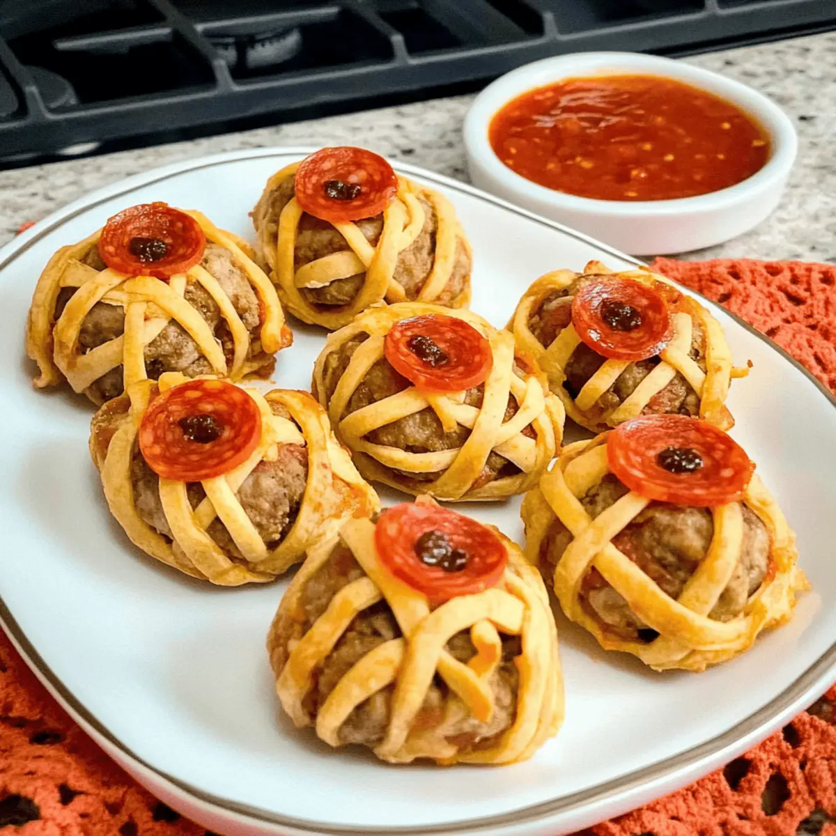 Spooktacular Appeal: These Halloween Mummy Meatballs are the perfect blend of fun and flavor, making them a hit at any gathering.