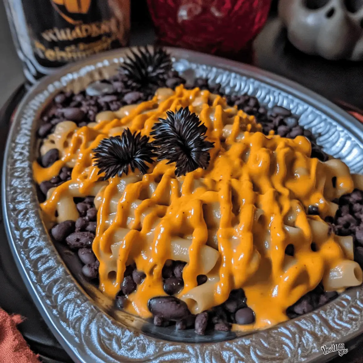Visual Delight: With striking black bean rotini, this dish not only tastes delicious but also makes a beautiful centerpiece for your Halloween feast.