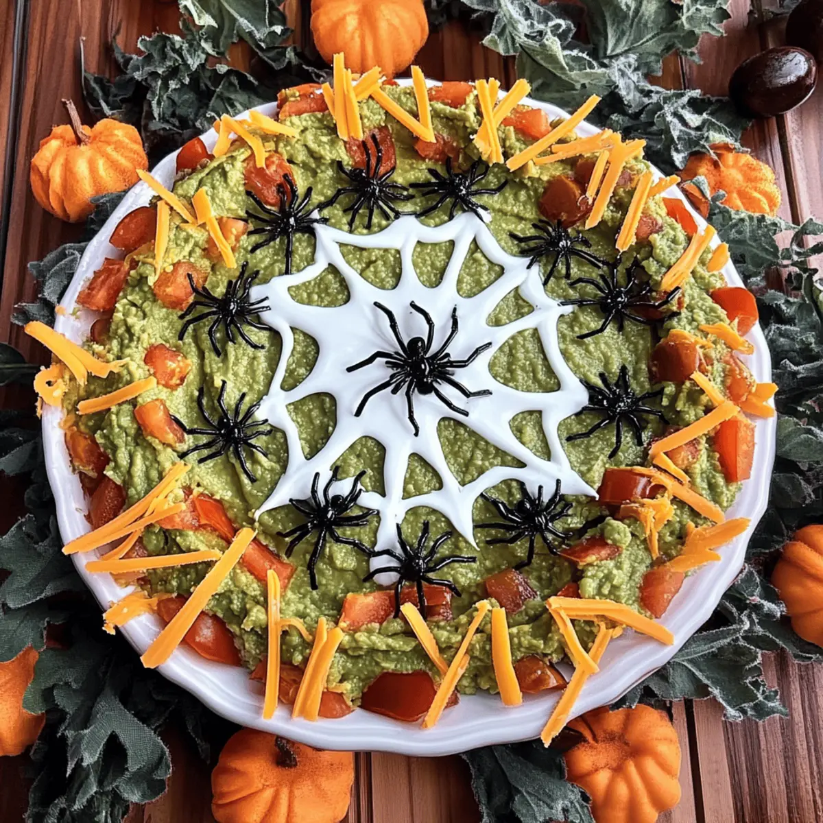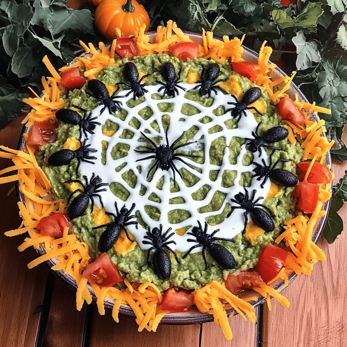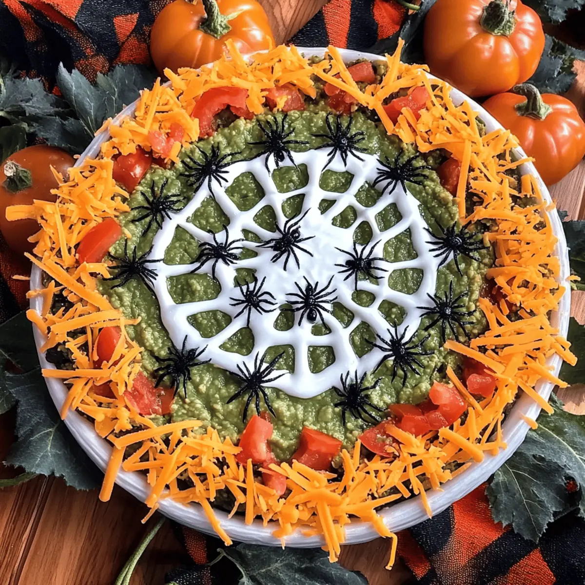 Jump to Recipe Print RecipeAs I rummaged through my pantry, I stumbled upon a delicious surprise—Halloween Taco Dip. It instantly brought back memories of festive gatherings filled with laughter and playful creepy-crawly decor. This easy-to-assemble dip is a total crowd-pleaser, featuring layers of rich bean dip, vibrant guacamole, and zesty sour cream, all topped with a whimsical spider web design. What makes this dish even more enchanting is that it combines the fun of Halloween with the comforting flavors of taco night, all while being a guilt-free option that packs wholesome ingredients. Perfect for parties or cozy get-togethers, this Halloween Taco Dip adds a delightful twist to your usual appetizer lineup. Are you ready to dive into this spooky yet scrumptious creation? Let’s get started! Why is Halloween Taco Dip a must-try? Uniquely Fun: This Halloween Taco Dip offers a festive twist on a classic, making it perfect for themed parties. Simple Assembly: With just a few layers to construct, this dip is incredibly easy to put together—ideal for busy hosts! Crowd-Pleaser: The vibrant colors and savory flavors ensure that it’ll be a hit with both kids and adults alike. Healthy Ingredients: Packed with nutritious components like guacamole and beans, it’s a guilt-free indulgence your guests will love. Versatile Dippers: Pair it with everything from chips to fresh veggies for a delightful tasting experience that caters to all preferences. Visual Appeal: The playful spider web design not only adds flair but makes serving stylish and fun. Dive into this delightful dish and wow your guests with its charm! Halloween Taco Dip Ingredients • Get ready to assemble this spooky treat! For the Bean Layer Bean Dip – Use Frito Lay Bean Dip from the chip aisle for a creamy foundation that pairs perfectly with taco flavors. For the Creamy Mixture Guacamole – Either make your own or grab a store-bought version for that fresh, vibrant taste. Sour Cream – Provides a tangy creaminess; set aside half for the spider web decoration. Taco Seasoning – Enhances the sour cream’s flavor; choose a mild blend if kids will be enjoying it. For the Toppings Black Olives – Add richness and can be creatively shaped into a spider to enhance the Halloween theme. Cheddar Cheese – Shred fresh cheese for better texture and a delicious cheesy layer. Tomato – Offers freshness; be sure to remove seeds and dice it well. Kale – Shred very thin for a crunchy texture and vibrant color, making your dip visually appealing. Get your party ready with this indulgent Halloween Taco Dip that combines fun and flavor in every bite! Step‑by‑Step Instructions for Halloween Taco Dip Step 1: Spread the Base Layer Begin by spreading the creamy Frito Lay Bean Dip evenly across an 8-inch plate. Use a spatula for a smooth, uniform layer, ensuring it reaches the edges for visual appeal. This layer acts as a base for your Halloween Taco Dip, providing rich flavor and creaminess. Aim for a thickness of about half an inch, which will support the toppings to come. Step 2: Create the Sour Cream Ring In a mixing bowl, combine 1 cup of sour cream with taco seasoning, ensuring they’re well blended. Once mixed, spread this mixture in a 2-inch ring around the outer edge of your plate, leaving the center open for the guacamole. The sour cream’s tangy flavor will enhance the overall taste of your Halloween Taco Dip while creating a decorative border. Step 3: Add the Guacamole Now, take your guacamole and carefully spoon it into the open center of the plate, filling it right up to the sour cream ring. Use the back of a spoon to gently spread it into an even layer. The vibrant green color of the guacamole not only adds a fresh flavor but also provides a striking visual contrast against the creamy white and rich brown layers. Step 4: Pipe the Spider Web Fill a zip-lock bag with the reserved sour cream, cutting a small corner to create a piping bag. Starting from the center of the guacamole, gently squeeze the bag as you draw a large spiral outward to the edge of the sour cream ring, resembling a spider web. Create small lines across the web to mimic the intricate design, adding a festive touch to your Halloween Taco Dip. Step 5: Sprinkle the Toppings Now it’s time to finish your Halloween Taco Dip! Evenly sprinkle shredded kale over the dip for a vibrant and crunchy texture. Follow with a generous layer of shredded cheddar cheese, diced tomatoes, and sliced black olives. The mix of colors and textures not only adds to the festive appearance but also enhances the delicious flavors of each bite. Step 6: Assemble the Spider Decoration For the final spooky touch, place one whole black olive in the center of the spider web as the spider’s body. Slice a second olive into thin strips to serve as the spider’s legs, arranging them around the body on the web. This captivating decoration will delight your guests and make your Halloween Taco Dip a standout centerpiece at any festive gathering! How to Store and Freeze Halloween Taco Dip Fridge: Store assembled Halloween Taco Dip in an airtight container in the refrigerator for up to 3 days; this keeps the flavors fresh and the ingredients safe. Spider Web Detail: If you need to prepare ahead, assemble the dip but hold off on piping the spider web until right before serving for the best visual effect. Freezer: While freezing is not recommended for this dip due to the texture changes in ingredients, you can freeze the bean dip and guacamole layers separately for future use—thaw overnight in the fridge before assembling. Reheating: If needed, reheat any leftovers gently in the microwave on a low setting to avoid overcooking; enjoy the captivating flavors of your Halloween Taco Dip once more! Halloween Taco Dip Variations Embrace your creativity by customizing this delightful Halloween Taco Dip with these fun variations that will tantalize your taste buds! Green Olives: Swap black olives