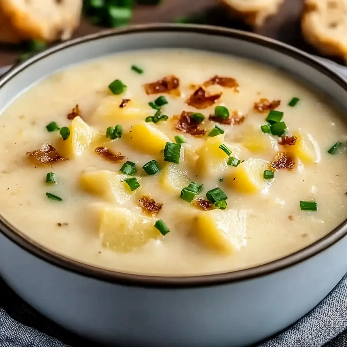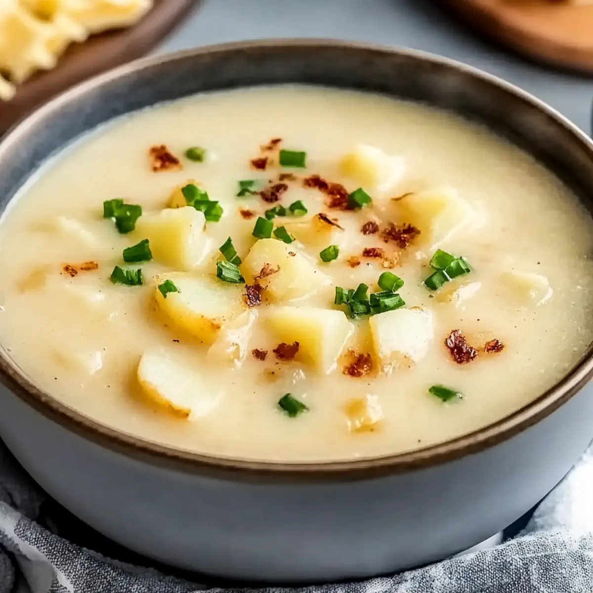 Jump to Recipe Print RecipeAs I stood over the stovetop, the familiar sound of sizzling onions filled my kitchen, instantly taking me back to my childhood. There’s something deeply comforting about cooking, especially when it comes to dishes like this Creamy Hash Brown Potato Soup. This delightful soup marries creamy goodness with the heartiness of hash browns, making it a breeze to whip up on busy weeknights. Not only does it offer warm, soul-soothing vibes, but it’s also gluten-free, ensuring everyone can enjoy a hearty bowl. Whether it’s chilly weather or simply a cozy gathering with friends, this soup is sure to bring smiles all around. Have you ever thought about how a simple bowl of soup can feel like home? Let’s dive into this lovely recipe that transforms frozen hash browns into a delightful dish! Why is this soup your new favorite? Comforting warmth: This Creamy Hash Brown Potato Soup embraces you in a cozy blanket of flavor, making it perfect for cold evenings. Effortless preparation: With minimal chopping and cooking time, this dish is as easy as it is delicious—ideal for busy weeknights. Gluten-free goodness: You don’t have to worry about dietary restrictions, as this soup caters to gluten-sensitive eaters without compromising taste. Versatile toppings: Customize each bowl with cheese, bacon, or green onions to satisfy every palate—just like you could with a hearty Skillet Breakfast Hash or a flavorful Cheesy Hamburger Potato dish. Nostalgic flavors: Each spoonful is reminiscent of childhood comforts, making it a hit with both friends and family, ensuring everyone leaves the table happy. Hash Brown Potato Soup Ingredients Get ready to make a bowl of pure comfort! For the Soup Base Frozen Hash Browns – The star ingredient providing that hearty potato flavor and texture; fresh grated potatoes can be used but will take longer to cook. Cream – This adds luscious richness; opt for half-and-half or a non-dairy alternative to keep it lighter if preferred. Onion – Enhances depth and sweetness; for a milder taste, shallots make a great substitute. Garlic – Provides a fragrant aroma and flavor boost; fresh garlic is ideal, but garlic powder works in a pinch. Broth (Vegetable or Chicken) – The soup’s flavorful base; choose gluten-free broth if needed. For Seasoning Spices (Salt, Pepper, Thyme, Paprika) – Essential to elevate your dish; taste as you go, and consider swapping thyme for rosemary for a delightful herbal twist. For Garnishing Topping Options (Cheese, Bacon, Green Onions) – These add fun textures and flavors; go cheeseless for a vegan-friendly version, while crunchy toppings enhance each bowl of hash brown potato soup. Step‑by‑Step Instructions for Hash Brown Potato Soup Step 1: Sauté the Aromatics In a large pot, heat a splash of oil over medium heat. Once the oil shimmers, add diced onion and sauté for about 5 minutes until it turns translucent and fragrant. This will create a flavorful base for your Creamy Hash Brown Potato Soup, evoking comforting aromas in your kitchen. Step 2: Add Garlic for Depth Stir in minced garlic and sauté for another minute, allowing it to release its delightful aroma. Be careful not to let it brown too much, as it can become bitter. This step enhances the flavor profile of your soup, setting the stage for the rich ingredients to come. Step 3: Incorporate Hash Browns and Broth Next, add the frozen hash browns to the pot, stirring well to combine with the sautéed aromatics. Pour in your broth—either vegetable or chicken—until everything is covered. Increase the heat to bring the mixture to a gentle simmer. Allow it to cook uncovered for about 25 minutes, or until the hash browns are tender and creamy. Step 4: Stir in the Cream and Seasonings Once the hash browns have softened, reduce the heat, and stir in the cream. Sprinkle in salt, pepper, thyme, and paprika to taste. Let this simmer for an additional 5 minutes, allowing the flavors to meld beautifully. Your Creamy Hash Brown Potato Soup is already beginning to take on that luscious, velvety texture! Step 5: Blend to Creamy Perfection Using an immersion blender, blend the soup until it reaches your desired level of creaminess. You can choose to make it completely smooth or leave some chunks for added texture. If you don’t have an immersion blender, carefully transfer the mixture to a countertop blender in batches, then return it to the pot. Step 6: Serve and Garnish Ladle the hot hash brown potato soup into bowls, and indulge in its comforting warmth. Garnish each serving with your choice of cheese, crispy bacon, or sliced green onions for an extra burst of flavor and texture. Enjoy the joyful experience of serving a dish that feels like home! What to Serve with Creamy Hash Brown Potato Soup Savoring a bowl of this silky soup is a warm embrace; adding the perfect sides can elevate your dining experience to new heights. Crusty Bread: Perfect for dipping, a rustic loaf adds a delightful crunch that complements the creamy texture of the soup. Simple Green Salad: A fresh salad with mixed greens and a zesty vinaigrette brings brightness and balances the rich flavors beautifully. Bacon-Wrapped Asparagus: The crispy, salty bacon enhances the soup’s comforting qualities, while the asparagus adds a pop of color and nutrition. Cheesy Garlic Bread: Indulge in warm, gooey cheesy garlic bread that will make each bite of soup even more satisfying, creating a perfect pairing. Cornbread Muffins: Sweet and moist cornbread muffins create a delightful contrast to the soup’s savory richness, bringing warmth and heartiness to your meal. Grilled Cheese Sandwich: A classic pairing! The gooeyness of melted cheese and crispy bread makes each bite a comforting adventure, reminiscent of childhood. Roasted Vegetables: A medley of seasonal roasted veggies brings out natural sweetness that complements the soup’s inviting flavors while adding nutrients. Chardonnay: A glass of 