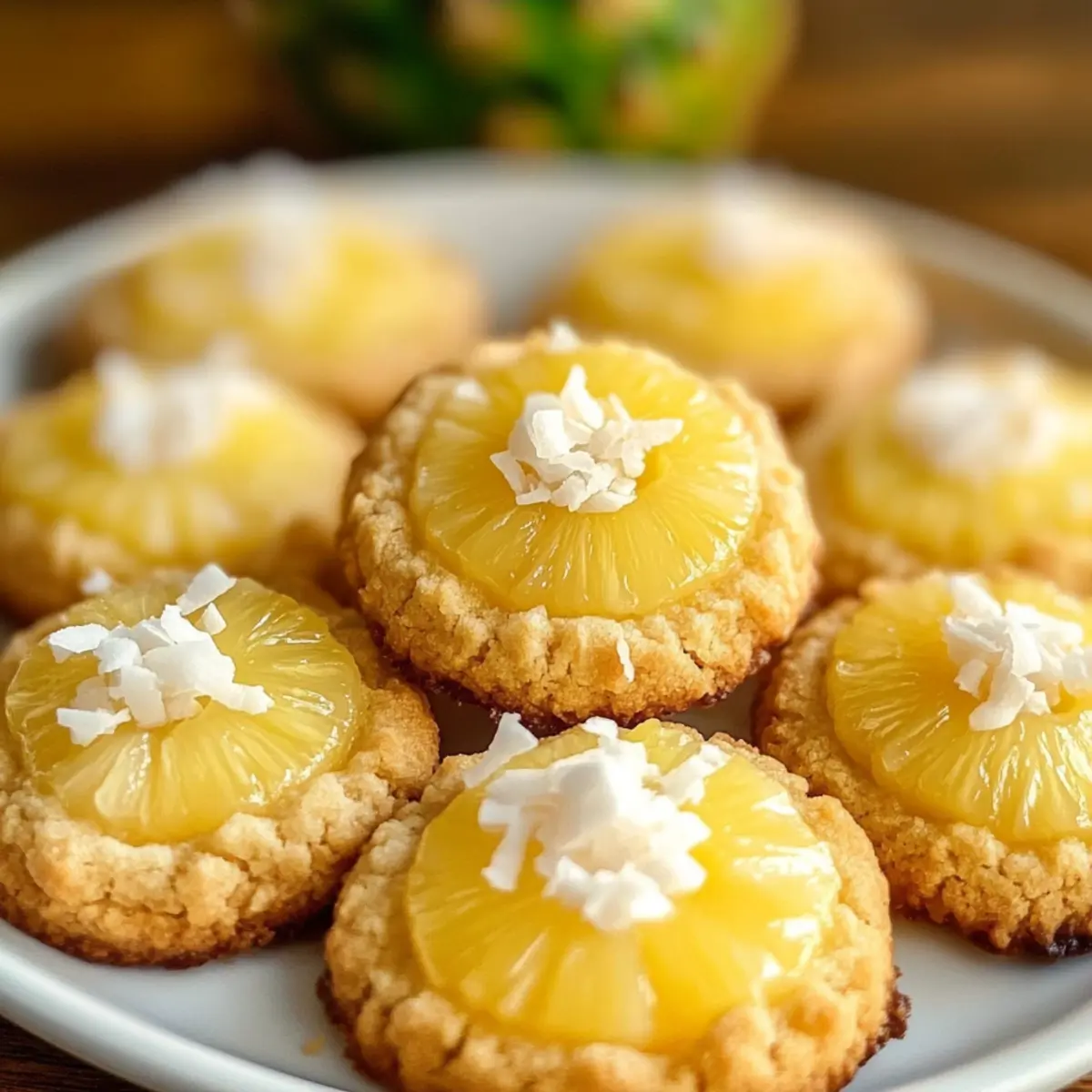 Jump to Recipe Print RecipeAs I pulled those cookies from the oven, the sweet, tropical aroma enveloped my kitchen—a little piece of paradise right at home. Hawaiian Pineapple Coconut Thumbprint Cookies are far more than just treats; they’re an adventure for your taste buds! With a delightful buttery base teaming up with a luscious pineapple filling and a crunchy coconut topping, these cookies offer that perfect blend of textures and flavors that transports you to a sun-soaked beach. They’re astonishingly easy to make, making them a reliable go-to for everything from festive gatherings to quiet afternoons indulging in a little self-care. So, are you ready to bring a splash of tropical bliss to your baking? Let’s dive in! Why are these cookies a must-try? Tropical Escape: Each bite of these Hawaiian Pineapple Coconut Thumbprint Cookies whisks you away to paradise, combining sunny flavors and comforting textures that will delight your senses. Effortlessly Delicious: With just a few simple ingredients, you can whip these cookies up in no time, making them perfect for any baker, from novice to pro. Visual Appeal: The combination of vibrant pineapple filling and crispy coconut topping creates a stunning treat that not only tastes great but looks impressive, too—ideal for parties or casual get-togethers. Versatile Variations: Feel free to mix things up! Swap the pineapple for mango or peach, or fold in some nuts for an extra crunch. This recipe is perfect in any situation, and if you’re craving more tropical flavors, check out this delicious Pineapple Coconut Milkshake! Enjoy a taste of the tropics anytime! Hawaiian Pineapple Coconut Thumbprint Cookies Ingredients • Get ready for a tropical baking adventure! For the Cookie Base Butter – Use unsalted butter for the best flavor control in your cookies. Sugar – Regular granulated sugar ensures your cookies are sweet and tender. Sugar (additional for rolling) – This adds a sparkling finish; try coconut sugar for a healthier twist. Flour – All-purpose flour gives structure; gluten-free flour works as a great substitute. For the Filling Pineapple filling – Sweet and tangy, fresh or canned pineapple will give that tropical burst. For the Topping Toasted coconut – Unsweetened toasted coconut adds a rich flavor and delightful crunch, balancing the sweetness of the cookies. Step‑by‑Step Instructions for Hawaiian Pineapple Coconut Thumbprint Cookies Step 1: Prep the Oven and Baking Sheet Begin by preheating your oven to 350°F (175°C) to ensure an evenly baked result. While the oven heats up, line a baking sheet with parchment paper to prevent sticking and to make cleanup a breeze. The parchment will also help your Hawaiian Pineapple Coconut Thumbprint Cookies bake evenly, giving them that perfect golden edge. Step 2: Mix Dry Ingredients In a large mixing bowl, combine the flour and granulated sugar, whisking them together until well blended. This step is crucial as it ensures even distribution of the sugar throughout the cookies. Set this dry mixture aside as you prepare the wet ingredients, allowing your Hawaiian Pineapple Coconut Thumbprint Cookies to have the perfect balance of sweetness and texture. Step 3: Cream Butter and Sugar In another mixing bowl, beat the unsalted butter with an electric mixer until it becomes creamy and smooth, about 2-3 minutes. Gradually add in the sugar while continuing to mix, until the mixture is light and fluffy. This process incorporates air into the butter, which will yield a tender cookie for your Hawaiian Pineapple Coconut Thumbprint Cookies. Step 4: Combine Mixtures Carefully add the dry mixture to the creamed butter and sugar. Use a spatula to gently fold the ingredients together until just combined, being cautious not to overmix. Overmixing can lead to tough cookies, while folding ensures your Hawaiian Pineapple Coconut Thumbprint Cookies remain soft and delicate. Step 5: Shape the Dough Scoop the cookie dough and roll it into 1-inch balls, placing them evenly spaced on your prepared baking sheet. Make sure you leave about 2 inches between each ball as they will spread while baking. This step is essential for ensuring your Hawaiian Pineapple Coconut Thumbprint Cookies have room to grow without merging into one another. Step 6: Create the Thumbprint Using your thumb or the back of a spoon, create a deep indentation in the center of each rolled ball of dough. Press gently but firmly to ensure a proper well for the pineapple filling. This thumbprint is what makes these cookies distinctive and perfectly suited for holding the delightful filling of your Hawaiian Pineapple Coconut Thumbprint Cookies. Step 7: Fill the Thumbprints Spoon a generous amount of pineapple filling into each indentation you created in the cookie dough. Be sure to fill them just to the top so they don’t overflow during baking, allowing the sweet and tangy flavor to shine through in each Hawaiian Pineapple Coconut Thumbprint Cookie. Step 8: Add Toasted Coconut Topping Sprinkle the edges of the pineapple filling with toasted coconut, lightly pressing it in so it adheres. This will add a lovely texture and enhance the tropical flavor of your cookies. The toasted coconut also gives the Hawaiian Pineapple Coconut Thumbprint Cookies a beautiful finish, making them visually appealing. Step 9: Bake to Golden Perfection Bake the cookies in your preheated oven for about 12 minutes, or until the edges are lightly golden. Keep a close eye on them to avoid overbaking. Allowing your Hawaiian Pineapple Coconut Thumbprint Cookies to cool on the baking sheet for a few minutes before transferring them to a wire rack will help them set perfectly. Step 10: Cool and Enjoy After about 5 minutes on the baking sheet, transfer the cookies to a wire rack to cool completely. This step allows them to firm up and enhances the flavors as they cool. Once they are fully cooled, gather your loved ones and enjoy the tropical bliss of your homema