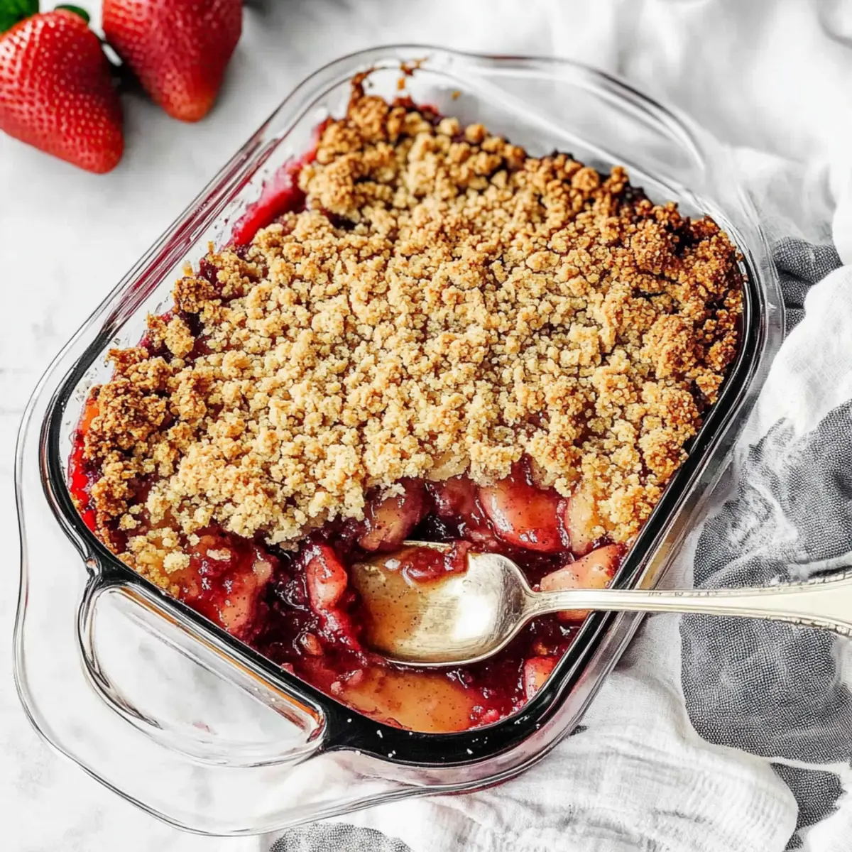 Jump to Recipe Print RecipeAs I stirred together the vibrant red rhubarb and luscious strawberries, a wave of nostalgia washed over me. Nothing evokes the charm of summer like a warm, comforting Healthy Strawberry Rhubarb Crisp fresh from the oven. This delightful dessert is not just about the perfect balance of sweet and tart; it’s a gluten-free, vegan treat that fits seamlessly into a healthier lifestyle. With a crunchy almond and coconut flour topping, you’ll be amazed at how easy and satisfying it is to whip up. Plus, it’s the ideal way to showcase seasonal fruit, whether you’re treating yourself or impressing friends at your next gathering. Are you ready to dive into this refreshing twist on a classic? Let’s get started! Why is This Crisp a Must-Try? Wholesome Ingredients: This Healthy Strawberry Rhubarb Crisp is packed with nourishing, gluten-free components, making it a guilt-free dessert option. Bursting with Flavor: The combination of sweet strawberries and tangy rhubarb creates a deliciously balanced taste that will leave your taste buds dancing. Versatile Options: Don’t hesitate to mix in other fruits or spices, such as cinnamon or citrus zest, for a personalized touch. Quick and Easy: Ready in just 30 minutes, this dish fits perfectly into your busy lifestyle without sacrificing flavor or health. Crowd-Pleasing Dessert: Whether you’re having a cozy family dinner or entertaining friends, this crisp is sure to impress. Perfectly Indulgent: Serve warm, topped with coconut whipped cream or a scoop of vanilla ice cream for an extra treat that everyone will adore! Healthy Strawberry Rhubarb Crisp Ingredients • All the goodness in one place! For the Crisp Topping Almond Flour – Delivers a nutty flavor and structure; feel free to swap with other nut flours if desired. Coconut Flour – Adds texture and absorbs moisture; substitutable with more almond flour but adjust liquid accordingly. Maple Syrup – Acts as a natural sweetener and binder for the crumble; honey can replace it if you don’t need it vegan. Coconut Oil – Provides richness and moisture; you can swap it for another oil, like olive oil. Vanilla Extract – Enhances the overall flavor; can be omitted if you prefer a more neutral taste. Salt – Essential for balancing sweetness and enhancing flavors. For the Fruit Filling Strawberries – Offers the primary sweetness; both fresh or frozen work well, but adjust the cooking time if using frozen. Rhubarb – Delivers the tartness that defines this dessert; fresh or frozen can be used and does not require peeling if it’s young. Cornstarch – Thickens the fruit mixture; feel free to substitute with tapioca or arrowroot starch if preferred. This Healthy Strawberry Rhubarb Crisp is the perfect way to indulge in a delightful treat without compromising your health! Step‑by‑Step Instructions for Healthy Strawberry Rhubarb Crisp Step 1: Preheat and Prepare Begin by preheating your oven to 350°F (175°C). While it’s warming up, take a moment to grease an 8×8 inch baking dish with a bit of coconut oil. This ensures your Healthy Strawberry Rhubarb Crisp won’t stick when it’s time to serve. Set it aside as you prepare the crumble and fruit filling. Step 2: Make the Crumble Mixture In a medium mixing bowl, combine the almond flour, coconut flour, melted coconut oil, maple syrup, vanilla extract, and a pinch of salt. Stir well until the mixture resembles coarse crumbs, sticking together slightly. This nutty blend will create the perfect topping for your Healthy Strawberry Rhubarb Crisp. Set aside about half of this mixture for topping later. Step 3: Prepare the Fruit Filling In another bowl, gently mix together the sliced strawberries and rhubarb with maple syrup and cornstarch. Ensure the fruit is well-coated; this will create a deliciously gooey filling. The vibrant colors of your berries and rhubarb should shine bright, setting the stage for a delightful dessert. Step 4: Layer the Crumble and Fruit Press half of the crumble mixture firmly into the bottom of the greased baking dish, forming an even base. Next, carefully layer the strawberry and rhubarb mixture over the crumble, spreading it out evenly to ensure every bite of your Healthy Strawberry Rhubarb Crisp is packed with flavor. Step 5: Add the Topping Sprinkle the remaining crumble mixture generously over the fruit layer, covering it completely. The topping should look slightly chunky, offering a delightful crunch once baked. You’re now ready to pop this beautiful dish into the oven, letting the aromas waft through your kitchen! Step 6: Bake Until Golden Bake your Healthy Strawberry Rhubarb Crisp in the preheated oven for about 30 minutes, or until the topping is golden brown and crisp to the touch. The filling should be bubbling slightly around the edges, indicating that the flavors are melding beautifully. Once it’s reached the perfect doneness, remove it from the oven. Step 7: Cool Before Serving Allow the crisp to cool for at least 30 minutes before serving. This cooling period helps the fruit filling thicken, making it easier to cut and serve. The warm, inviting aroma will make waiting a challenge, but trust me—it’s worth it for that perfect texture! Make Ahead Options These Healthy Strawberry Rhubarb Crisps are perfect for meal prep! You can prepare the crumble mixture and the fruit filling separately up to 24 hours in advance. Simply combine the almond flour, coconut flour, melted coconut oil, maple syrup, vanilla extract, and salt for the crumble, and refrigerate it in an airtight container. For the fruit filling, mix the strawberries, rhubarb, maple syrup, and cornstarch, and store it separately. When you’re ready to bake, just layer the filling over the crumble in the baking dish, top it with the remaining crumble, and pop it in the oven. Trust me, this method saves time and results in a delicious dessert that’s just as enjoyable as when prepared fresh! What to Serve with 