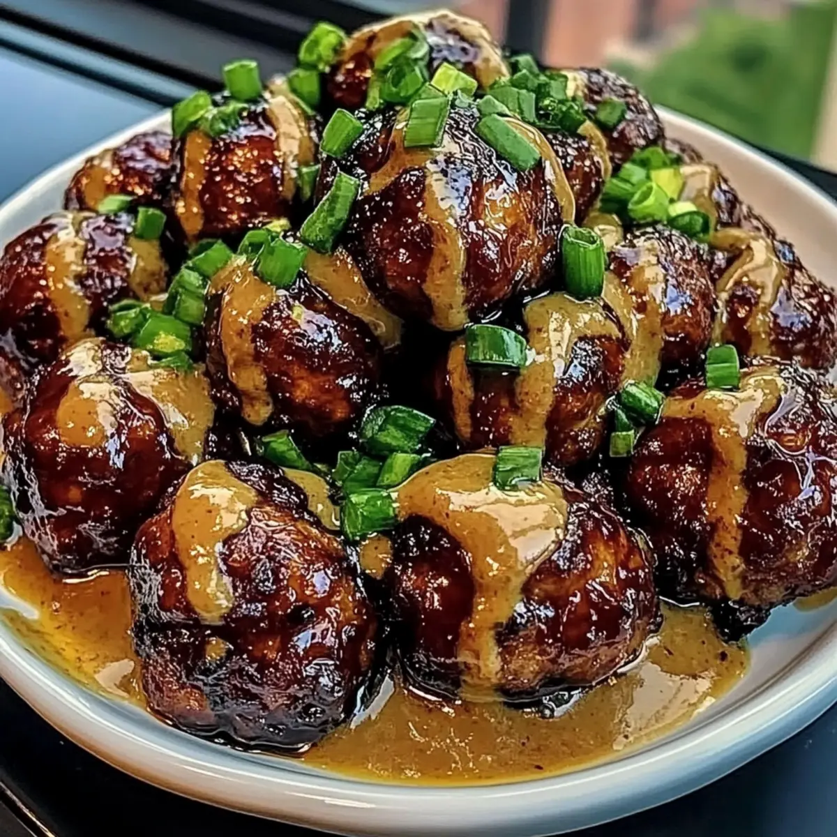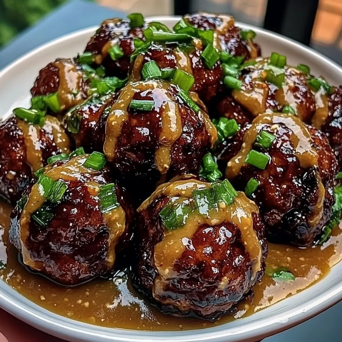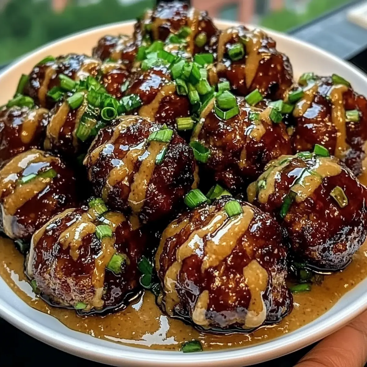 Jump to Recipe Print RecipeAs I ladled the glossy hoisin glaze over the tender meatballs, I could hardly wait to savor the sweet and savory explosion that awaited me. These Sticky Hoisin Meatballs with Scallion Sauce have become a go-to recipe in my kitchen, perfect even on the busiest of weeknights. With a simple prep time that leaves you plenty of room for creativity, they’re versatile enough to shine as a main course or as a crowd-pleasing appetizer. Plus, they can easily accommodate gluten-free substitutions, making them perfect for any dinner table. Ready to elevate your dinner game? Let’s dive into this mouthwatering recipe and create a dish that everyone will rave about! Why are these meatballs a must-try? Irresistible Flavor: These Sticky Hoisin Meatballs are bursting with rich, sweet-savory goodness, enhanced by a glossy glaze that captivates your taste buds. Quick Prep: Whip up this dish in just 30 minutes, making it the perfect solution for busy nights or last-minute gatherings. Versatile Serving: Enjoy them as a delightful appetizer or main course, paired with steamed rice or a fresh salad, like Strawberry Spinach Dressing to complement the flavors seamlessly. Customizable: Substitute ground pork for beef, or even chicken, tailoring the recipe to suit your family’s preferences or dietary needs. Gluten-Free Options: Easily make these hoisin meatballs gluten-free by swapping out soy sauce for tamari, ensuring everyone can indulge without worries! Hoisin Meatballs with Scallion Sauce Ingredients For the Meatballs Ground pork or beef – Choose beef for a richer flavor or pork for classic meatballs. Breadcrumbs – Helps bind the meatballs; can be substituted with ground oats for a gluten-free option. Hoisin sauce – Adds sweetness and umami depth, essential for these hoisin meatballs with scallion sauce. Soy sauce – Enhances savory flavors; use tamari for a gluten-free version. Minced garlic – Delivers aromatic depth and flavor. Minced ginger – Provides a fresh zesty kick. Egg – Acts as a binder to hold the meatballs together. Sesame oil – Contributes a nutty aroma. Salt and pepper – Season to taste. For the Glaze Rice vinegar – Balances the sweetness of the hoisin glaze; adds necessary acidity. Water – Used to adjust the glaze’s consistency. For the Scallion Sauce Scallions – Brings freshness and crunch, contrasting beautifully with the sweet glaze. Sugar – Balances the acidity from the rice vinegar in the sauce. Step‑by‑Step Instructions for Hoisin Meatballs with Scallion Sauce Step 1: Prep Meatball Mixture In a large mixing bowl, combine ground pork or beef, breadcrumbs, hoisin sauce, soy sauce, minced garlic, minced ginger, one egg, sesame oil, salt, and pepper. Use your hands to mix gently until just combined, avoiding overworking the meat. Form the mixture into 16-20 golf-ball-sized meatballs to ensure they cook evenly and stay juicy. Step 2: Brown Meatballs Heat a generous drizzle of neutral oil in a large skillet over medium-high heat until shimmering. Carefully add the meatballs in batches, making sure not to overcrowd the pan. Sear them for about 3-4 minutes on each side until they develop a rich, golden-brown crust. Once browned, remove them from the skillet and set aside. Step 3: Make the Glaze Lower the heat to medium and wipe out any excess crumbs from the skillet. Pour in the hoisin sauce, soy sauce, rice vinegar, sesame oil, and water, stirring to combine. Allow the glaze to heat for about 2-3 minutes until it thickens slightly and turns glossy. This fragrant sauce will bring the Hoisin Meatballs with Scallion Sauce together perfectly. Step 4: Combine Meatballs with Glaze Return the browned meatballs to the skillet, gently tossing them to coat in the warm glaze. Cover the skillet and let them simmer over low heat for 4-6 minutes, or until they reach the proper internal temperature of 160°F for pork and 165°F for beef. This step ensures they are fully cooked while absorbing the delicious flavor of the glaze. Step 5: Prepare Scallion Sauce In a separate bowl, whisk together finely chopped scallions, soy sauce, rice vinegar, sesame oil, and sugar until well combined. The scallion sauce will provide a refreshing contrast to the sweet hoisin glaze. Taste the sauce and adjust seasoning if necessary to achieve a perfect balance of flavors. Step 6: Serve To serve, plate the sticky hoisin meatballs and drizzle extra glaze over the top for added flavor. Just before serving, finish with a generous drizzle of the scallion sauce. These Hoisin Meatballs with Scallion Sauce will not only look irresistible but also promise an explosion of flavor that your family and friends will love. How to Store and Freeze Hoisin Meatballs with Scallion Sauce Airtight Container: Store leftover hoisin meatballs in an airtight container in the fridge for up to 3 days to maintain freshness and flavor. Freezer-Friendly: If you’d like to save some for later, freeze the meatballs for up to 2 months. Wrap them tightly in plastic wrap or place them in a freezer-safe bag. Reheating: When ready to enjoy, thaw the meatballs overnight in the fridge and reheat gently in a skillet over low heat, adding a splash of water or sauce to keep them moist. Meal Prep: Consider portioning out the hoisin meatballs with scallion sauce into individual containers for quick, ready-to-eat meals during busy weekdays! Hoisin Meatballs with Scallion Sauce Variations Feel free to let your culinary creativity shine by customizing these meatballs to suit your taste and dietary preferences! Ground Chicken: Swap ground pork for ground chicken for a lighter, leaner option. The flavor remains delightful and satisfying, ensuring everyone in the family will love it. Gluten-Free Breadcrumbs: Use gluten-free breadcrumbs to make the meatballs suitable for those avoiding gluten. This small change opens the recipe to more diets without sacrificing taste! Veggie-Loaded: Stir in finely diced vegetables li