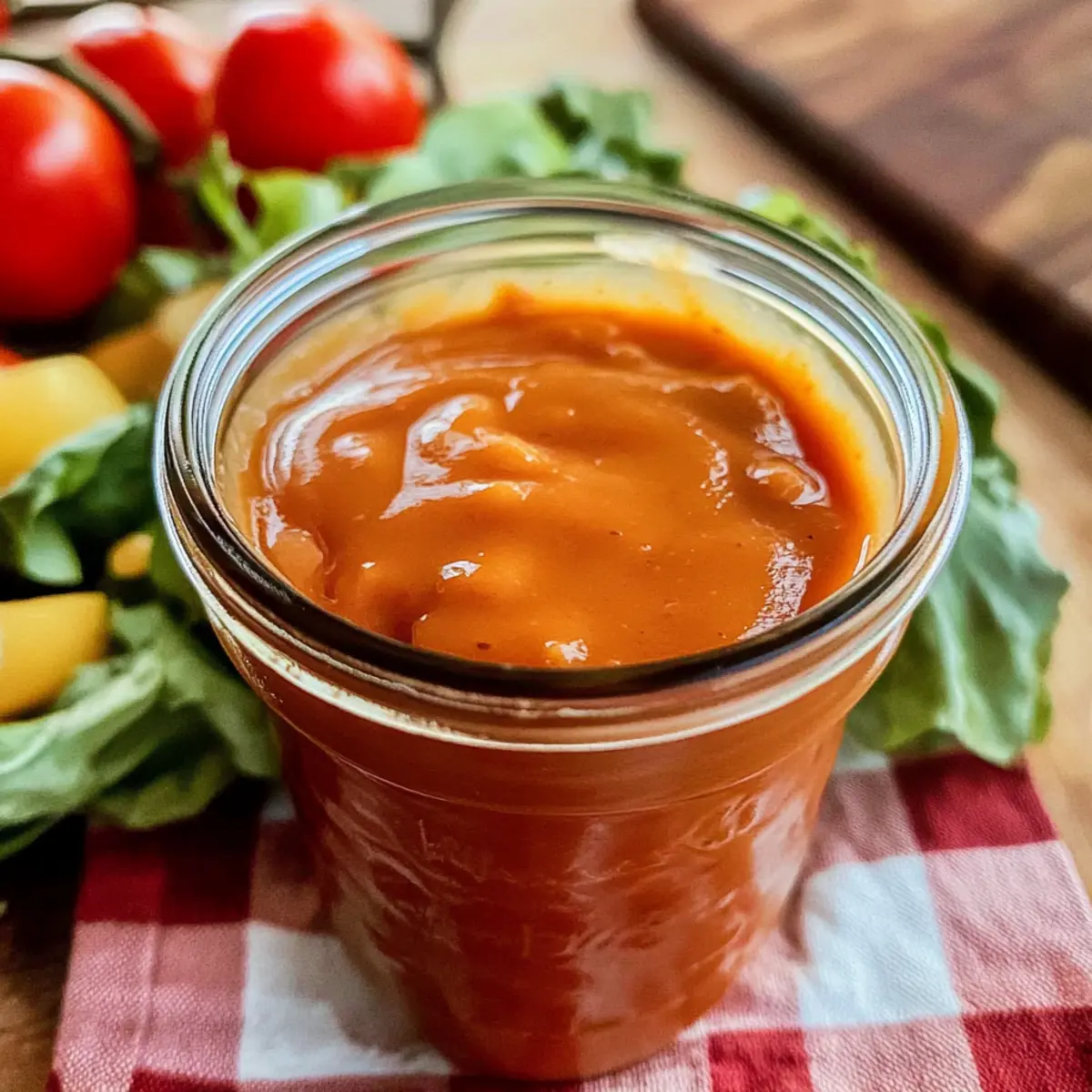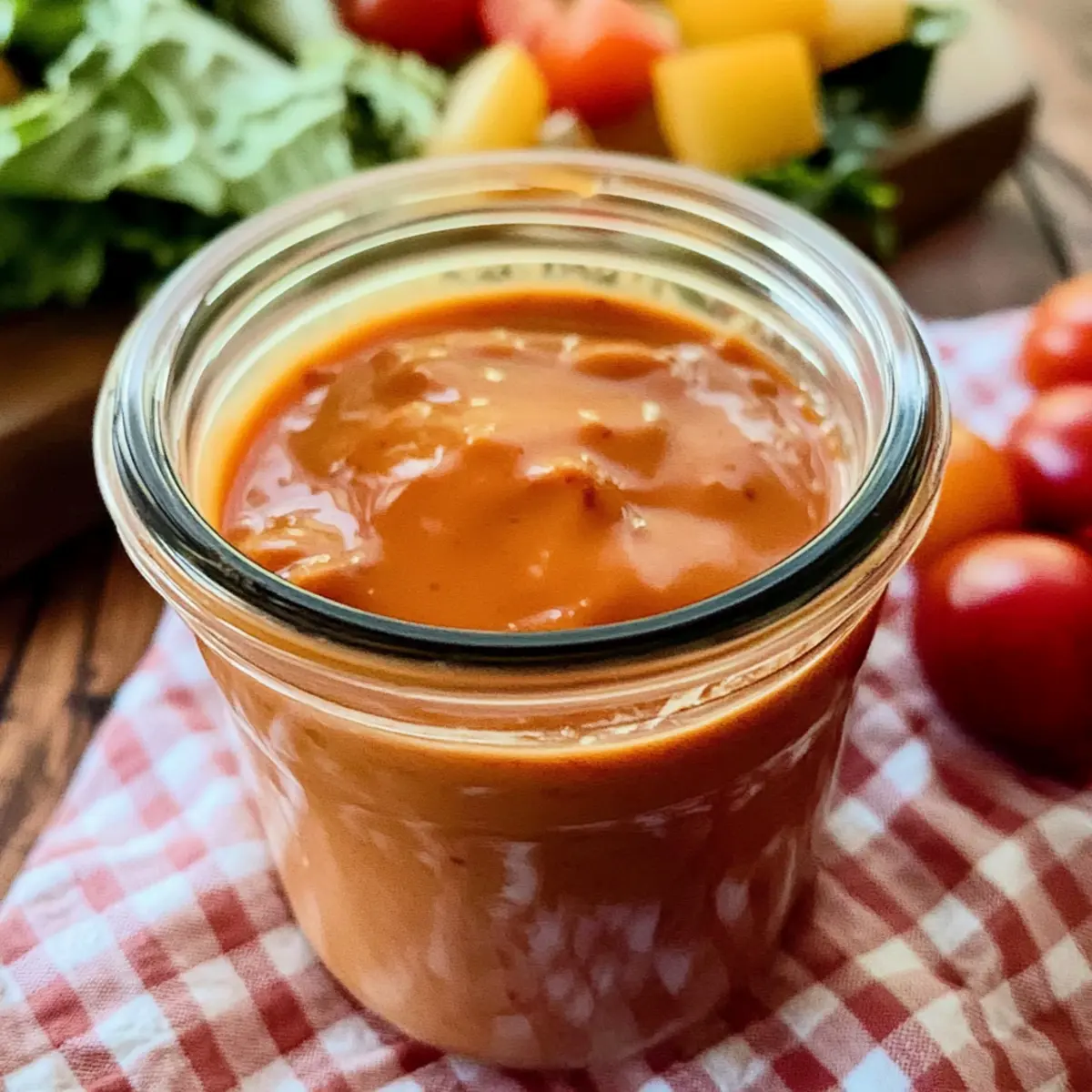 Jump to Recipe Print RecipeWith a satisfying zing that dances on your taste buds and a rich creaminess that hugs each leafy bite, this Creamy Simple Homemade French Dressing is truly a revival of a beloved classic. As someone who’s often on the lookout for quick and easy ways to elevate my meals, I can’t get enough of this dressing—it transforms ordinary salads and even pairs perfectly with homemade pizzas. The best part? You can whip it up in mere minutes using pantry staples, making it a convenient choice for your busy weeknights. Plus, preparing it yourself means you can customize it to suit your taste and dietary needs. Curious about how a few simple ingredients can bring a burst of nostalgia to your dining table? Let’s dive in and mix up this delicious recipe! Why Make Homemade French Dressing? Effortless Creation: This creamy dressing comes together in just minutes, allowing you to elevate your meals without the hassle of complicated recipes. Nostalgic Taste: Each bite transports you back to family dinners and classic restaurant salads, blending sweetness and tang for a flavor that feels familiar yet exciting. Versatile Use: Beyond salads, this dressing is perfect for dipping veggies or drizzling over homemade pizzas, transforming any dish into a gourmet experience. Clean Ingredients: You control what goes in—skip preservatives and artificial flavors in favor of wholesome pantry staples, making it a healthier option. Customizable Flavor: Adjust sweetness or add unique twists like maple syrup or garlic, ensuring your homemade French dressing is tailored to your palate. Give your salads and snacks a delicious upgrade with this delightful recipe, and consider exploring other options like Strawberry Spinach Dressing or a refreshing twist with Watermelon Berry Dressing. Homemade French Dressing Ingredients For the Dressing • Ketchup – Provides the primary sweetness and tanginess; consider using reduced-sugar ketchup for a lighter option. • Sugar – Adds sweetness; can be swapped with honey for a honey French dressing or use a sugar substitute to cut calories. • Apple Cider Vinegar – Offers a fruity tang; red wine vinegar can also be used for a similar flavor. • Neutral-Flavored Oil – Adds richness; avocado oil is ideal, but grapeseed, canola, or sunflower oils will work just as well. • Water – Thins the dressing to your desired consistency. • Onion Powder – Imparts a savory flavor; granulated onion or onion salt may be used instead (adjust salt amount accordingly). • Dry Mustard (Mustard Powder) – Acts as an emulsifier to help blend the ingredients; if unavailable, prepared mustard can be substituted. • Celery Seed – Contributes a unique flavor; you can replace it with dill seeds or omit it entirely. Step‑by‑Step Instructions for Creamy Simple Homemade French Dressing Step 1: Blend Ingredients In a blender, combine 1 cup of ketchup, 1/3 cup of sugar, 1/2 cup of apple cider vinegar, and 1/2 cup of neutral-flavored oil, such as avocado oil. Add 1 teaspoon of onion powder, 1 teaspoon of dry mustard, and 1 teaspoon of celery seed. Blend on high for about 60 seconds, or until the mixture is creamy and well-emulsified, achieving a smooth consistency that coats your spatula. Step 2: Alternative Mixing If you don’t have a blender, don’t worry! In a large mixing bowl, combine all the ingredients listed in the first step. Whisk vigorously for 2-3 minutes, ensuring the dressing is fully mixed and slightly thickened. You’ll be looking for a cohesive blend where all the flavors meld together beautifully, making your homemade French dressing just as delightful. Step 3: Store Once your creamy homemade French dressing has reached that luscious consistency, transfer it into a clean, airtight container or bottle. Seal it tightly and place it in the refrigerator. This dressing stays fresh for up to two weeks, allowing plenty of time for salads, veggie dips, or drizzling over your favorite homemade pizzas. What to Serve with Creamy Simple Homemade French Dressing? Enhance your dining experience with complementary flavors that make every bite a delight. Fresh Garden Salad: A crunchy, bright medley of greens and veggies, perfect for showcasing the rich creaminess of the dressing. Crispy Veggie Platter: Raw vegetables like carrots and bell peppers offer a satisfying crunch while the dressing serves as a zesty dip. Chicken Caesar Wraps: The tangy dressing pairs beautifully with chicken, adding a refreshing twist to this classic favorite. Homemade Pizza: Drizzling this dressing over your favorite pizza brings a nostalgic flavor reminiscent of classic pizzerias. Pasta Salad: Mix into a chilled pasta salad for an extra layer of flavor that complements the dish’s heartiness. Roasted Potatoes: The creaminess adds a delightful twist to crispy, roasted potatoes, enhancing their flavor with a vibrant zing. Grilled Fish Tacos: With its tangy notes, this dressing can elevate fish tacos, balancing the flavors beautifully. Dessert Pairing: Complete the meal with a slice of creamy cheesecake, providing a sweet contrast to the savory dressing. Sparkling Lemonade: A refreshing drink that pairs well with the dressing’s tanginess, making every bite feel like a party. Homemade French Dressing Variations Feel free to make this dressing your own by trying out these exciting variations and substitutions! Healthier Ketchup: Substitute ketchup with homemade tomato puree for a fresher, vibrant flavor that elevates your dressing. It’s a simple switch that can enhance the overall taste. Natural Sweetener: Use maple syrup instead of sugar for a delightful twist, infusing your dressing with unique flavors. This swap not only tastes great but also supports a healthier lifestyle! Garlic Kick: Add a minced clove of garlic for an aromatic zing. The added depth will bring your dressing to life, perfect for those who crave a punch of flavor. Vinegar Switch: Red wine vinegar can powerfull