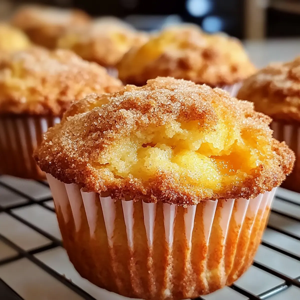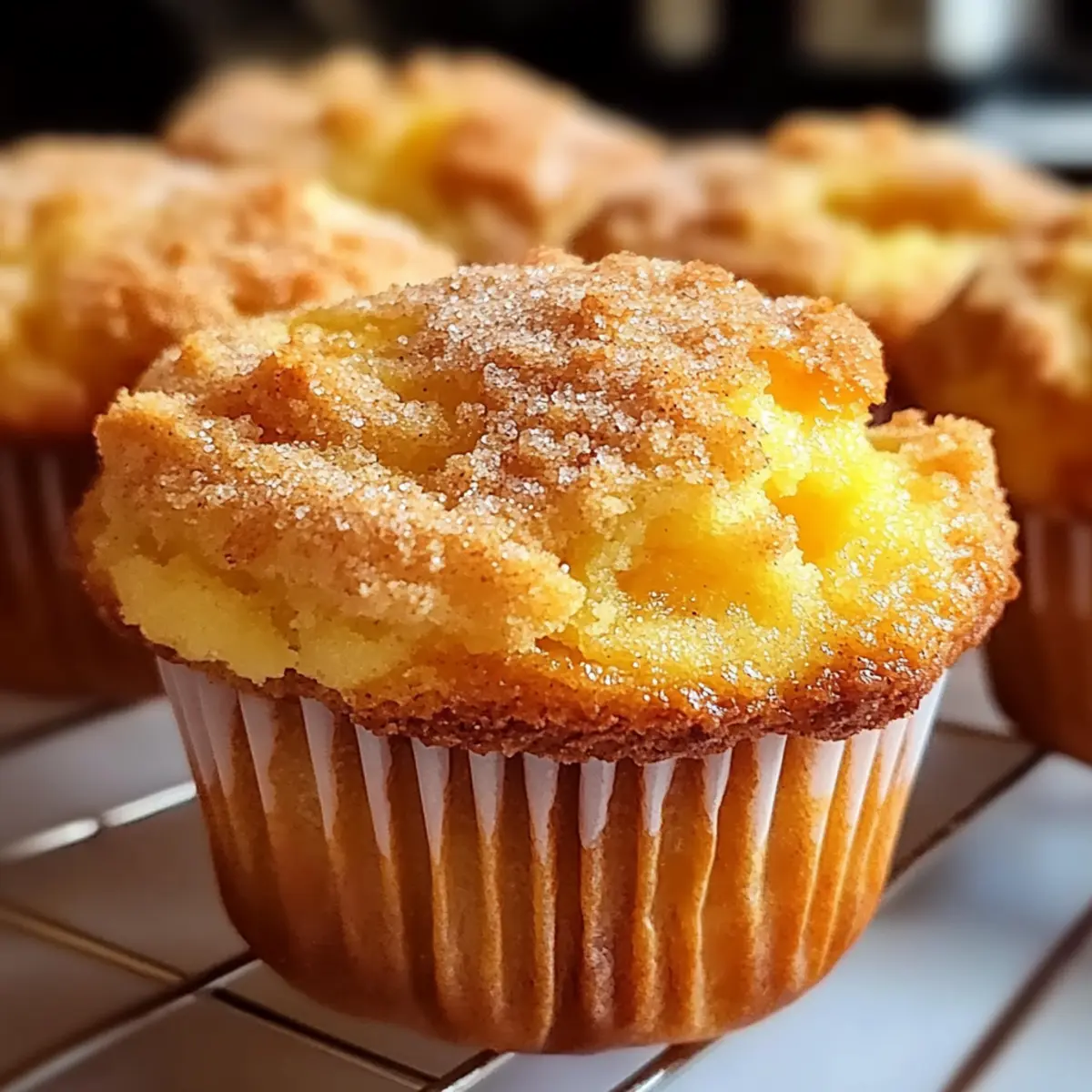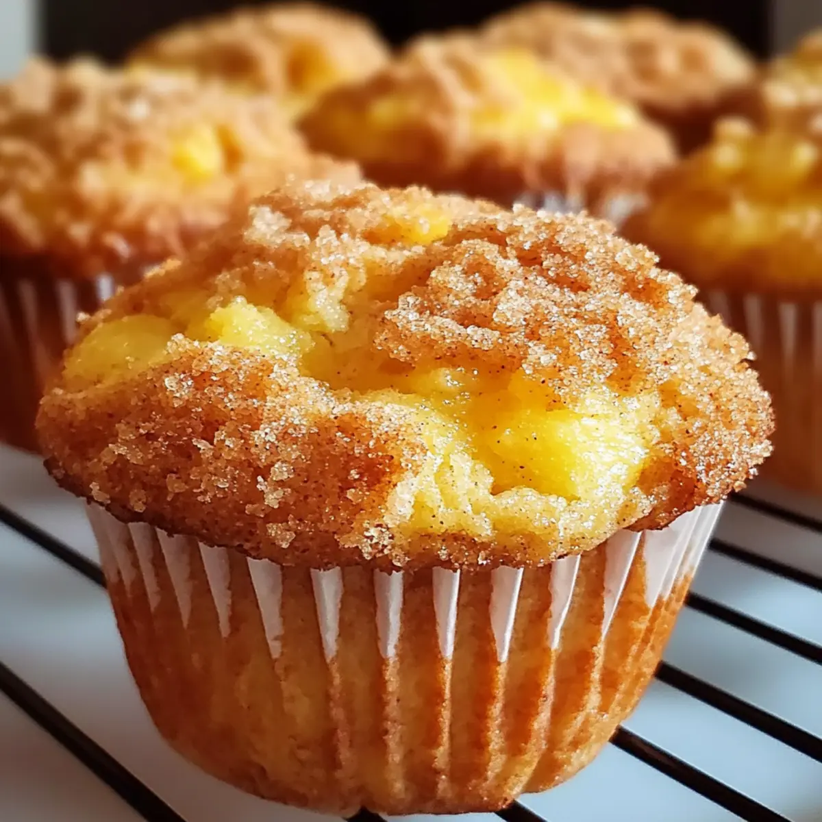 Jump to Recipe Print RecipeThe scent of freshly baked goods can turn any day around, and you’re in for a treat with these Homemade Peach Cobbler Muffins! Imagine pulling a tray of warm, fluffy muffins out of the oven, their golden tops glistening with a sprinkle of cinnamon sugar. This easy baking recipe combines the sweet, juicy goodness of peaches with a soft, comforting texture that’s perfect for breakfast or an afternoon snack. In just 30 minutes, you can whip up a batch that will impress family and friends, making it a wonderful crowd-pleaser. Plus, they freeze beautifully, so you can always have deliciousness on hand for those sweet cravings. Ready to fill your kitchen with an irresistible aroma? Let’s dive into this delightful recipe! Why You’ll Love Homemade Peach Cobbler Muffins Simplicity at Its Best: Whipping up these muffins takes just 30 minutes, making them a quick and easy treat for any occasion. Fresh Peach Flavor: Bursting with the sweetness of juicy peaches, each bite is a delicious reminder of summer bliss. Comforting Texture: These muffins perfectly blend fluffy interiors with a slightly crispy topping, replicating the comforting feel of a classic peach cobbler. Crowd-Pleaser: Whether for breakfast or an afternoon snack, they are sure to impress family and friends, leaving everyone craving more. Versatile Variations: Feel free to switch things up! Try using apples or add a streusel topping for a delightful twist. And if you’re in the mood for something refreshing to drink, why not pair them with a refreshing cup of Banana Protein Muffins or a sip of Refreshing Raspberry Peach? Homemade Peach Cobbler Muffins Ingredients For the Muffins • All-purpose flour – Provides structure to the muffins; whole wheat flour is a healthy alternative. • Granulated sugar – Adds sweetness; consider using coconut sugar for a healthier option. • Baking powder – Essential leavening agent; ensure it’s fresh for optimal rise. • Baking soda – Boosts the leavening effect when paired with baking powder. • Salt – Enhances overall flavor; sea salt offers a unique taste experience. • Milk – Keeps the muffins moist and rich; try almond or oat milk for a dairy-free choice. • Unsalted butter (melted) – Infuses richness and flavor; coconut oil is a great dairy-free substitute. • Large eggs – Bind ingredients together and aid in rising; use flax eggs for a vegan option. • Vanilla extract – Adds warmth and complexity to flavor; almond extract works as an alternative. • Fresh or canned peaches (diced) – Bring that delightful peach flavor; if using canned, drain and chop first! • Ground cinnamon – Infuses a warm spice note; nutmeg can be an interesting substitute. • Brown sugar – Sweet topping that adds a hint of caramel; white sugar can replace it if needed. For the Topping • Cinnamon – Sprinkled on top for added warmth and spice; blends beautifully with the muffin’s flavor. • Brown sugar – Creates a lovely caramelized crust on top; can use white sugar if preferred. Step‑by‑Step Instructions for Homemade Peach Cobbler Muffins Step 1: Preheat the Oven and Prepare the Muffin Pan Begin by preheating your oven to 350°F (175°C). While it’s warming up, take a muffin pan and line it with muffin liners or grease each cup generously with butter or cooking spray. This simple preparation is crucial to ensure your Homemade Peach Cobbler Muffins come out effortlessly from the pan. Step 2: Mix Dry Ingredients In a large mixing bowl, whisk together 2 cups of all-purpose flour, 1 cup of granulated sugar, 2 teaspoons of baking powder, 1 teaspoon of baking soda, and 1/2 teaspoon of salt. As you blend these dry ingredients, keep an eye out for any clumps, ensuring an even distribution. This mix forms the perfect base for adding flavor to your muffins. Step 3: Combine Wet Ingredients In another bowl, pour in 1 cup of milk, 1/2 cup of melted unsalted butter (cooled), 2 large eggs, and 1 teaspoon of vanilla extract. Whisk the mixture until smooth and well-combined. The wet ingredients should blend seamlessly, creating a rich liquid that will bring moisture and flavor to your Homemade Peach Cobbler Muffins. Step 4: Combine Wet and Dry Ingredients Next, gently pour the wet mixture into the bowl of dry ingredients. Stir them together with a spatula until just combined, being careful not to overmix. You’ll see some lumps, which are perfectly fine! This is the moment to add 1 cup of diced peaches, folding them into the batter to distribute their sweet juiciness throughout. Step 5: Fill Muffin Cups Using a large spoon or scoop, fill each muffin cup about two-thirds full with the batter. This ensures room for rising as they bake. As you fill the cups, try to distribute the peaches evenly among them, ensuring that each Homemade Peach Cobbler Muffin has that delightful fruity touch. Step 6: Prepare the Topping In a small bowl, combine 2 tablespoons of brown sugar and 1 teaspoon of ground cinnamon. Mix well, then sprinkle this delightful mixture generously over the filled muffin cups. This will create a lovely, caramelized crust on top of your muffins, adding a sweet final touch to your delicious peach cobbler muffins. Step 7: Bake until Golden Brown Carefully place the muffin pan in the preheated oven and bake for 18-20 minutes. You’ll know they’re done when the tops are golden brown and a toothpick inserted in the center comes out clean. The tantalizing aroma of peaches and cinnamon will fill your kitchen, making the wait even sweeter! Step 8: Cool and Serve Once baked, allow the muffins to cool in the pan for about 5 minutes. Then, transfer them to a wire rack to cool completely. This step is essential to maintain their texture. Serve these warm Homemade Peach Cobbler Muffins with a little butter or enjoy them plain—each bite is a comforting reminder of home! Expert Tips for Homemade Peach Cobbler Muffins • Mix Gently: Avoid over-mixing the batter