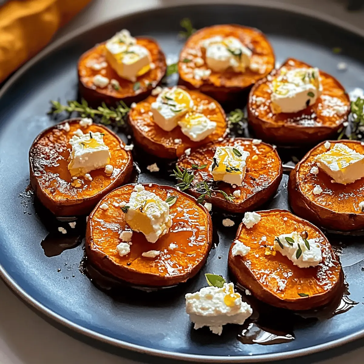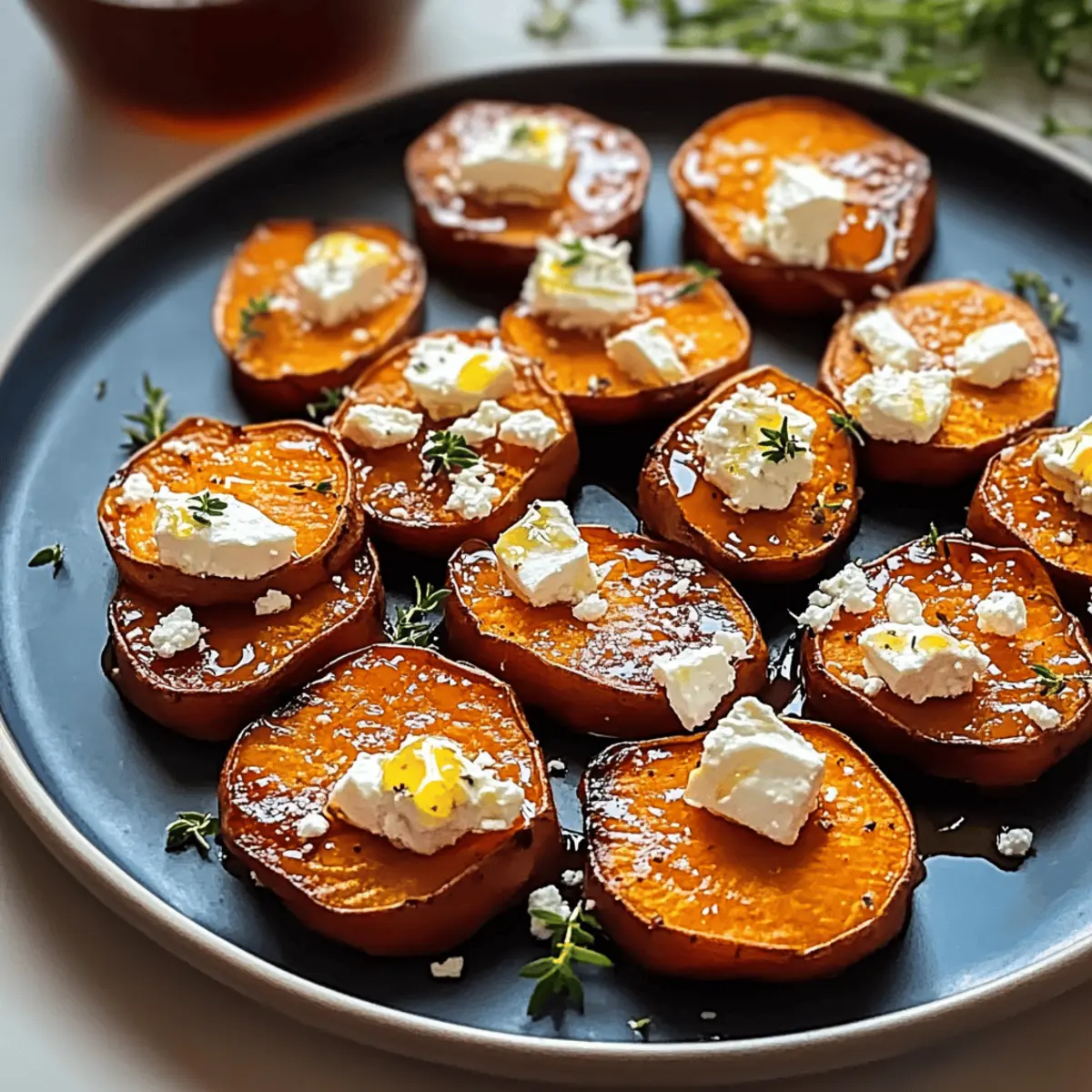 Jump to Recipe Print RecipeAs I reached into the pantry, I stumbled upon a beautiful bag of sweet potatoes, their vibrant copper skin shining like a beacon of culinary potential. That’s when I decided to whip up Honey Feta Sweet Potato Rounds. This delightful recipe is an incredible balance of flavors, showcasing the inherent sweetness of caramelized potatoes harmonized with the creamy tang of feta cheese. These rounds are incredibly easy to prepare, making them the perfect quick side for busy weeknights or an elegant appetizer for dinner parties. Plus, they cater to a variety of dietary needs—it can easily be turned into a plant-based delight by swapping out the feta and honey for vegan alternatives. So, whether you’re creating a beautiful spread for loved ones or simply treating yourself, these rounds are sure to impress. Ready to bring a touch of gourmet flair to your table? Let’s dive into this delicious journey together! Why Are These Rounds So Irresistible? Simplicity Meets Flavor: The Honey Feta Sweet Potato Rounds come together effortlessly, making them ideal for both novice cooks and seasoned chefs alike. Gourmet Appeal: Impress your guests with these visually stunning bites that taste as good as they look, perfect for any gathering. Versatile Match: They pair beautifully with Cheesy Hamburger Potato casseroles or as a side to your favorite roasted meats. Healthful Indulgence: Packed with nutrients, these rounds are a wholesome addition to any meal, offering a sweet and savory profile that pleases all palates. Customizable Twist: Want to change things up? Substitute feta with vegan options or experiment with different sweet potato varieties for a unique flair! In just a few steps, you can create a dish that’s not only delicious but also a feast for the eyes. Let’s get cooking! Honey Feta Sweet Potato Rounds Ingredients For the Sweet Potatoes Sweet Potatoes – The star of the dish, choose firm and blemish-free ones for optimal flavor and texture. Olive Oil – Essential for roasting; it helps achieve that crispiness we all love—avocado oil is a great alternative for a different flavor. Salt and Pepper – They enhance the natural sweetness; adjust according to your taste preferences. For Topping Honey – This adds a lovely sweetness when drizzled over the rounds; use maple syrup if you’re going for a vegan adaptation. Feta Cheese – Creamy and tangy, it’s the perfect complement to the sweet potatoes; consider a vegan feta for a plant-based version. Fresh Thyme Leaves – They contribute a fragrant herbaceous touch; substitute with rosemary or oregano if needed. Red Pepper Flakes (optional) – Just a pinch adds a delightful hint of heat, but feel free to omit it for a milder experience. Transform these ingredients into a stunning dish that everyone will love! Happy cooking! Step‑by‑Step Instructions for Honey Feta Sweet Potato Rounds Step 1: Preheat and Prepare Preheat your oven to 425°F (220°C) and line a baking sheet with parchment paper to prevent sticking. This sets the stage for perfectly roasted Honey Feta Sweet Potato Rounds. Make sure your baking sheet is ready for the sweet potatoes, which will need ample space to crisp up nicely. Step 2: Slice the Sweet Potatoes Cut the sweet potatoes into uniform ½-inch thick rounds to ensure even roasting. Aim for a consistent size, which will help them cook perfectly and achieve that golden-brown exterior. Place the sliced rounds in a bowl, waiting for their flavorful transformation. Step 3: Seasoning the Rounds In a bowl, toss the sweet potato rounds with a drizzle of olive oil, along with a pinch of salt and pepper for seasoning. Ensure each round is well-coated with oil; this will enhance their flavor and promote a crispy texture as they roast. Step 4: Roasting the Sweet Potatoes Arrange the seasoned sweet potato rounds in a single layer on the prepared baking sheet, ensuring they aren’t overcrowded. Roast in the preheated oven for 20–25 minutes, flipping them halfway through. They should emerge golden and crispy around the edges—just what we want for our Honey Feta Sweet Potato Rounds! Step 5: Warm the Honey While the sweet potatoes roast, gently warm some honey in a small saucepan over low heat or in the microwave for a few seconds. This warming process makes it easier to drizzle over the finished sweet potato rounds, enhancing their sweet and savory flavor without cooling them down. Step 6: Assemble the Rounds Once the sweet potato rounds are crispy and ready, remove them from the oven. Drizzle the warm honey generously over each round, then sprinkle crumbled feta cheese, fresh thyme leaves, and a pinch of red pepper flakes, if desired. The contrast of flavors will be breathtaking! Step 7: Serve and Enjoy Serve the Honey Feta Sweet Potato Rounds warm for the best taste and texture. These delightful bites can be a side dish or an appetizer that will surely impress your family and friends with their sweet and savory allure. Enjoy the satisfaction of a beautiful homemade masterpiece! Honey Feta Sweet Potato Rounds Variations Feel free to explore these delicious options and put your own creative spin on the recipe! Vegan Delight: Substitute feta cheese and honey with dairy-free feta and maple syrup for a fully plant-based version. You’ll enjoy the same sweet and savory taste without compromising your diet. Sweet Potato Variety: Experiment with different varieties of sweet potatoes, like the vibrant purple or the unique Japanese sweet potatoes. They add an exciting twist and a pop of color to your dish. Nutty Crunch: Enhance the texture by adding toasted walnuts or pecans as a topping. The nutty flavor will complement the sweetness of the potatoes beautifully. Spicy Kick: For those who love heat, toss in some sliced jalapeños or add extra red pepper flakes on top. This brings an exciting contrast to the sweet elements of the dish. Herb Garden: Switch out thyme for other fresh herbs like rosemary 