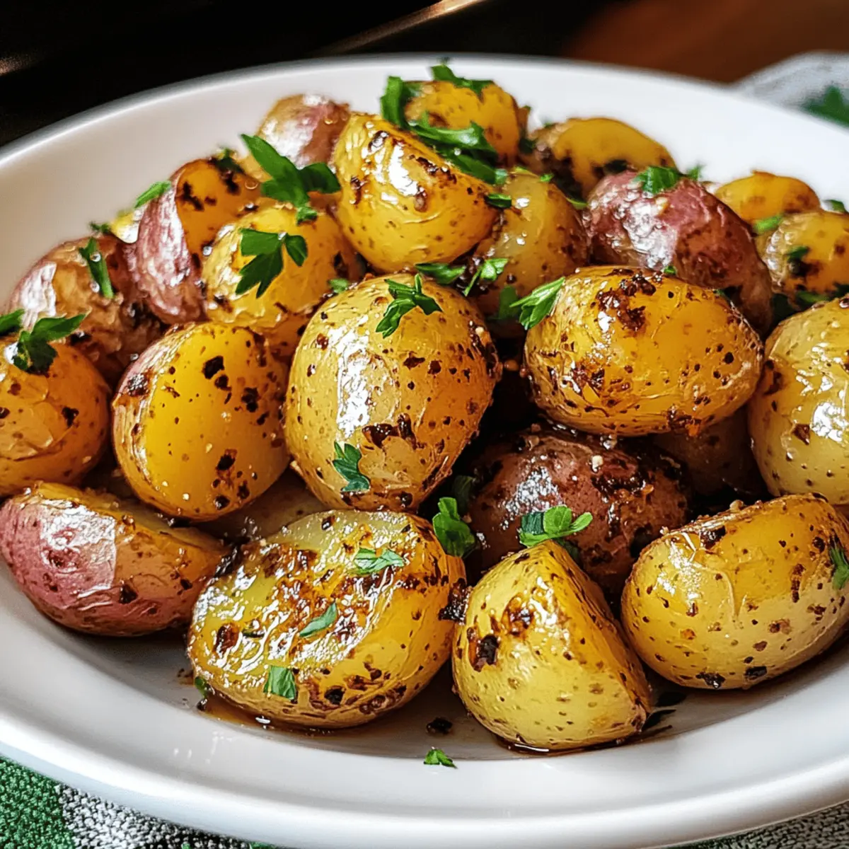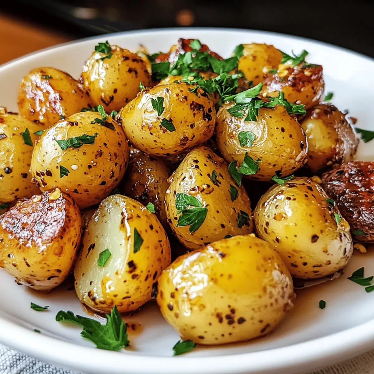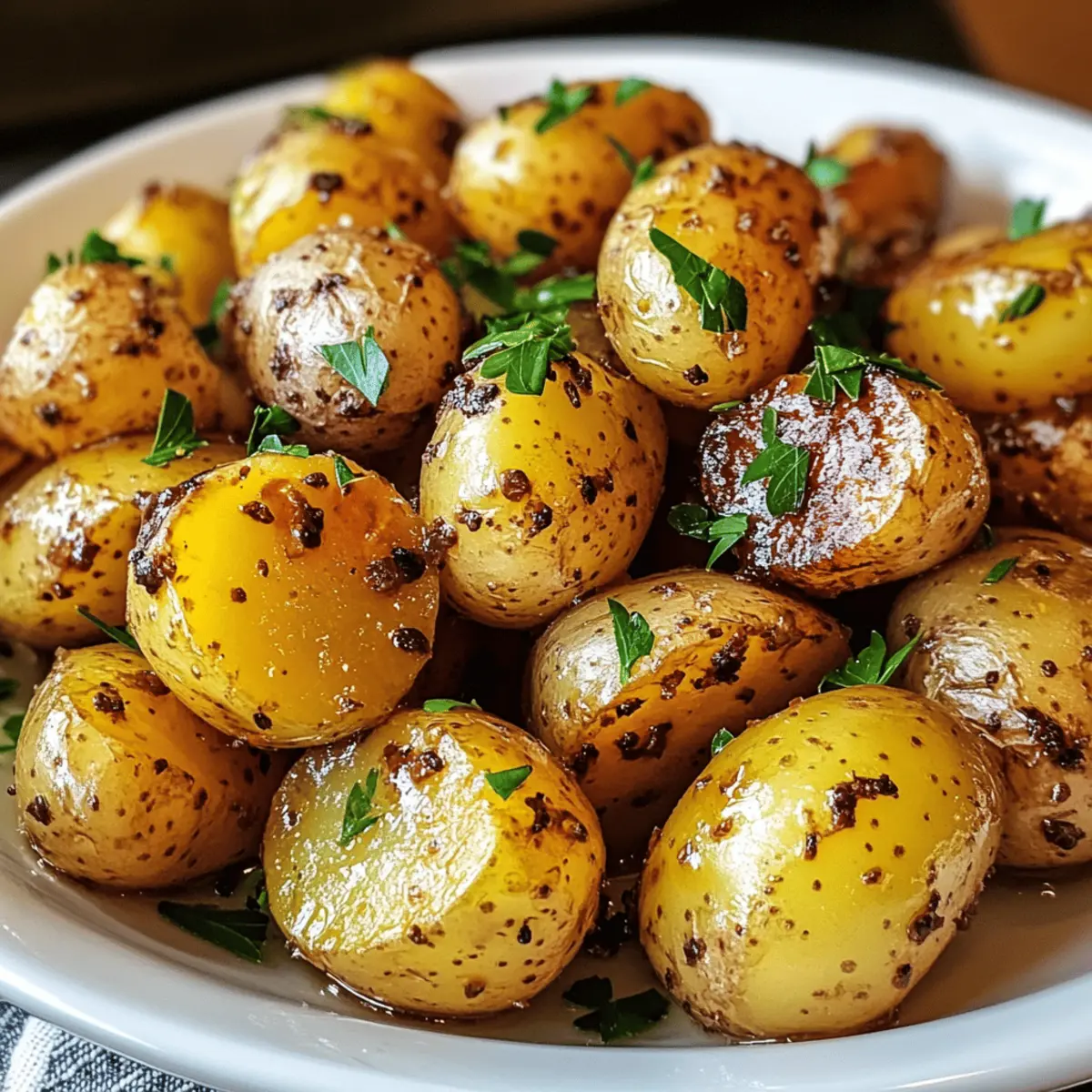 Jump to Recipe Print RecipeThe aroma of roasted potatoes wafts through the air, a sign that something delightful is about to grace the dinner table. One of my favorite go-to side dishes has to be Honey Mustard Potatoes — the perfect blend of sweet and tangy that elevates any meal. With just a few simple ingredients and minimal prep, you’ll create crispy, golden-brown bites that are tender on the inside. This dish not only harmonizes beautifully with grilled meats and fresh salads but is also gluten-free and beginner-friendly, making it a fantastic choice for everyone from seasoned chefs to those just starting their culinary journeys. Ready to transform your weeknight dinners or impress your guests at special gatherings? Let’s dive into this scrumptious recipe together! Why Are Honey Mustard Potatoes So Irresistible? Simplicity is key! With just a handful of ingredients, you’ll whip up a stunning side dish in no time. Unique flavor profile: the sweet honey and tangy mustard create a delicious dance on your palate. Versatile pairing: these potatoes complement everything from grilled chicken to fresh salads. Plus, they’re beginner-friendly and gluten-free, making them an ideal choice for any cook. Want to impress your guests? Serve these alongside dishes like Cajun Honey Butter Salmon for a meal that’s sure to be remembered! Honey Mustard Potatoes Ingredients • Discover the key components to craft these delightful Honey Mustard Potatoes! For the Potatoes Baby Potatoes – Their tender texture enhances creaminess when roasted; you can substitute with regular potatoes, cut into smaller pieces for even cooking. Salt and Pepper – Essential for enhancing all other ingredient flavors. For the Marinade Extra-Virgin Olive Oil – Contributes to a golden crust and carries the marinade flavors beautifully. Honey – Provides natural sweetness that caramelizes during roasting; substitute with maple syrup for a vegan option. Dijon Mustard – Acts as the sauce’s backbone, offering a tangy kick that cuts through sweetness. Whole Grain Mustard – Adds texture and a rustic flavor; adjust by using less for a milder taste. Garlic – Adds savory depth when roasted; fresh minced garlic is highly recommended for the best flavor. Lemon Juice – Brightens the dish and balances sweetness; opt for fresh juice for the best results. For the Garnish Fresh Parsley – Provides a vibrant finish and herbal note; sprinkle on top for that restaurant-worthy touch. Now that you have everything you need, you’re just a few steps away from enjoying your homemade Honey Mustard Potatoes! Step‑by‑Step Instructions for Honey Mustard Potatoes Step 1: Preheat the Oven Begin by preheating your oven to 400°F (200°C). This temperature is essential for achieving perfectly crispy Honey Mustard Potatoes. Make sure your oven reaches this temperature before moving on to the next step, allowing the heat to build for even roasting. Step 2: Prepare the Potatoes Wash the baby potatoes thoroughly under running water, removing any dirt. For even cooking, cut larger potatoes in half while leaving smaller ones whole. This ensures consistency throughout your Honey Mustard Potatoes. Set them aside in a bowl as you prepare the marinade. Step 3: Make the Marinade In a mixing bowl, combine 3 tablespoons of extra-virgin olive oil, 2 tablespoons of honey, 1 tablespoon of Dijon mustard, and 1 tablespoon of whole grain mustard. Add 2 minced garlic cloves, a pinch of salt, and a dash of pepper, followed by 1 tablespoon of freshly squeezed lemon juice. Whisk until the mixture comes together as a cohesive and flavorful marinade. Step 4: Coat the Potatoes Add the prepared baby potatoes into the bowl with your honey mustard marinade. Toss them together until every potato is coated with the sticky, inviting mixture. This step is crucial for ensuring that each bite of Honey Mustard Potatoes is bursting with flavor as they roast. Step 5: Arrange for Roasting Line a baking sheet with parchment paper for easy cleanup. Spread the coated potatoes in a single layer on the sheet, ensuring they’re not overcrowded, which allows for a crispy exterior. This arrangement is key to achieving that perfect roasted texture. Step 6: Roast the Potatoes Place the baking sheet in the preheated oven and roast the Honey Mustard Potatoes for 25-30 minutes. About halfway through, take them out, and use a spatula to turn them for even browning. You’ll know they’re ready when they turn a lovely golden brown and are tender when pierced with a fork. Step 7: Garnish and Serve Once roasted, remove the Honey Mustard Potatoes from the oven and let them cool slightly on the baking sheet. Transfer them to a serving dish and sprinkle chopped fresh parsley over the top for a vibrant finish. This beautiful touch enhances the dish’s presentation and adds a lovely herbal note. Make Ahead Options These Honey Mustard Potatoes are perfect for meal prep lovers! You can prepare the marinade and coat the baby potatoes up to 24 hours in advance, keeping them in the refrigerator for maximum flavor infusion. To do this, simply follow the recipe up to the coating step, then transfer the marinated potatoes to an airtight container. When you’re ready to serve, just spread the coated potatoes on a parchment-lined baking sheet and roast them for 25-30 minutes at 400°F (200°C). This way, you’ll have a delicious, ready-to-bake dish that saves you time on busy weeknights while still delivering that unbeatable combination of sweet and tangy goodness! What to Serve with Honey Mustard Potatoes The perfect meal doesn’t end with a single dish; it’s about creating a delightful symphony of flavors that’ll leave your family and friends raving! Grilled Chicken Skewers: The charred goodness and marinated flavors create a tantalizing contrast to the sweet and tender Honey Mustard Potatoes. Perfect for crafting a memorable meal! Seared Salmon: A flaky fish with a zesty lemon drizzle 