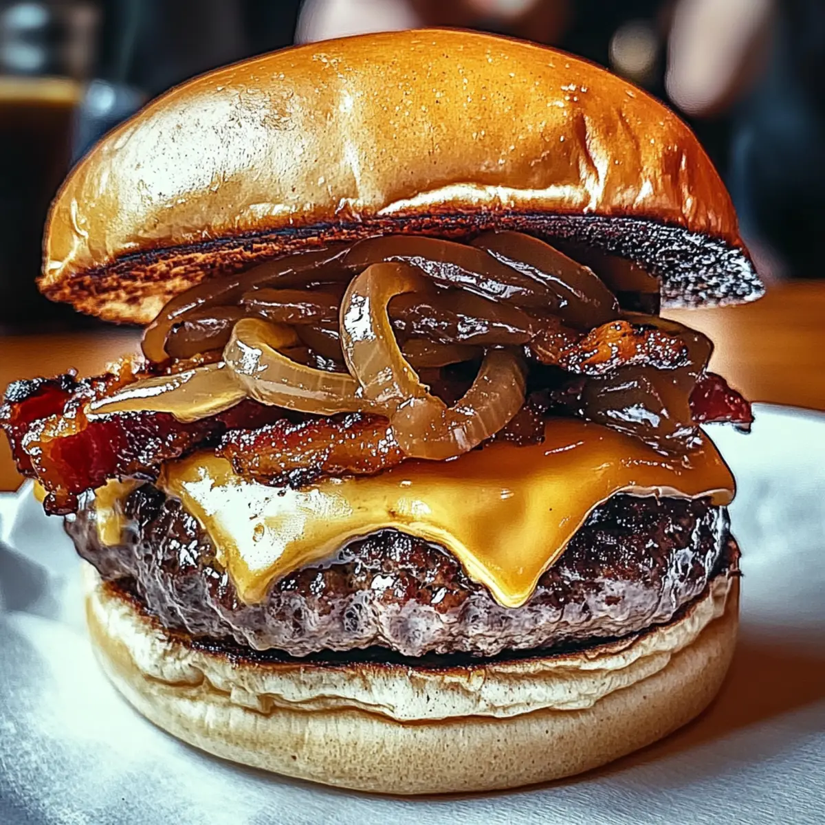 Jump to Recipe Print RecipeAs I flipped through the recipe book, a delightful aroma wafted through my kitchen, instantly transporting me to a bustling Irish pub. With these Irish Pub Burgers with Stout-Infused Caramelized Onions, I’d found the perfect way to capture that cozy experience right at home. Juicy beef patties infused with Worcestershire, crowned with melted sharp cheddar and sweet caramelized onions, create an indulgent comfort food that’s sure to impress. Plus, this recipe is a chameleon; whether you’re looking for a lighter option, a vegetarian twist, or a gluten-free adaptation, it covers all the bases. So, what do you say? Ready to take your taste buds on a flavorful journey? Why are Irish Pub Burgers irresistible? Juicy, Rich Flavors: Each bite of these Irish Pub Burgers delivers mouthwatering flavors, thanks to stout-infused caramelized onions and perfectly seasoned beef patties. Versatile Options: This recipe shines with its flexibility—adapt it to fit any dietary preference by switching to turkey or plant-based patties, and gluten-free buns can make it a crowd-pleaser for everyone! Quick & Simple: No fuss here! You can whip up these delicious burgers in under 30 minutes, making them perfect for weeknight dinners or last-minute gatherings. Crowd Favorite: Whether it’s game day or a family BBQ, these burgers are sure to steal the show. Serve them with your favorite sides, like sweet potato fries or a refreshing salad, and watch everyone’s faces light up! Comforting Experience: Enjoy the warm, inviting feel of an Irish pub without leaving your home—ideal for cozy nights in or festive gatherings. Irish Pub Burgers Ingredients For the Beef Patties Ground Beef – Provides the main protein and richness. Use lean ground turkey for a lighter option. Worcestershire Sauce – Enhances the beef flavor profile. Soy sauce can be a substitute for a gluten-free version. Salt and Pepper – Essential seasonings to enhance flavors. For the Toppings Cheddar Cheese – Provides a creamy, sharp flavor that melts beautifully. Use a milder cheese if preferred. Bacon – Adds crunch and smokiness. Substitute with turkey bacon for a lighter alternative. Onion – Used for caramelization to enhance flavor with sweetness. White or red onion can be swapped in. Irish Stout (like Guinness) – Adds depth and complexity to the patty and onions. Substitute with any dark beer if not available. For the Sauce Sour Cream – Offers a cool, creamy texture in the sauce. Light sour cream or Greek yogurt can be used as a healthier alternative. Dijon Mustard – Brings tang and depth to the sauce. Yellow mustard can be used for a milder taste. For the Buns Brioche Burger Buns – Adds softness and sweetness that balances the burger. Use gluten-free buns for a gluten-free option. Butter – For toasting buns, adds richness. Olive oil can be used for a dairy-free version. Seasoning and Extras Salt and Pepper – Don’t forget the basics for the best flavor! Step‑by‑Step Instructions for Irish Pub Burgers with Stout-Infused Caramelized Onions Step 1: Cook Bacon In a skillet over medium heat, cook the bacon slices until crispy, about 6-8 minutes, turning occasionally for even crispness. Once cooked, transfer the bacon to a plate lined with paper towels to drain excess grease, leaving a tablespoon of bacon fat in the skillet for the next step. Step 2: Caramelize Onions With the remaining bacon grease in the skillet, add the sliced onions and cook over medium heat for 10-15 minutes. Stir often until they turn golden brown and soft; then pour in the Irish stout, stirring well, and continue cooking until the liquid reduces by half. Season with salt and pepper to taste, ensuring the flavors meld beautifully. Step 3: Prepare Patties In a mixing bowl, combine the ground beef with Worcestershire sauce, salt, and pepper. Gently mix until just combined, being careful not to overwork the meat. Shape the mixture into 4 patties, making them slightly larger than your brioche buns as they will shrink during cooking. Step 4: Cook Patties Preheat a grill or frying pan over medium-high heat. Cook the beef patties for 3-4 minutes on each side, or until they reach your desired doneness, making sure to add a slice of cheddar cheese on top in the last minute of cooking to melt beautifully. Step 5: Make Sauce In a small mixing bowl, combine the sour cream, Dijon mustard, and a pinch of salt. Stir well until smooth and creamy, ensuring the tangy flavor will enhance your Irish Pub Burgers. Set this aside while you continue preparing the rest of the meal. Step 6: Toast Buns Melt butter in a clean skillet over medium heat. Once bubbling, add the brioche burger buns, cut side down, and toast them until golden brown, about 2-3 minutes. This adds a delightful richness and crunch to your Irish Pub Burgers. Step 7: Assemble Burgers On each toasted bun bottom, layer the cooked beef patty topped with melted cheddar, followed by a generous scoop of the caramelized onions, and a slice of crispy bacon. Drizzle the creamy sauce generously over the top, and finish with the bun lid to complete your burger masterpiece. Step 8: Serve Serve your Irish Pub Burgers hot, paired with side delights like sweet potato fries or a crisp salad to balance the rich flavors. Each bite promises a heavenly combination of tastes and textures, perfect for sharing with friends and family! Make Ahead Options These Irish Pub Burgers are perfect for meal prep, allowing you to enjoy hearty flavors with minimal effort during busy weeknights. You can prepare the beef patties and store them in the refrigerator for up to 24 hours—just shape them and cover with plastic wrap to keep them fresh. The caramelized onions can be made ahead as well; they can be refrigerated for up to 3 days in an airtight container. When you’re ready to serve, simply grill the patties and top with cheese as they cook. Having the toppings prepped in advance means you’ll have delic