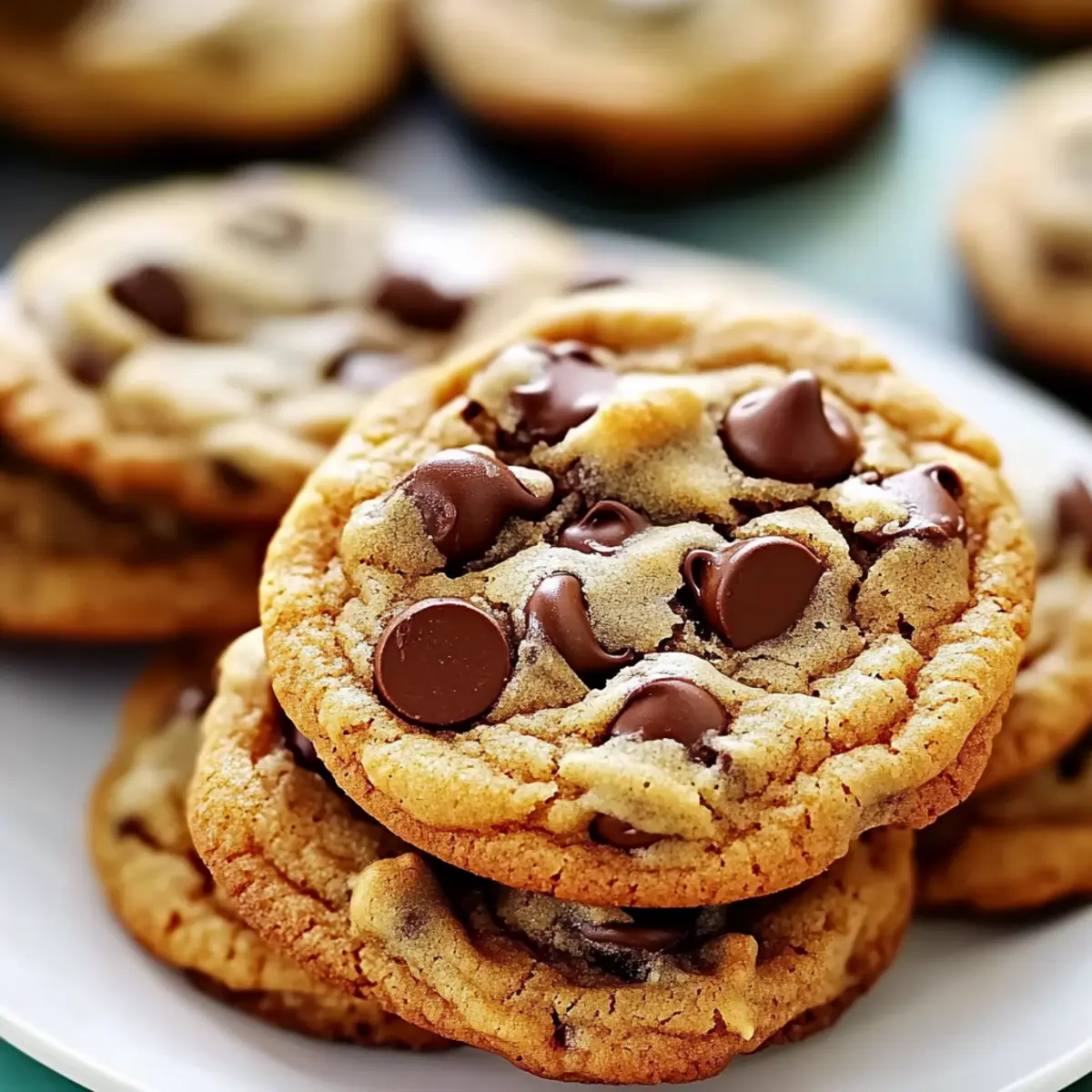 Jump to Recipe Print RecipeAs I pulled those warm chocolate chip cookies from the oven, the delightful aroma instantly transported me back to my grandmother’s kitchen, with its cozy glow and the feel of home. These classic soft and chewy chocolate chip cookies not only evoke sweet memories but also promise joy with every gooey bite. Whipping them up is a breeze, making it an ideal recipe for both seasoned bakers and curious beginners alike. Whether you’re looking for a comforting indulgence after a long day or a fun treat to share at your next gathering, these cookies are sure to be a hit. Plus, with gluten-free substitutions available, everyone can indulge in this irresistible chocolate chip recipe! What’s your favorite way to enjoy fresh-baked cookies—do you savor them warm or save a few for later? Why Are These Cookies Irresistible? Delectable Flavor: The blend of semi-sweet chocolate and rich brown sugar creates a taste sensation that is simply irresistible. Soft and Chewy Texture: Experience the delightful contrast of crispy edges with a gooey center that melts in your mouth. Quick and Easy: Perfect for busy days, this simple recipe comes together in just about 30 minutes! Endless Customization: Feel free to mix in your favorite nuts, or dried fruits, or try dark chocolate instead for a gourmet twist. Crowd-Pleasing Delight: Serve these homemade treats at parties, or family gatherings, and watch them disappear in a flash! You can even consider pairing them with a glass of cold milk for the ultimate indulgence. Whether you’re craving a little nostalgia or want to share sweet memories, this is your go-to recipe! Irresistible Chocolate Chip Ingredients • If you’re eager to bake the soft and chewy chocolate chip cookies of your dreams, here’s everything you need! For the Cookie Dough All-Purpose Flour – Provides structure, and for a gluten-free version, substitute with a quality gluten-free flour blend. Granulated Sugar – Adds sweetness and promotes caramelization; fine sugar mixes better into the dough. Brown Sugar – Ensures moisture and rich flavor; using light brown sugar gives a perfect balance. Baking Soda – Acts as a leavening agent for ideal rise, keeping the cookies soft rather than cake-like. Salt – Balances flavors and enhances sweetness; don’t skip this essential ingredient. Unsalted Butter – For the best rich flavor and creamy texture, melt lightly before incorporating. Vanilla Extract – Adds warmth and depth to the flavor; choose a pure extract for optimal results. Chocolate Chips – Semi-sweet chocolate provides a classic taste, but feel free to mix in dark or milk chocolate for variety. Step‑by‑Step Instructions for Classic Soft and Chewy Chocolate Chip Cookies Step 1: Preheat the Oven Begin by preheating your oven to 350°F (175°C). This essential step ensures that your cookies bake evenly and reach that golden-brown perfection. As the oven warms, prepare your baking sheet by lining it with parchment paper, creating a non-stick surface for your irresistible chocolate chip cookies. Step 2: Melt the Butter In a microwave-safe bowl, measure out your unsalted butter and melt it fully, taking about 30 seconds to 1 minute. Once melted, allow it to cool slightly to avoid cooking the eggs later. This step is crucial for achieving that soft, chewy texture that defines your classic cookies. Step 3: Mix Sugars and Butter Combine the melted butter with granulated and brown sugar in a medium bowl. Using a hand mixer, beat the mixture on medium speed until it becomes creamy and smooth, about 2–3 minutes. This blending creates a rich base, ensuring your chocolate chip cookies have that mouthwatering sweetness. Step 4: Add Eggs and Vanilla Crack in one egg at a time, mixing well after each addition until the batter is fully combined. Then, pour in the vanilla extract, mixing until the flavors meld together. This step enriches the cookies with warmth and depth, making them truly irresistible. Step 5: Combine Dry Ingredients In a separate bowl, whisk together the all-purpose flour, baking soda, and salt until well blended. This mixture acts as the backbone of your cookie dough, providing the structure and flavor balance needed for your soft and chewy chocolate chip cookies. Step 6: Fold Together Gently fold the dry ingredients into the wet mixture, using a spatula or wooden spoon. Mix just until the flour is incorporated, being careful not to overmix. This ensures you maintain the fluffy texture that is a hallmark of classic soft and chewy chocolate chip cookies. Step 7: Add Chocolate Chips Now it’s time to fold in those delicious chocolate chips! Gently stir them into the dough until they are evenly distributed. The chocolate will melt beautifully while baking, creating gooey pockets that make every bite a delightful treat in your irresistible chocolate chip recipe. Step 8: Scoop and Bake Using a cookie scoop or spoon, drop generous dollops of dough onto the prepared baking sheet, spacing them about 2 inches apart. Bake in the preheated oven for 10–12 minutes, or until the edges are golden brown but the centers look slightly underbaked. This approach ensures your cookies retain that soft, chewy texture we all love. Irresistible Chocolate Chip Variations Feel free to customize your irresistible chocolate chip cookies with delightful twists that excite your taste buds! Gluten-Free: Swap all-purpose flour for a gluten-free flour blend, ensuring everyone can join in on the fun. Nutty Crunch: Add chopped walnuts or pecans to the dough for a delightful crunch and a nutty flavor boost. This adds dimensions of texture and taste that elevate each bite! Adding Fruits: Toss in some dried cranberries, cherries, or even banana chips for a fruity twist. The sweetness of the fruits pairs perfectly with the chocolate, creating a unique combination you’ll love. Spicy Kick: Infuse a pinch of cinnamon or nutmeg into the mix for a warm, aromatic twist. The spice
