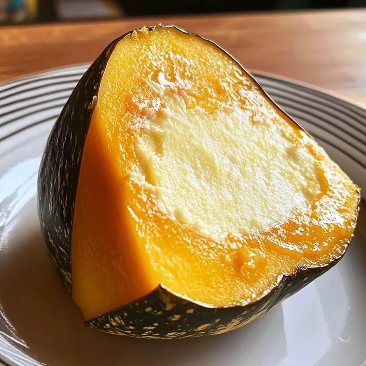 Jump to Recipe Print RecipeAs the leaves begin to turn and the crisp air breezes in, there’s something enchanting about transforming seasonal ingredients into comforting desserts. Enter my Kabocha Coconut Custard—a lovely way to indulge in the earthy sweetness of kabocha squash. This gluten-free and vegetarian custard not only brings a creamy satisfaction to your gathering but also serves as a refreshing alternative to the typical pie on your dessert table. With minimal effort, you’ll create a striking centerpiece that’s sure to impress your guests while pleasing your palate. So, are you ready to warm up your kitchen with this delightful autumn treat? Let’s dive in! Why is Kabocha Coconut Custard a Must-Try? Irresistibly Creamy: This custard boasts a smooth texture that melts in your mouth, elevating your dessert experience beyond traditional options. Seasonal Flavors: Embrace autumn with the rich, earthy notes of kabocha squash, perfectly complemented by creamy coconut milk. Easy to Make: With straightforward steps and minimal prep, even novice chefs can whip up this stunning dish. Versatile Serving Options: Serve it chilled for dessert, or warm as a comforting treat—pair it with a dollop of whipped cream or fresh fruit for a delightful contrast! Crowd-Pleaser: It’s gluten-free and vegetarian, making it a perfect choice for gatherings that cater to diverse dietary preferences. Looking for more inspiring fall desserts? Try these Rhubarb Custard Bars or indulge in a Pineapple Coconut Milkshake! Kabocha Coconut Custard Ingredients • Here’s everything you’ll need to create your delicious Kabocha Coconut Custard! For the Custard Kabocha Squash – This main ingredient provides natural sweetness and a silky texture; choose one that feels heavy with a hard skin. Eggs – They bind the custard for a creamy consistency; no substitutes are recommended here. Coconut Milk – Adds richness and a tropical essence; you can substitute with almond milk for a lighter flavor, but it will taste different. Palm Sugar or Brown Sugar – Deepens the flavor profile with sweetness; granulated sugar can be used, but it may alter the taste slightly. Salt – A small pinch enhances sweetness and flavor; no substitutes needed. Optional Enhancements Vanilla Extract – Adds warmth and depth to the custard; feel free to omit for a more pronounced coconut flavor. This delightful list of ingredients will help you bring the flavors of fall to your table with the creamy, inviting taste of Kabocha Coconut Custard. Enjoy the process and the delicious results! Step‑by‑Step Instructions for Kabocha Coconut Custard Step 1: Preheat the Oven Begin by preheating your oven to 350°F (175°C). This temperature ensures that your Kabocha Coconut Custard bakes evenly while allowing the squash to soften to the perfect consistency. While the oven warms up, gather your ingredients and prepare your workspace for a smooth cooking experience. Step 2: Prepare the Kabocha Squash Carefully cut the top off the kabocha squash and scoop out the seeds, taking care not to pierce the flesh. Rinse the squash under cool water to remove any remaining seeds or stringy bits. The kabocha should feel heavy for its size, signaling ripeness, and once cleaned, place it in a baking dish that can accommodate its shape. Step 3: Whisk the Custard Mixture In a mixing bowl, whisk together the eggs, coconut milk, palm sugar, salt, and optional vanilla extract until everything is well-combined. You’re aiming for a smooth mixture without lumps, as this will ensure a creamy texture in your Kabocha Coconut Custard. Take a moment to enjoy the comforting aroma of coconut! Step 4: Boil Water While whisking the custard mixture, boil water in an electric kettle or on the stove. This hot water will be essential for the steaming process. Once the water reaches a boil, set it aside briefly, as you’ll use it to create a water bath that helps cook the custard gently and evenly in the oven. Step 5: Assemble the Dish Pour your custard mixture into the hollowed kabocha squash, filling it about three-quarters full to allow for any expansion as it cooks. Place the cut lid back on the squash to help trap steam during baking. This step is crucial for creating that silky smooth texture characteristic of Kabocha Coconut Custard. Step 6: Create a Steaming Environment Place the kabocha in the baking dish, then carefully pour the hot water around the base of the squash until it reaches halfway up its sides. Additionally, if you have a lower rack in your oven, place another pan of water there to enhance the steaming effect. This technique prevents the custard from cracking and helps it set beautifully. Step 7: Bake the Custard Slide the baking dish into the preheated oven and bake for 1.5 to 2 hours. Resist the temptation to open the oven door during baking, as this could release steam and disrupt the cooking process. You’ll know it’s ready when the custard appears set and firm but slightly jiggly in the center—a sign of perfect doneness. Step 8: Cool and Chill Once baked, turn off the oven and leave the kabocha custard inside for an additional 30 minutes to cool gradually. This helps develop flavor and texture. Afterward, transfer the kabocha to the refrigerator, allowing it to chill for at least one hour or overnight. Chilling enhances the custard’s taste and makes serving easier. What to Serve with Kabocha Coconut Custard Elevate your autumn dining experience with delightful accompaniments that beautifully harmonize with the creamy, sweet notes of kabocha squash. Whipped Coconut Cream: The airy, rich texture of whipped coconut cream enhances the custard’s decadence, adding a delightful lightness. Fresh Berries: Juicy strawberries or tangy raspberries provide a vibrant contrast to the custard, balancing sweetness with a refreshing burst of acidity. Spiced Nuts: Roasted pecans or walnuts, lightly spiced with cinnamon, add a crunchy contrast that beauti