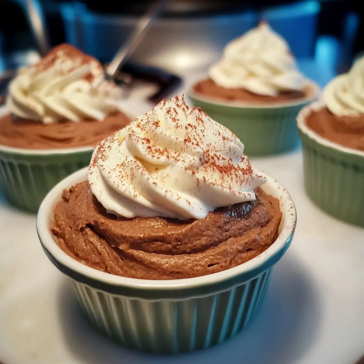 6. Pipe into Ramekins: Transfer the mousse mixture to a piping bag and pipe into ramekins, filling them about three-quarters full.