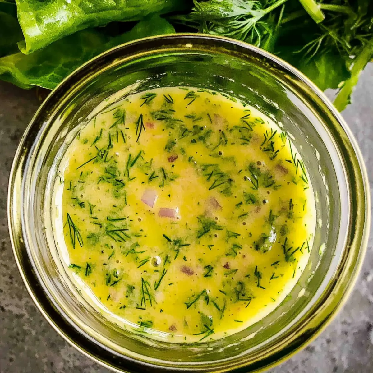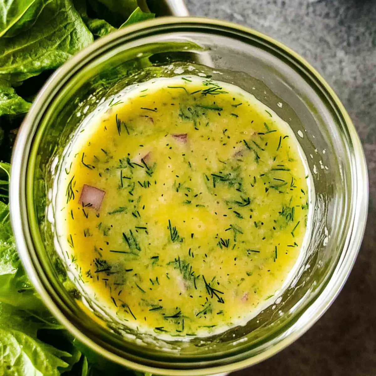 Jump to Recipe Print RecipeAs I stood in my kitchen, the sun filtering through the window, I couldn’t help but smile at the vibrant jar of Lemon Dill Vinaigrette I had just whipped up. The fresh dill paired with zesty lemon creates a dressing that’s not just quick to prepare but also brings an irresistible brightness to any salad. This homemade vinaigrette is an absolute game-changer—gluten-free, dairy-free, and filled with nothing but wholesome ingredients, it’s perfect for anyone looking to elevate their meals without spending all day in the kitchen. Whether drizzled over mixed greens or used as a marinade, this recipe offers a refreshing twist that you’ll turn to again and again. Ready to discover how to brighten up your salads? Let’s dive into the delicious details! Why is this Lemon Dill Vinaigrette special? Fresh Ingredients: Each component is chosen for its vibrant flavor, particularly fresh dill, which elevates the dressing. Quick Preparation: In just minutes, you can whip up this creamy vinaigrette, making it a fantastic option for busy weeknights. Versatile Uses: Perfect on salads, drizzled over grilled veggies, or even as a marinade for chicken, this vinaigrette shines in multiple dishes. Health-Conscious Choice: Gluten-free, dairy-free, and made from wholesome ingredients, it fits seamlessly into various dietary preferences. Crowd-Pleaser: With its zesty flavor profile, even salad skeptics will be asking for seconds! Pair with your favorite greens or drizzle over a hearty grain bowl for an extra zing. Lemon Dill Vinaigrette Ingredients For the Dressing • Extra-Virgin Olive Oil – Adds richness and smoothness; choose a high-quality oil for the best flavor. • Fresh Lemon Juice – Provides acidity and brightness; if fresh lemons aren’t available, substitute with white wine vinegar or rice vinegar. • Shallot (minced) – Adds a mild onion flavor; can use 1 small garlic clove as an alternative for a bolder taste. • Fresh Dill – The star ingredient, imparting a fresh herb flavor; avoid dried dill for best results. • Dijon Mustard – Emulsifies the dressing while contributing a savory note; can substitute with whole-grain mustard if desired. • Honey – Adds a touch of sweetness to balance the acidity; maple syrup can be used as a vegan alternative. • Kosher Salt – Enhances flavors; adjust to taste. • Black Pepper – For seasoning; add according to personal preference. With this Lemon Dill Vinaigrette, you’ll have everything you need to create a bright and flavorful dressing that will elevate your salads effortlessly! Step‑by‑Step Instructions for Lemon Dill Vinaigrette Step 1: Combine Base Ingredients In a mixing bowl, combine the minced shallot, fresh lemon juice, Dijon mustard, honey, and a pinch of kosher salt. Use a whisk to mix these ingredients thoroughly for about 30 seconds, until well blended and the shallots are slightly softened. This step sets the flavorful foundation for your Lemon Dill Vinaigrette. Step 2: Whisk Together Continue whisking the mixture vigorously for another 30 seconds until it starts to foam slightly. This aeration helps flavor meld together, creating a harmonious base. The color will become slightly lighter, indicating that you’re ready to emulsify the dressing for a creamy consistency later on. Step 3: Add the Olive Oil Gradually drizzle in the extra-virgin olive oil while continuously whisking the mixture. Aim for a steady stream over about 1-2 minutes, which is crucial for emulsification. The dressing will visibly thicken and take on a creamy texture, reflecting a well-made Lemon Dill Vinaigrette perfect for coating greens. Step 4: Incorporate Fresh Dill Once your dressing has emulsified, stir in the freshly chopped dill. Use a spatula or spoon to fold it gently into the vinaigrette, ensuring the dill is evenly distributed. This fragrant herb is what makes the Lemon Dill Vinaigrette stand out, adding a burst of freshness and flavor. Step 5: Adjust Seasoning Taste your Lemon Dill Vinaigrette and adjust the seasoning by adding fresh black pepper or more salt as needed. Stir thoroughly for another 10 seconds. This is your chance to make it just right for your palate, balancing the tanginess with your preferred level of seasoning. Step 6: Store or Serve Transfer your Lemon Dill Vinaigrette into a glass jar or airtight container. If not using immediately, store it in the refrigerator for up to five days. When ready to serve, give it a good shake or stir to recombine the ingredients, ensuring every drop is as flavorful as freshly made. What to Serve with Fresh Lemon Dill Vinaigrette Elevate your dining experience by pairing this zesty vinaigrette with complementary dishes that enhance its bright flavor. Mixed Green Salad: A classic choice, lightly dressed greens allow the vinaigrette’s zesty notes to shine through. Top with avocado for creaminess! Grilled Vegetables: Drizzle over charred asparagus or zucchini; the vinaigrette’s acidity balances the smokiness beautifully. A match made in heaven! Quinoa Salad: Toss cooked quinoa with cherry tomatoes and cucumbers, letting the vinaigrette envelop each grain. It adds a refreshing pop! Roasted Chicken: Use the vinaigrette as a marinade or drizzle over baked chicken for an aromatic boost that harmonizes with the dish’s richness. Seafood Dishes: Complement grilled salmon or shrimp with a light splash of vinaigrette; the lemon complements the seafood perfectly. Pasta Salad: Mix with pasta, olives, and sun-dried tomatoes for a flavorful twist. The vinaigrette keeps the dish lively and light! Cheese Platter: Serve alongside a cheese board featuring goat cheese or feta; the sharpness of the vinaigrette enhances creaminess wonderfully. Fruit Salad: Incorporate a sweet twist by drizzling over berries or melon; the honey notes in the vinaigrette amplify the fruits’ sweetness. Sparkling Water: For a refreshing drink, pair with sparkling water infused with lemon or m