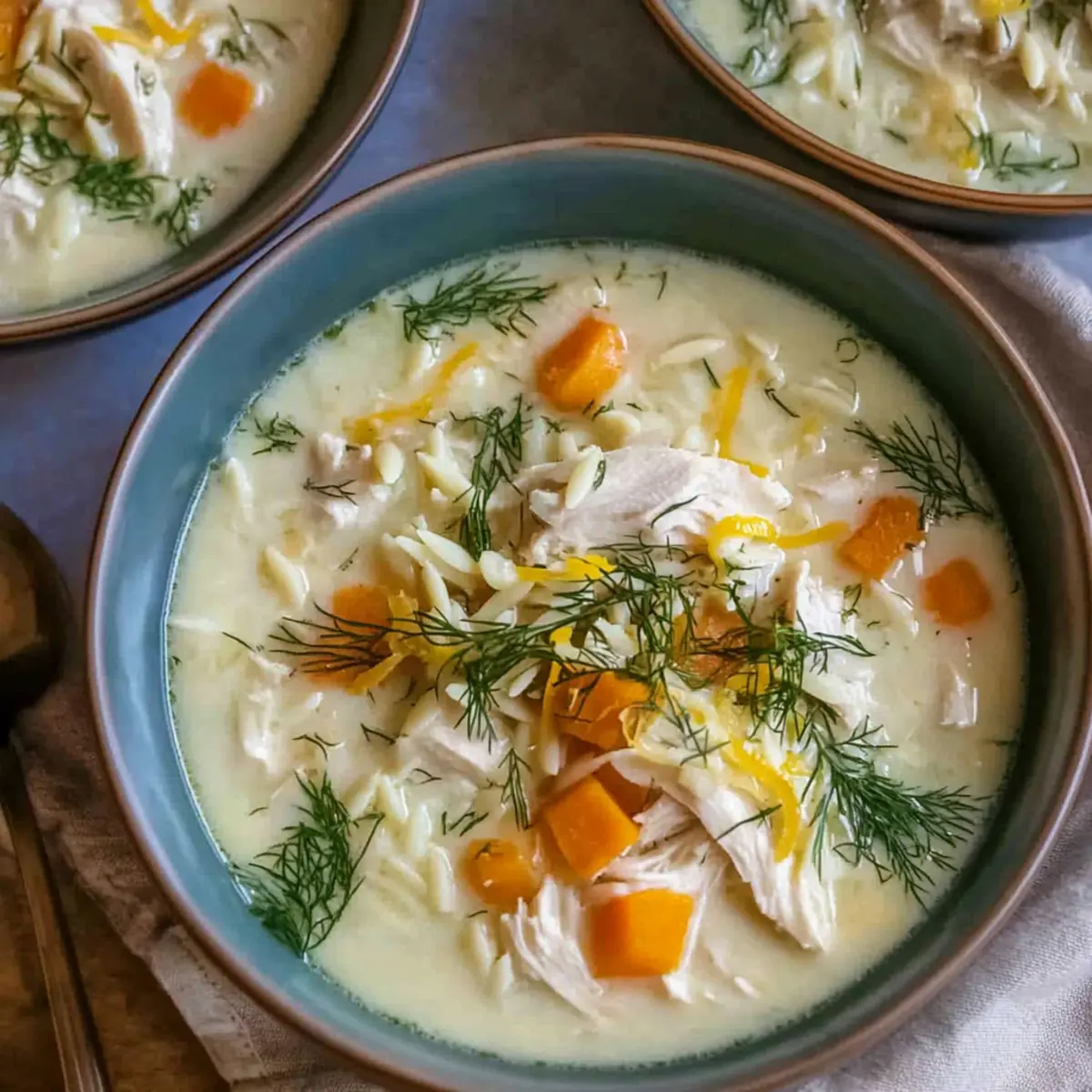 Jump to Recipe Print RecipeAs I chopped fresh dill and watched the golden broth simmer, I couldn’t help but smile—there’s something magical about a pot of Lemon Orzo Chicken Soup filling the kitchen with its inviting aroma. This comforting soup blends the zesty brightness of lemon with creamy richness, all while being a breeze to whip up in just over 30 minutes. Perfect for those evenings when time is tight but you crave a hearty, home-cooked meal, this dish not only warms the belly but uplifts the spirit, too. It’s effortlessly delicious, making it a perfect choice for both busy weeknights and cozy family gatherings. Ready to dive into a bowl of comfort? Let’s get cooking! Why is this soup a crowd-pleaser? Comforting warmth: The Lemon Orzo Chicken Soup embraces your taste buds with its rich, creamy texture and bright citrus notes, making it perfect for chilly nights. Quick and easy: Ready in just over 30 minutes, it’s ideal for busy weeknights when you want something satisfying without the fuss. Versatile ingredients: With the option to use shredded rotisserie chicken or gluten-free pasta, this soup caters to various dietary preferences and can be customized easily. Nutrient-packed: Packed with vibrant vegetables and lean protein, it’s not only delicious but also a nutritious meal choice for the whole family, much like our beloved Hawaiian Chicken Salad. Unforgettable flavor: The aromatic blend of fresh dill and zesty lemon brightens the broth, turning every spoonful into a delightful experience. Perfect pairing: Enjoy it with warm, crusty bread or delightful Apple Cheddar Scones for a complete, comforting meal that everyone will love! Lemon Orzo Chicken Soup Ingredients For the Base • Butter – Provides richness and flavor; olive oil can be a dairy-free substitute. • Carrots – Adds natural sweetness; dice uniformly for even cooking. • Celery – Contributes a savory depth; adjust amount based on your preference. • Onion – Enhances flavor depth; yellow or white onion works best. • Garlic – Adds aromatic flavor; fresh is preferable, but 1/8 tsp of garlic powder works in a pinch. • Salt & Pepper – Essential for seasoning; tweak based on broth saltiness. For the Broth • Chicken Stock – Forms the base; homemade is best for flavor, but vegetable stock can lighten it. • Dried Oregano – Adds herbal notes; Italian seasoning can be a good substitute. • Celery Seed – Provides a unique flavor boost; can be omitted if unavailable. For the Protein and Pasta • Boneless Skinless Chicken Breasts – Main protein; can swap for shredded rotisserie chicken for quicker prep. • Dried Orzo Pasta – Adds substance to the soup; gluten-free options are available. For the Flavor • Lemon Zest – Brightens the soup; organic lemons are best for zesting. • Fresh Lemon Juice – Elevates the citrus profile; add toward the end for maximum freshness. • Whole Milk – Adds creaminess; for a dairy-free option, use plant-based milk. • Light Cream – Enhances richness; replace with more whole milk if desired. • Fresh Dill – Essential for authentic flavor; avoid dried for the best taste. This delightful Lemon Orzo Chicken Soup is sure to become a family favorite, merging freshness and comfort in every bowl! Step‑by‑Step Instructions for Lemon Orzo Chicken Soup Step 1: Sauté Vegetables In a large pot over medium heat, melt 2 tablespoons of butter. Once melted, add 1 cup of diced carrots, 1 cup of diced celery, and 1 cup of chopped onion, stirring occasionally until softened and fragrant, about 5-7 minutes. Add 3 minced garlic cloves, cooking for an additional minute until aromatic. Step 2: Add Broth and Chicken Next, season the sautéed vegetables with salt and pepper to taste. Pour in 8 cups of chicken stock, followed by 1 teaspoon of dried oregano and ½ teaspoon of celery seed. Add 1 pound of boneless skinless chicken breasts to the pot. Bring the mixture to a gentle boil over medium-high heat, then reduce to medium-low and cover. Step 3: Simmer Allow the chicken to simmer in the broth for 20 minutes, or until fully cooked and the internal temperature reaches 165°F. Once cooked, carefully remove the chicken from the pot and let it cool for a few minutes. Use two forks to shred the chicken into bite-sized pieces, then set aside. Step 4: Cook Orzo With the shredded chicken set aside, bring the soup back to a boil over medium-high heat. Stir in 1 cup of dried orzo pasta, cooking for 8-10 minutes until the orzo is al dente. Stir occasionally to prevent sticking, and keep an eye on the texture to avoid overcooking. Step 5: Combine Ingredients After the orzo is cooked, return the shredded chicken to the pot. Add the zest of 1 lemon, the juice of 1 lemon, 1 cup of whole milk, and ½ cup of light cream. Stir in ¼ cup of freshly chopped dill, heating through for another 2-3 minutes while tasting for seasoning. Adjust with salt and pepper if needed before serving. Expert Tips for Lemon Orzo Chicken Soup Fresh Ingredients: Always use fresh dill and high-quality chicken stock for a vibrant flavor. Dried dill can dull the taste significantly. Orzo Monitoring: Keep an eye on the orzo while it cooks to prevent it from becoming mushy. Taste for doneness around the 8-minute mark. Creamy Finish: After adding dairy, heat gently without boiling to prevent curdling. This ensures your soup remains smooth and creamy. Faster Prep: For quicker preparation, use shredded rotisserie chicken instead of raw. It saves time without sacrificing flavor. Freezing Tip: If you plan to freeze leftovers, omit the orzo before freezing. Add fresh orzo during reheating to maintain the best texture. These tips will help you create the perfect Lemon Orzo Chicken Soup that comforts and delights! What to Serve with Lemon Orzo Chicken Soup Cozy up your dinner table with delightful pairings that elevate your soup experience! Warm, Crusty Bread: Perfect for dipping into the creamy broth, the crusty