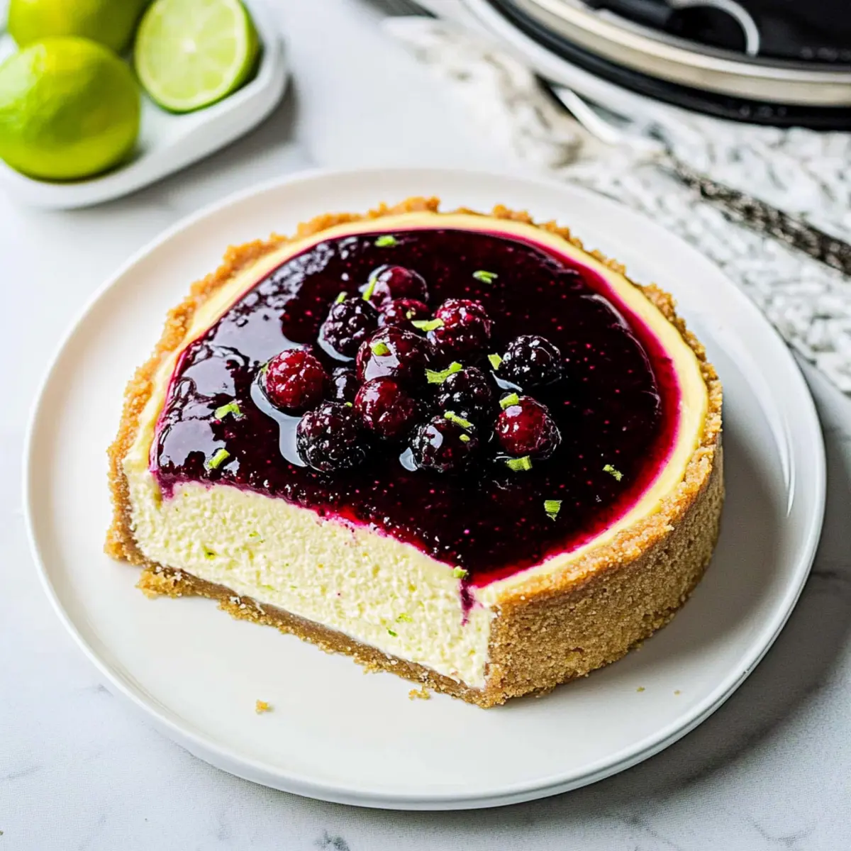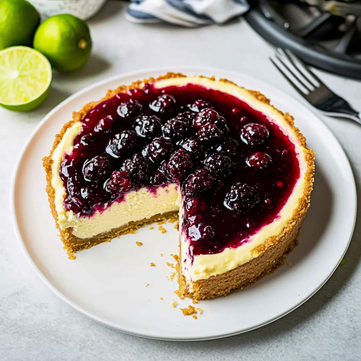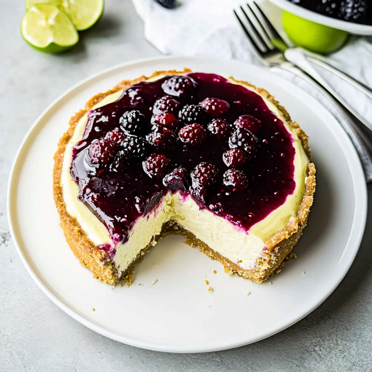 Jump to Recipe Print RecipeThe aroma of freshness hits you like a warm embrace the moment you step into the kitchen, ready to whip up this Creamy Lime Cheesecake with Triple Berry Sauce. With a tart kick from the zesty lime and a luscious, velvety texture, this dessert is pure magic on a plate. Not only is it an incredible indulgence for your taste buds, but it’s also surprisingly simple to prepare, making it perfect for both seasoned home-chefs and those just starting out. Plus, it’s a show-stopper for gatherings and a delightful way to satisfy your sweet cravings any day of the week. Are you ready to transform your dessert game? Why is Lime Cheesecake Irresistible? Freshness: The vibrant lime flavor paired with a rich, creamy filling delivers a refreshing burst in every bite. Crowd-Pleaser: This dessert is perfect for gatherings, ensuring everyone will be asking for seconds after one taste of that luscious berry topping. Effortless Elegance: Impress guests without the stress—this cheesecake comes together smoothly, even for baking beginners. Versatile Variations: Whether you swap in mango for a tropical twist or use a lemon zest for a different citrus flair, the options are endless. Comfort Food: Enjoy a slice while watching your favorite movie or bring it to a potluck; it’s the ideal comfort food for any occasion. With its delicious flavor combination and creamy texture, your dessert table will become the talk of the town! Lime Cheesecake with Triple Berry Sauce Ingredients For the Crust Graham Cracker Crumbs – Provides structure and crunch; use fine ground crumbs for a smoother base. Sugar (for crust) – Sweetens the crust to complement the tangy filling; can be replaced with coconut sugar for a caramel-like flavor. Butter (melted) – Acts as a binding agent for the crumb mixture; can substitute with coconut oil for a dairy-free option. Pinch of Salt – Enhances the flavors of the crust. For the Cheesecake Filling Cream Cheese – Main component of cheesecake, offering creaminess and a rich texture; ensure it’s softened for easy mixing. Sour Cream – Adds tanginess and richness; may substitute with Greek yogurt for a tangier profile. Eggs – Provide structure and moisture to the cheesecake; let reach room temperature for even mixing. White Sugar (for filling) – Adds sweetness to balance the tart lime flavor. Lime Zest – Intensifies lime flavor; fresh zest is recommended for the best results. Lime Juice – Delivers tartness and acidity; use fresh limes for optimal flavor. Corn Starch – Helps stabilize the filling, preventing cracks; can substitute with flour for a similar effect. Vanilla Extract – Enhances overall flavor profile beautifully. For the Water Bath Boiling Water – Used to create a moist baking environment, helping to prevent cracking during baking. For the Berry Sauce Triple Berries (Frozen) – Blueberries, raspberries, and blackberries create a fresh and sweet sauce; may use fresh berries when available. Sugar (for berry sauce) – Sweetens the sauce; feel free to adjust based on berry tartness. Lime Zest (for sauce) – Brightens the berry sauce flavor; use fresh zest for the best result. With these ingredients, you’ll be well on your way to creating a delicious Lime Cheesecake with Triple Berry Sauce, bursting with flavors and creamy goodness that will elevate your dessert experience! Step‑by‑Step Instructions for Lime Cheesecake with Triple Berry Sauce Step 1: Prepare the Crust Preheat your oven to 300°F (150°C). In a mixing bowl, combine graham cracker crumbs, sugar, melted butter, and a pinch of salt. Use a fork to mix until combined. Press this mixture firmly into the bottom and slightly up the sides of a 9-inch springform pan. Bake for 10 minutes until lightly golden, then allow to cool completely before adding the filling. Step 2: Make Cheesecake Filling In a large mixing bowl, use a hand mixer to beat the softened cream cheese until smooth and creamy, about 2-3 minutes. Gradually add in the sour cream, mixing until fully incorporated. Then, add the eggs one at a time, mixing on low speed to ensure a smooth batter. Finally, mix in sugar, lime zest, lime juice, corn starch, and vanilla extract, being careful to not overmix. Step 3: Setup for Baking Pour the cheesecake filling into the cooled crust, smoothing the top with a spatula. Prepare a water bath by placing a 9×13-inch pan filled with boiling water on the bottom rack of your oven. Carefully place the cheesecake on the upper rack. Bake for 50-60 minutes until the edges are fully set but the center still has a slight jiggle. Step 4: Cooling Process Once baked, turn off the oven and crack the door open slightly. Allow the cheesecake to rest in the cooling oven for 20 minutes to gently cool down. After that, remove it from the oven and let it cool to room temperature. Finally, refrigerate the cheesecake for at least 2 hours, or preferably overnight, to allow it to firm up. Step 5: Berry Sauce In a medium saucepan over medium heat, combine the frozen triple berries, sugar, and lime zest. Cook, stirring gently, until the berries break down and the mixture begins to thicken, about 5-7 minutes. If using flour, add it early; for ultra gel, add it later. Allow the sauce to cool before using, so it is ready to pour over the chilled cheesecake. Make Ahead Options These Creamy Lime Cheesecake with Triple Berry Sauce is perfect for busy cooks looking to save time! You can prepare the cheesecake filling up to 24 hours in advance; simply cover the mixture tightly in the refrigerator to keep it fresh. Additionally, the crust can be pre-baked and stored in the fridge for up to 3 days without losing quality, preserving its crunchy texture. When you’re ready to serve, pour the filling into the cooled crust and bake as instructed. Meanwhile, the berry sauce can be made a couple of days before as well; just store it in an airtight container and keep it chilled. This way, you’ll have a deli