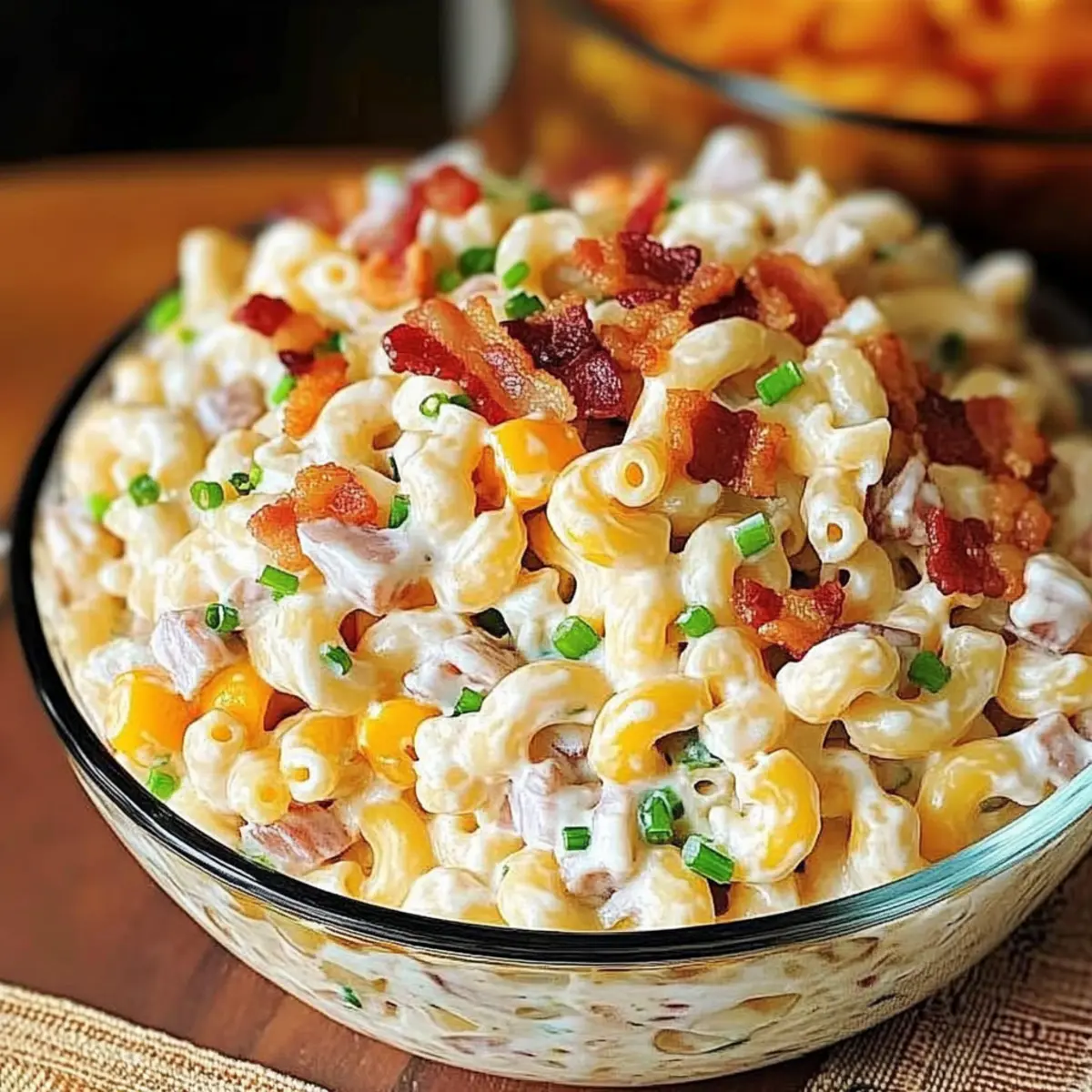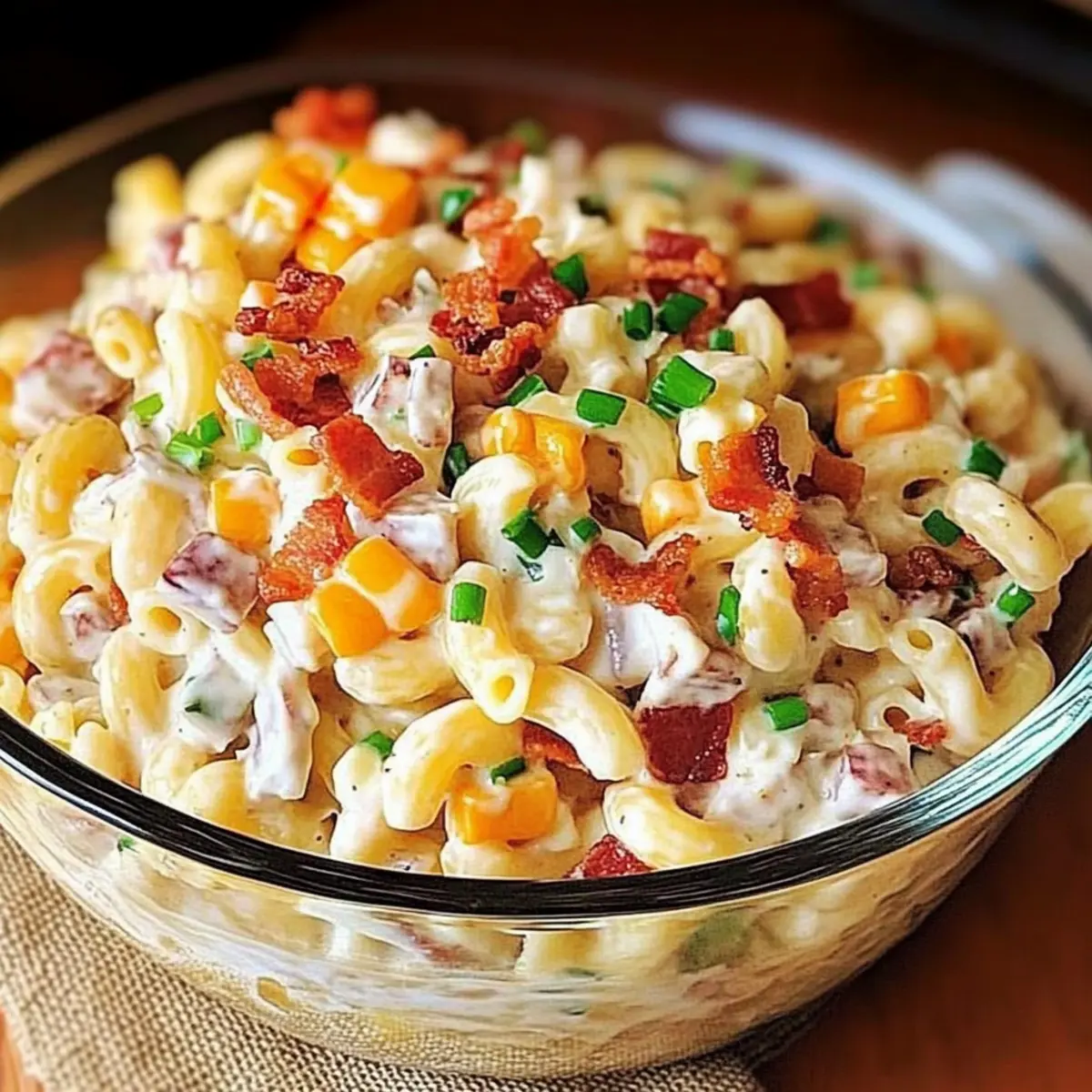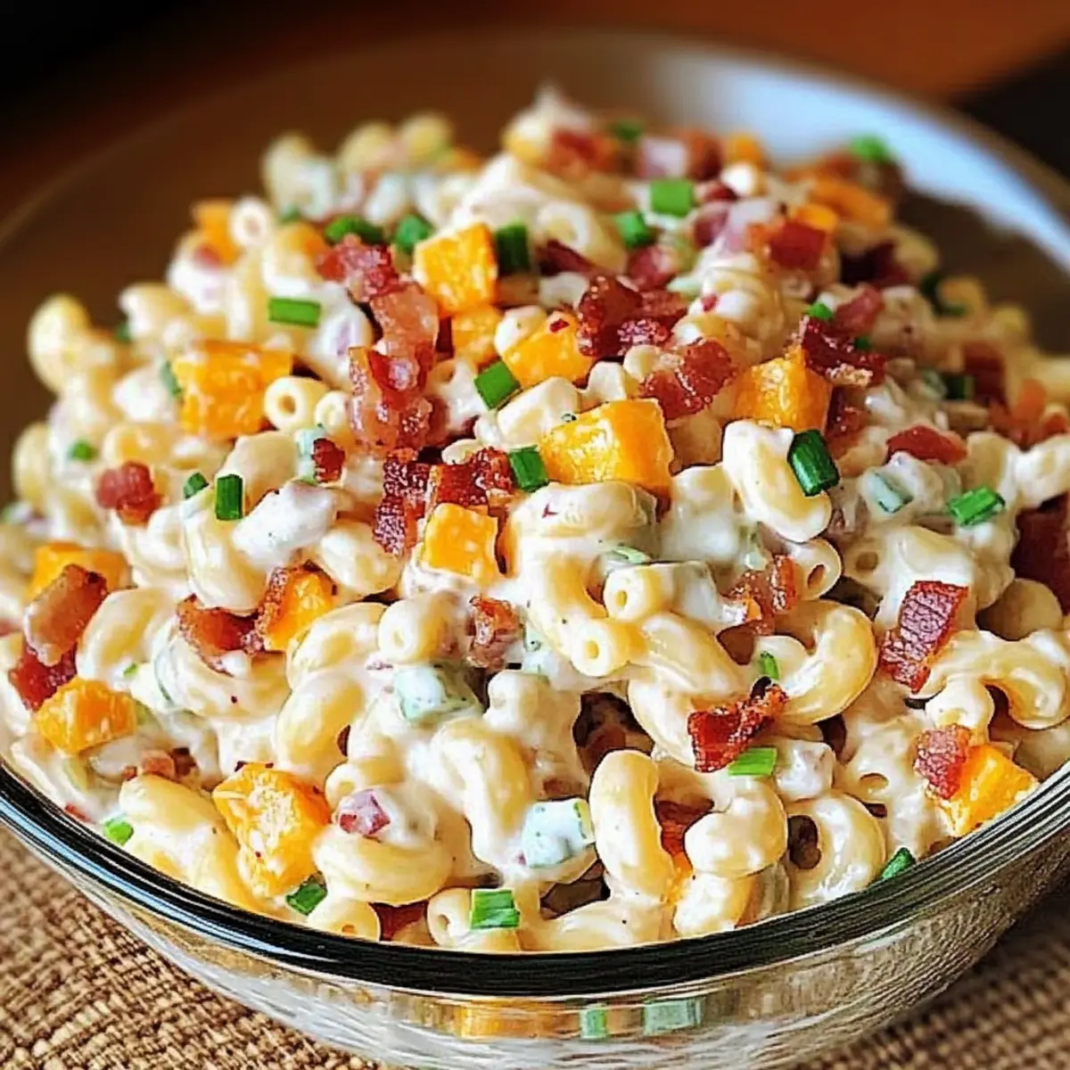 Jump to Recipe Print Recipe“Have you ever found yourself rummaging through half-empty shelves, eager to whip up something that feels like a warm hug in a bowl?” That’s exactly how this Loaded Baked Potato Macaroni Salad came to life! A delicious marriage of creamy, tangy dressing and the comforting goodness of macaroni makes it an instant crowd-pleaser for summer gatherings. With just 35 minutes of prep time, this dish not only satisfies your cravings but also saves you from dull takeout options. Plus, it’s budget-friendly and packed with flavors, making it the perfect addition to any potluck table. Imagine the smiles as everyone digs in! So, want to learn how to create this comforting twist on a classic today? Why is this salad a must-try? Creamy Delight: This Loaded Baked Potato Macaroni Salad is a creamy spectacle that whisks together rich sour cream and mayonnaise for a flavor explosion. Quick and Easy: With only 35 minutes from start to finish, it’s perfect for last-minute potlucks or summer gatherings, leaving you with more time to enjoy the party. Crowd-Pleasing Flavor: The combination of savory bacon bits, tangy cheese, and fresh chives creates a symphony of tastes that everyone will love. Versatile Base: Feel free to get creative by swapping ingredients, like using cheddar or incorporating fresh veggies for a personal touch. Budget-Friendly: This recipe is not only economical but also utilizes pantry staples, making it a delightful choice that won’t break the bank. Loaded Baked Potato Macaroni Salad Ingredients For the Pasta • Macaroni Pasta – Use elbow macaroni for the best texture and bite in your Loaded Baked Potato Macaroni Salad. For the Dressing • Sour Cream – Brings creaminess and tang; swap with Greek yogurt for a lighter version. • Mayonnaise – Adds richness; use light mayo to cut calories without sacrificing flavor. For the Salad Mix • Shredded Cheese (Cheddar preferred) – Enhances flavor; feel free to use your favorite cheese for a personal twist. • Bacon Bits – Provides a savory crunch; try plant-based bacon if you’re looking for a vegetarian option. • Chives – Offers a fresh, mild onion flavor; green onions can work well as a substitute. Seasoning • Salt & Pepper – Essential for enhancing the overall flavor; adjust to your personal taste preference. Step‑by‑Step Instructions for Loaded Baked Potato Macaroni Salad Step 1: Cook the Pasta Bring a large pot of salted water to a rolling boil over high heat. Once boiling, add elbow macaroni and cook according to package instructions until al dente, about 8-10 minutes. Drain the pasta in a colander and rinse it under cold water until cool to the touch, about 1-2 minutes, to stop the cooking process and prevent sticking. Step 2: Prepare the Dressing In a medium bowl, combine 1 cup of sour cream and ½ cup of mayonnaise. To brighten the flavors, stir in a tablespoon of lemon juice or vinegar. Whisk until the mixture is smooth and creamy, ensuring there are no lumps. Taste and season with a pinch of salt and pepper, adjusting to your preference for the perfect creamy dressing for your Loaded Baked Potato Macaroni Salad. Step 3: Mix the Ingredients In a large mixing bowl, combine the cooled macaroni, 1 cup of shredded cheddar cheese, and ½ cup of bacon bits. Add ¼ cup of finely chopped chives for a fresh touch. Gently stir all the dry ingredients together until they are evenly distributed, allowing every bite to be filled with flavor and texture in your salad. Step 4: Combine Dressing with Pasta Mix Pour the creamy dressing over the macaroni mixture, ensuring every piece of pasta is thoroughly coated. Using a spatula, gently fold the dressing into the salad, mixing until all ingredients are well combined and the pasta is creamy, creating a beautiful Loaded Baked Potato Macaroni Salad to serve. Step 5: Chill the Salad Cover the bowl with plastic wrap or a lid and place the salad in the refrigerator. Chill for at least 30 minutes before serving to allow the flavors to meld together beautifully. The cold temperature enhances the creamy texture and taste, ensuring a refreshing dish perfect for summer gatherings. Expert Tips for Loaded Baked Potato Macaroni Salad • Timing is Key: Allow your Loaded Baked Potato Macaroni Salad to chill for at least 30 minutes. This step enhances flavor and gives the ingredients time to meld beautifully. • Fresh Ingredients: Use freshly chopped chives rather than dried for a burst of flavor. Fresh herbs uplift the dish and make it more vibrant. • Customize Dressings: Want a lighter version? Substitute sour cream with Greek yogurt in the dressing, keeping the creaminess while reducing calories. • Avoid Overcooking: Make sure to cook the elbow macaroni al dente. Overcooked pasta will become mushy in the salad, losing that appealing bite. • Batch Prep: This salad is perfect for make-ahead meals. Prepare it a day in advance and let the flavors fully develop for a truly delicious experience. Loaded Baked Potato Macaroni Salad Customizations Feel the freedom to make this Loaded Baked Potato Macaroni Salad your own masterpiece with these simple, delightful variations! Gluten-Free: Substitute elbow macaroni for gluten-free pasta to accommodate dietary needs while keeping the creamy textures. Creamier Dressing: For an even richer taste, blend in a dollop of cream cheese to the dressing and whisk until smooth. The added creaminess elevates the entire salad experience! Heavenly Veggies: Toss in diced bell peppers or ripe cherry tomatoes to boost freshness and vibrant color. They not only add texture but also a burst of juicy flavor with each bite. Sweet Touch: Incorporate a handful of sweet peas or corn into the mix for a surprising hint of sweetness that beautifully contrasts the savory elements. Spicy Kick: For those who crave heat, sprinkle in some diced jalapeños or a few dashes of your favorite hot sauce to elevate the excitement. The right amount o