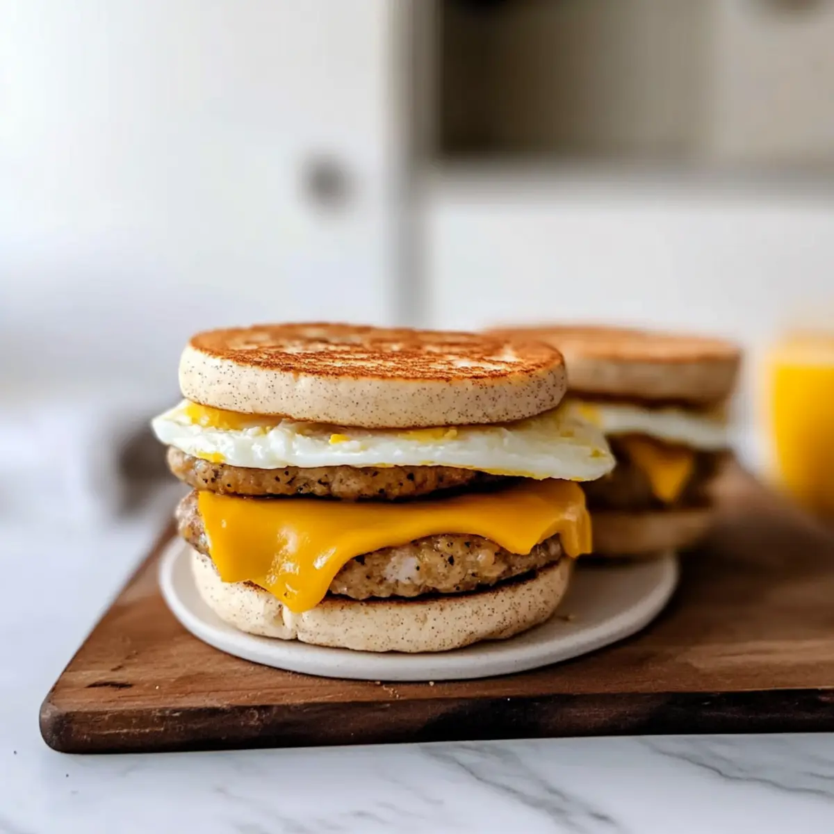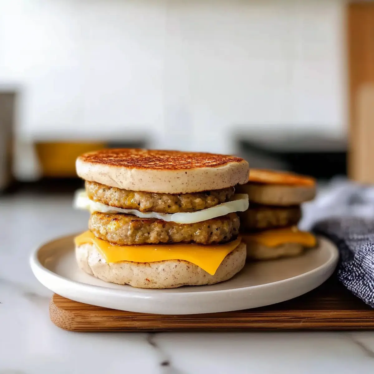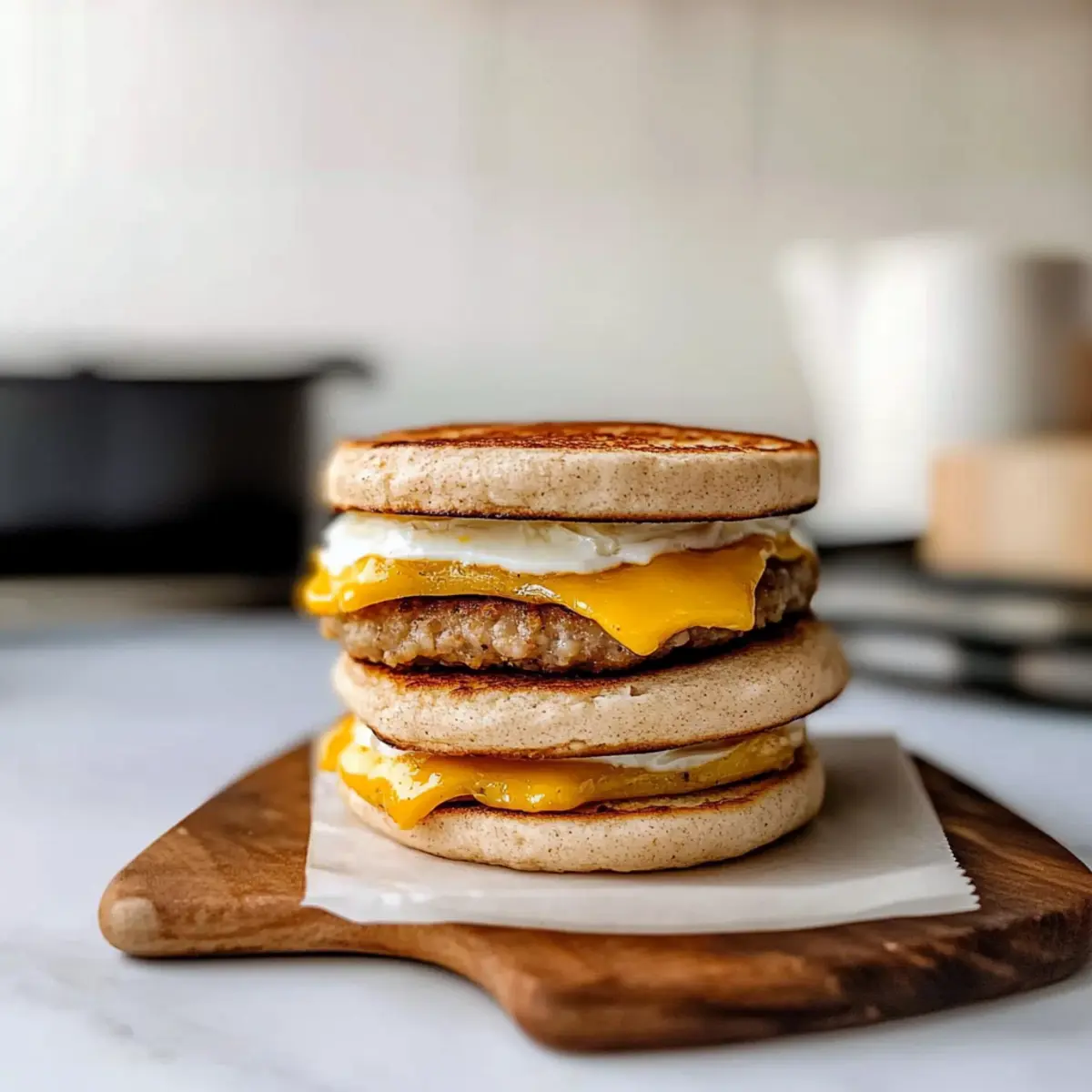 Jump to Recipe Print RecipeAs dawn breaks and the kitchen fills with the warmth of a new day, the thought of making something delicious yet effortless dances in my mind. Enter these Healthy Make-Ahead Breakfast Sandwiches—a morning lifesaver that’s not just nutritious but also irresistibly customizable! With just 20 minutes of prep, you can whip up a batch of these freezer-friendly delights, ready to rescue you from those chaotic mornings. Picture biting into a warm sandwich filled with fluffy eggs, savory sausage, and melty cheese—all while knowing you’ve got a wholesome breakfast waiting for you each day. Whether you’re looking for gluten-free options or a low-calorie fix, these sandwiches adapt to your culinary whims. Curious about how to make your mornings smoother with a simple recipe that fits your lifestyle? Let’s dive in! Why Make Ahead Breakfast Sandwiches? Convenience: These sandwiches are your ultimate breakfast solution, designed for busy mornings when time is scarce. Customizable: With endless variations, from turkey sausage to vegetarian options, you can create a sandwich that fits your personal taste and dietary needs, just like my Skillet Breakfast Hash. Freezer-Friendly: Batch prepare and freeze these sandwiches for a quick meal anytime—simply reheat and enjoy! Nutrient-Rich: Packed with protein and lower in calories, they’re a guilt-free pleasure that keeps you energized throughout the day. Crowd-Pleaser: Perfect for the whole family, these sandwiches are sure to satisfy everyone’s cravings while saving you prep time in the kitchen. Ready to transform your mornings? Your homemade breakfast adventure begins here! Make Ahead Breakfast Sandwiches Ingredients For the Eggs • Liquid Egg Whites – Provides protein without excess calories; feel free to swap in whole eggs if you like a richer flavor. For the Protein • Frozen Chicken or Turkey Sausage Patties – A convenient protein source; substitute with vegetarian sausage for a healthier, meat-free variant. For the Base • English Muffins – The ideal sandwich base; opt for gluten-free muffins for a dietary-friendly option or choose light versions to cut calories. For the Cheese • American Cheese – Adds creaminess and flavor; replace with sharp cheddar or pepper jack for an extra kick! For the Seasoning • Everything Bagel Seasoning – Elevates the flavor profile; feel free to experiment with your favorite seasoning blend for a personal touch. These Make Ahead Breakfast Sandwiches are not just delicious but also surprisingly easy to whip up, making them a fantastic start to your day! Step‑by‑Step Instructions for Make Ahead Breakfast Sandwiches Step 1: Preheat the Oven Begin by preheating your oven to 350°F (175°C). This creates the perfect environment for baking your egg portions. While the oven heats up, gather your donut pan and spray it with cooking spray to prevent sticking. This step is crucial to ensure your eggs release easily after baking, so take a moment to make sure it’s well-coated. Step 2: Prepare the Eggs Next, pour 1/4 cup of liquid egg whites into each opening of your prepared donut pan. Sprinkle with Everything Bagel seasoning for that extra flavor boost. Place the donut pan in the oven and bake for about 15 minutes, or until the eggs are firm and set. You’ll know they are done when a gentle shake of the pan shows no liquid movement. Step 3: Cook the Sausage While the eggs are baking, heat your frozen chicken or turkey sausage patties in a skillet over medium heat. Cook for roughly 5–7 minutes, turning occasionally until golden brown and heated through. If you prefer extra flavor, you can also grill or bake the patties in the oven while waiting for the eggs to finish, maximizing your prep efficiency. Step 4: Assemble the Sandwiches Once the eggs are ready and the sausage is cooked, split your English muffins in half. On the bottom half of each muffin, place a sausage patty followed by a fluffy egg circle and a slice of cheese. The warm sausage will begin to melt the cheese, creating a deliciously gooey effect. Step 5: Cool and Wrap Allow the assembled Make Ahead Breakfast Sandwiches to cool completely before wrapping. This step is essential to prevent sogginess during freezing. Wrap each sandwich tightly in aluminum foil and place them in freezer-safe bags for optimal storage. Label the bags with dates, so you’ll know when to enjoy them next! Step 6: Reheat and Serve When you’re ready for a quick breakfast, simply unwrap a sandwich and microwave it for 45 seconds until heated through. For that perfect crispy finish, pop it into a toaster oven for a couple of minutes. This final step ensures your breakfast feels just as fresh and satisfying as the day you made them! Make Ahead Breakfast Sandwiches Variations Feel free to explore these delightful twists that will elevate your breakfast experience and keep your taste buds guessing! Vegetarian Delight: Use vegetarian sausage patties or even grilled Portobello mushrooms for a savory meat-free option. The earthy flavors will complement your eggs beautifully. Gluten-Free Swap: Opt for gluten-free English muffins to cater to dietary needs. You won’t miss the regular ones in this delicious sandwich! Cheese Experiment: Swap American cheese for sharp cheddar or gooey mozzarella to add a distinct flavor. Each cheese brings its own character to the sandwich! Spicy Kick: Add sliced jalapeños or a drizzle of hot sauce for those who like a little heat in their mornings. It’s a fantastic way to wake up those taste buds! Herb Infusion: Mix fresh herbs like spinach, basil, or arugula into the eggs before baking for an added boost of nutrition and flavor. The fresh greens brighten the dish in every bite. Mini Sandwiches: Use slider buns instead of English muffins for a fun, bite-sized version of these sandwiches. They make for a lovely appetizer or a crowd-pleasing breakfast tray! Sweet Touch: Spread a light layer of avocado o