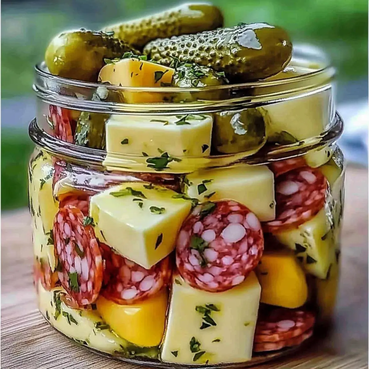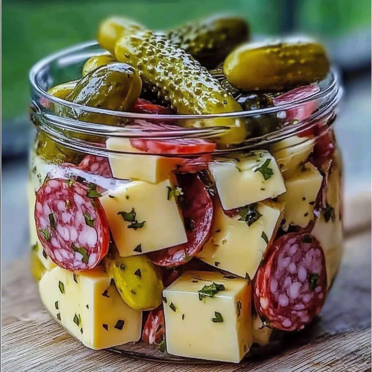 Jump to Recipe Print RecipeAs I opened my fridge this afternoon, a delightful medley of colors caught my eye—creamy Havarti, zesty salami, and vibrant pickles, all waiting to be transformed into a show-stopping appetizer. This Marinated Cheese Appetizer with Salami & Pickles is my go-to recipe for easy entertaining, offering a quick prep time of just 10 minutes! Whether you’re hosting friends or simply craving a classy snack, this crowd-pleaser packs a flavorful punch while being naturally gluten-free and low-carb. The best part? You can prepare it ahead of time, letting those flavors mingle beautifully in the fridge. Are you ready to elevate your next gathering with this simple yet impressive dish? Why is this Appetizer a Must-Make? Deliciously Easy: Featuring just a few ingredients, this Marinated Cheese Appetizer with Salami & Pickles comes together in a mere 10 minutes, making it perfect for kitchen novices and busy chefs alike. Flavor Explosion: The combination of creamy Havarti, zesty salami, and tangy pickles creates a vibrant dish that will wow your guests. Pair it with crusty bread or crackers for the ultimate charcuterie experience! Make-Ahead Magic: This appetizer gets better as it marinates. Prepare it a day in advance for even bolder flavors, keeping your stress levels low on the day of your gathering. Diet-Friendly: Naturally gluten-free and low-carb, it caters to a variety of dietary needs. Looking for more delicious options? Check out my Cottage Cheese Raspberry recipe for a sweet twist, or try my Dynamite Shrimp Appetizer for a savory alternative. Versatile Customizations: Mix and match with different cheeses or herbs to create a unique flavor profile that suits your palate perfectly! Marinated Cheese Appetizer with Salami & Pickles Ingredients For the Appetizer • Havarti Cheese – A rich and creamy base; feel free to substitute with Gouda or mozzarella for different flavors. • Salami – Adds savory, zesty notes; consider using prosciutto or pepperoni for a delightful twist. • Pickles – They contribute a crunchy, tangy element; choose dill or sweet pickles based on your taste preference. For the Marinade • Garlic Vinaigrette – This primary marinade infuses the dish with flavor; opt for store-bought garlic dressing or make your own with olive oil and minced garlic. • Fresh Basil – A fresh and aromatic touch; feel free to swap in parsley or thyme for an herbaceous kick. Step‑by‑Step Instructions for Marinated Cheese Appetizer with Salami & Pickles Step 1: Prep the Ingredients Begin by cutting the creamy Havarti cheese into 1/2-inch cubes, giving you an inviting, bite-sized base for the Marinated Cheese Appetizer with Salami & Pickles. Next, slice the zesty salami and tangy pickles into equally sized pieces, ensuring that every component is easy to pick up and enjoy. Arrange your ingredients on a clean cutting board for an organized workspace. Step 2: Make the Marinade In a medium bowl, combine the garlic vinaigrette with freshly chopped basil, stirring well to ensure an even distribution of flavors. This marinade will infuse your cheese, salami, and pickles with aromatic goodness. As you mix, take in the delightful aromas that will soon envelop your Marinated Cheese Appetizer, making it all the more enticing. Step 3: Combine Ingredients Layer the cheese cubes, salami pieces, and pickles in a glass jar or an airtight container, creating a visually appealing arrangement. Begin with a layer of cheese, followed by salami and pickles, repeating until all ingredients are neatly stacked. This layering will ensure that each bite of the Marinated Cheese Appetizer with Salami & Pickles is bursting with flavor and texture. Step 4: Add Marinade Carefully pour the garlic vinaigrette mixture over your layered ingredients, making sure everything is well-coated. Use a spoon to gently press down on the layers if necessary, helping the marinade seep into the cheese and pickles. This essential step enhances the flavors beautifully, ensuring each ingredient in your Marinated Cheese Appetizer receives the marinades’ delightful touch. Step 5: Marinate Seal the jar or container tightly and refrigerate for at least 30 minutes, though letting it sit for up to 7 days will allow the flavors to meld even more. As it marinates, the textures will soften, and the rich flavors of the Marinated Cheese Appetizer with Salami & Pickles will become harmonious. Remember to take it out of the fridge and allow it to come to room temperature for optimal taste before serving. Step 6: Serve When ready to serve, remove the Marinated Cheese Appetizer from the refrigerator and let it sit at room temperature for 30-45 minutes. This enhances the flavors and brings out the creaminess of the cheese while invigorating the other ingredients. Transfer your creation to a beautiful serving platter, inviting friends and family to savor each delectable bite! How to Store and Freeze Marinated Cheese Appetizer Fridge: Keep your Marinated Cheese Appetizer with Salami & Pickles sealed in an airtight container in the fridge. It will stay fresh for up to 7 days, enhancing the flavors as it sits. Room Temperature: Prior to serving, let the appetizer sit at room temperature for about 30-45 minutes. This helps the cheese soften and the flavors to bloom beautifully. Freezer: While it’s not recommended to freeze this appetizer due to the cheese and pickles’ delicate textures, if needed, you can freeze it for up to 2 months. Just note that texture may change after thawing. Reheating: If you decided to freeze, allow the dish to thaw in the fridge overnight. Serve cold, letting it come to room temperature for optimal taste before enjoying! Expert Tips for Marinated Cheese Appetizer Marinate Longer: For the richest flavors, let your Marinated Cheese Appetizer with Salami & Pickles sit for up to a week—it’s worth the wait! Serving Temperature: Allow the appetizer to come to room temperature for 30-45 minutes 
