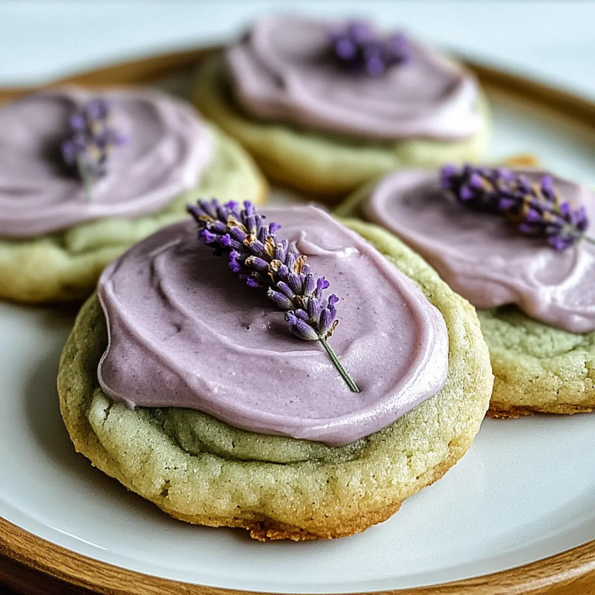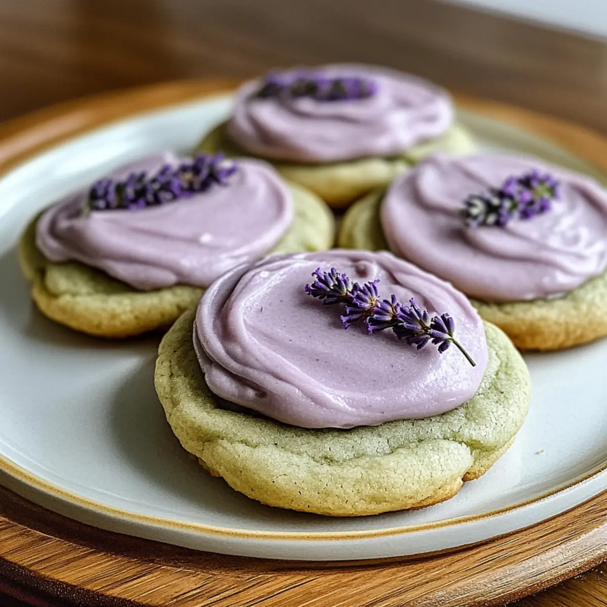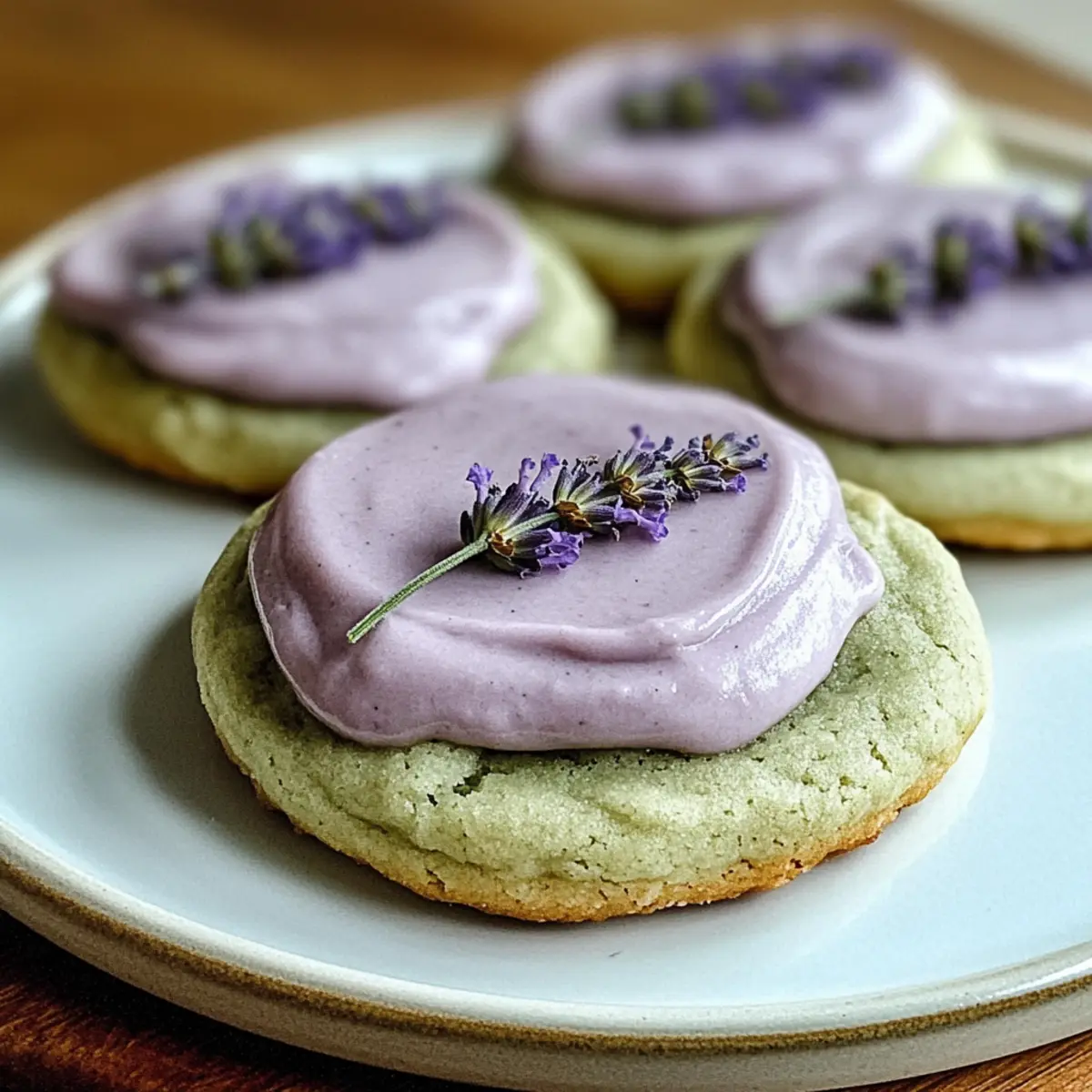 Jump to Recipe Print RecipeAs the delicate aroma of lavender wafts through your kitchen, it’s hard not to feel uplifted by the magic of baking. These Matcha Lavender Sugar Cookies are a delightful twist on traditional cookies that combine the earthy richness of matcha with the subtle floral notes of lavender—creating an inviting treat that feels luxurious yet homey. They’re perfect for a cozy afternoon tea or casual gatherings, making them an ideal choice for both experienced bakers and those just starting their culinary journey. With quick prep time and a unique flavor profile, these cookies are bound to impress! Curious to discover how to whip up these enchanting delights? Let’s get baking! Why Choose Matcha Lavender Cookies? Unique Flavor Fusion: The enchanting blend of matcha and lavender creates a captivating taste experience that’s far from ordinary. Easy to Make: With straightforward steps, even novice bakers can impress family and friends. Perfect for Any Occasion: Whether for afternoon tea or casual get-togethers, these cookies are a hit! Visually Stunning: Their pastel green hue, topped with lavender frosting, adds a charming touch to any dessert table. Make-Ahead Friendly: Prep the dough in advance for a stress-free baking experience; freeze for up to a month! For more delightful twists on classic cookies, check out my Cinnamon Sugar Air or Chocolate Chip Cookies. Matcha Lavender Sugar Cookies Ingredients For the Cookies All-purpose flour – Provides structure to the cookies; substitute with a gluten-free blend if necessary. Cornstarch – Ensures a tender texture; no substitutes recommended for desired softness. Baking powder – Helps cookies rise; ensure it’s fresh for best results. Baking soda – Adds lift and softness; using both baking powder and baking soda ensures the proper balance. Salt – Enhances flavors; essential for overall taste; no substitutes recommended. Matcha powder – Imparts earthy flavor and vibrant color; can be replaced with cocoa powder for a chocolate version, but flavor changes. Unsalted butter – Adds richness and flavor; margarine can be used, but may alter texture slightly. Granulated sugar – The main sweetener that creates texture; brown sugar adds moisture but changes the flavor profile slightly. Egg – Acts as a binder and moisture source; for an egg-free version, use a flax egg (1 tbsp flaxseed meal + 2.5 tbsp water). Sour cream or Greek yogurt – Contributes moisture and tang; yogurt can be substituted. Vanilla extract – Adds warmth and depth; optional, but highly recommended for flavor. For the Lavender Frosting Milk or cream – Used for lavender-infused frosting; dairy alternatives can be applied. Culinary lavender buds – Adds unique flavor; can be omitted if not available. Powdered sugar – Used for making frosting; no substitutes. Purple food coloring – Optional for aesthetic appeal; omit if desired. These Matcha Lavender Sugar Cookies promise a delightful baking adventure that is both fun and rewarding! Step‑by‑Step Instructions for Matcha Lavender Sugar Cookies Step 1: Preheat the Oven Start by preheating your oven to 350°F (177°C), ensuring it’s perfectly warm for baking. While it’s heating, prepare your baking sheets by lining them with parchment paper. This will prevent the cookies from sticking and give them a lovely, crisp edge when baking. Step 2: Mix the Dry Ingredients In a medium bowl, whisk together the all-purpose flour, cornstarch, baking powder, baking soda, salt, and matcha powder until well combined. This step is crucial to achieve the perfect matcha lavender sugar cookies, as it ensures an even distribution of ingredients. Set this mixture aside while you work on the wet ingredients. Step 3: Cream the Butter and Sugar In a large mixing bowl, beat the softened unsalted butter with granulated sugar using an electric mixer on medium speed for 2-3 minutes. Continue until the mixture turns light and fluffy, which will help incorporate air into the batter for a delightful texture. This creaming step is key to achieving those soft, chewy cookies. Step 4: Add the Wet Ingredients Next, add the egg, sour cream, and vanilla extract to the creamed butter and sugar. Mix on low speed until fully incorporated and smooth. The sour cream adds moisture and richness, making your Matcha Lavender Sugar Cookies irresistibly soft. Step 5: Combine Dry and Wet Ingredients Gradually incorporate the dry ingredient mixture into the wet ingredients. Use a spatula or wooden spoon to gently fold everything together until a thick dough forms. Take your time here, as this step ensures the matcha is evenly distributed, creating that beautiful, green hue throughout your cookies. Step 6: Shape the Cookies Scoop 2-tablespoon portions of the dough and roll them into balls. Place them on the prepared baking sheets, flattening each slightly for an even bake. For best results, chill the dough in the refrigerator for 20 minutes. This step solidifies the fats, helping the cookies hold their shape while baking. Step 7: Bake the Cookies Now it’s time to bake your cookies! Place the trays in the oven and bake for 9-11 minutes, until the edges are set and the centers look slightly underdone. This slight underbaking ensures that your Matcha Lavender Sugar Cookies retain a chewy texture, which you’ll love. Step 8: Cool on a Rack Once baked, take the cookies out and let them cool on the baking sheets for about 5 minutes. Afterward, carefully transfer them to a wire rack to cool completely. This cooling process is essential before frosting to prevent it from melting into your warm cookies. Step 9: Prepare the Lavender Frosting While the cookies cool, make the lavender frosting. Start by steeping the culinary lavender buds in warm milk for around 10 minutes. Strain this infusion and then beat it together with softened butter and powdered sugar until smooth and creamy. If desired, add a few drops of purple food coloring for a wh