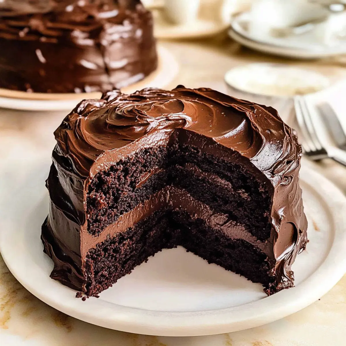Jump to Recipe Print RecipeMy heart raced as I watched the iconic scene unfold in “Matilda,” where the enormous chocolate cake took center stage, making every chocolate-lover’s dream come true. Today, I’m thrilled to share my take on Matilda’s Chocolate Cake, an indulgent treat that captures the essence of that memorable moment. With its rich layers of chocolate cake and velvety fudge frosting, this recipe is not only a crowd-pleaser but also incredibly adaptable. Whether you’re craving a classic dessert or seeking dairy-free, egg-free, or gluten-free options, this cake has you covered. The best part? It comes together quickly, turning a simple kitchen day into a delightful baking adventure. Are you ready to evoke a little movie magic in your own kitchen? Let’s dive in! Why is Matilda’s Chocolate Cake a Must-Try? Indulgent Delight: Every bite of this cake envelops you in rich chocolate flavor, making it the perfect treat for any occasion. Versatile Options: With variations for dairy-free, egg-free, and gluten-free diets, everyone can enjoy this chocolatey masterpiece! Quick & Easy: The simple instructions make this cake a breeze to whip up, perfect for beginners and seasoned bakers alike. Impressive Presentation: Layered with glossy fudge frosting, it’s not just a dessert; it’s a showstopper at any celebration. If you’re in the mood for more delightful cakes, check out my Bake Oreo Cheesecake or indulge in the delightful Ingredient Cheesecake Bake for variety! Matilda’s Chocolate Cake Ingredients Here’s everything you’ll need to create this indulgent masterpiece! For the Cake All-Purpose Flour – Provides structure; substitute with gluten-free flour if needed. Granulated Sugar – Sweetens the cake; for a finer texture, use caster sugar. Baking Powder – Helps the cake rise; ensure it’s fresh for the best results. Baking Soda – Works with baking powder for leavening and should also be fresh. Kosher Salt – Enhances flavor; table salt can be used but adjust to taste. Cocoa Powder – Adds rich chocolate flavor; Dutch-process cocoa deepens the taste. Vegetable Oil – Keeps the cake moist; canola oil is a great substitute. Vanilla Extract – Imparts a wonderful flavor; opt for pure vanilla for the best taste. Eggs – Provide moisture and structure; room temperature eggs work best. Buttermilk – Contributes moisture; can be made at home with milk and lemon juice. Hot Coffee – Intensifies the chocolate flavor without being detectable; hot water can be a substitute. For the Frosting Unsalted Butter – Controls the salt level in frosting; room temperature is ideal. Heavy Cream – Creates a smooth frosting; don’t substitute if you want the right texture. Dark Chocolate – Provides depth to the frosting; use high-quality chocolate for best results. Powdered Sugar – Sweetens and stabilizes the frosting; can be made by blending granulated sugar. This Matilda’s Chocolate Cake is sure to bring joy to any gathering or simply satisfy your chocolate cravings! Step‑by‑Step Instructions for Matilda’s Chocolate Cake Step 1: Preheat the Oven Begin by preheating your oven to 180°C (350°F). While it heats, prepare two 8-inch round baking pans by lining the bottoms with parchment paper and greasing the sides. This ensures your rich chocolate layers will slide out effortlessly once baked, making your cake assembly smooth and easy. Step 2: Mix the Dry Ingredients In a large mixing bowl, whisk together the all-purpose flour, granulated sugar, baking powder, baking soda, kosher salt, and sifted cocoa powder. Ensure the mixture is well combined and airy, as this will help the cake rise beautifully. Take a moment to enjoy the rich chocolate aroma as you blend these key ingredients for Matilda’s Chocolate Cake. Step 3: Combine the Wet Ingredients Next, add the buttermilk, vegetable oil, pure vanilla extract, and room-temperature eggs to the dry mixture. Using a spatula or an electric mixer on low speed, mix until all ingredients are just combined—don’t overmix. You are creating the perfect batter to capture that moist, rich, and indulgent texture that Matilda’s Chocolate Cake is known for. Step 4: Incorporate the Coffee Now, gradually stir in the hot coffee. This addition will enhance the chocolate flavor without leaving a coffee taste behind. Continue to mix until the batter is smooth and free of lumps, creating a luscious texture that promises a wonderfully rich cake once baked. Step 5: Bake the Cake Layers Divide the chocolate batter evenly between the prepared baking pans. For even baking, you may want to use cake strips around the pans. Place them in the preheated oven and bake for 25–30 minutes. Check for doneness by inserting a toothpick in the center; it should come out clean or with a few moist crumbs clinging to it. Step 6: Cool the Layers Once baked, remove the pans from the oven and allow them to cool for about 10 minutes. Then, carefully invert the cake layers onto a wire rack and remove the parchment paper. Cooling completely before frosting is crucial, as it prevents the frosting from melting and ensures a beautifully layered Matilda’s Chocolate Cake. Step 7: Prepare the Chocolate Frosting In a medium saucepan over medium heat, combine unsalted butter, heavy cream, dark chocolate, cocoa powder, powdered sugar, and a pinch of salt. Stir continuously until the mixture is smooth and glossy—this decadent frosting will be the crowning glory of your cake. Allow it to cool slightly. Step 8: Cool the Frosting After mixing, let the frosting sit at room temperature for about 30 minutes, then transfer it to the refrigerator to thicken for 1–2 hours. The perfect spreadable consistency is key to achieving a smooth, elegant finish on your cake layers. Step 9: Assemble the Cake Once the cake layers are completely cool and the frosting thickened, place one layer on a serving plate. Spread a dollop of frosting on top and smooth it evenly. Stack t