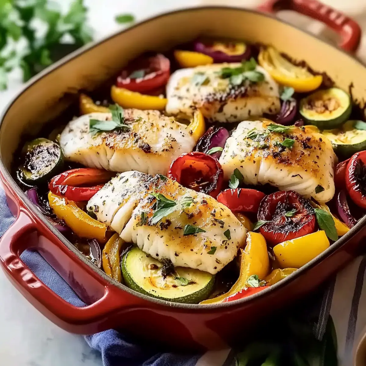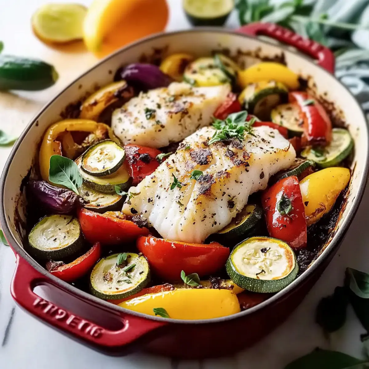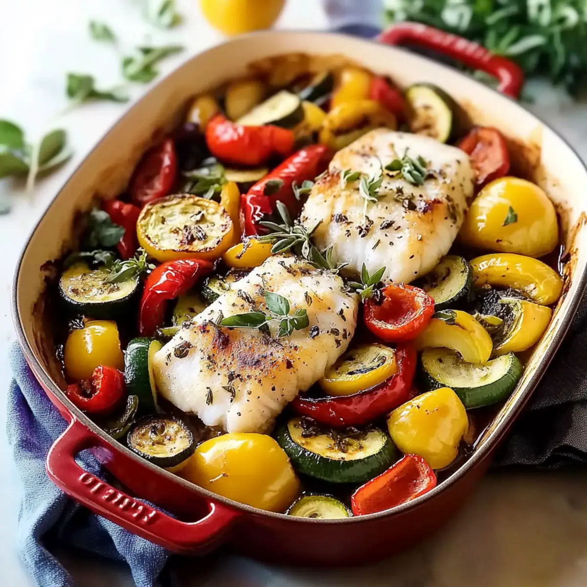 Jump to Recipe Print RecipeAs I tossed the last of the vibrant bell peppers and zucchini onto a baking sheet, a waft of Mediterranean aromas danced through my kitchen, instantly transporting me to sun-soaked shores. This 20-Minute Mediterranean Baked Cod is a true weeknight savior—where tender cod meets a medley of colorful veggies in a simple, one-pan dish. With minimal prep time and virtually no cleanup, you can savor a healthy meal packed with flavor without sacrificing your evenings to hectic cooking. Plus, it’s easily adaptable, allowing you to swap in your favorite vegetables or make it even spicier if you dare. Ready to bring a taste of the Mediterranean to your table? Let’s dive into this delightful dish! Why is this Mediterranean Baked Cod a must-try? Quick to Prepare: In just 20 minutes, you can have a delightful meal ready, perfect for any busy weeknight. One-Pan Wonder: The beauty of this recipe lies in its simplicity—everything cooks together, minimizing cleanup and maximizing flavor. Health Benefits: Packed with omega-3 fatty acids from the cod and a rainbow of vegetables, it’s as nutritious as it is delicious. Versatile Ingredients: Swap in your favorite veggies like asparagus or even try another fish, such as snapper for a new twist. For a great side, check out Oven Baked Lemon Garlic Salmon to complement this dish! Crowd-Pleaser: This Mediterranean delight is sure to impress family and friends alike, combining fresh flavors that evoke sunny Mediterranean vibes. Enjoy it with a light arugula salad for balance and a refreshing finish! Mediterranean Baked Cod Ingredients Get ready to discover the delightful elements of this dish! For the Cod Cod Fillets – The star of this dish; choose fresh or thoroughly thawed frozen fillets for best results. For the Vegetables Bell Pepper – Adds sweetness and vibrant color; any color variety works wonders! Zucchini – Provides moisture and texture; slice into ¼-inch thick half-moons for even cooking. Fennel Bulb – Offers a subtle anise flavor; use half, thinly sliced to enhance the overall taste. Cherry Tomatoes – For juiciness and acidity; halve ½ cup to brighten the dish. For Flavor Kalamata Olives – Infuses saltiness and richness; use ½ cup, pitted and sliced for depth. Olive Oil – Essential for moisture; 3 tablespoons will do the trick while sautéing. Garlic – 1.5 tablespoons minced helps to elevate the flavors immensely. Balsamic Vinegar – Just 1 tablespoon adds a hint of sweetness that complements the cod beautifully. Dried Oregano – Introduces aromatic depth; a simple ½ teaspoon will suffice to infuse the dish. Salt & Black Pepper – Season to taste; these simple additions make all the difference. For Garnish Lemon – Use 1, sliced, to bring brightness and a fresh zing to the presentation. Fresh Herbs (Basil, Thyme, Parsley) – A handful adds herbal notes that elevate the dish remarkably. Enjoy preparing this Mediterranean Baked Cod, a quick cooking delight that will leave your taste buds dancing! Step‑by‑Step Instructions for Mediterranean Baked Cod Step 1: Preheat Oven Begin by preheating your oven to 425°F (220°C). This temperature is ideal for roasting your vegetables and cod to perfection. While the oven heats up, prepare your baking dish, so everything is ready for the next steps. Step 2: Prepare Vegetables While the oven preheats, take a moment to prepare your vegetables for the Mediterranean Baked Cod. Dice the bell pepper into bite-sized pieces, slice the zucchini and fennel into thin strips, and halve the cherry tomatoes. Mince the garlic and set aside, along with lemon slices for garnishing later. Step 3: Combine Vegetables In a large baking dish, combine the diced bell pepper, zucchini, fennel, and cherry tomatoes. Drizzle 3 tablespoons of olive oil over the mixture, then sprinkle with salt and black pepper to taste. Toss everything gently to ensure the vegetables are evenly coated with olive oil. Step 4: Initial Roasting Spread the colorful vegetable mixture into a single layer within the baking dish. Roast in the preheated oven for about 15 minutes, or until the vegetables are slightly softened and beginning to caramelize around the edges. This step enhances their natural sweetness and prepares them for the cod. Step 5: Add Cod After the vegetables have roasted, carefully nestle the cod fillets among the roasted veggies in the baking dish. Ensure the fish is seasoned on both sides with salt and black pepper. This step is crucial for infusing flavor into the Mediterranean Baked Cod. Step 6: Flavor Enhancements Next, distribute the minced garlic and lemon slices evenly across the fillets. Drizzle 1 tablespoon of balsamic vinegar over the cod and vegetables, then sprinkle with ½ teaspoon of dried oregano. Add the sliced Kalamata olives to the dish for an extra burst of Mediterranean flavor. Step 7: Final Baking Return the baking dish to the oven and bake for an additional 8 to 10 minutes. Keep an eye on the cod; you’ll know it’s done when it turns opaque and flakes easily with a fork. This final baking step allows the flavors to meld beautifully. Step 8: Garnish Once out of the oven, take a moment to let your Mediterranean Baked Cod cool slightly. Before serving, garnish with a handful of fresh herbs such as basil, thyme, or parsley for a vibrant finish. This adds not only flavor but also a lovely pop of color to your dish. Mediterranean Baked Cod Variations & Substitutions Customize your Mediterranean Baked Cod to suit your taste buds and pantry with these delightful tweaks! Alternative Fish: Try swapping the cod with halibut or snapper for a fresh take. Both options deliver a tender and flaky texture that complements the veggies beautifully. Vegetable Medley: Add asparagus, eggplant, or sunny zucchini blossoms for more color and texture. The more, the merrier—these flavor-packed veggies elevate the dish while keeping it healthy! Vegan Delight: Replace cod with chickpeas
