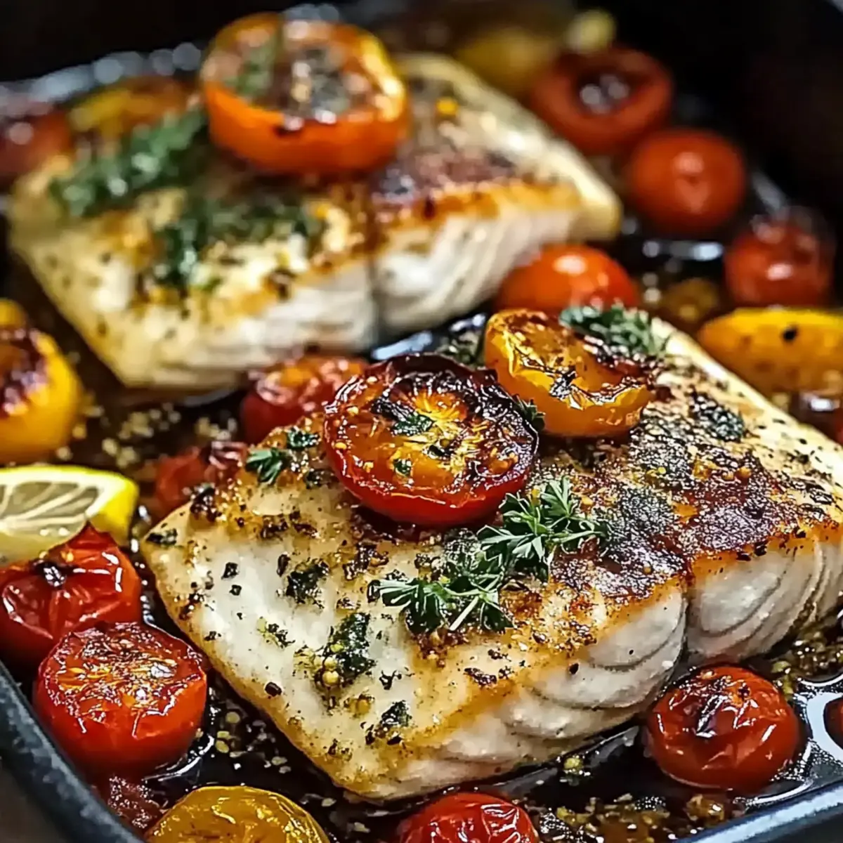 Jump to Recipe Print RecipeThere’s nothing quite like the tangy aroma of lemon and herbs wafting through the kitchen, signaling that something truly special is on the way. Introducing my Mediterranean Baked Fish, a dish that not only dazzles the taste buds but also nourishes the body with its omega-3 rich ingredients. This healthy, one-pan meal is a breeze to prepare, making it perfect for both weeknight dinners and those occasions when you want to impress guests without spending hours in the kitchen. With customizable options for fish and veggies, it’s adaptable to suit whatever flavors you’re craving or whatever’s in the fridge. So, are you ready to embark on a culinary journey to sun-soaked shores with this delectable recipe? Why is Mediterranean Baked Fish a Must-Try? Simplicity, this one-pan dish requires minimal prep and cleanup, allowing you to enjoy your meal without the hassle. Customizable, choose your favorite fish like cod or salmon, and vary your veggies based on what’s in season. Flavorful, a blend of zesty lemon and aromatic herbs creates an irresistible aroma that fills your kitchen. Nutritious, packed with omega-3 fatty acids, this dish promotes heart health while being low in calories. Crowd-Pleasing, it’s perfect for both intimate family dinners or elegant gatherings, leaving everyone asking for seconds. Try pairing it with a refreshing salad, like Mediterranean Bean Salad, to round out your meal! Mediterranean Baked Fish Ingredients • Dive into this tasty dish with a selection of fresh ingredients that embrace the essence of the Mediterranean. For the Fish • White Fish (Cod, Tilapia, or Sea Bass) – The main protein creating a flaky texture; try salmon for a richer taste. For the Vegetables • Tomatoes – Adds moisture and a fresh burst of acidity; use vine-ripened for ultimate flavor. • Onion – Provides sweetness and deeper flavor; shallots can replace for a milder approach. • Bell Pepper (Red or Yellow) – Contributes sweetness and a satisfying crunch; sub zucchini or asparagus for a twist. For the Flavoring • Garlic – Packs a robust flavor and aroma; minced garlic works wonderfully, but garlic powder can substitute in a pinch. • Lemon – Brightens and lifts the overall dish; lime is a refreshing alternative for citrus fans. • Olive Oil – Adds richness and ties the flavors together; avocado oil is a great swap for a different flavor profile. For the Seasoning • Dried Oregano and Thyme – Essential Mediterranean herbs enhancing flavor depth; fresh herbs can intensify the aromas. • Salt and Pepper – Season to your liking for balanced flavor. For Garnish • Fresh Parsley – Optional but a lovely garnish that adds a touch of color and freshness. Feel free to customize this recipe as you explore the delightful dimensions of Mediterranean Baked Fish! Step‑by‑Step Instructions for Mediterranean Baked Fish Step 1: Preheat Oven Begin by preheating your oven to 400°F (200°C). This ensures that your Mediterranean Baked Fish will cook evenly and develop a crispy exterior. While the oven is heating, prepare your baking dish, so everything is ready to go when the time comes. Step 2: Prepare Baking Dish Lightly grease a 9×13-inch baking dish with olive oil, making sure to cover the surface evenly. This will prevent the fish from sticking and help incorporate the flavors from the vegetables. Set the dish aside as you focus on the vibrant ingredients that will fill it with deliciousness. Step 3: Arrange Vegetables Layer sliced tomatoes, onions, and bell peppers at the bottom of the greased baking dish. Spread them out evenly to create a colorful vegetable bed that will keep your Mediterranean Baked Fish moist while it bakes. The fresh vibrancy of the vegetables adds both flavor and visual appeal. Step 4: Season Fish Take your white fish fillets and pat them dry with a paper towel. Season both sides generously with salt, pepper, dried oregano, and thyme to enhance the flavor profile. Ensure the fish is well-coated for maximum taste, then arrange the seasoned fillets on top of the beautifully arranged vegetables. Step 5: Layer Fish Carefully place the seasoned fish fillets over the layer of vegetables, arranging them evenly to ensure consistent cooking. The fish should slightly overlap the vegetables, allowing the juices to meld together beautifully as they bake, forming a delightful fusion of flavors. Step 6: Add Garlic Sprinkle minced garlic evenly over the fish, distributing it generously to infuse the dish with aromatic goodness. The garlic will caramelize and add a robust flavor to your Mediterranean Baked Fish as it bakes, contributing to the overall enticing aroma wafting through your kitchen. Step 7: Drizzle Oil Evenly pour olive oil over the entire dish, ensuring both the fish and the vegetables are lightly coated. This step helps to enhance the flavors and promotes browning, resulting in a delectable finish. The drizzle of oil adds richness and ties all the flavors together. Step 8: Layer Lemon Place thin slices of lemon on top of the fish fillets, adding a burst of brightness that will elevate the dish. The citrus will infuse during baking, creating a tangy note that complements the fish beautifully. This step also enhances the visual appeal, making it truly inviting. Step 9: Bake Covered Cover the baking dish with aluminum foil to retain moisture, and place it in the oven to bake for 20 minutes. This step allows the fish to steam slightly, ensuring it stays flaky and tender while absorbing the delightful flavors from the vegetables and seasonings. Step 10: Uncover & Finish Baking After 20 minutes, carefully remove the foil from the baking dish. Return it to the oven and bake for an additional 5-10 minutes until the fish flakes easily with a fork and reaches an internal temperature of 145°F (63°C). This will create a beautiful, slightly charred top. Step 11: Garnish & Serve Once baked to perfection, let the Mediterranea