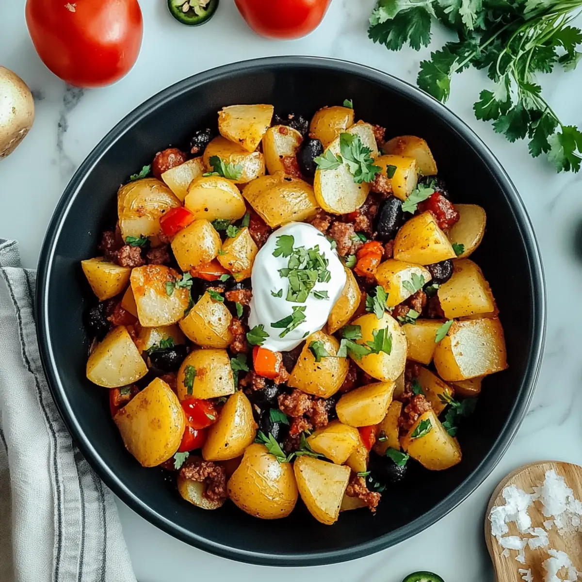 Jump to Recipe Print RecipeAs I sliced into those golden-brown potatoes, a satisfying crunch echoed through my kitchen, making my mouth water in anticipation. These Zesty Mexican Potatoes are a delightful twist on a classic dish, boasting a crispy exterior and a fluffy, seasoned interior that truly shines. Not only are they gluten-free and vegetarian-friendly, but this recipe offers endless customization, whether you prefer spicy chorizo or a dollop of creamy sour cream. Perfect as a hearty snack or a vibrant side dish, they’re guaranteed to impress friends and family alike. Who wouldn’t want to elevate a dinner plate with a sprinkle of herbs and a splash of color? Let’s dive into making these scrumptious Mexican Potatoes that will leave your taste buds dancing! Why are these Mexican Potatoes irresistible? Flavor Explosion: These Zesty Mexican Potatoes are seasoned to perfection, infusing every bite with savory spices that warm the soul. Customizable Delight: Whether you top them with spicy chorizo, creamy sour cream, or zesty salsa verde, the options are endless! Crispy Crunchiness: The secret to their appeal lies in their crispy exterior and fluffy interior, offering a wonderful contrast that’s hard to resist. Quick and Easy: With just a few ingredients and simple steps, you’ll have a delicious side dish ready in under 40 minutes! Perfect for Any Occasion: Serve them at your next taco night or as a brunch side for the ultimate crowd-pleaser. Don’t forget to check out how to make an incredible Mexican Macaroni Salad alongside these enticing potatoes! Mexican Potatoes Ingredients For the Potatoes • Medium Potatoes (6) – The heart of this dish, providing a soft interior; you can switch these for sweet potatoes if you like a sweeter flavor. • Olive Oil (2 tablespoons) – Ensures a crispy texture; feel free to substitute with vegetable oil if desired. • Salt (1 teaspoon) – Essential for amplifying the flavors in these Mexican Potatoes. • Black Pepper (1 teaspoon) – Adds a touch of heat and enhances taste depth. • Paprika (1 teaspoon) – Gives the potatoes a smoky flavor and beautiful color. • Garlic Powder (1 teaspoon) – Infuses delicious savory notes for a flavor boost. • Onion Powder (1 teaspoon) – Elevates the depth of flavor – a must for seasoning! • Chili Powder (½ teaspoon) – Adds a layer of spiciness; adjust according to your heat preference. • Cumin (½ teaspoon) – Offers an earthy flavor that’s a hallmark of Mexican cuisine. • Dried Oregano (½ teaspoon) – A sprinkle of herbal brightness enhances the taste. • Dried Parsley (½ teaspoon) – For that refreshing touch – it’s all about balance! Optional Toppings • Cooked Chorizo – Crumbled on top for an added protein punch and rich flavor. • Salsa Verde – Drizzle for a fresh and zesty pop that complements the potatoes. • Sour Cream or Crema Mexicana – A dollop adds creamy richness and balances the spices. • Sliced Jalapeños – Toss on for an extra kick of heat and authenticity. • Roasted Poblanos – Incorporate for a smoky flavor and a beautiful presentation. Now you have all the ingredients needed to whip up a batch of these delicious Mexican Potatoes! Let the cooking begin! Step‑by‑Step Instructions for Mexican Potatoes Step 1: Preheat the Oven Begin by preheating your oven to 400°F (200°C). This ensures that your crispy Mexican Potatoes will roast evenly and develop that glorious golden brown exterior. As the oven warms up, take a moment to prepare your ingredients and set the stage for a delightful cooking experience. Step 2: Prepare the Potatoes Next, peel the medium potatoes and cut them into small, even cubes. Aim for pieces approximately 1-inch in size for uniform cooking, which will lead to a delightful texture. Once prepared, place the diced potatoes in a large bowl, ready to be seasoned. Step 3: Season the Potatoes Drizzle the cubed potatoes with olive oil, then sprinkle in the salt, black pepper, paprika, garlic powder, onion powder, chili powder, cumin, dried oregano, and dried parsley. Toss everything together until each potato cube is evenly coated in the spices, ensuring that every bite of your Mexican Potatoes bursts with flavor. Step 4: Arrange on a Baking Sheet Spread the seasoned potatoes in a single layer on a baking sheet lined with parchment paper. Avoid overcrowding the pan, as this helps maintain the crispy texture when roasting. Make sure they have space to breathe and roast evenly, allowing you to achieve the perfect golden crunch. Step 5: Bake the Potatoes Place the baking sheet in the preheated oven and bake the potatoes for 30-35 minutes. Halfway through the cooking time, take out the sheet and gently flip the potatoes to ensure they become evenly golden and crispy. You’ll know they are done when they are beautifully browned and fork-tender. Step 6: Serve and Enjoy Once baked to perfection, remove your Mexican Potatoes from the oven. Serve them hot as a tantalizing side dish or a satisfying snack. Feel free to add your choice of toppings such as crumbled chorizo, salsa verde, or a dollop of sour cream for a custom twist that will elevate your dining experience! Expert Tips for Mexican Potatoes • Dry Potatoes First: Ensure your potatoes are completely dry before seasoning; moisture can lead to a soft texture rather than the desired crispiness. • Don’t Overcrowd: Spread the potatoes evenly on the baking sheet—overcrowding can trap steam and make your Mexican Potatoes soggy instead of crispy. • Mix and Match Toppings: Experiment with different toppings like spicy chorizo or salsa verde to tailor the dish to your taste. Don’t be afraid to get creative! • Check for Doneness: Keep an eye on the potatoes during the last few minutes of baking; they can go from perfect to burnt quickly, especially under the broiler. • Reheat with Care: When reheating leftovers, use an oven or skillet to maintain that crunchy tex