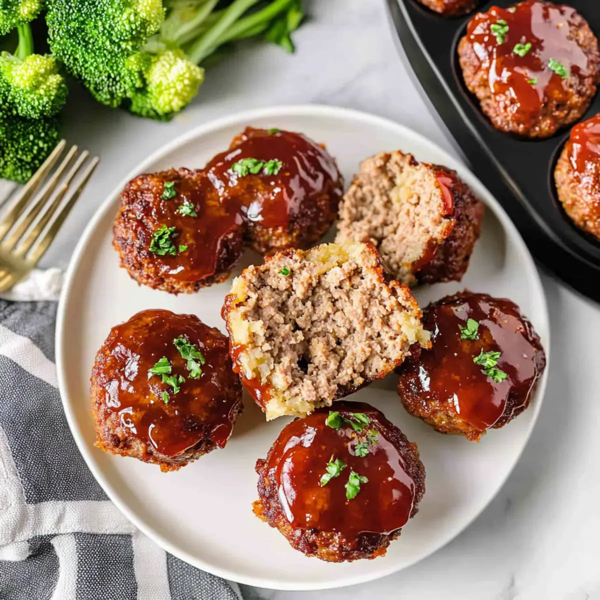 Jump to Recipe Print Recipe“Would you believe that a traditional comfort food could be transformed into bite-size joy? Enter Mini Meatloaf Muffins, a delightful twist on the beloved classic, where every muffin bursts with savory goodness and a hint of tangy sweetness from the ketchup glaze. These mini masterpieces not only bring a playful touch to your dinner table but are also incredibly easy to whip up in under an hour, making them perfect for busy weeknights or spontaneous gatherings. Family-friendly and adaptable, you can even swap in lean meat options to suit your dietary needs. Whether served as appetizers or part of a cozy meal, these Mini Meatloaf Muffins are sure to become a new favorite at home. Are you ready to surprise your taste buds with this simple yet satisfying recipe?” Why You’ll Crave Mini Meatloaf? Flavorful, Fun Bites: These Mini Meatloaf Muffins pack a punch of savory flavor, making every bite a mini celebration of comfort food. Quick Preparation: With a cooking time of under an hour, they’re perfect for your busy weeknights or last-minute gatherings. Family-Friendly: Packed with nutrients and appealing to both kids and adults, these muffins ensure everyone’s plates are clean! Adaptable Options: Whether you’re in the mood for ground turkey for a healthier take or stuffed with gooey cheese, the variations are endless. Perfect for Sharing: Their cute, muffin-sized form makes them ideal for parties or cozy dinners, so you can easily impress your guests. For more delicious ideas, check out our tips on freezing your meatloaf for busy days ahead! Mini Meatloaf Ingredients • Get ready to create an easy, delicious dish! For the Meatbase Ground Beef – Primary protein that offers unmatched flavor; try ground turkey for a healthier alternative. White Onion – Provides moisture and a subtly sweet flavor; finely chopped shallots can be a milder substitute. Eggs – Binds everything together; no substitutes are suggested unless using a vegan alternative. Bread Crumbs – Adds texture and helps shape the muffins; opt for panko for a lighter bite or gluten-free breadcrumbs for dietary needs. For the Seasoning Worcestershire Sauce – Enhances the umami flavor profile; soy sauce works as a great substitute for a twist. Pepper and Seasoning Salt – Elevate the flavor; adjust according to your taste preferences. Garlic Powder – Infuses depth; use fresh minced garlic for a stronger kick if desired. For the Topping Ketchup – Sweetens and moistens the mixture while serving as a glaze; low-sugar ketchup is a healthier option. Brown Sugar – Balances the ketchup’s acidity; honey or maple syrup can be used for a natural sweetness. Mustard – Introduces a delightful tang; swap for Dijon mustard for an extra flavor boost. These Mini Meatloaf ingredients are the perfect blend of comfort and flavor, creating an unforgettable dish that your family will love! Step‑by‑Step Instructions for Mini Meatloaf Step 1: Preheat Oven Begin by preheating your oven to 350°F (175°C). While waiting, grab a nonstick muffin tin and spray it with nonstick cooking spray to ensure easy removal later. Visualize that warm, inviting aroma filling your kitchen as you prepare to bake these delightful Mini Meatloaf Muffins. Step 2: Mix Ingredients In a large mixing bowl, combine the ground beef, finely minced white onion, eggs, breadcrumbs, Worcestershire sauce, pepper, seasoning salt, and garlic powder. Use your hands to gently mix the ingredients together, taking care not to overwork the meat to maintain tenderness. You want a well-combined mixture that looks cohesive and inviting for your Mini Meatloaf Muffins. Step 3: Prepare Topping For the topping, find a separate small bowl and mix together the remaining ¼ cup of ketchup, brown sugar, and mustard until smooth. This sweet and tangy glaze will make the Mini Meatloaf Muffins extra special. Set this mixture aside, letting your taste buds anticipate the delicious finish to these savory bites. Step 4: Fill Muffin Tin Scoop the meat mixture into each cup of the muffin tin, filling them evenly and pressing down slightly to pack the mixture. Aim for a uniform height across all muffins without overstuffing, ensuring that each Mini Meatloaf Muffin bakes evenly. With the meat mixture snugly in place, you’re just steps away from the oven magic! Step 5: Add Sauce Now, it’s time to give your Mini Meatloaf Muffins a flavorful boost! Spoon the ketchup topping generously over each filled muffin cup, spreading it evenly to create a delicious layer. This glaze will caramelize beautifully as they bake, promising a tantalizing finish that’s hard to resist. Step 6: Bake Carefully place the muffin tin in the preheated oven and bake for about 30 minutes. Keep an eye on them as they bake; they should become beautifully golden and have an internal temperature of 160°F (71°C) when fully cooked. Let the aroma fill your kitchen, letting everyone know something scrumptious is on the way! Step 7: Cool & Serve Once baked to perfection, remove the muffin tin from the oven and allow the Mini Meatloaf Muffins to cool for about 5 minutes. This brief resting period will help them firm up, making for easier removal. Serve warm on a platter or alongside favorites like mashed potatoes and steamed vegetables for a complete meal experience. Mini Meatloaf: Variations & Substitutions Feel free to get creative with these Mini Meatloaf Muffins—there’s a whole world of flavors waiting for you to explore! Stuffed Meatloaf: Add melted cheese in the center for a delightful surprise that will make each bite more scrumptious. Imagine pulling apart the muffin and revealing a gooey, cheesy filling—pure comfort food. Chicken Meatloaf: Swap in ground chicken for a lighter, leaner version. This variation not only reduces calories but also allows the savory flavors to shine through without feeling heavy. Turkey Meatloaf: Use ground turkey to create a moist and healthy meal. It