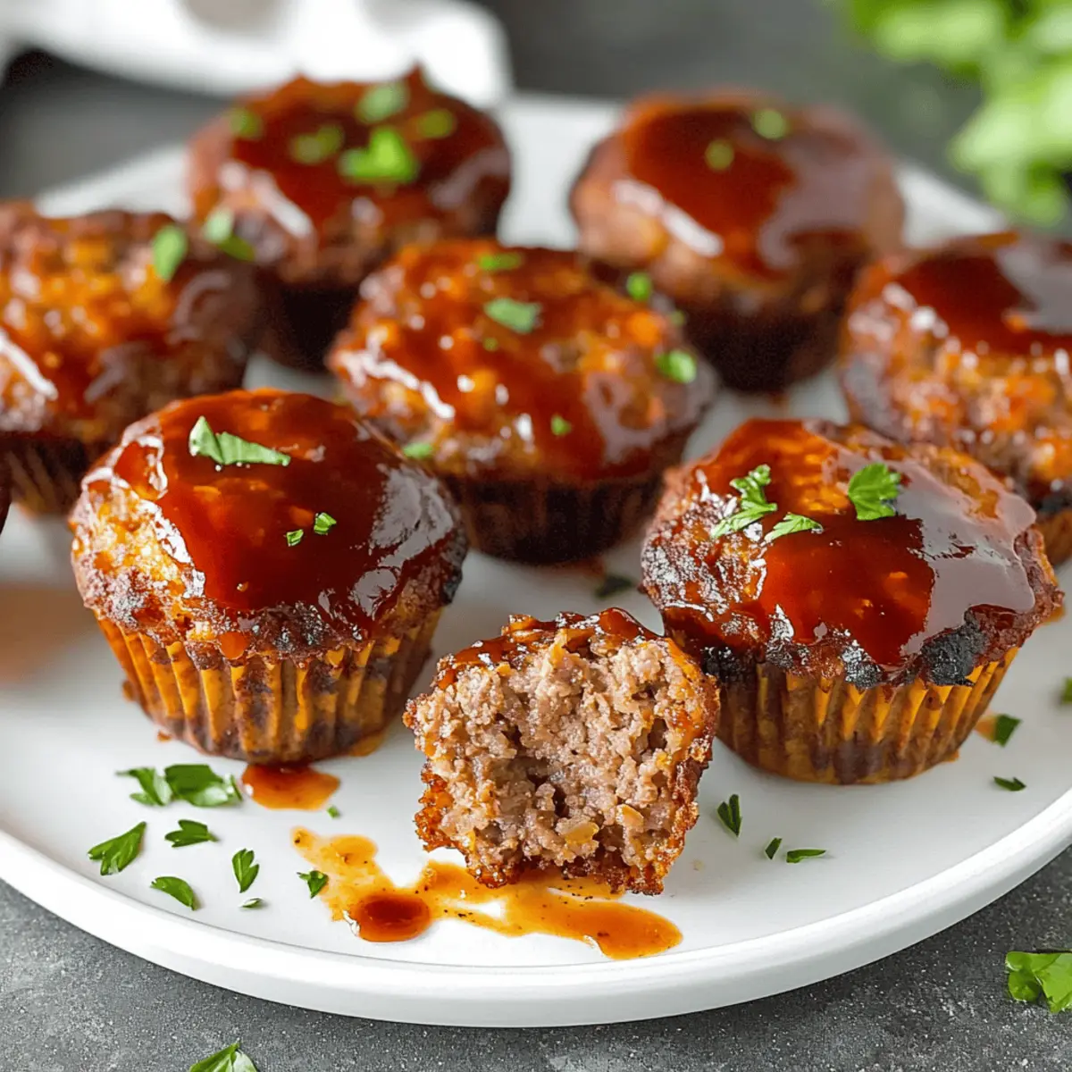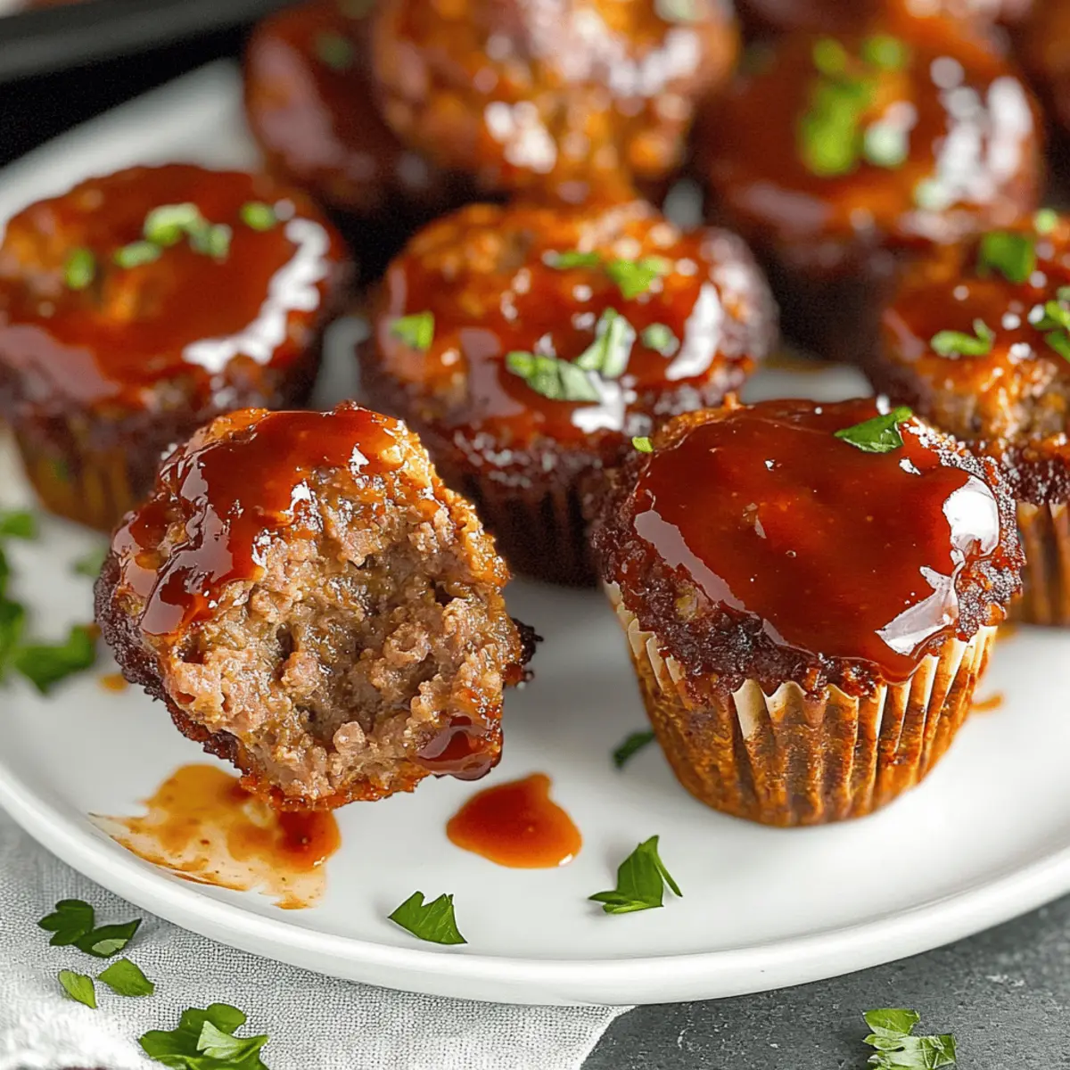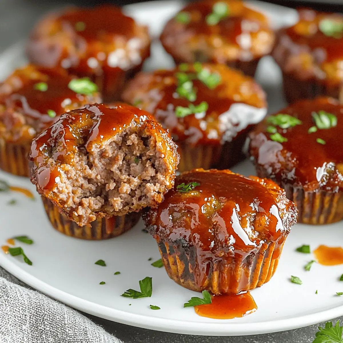 Jump to Recipe Print RecipeAs I rushed through my kitchen one evening, the lingering aroma of savory spices pulled me in like a comforting hug. It was time for the real star of the night: Mini Meatloaf Muffins. This versatile recipe offers a quick way to bring family and friends together over delicious, individual servings of hearty comfort food. Perfect for busy weeknights, these muffins are not only easy to prepare but also adaptable to any taste or dietary need, making them a genuine crowd-pleaser. Whether you’re a seasoned home chef or just beginning your culinary journey, you’ll find joy in customizing these little bites—from swapping proteins to experimenting with spices. Curious about how you can put your unique spin on this classic dish? Let’s dive into the recipe! Why are Mini Meatloaf Muffins a Must-Try? Versatile Creations: The beauty of mini meatloaf muffins lies in their adaptability; you can swap out proteins, like using ground turkey for a lighter option or lentils for a vegetarian twist. Time-Saving Wonder: With a quick prep and bake time, these muffins fit perfectly into your busy schedule, ensuring you spend less time in the kitchen and more enjoying hearty meals. Flavor Explosion: Infused with herbs and spices, these mini delights pack a punch, delivering comforting flavors in each bite—perfect for any palate! Crowd Pleaser: Whether for a family dinner or a friendly gathering, these muffins serve as a hit appetizer or a main dish, pleasing both adults and kids alike. If you love flavor-packed meals, check out my Banana Protein Muffins for another fun treat! Easy Storage: Leftovers can be conveniently stored and re-heated, making them ideal for lunch boxes or quick snacks later in the week. Mini Meatloaf Muffin Ingredients For the Muffin Mixture • Ground Beef – Main protein source providing structure; consider ground turkey for a lighter option. • Breadcrumbs – Adds texture and absorbs moisture; swap with gluten-free breadcrumbs for a gluten-free version. • Eggs – Binds the ingredients together; use room temperature eggs for better incorporation. • Onion – Adds moisture and flavor; substitute with shallots or leeks for a milder taste. • Ketchup – Provides sweetness and moisture; can be replaced with barbecue sauce for a flavor twist. For the Seasoning • Garlic Powder – Enhances overall flavor; feel free to customize with spices like taco seasoning for extra flair. • Salt & Pepper – Essential for balance; taste as you go to achieve your preferred seasoning level. For Optional Vegetables • Spinach – Boosts nutrition; finely chopped to blend seamlessly into the muffins. • Bell Peppers – Adds sweetness and crunch; use any color for a vibrant look. For Toppings (Optional) • Barbecue Sauce – A tangy glaze that adds moisture; brush it on before baking for extra flavor. • Cheese – Sprinkle on top for a melty finish; cheddar or mozzarella are great choices. Dive into these Mini Meatloaf Muffins that promise to be a flavor-packed delight tailored to your taste! Step‑by‑Step Instructions for Mini Meatloaf Muffins Step 1: Preheat Your Oven Start by preheating your oven to 350°F (175°C). This allows for even cooking and ensures your mini meatloaf muffins develop a lovely golden color as they bake. While the oven heats up, gather all your ingredients and get ready to mix your flavorful meatloaf mixture. Step 2: Combine the Ingredients In a large mixing bowl, combine the ground beef, breadcrumbs, eggs, diced onion, ketchup, and your choice of seasonings. Use your hands or a spatula to mix everything until it’s evenly incorporated, being careful not to overmix, which can lead to tough muffins. The mixture should be well-combined but still tender. Step 3: Prepare the Muffin Tin Take your muffin tin and grease it lightly with cooking spray or oil to ensure the mini meatloaf muffins release easily after baking. Alternatively, you can use silicone liners for a hassle-free cleanup. Make sure each cup is nicely coated to achieve that perfect golden crust on your savory muffins. Step 4: Fill the Muffin Cups Using a spoon or an ice cream scoop, fill each muffin cup with the meatloaf mixture. Gently press the mixture down into each cup, ensuring they are packed but not overly compressed. This helps the muffins hold their shape and bake evenly while developing a beautifully crisp exterior. Step 5: Bake to Perfection Place the filled muffin tin in your preheated oven and bake for about 25-30 minutes. Keep an eye on them as they bake; you’ll know they’re done when the tops are slightly browned, and a meat thermometer inserted into the center reads 160°F (70°C). This guarantees juicy mini meatloaf muffins that are safe to eat. Step 6: Let Them Rest Once baked, carefully remove the muffin tin from the oven and let your mini meatloaf muffins cool for a few minutes. This step is crucial for easy removal from the tin. Allowing them to rest will also help maintain their moisture and texture before you dig in. How to Store and Freeze Mini Meatloaf Muffins Fridge: Store leftover mini meatloaf muffins in an airtight container for up to 3 days. Ensure they’ve cooled completely to maintain moisture. Freezer: For long-term storage, freeze muffins in a single layer on a baking sheet, then transfer to a freezer-safe bag for up to 3 months. Label for easy identification! Reheating: To reheat, place muffins in the oven at 350°F (175°C) for about 10-15 minutes or microwave them for 1-2 minutes. Enjoy them warm for the best flavor! Make-Ahead Advice: Prepare muffins in advance and store them; they make for quick meals or snacks throughout the week, keeping you nourished and satisfied! Expert Tips for Mini Meatloaf Muffins Meat Choice Matters: Use lean ground beef for moist muffins but consider ground turkey for a healthier alternative. Always check fat content! Avoid Overmixing: Gently combine the ingredients to keep your mini meatloaf muffins 
