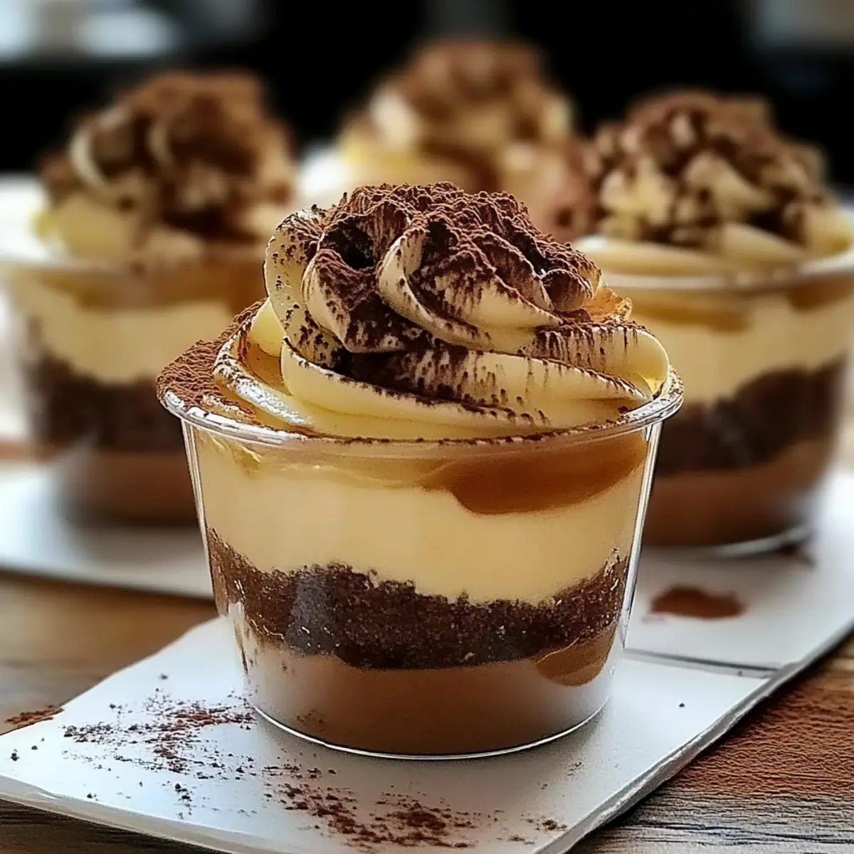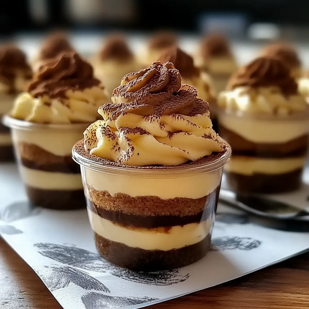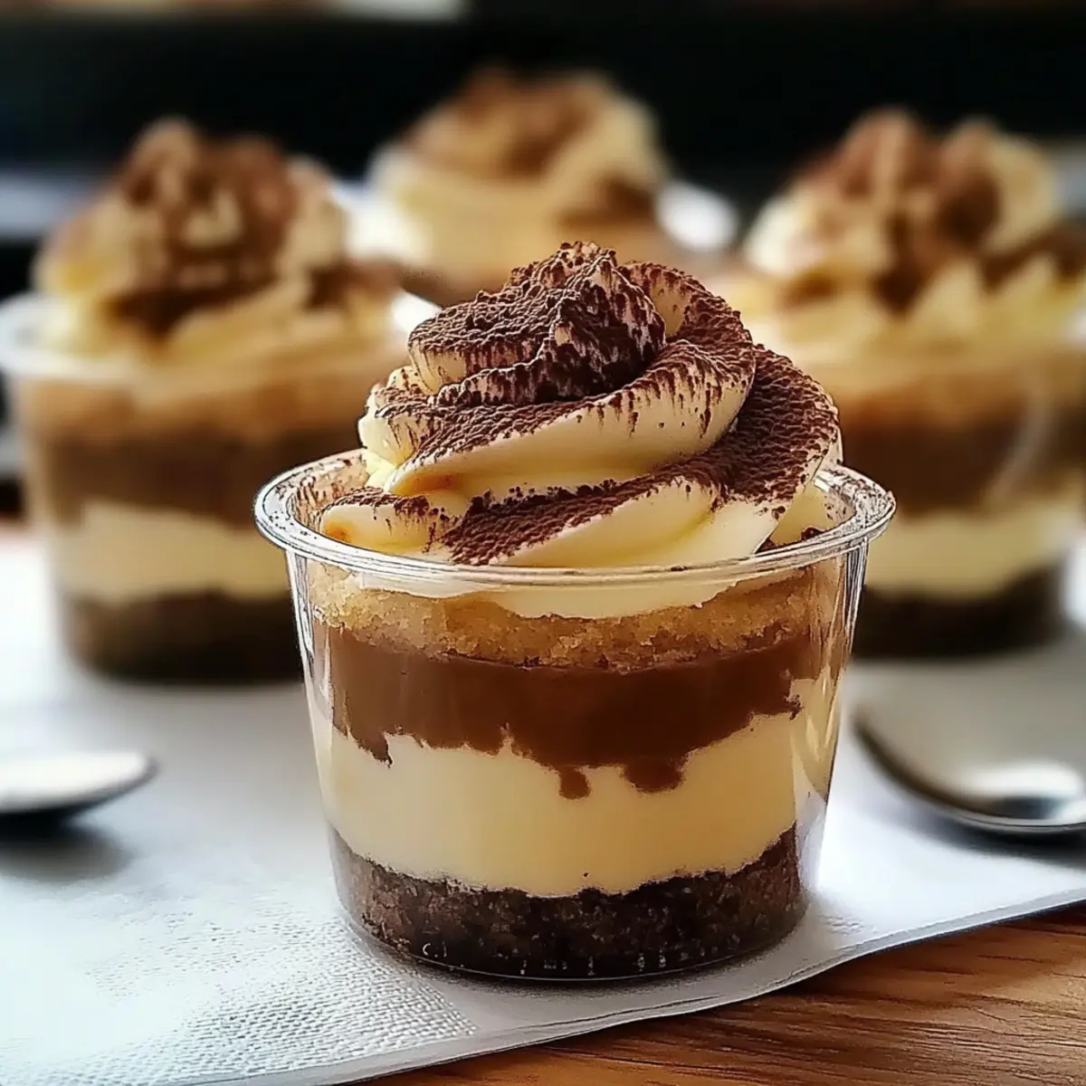 Jump to Recipe Print Recipe“Have you ever found yourself struggling to choose between whipping up a homemade dessert or picking up something from the store? With these Mini Tiramisu Cups, your decision-making dilemma is solved! This delightful twist on the classic Italian treat combines rich mascarpone cream with coffee-soaked ladyfingers, all elegantly layered and cleverly presented in individual cups. What I love most about this recipe is its simplicity—perfect for impressing guests or satisfying a sweet craving after a long day. Plus, they’re incredibly quick to prepare, allowing you to enjoy your dessert without the fuss. So, are you ready to indulge in these charming little delights?” Why are Mini Tiramisu Cups a Must-Try? Irresistible Flavor: The luscious mascarpone cream, combined with robust coffee-soaked ladyfingers, offers a dreamy taste that’s hard to resist. Elegant Presentation: Served in charming cups, they not only taste divine but also look stunning on any table. Quick Prep Time: With minimal steps required, you’ll have a gourmet dessert ready in no time. Creative Customization: Feel free to experiment! Try flavored coffee or different garnishes like chocolate shavings for a personal touch. Crowd-Pleasing Delight: Whether it’s a family gathering or a casual get-together, these mini cups are bound to impress and satisfy everyone’s sweet tooth. Indulge in these delightful treats and bring joy to your next celebration while enjoying the ease of assembly! If you’re looking for more delectable recipes, try my Bake Peanut Cups for another crowd favorite! Mini Tiramisu Cups Ingredients • Prepare for a heavenly dessert experience with these key ingredients! For the Cream Mixture Mascarpone Cheese – Provides a rich, creamy texture; substitute with cream cheese for a slightly different taste. Sugar – Sweetens the cream, creating a perfectly balanced dessert; adjust based on your taste preference. Heavy Cream – Whipped to add lightness; ensure it’s whipped to soft peaks for the best texture. For the Base Ladyfingers – Serve as the foundation of the dessert, soaking up coffee flavor; gluten-free ladyfingers can be used for a gluten-free version. Strong Brewed Coffee (Espresso or Arabica) – Adds authentic coffee flavor that’s integral to the Mini Tiramisu Cups; use your favorite variety for a personal touch. For the Garnish Cocoa Powder – Adds a touch of bitterness to balance the sweetness; choose unsweetened cocoa for the best results. With these delightful ingredients in hand, you’re just a few steps away from creating the perfect Mini Tiramisu Cups that will leave everyone asking for more! Step‑by‑Step Instructions for Mini Tiramisu Cups Step 1: Prepare the Coffee Mixture Start by brewing strong coffee, using an espresso or Arabica variety for authenticity. Allow the coffee to cool to room temperature, which should take about 15-20 minutes. This cooled coffee will be crucial for soaking the ladyfingers later, enhancing the rich flavors in your Mini Tiramisu Cups. Step 2: Make the Cream Mixture In a mixing bowl, combine mascarpone cheese, sugar, and heavy cream. Using a whisk or electric mixer, beat the mixture until it’s smooth and creamy, reaching soft peaks. This should take about 3-5 minutes on medium speed. The result should be a light, fluffy cream ready to elevate your Mini Tiramisu Cups. Step 3: Assemble Layers Dip each ladyfinger quickly into the cooled coffee mixture, ensuring they are soaked but not soggy. Lay them at the bottom of your individual serving cups, creating a solid base for your dessert. You’ll want about two ladyfingers per cup, tightly packed yet still leaving room for the luscious cream layer. Step 4: Add Cream Layer Spoon a generous layer of the mascarpone mixture over the ladyfingers, spreading it evenly with the back of the spoon. Aim for about a half-inch thickness. This decadent cream layer will beautifully complement the coffee-soaked ladyfingers, creating that irresistible contrast in your Mini Tiramisu Cups. Step 5: Repeat Layers Continue the layering process by dipping more ladyfingers into the coffee and placing them over the cream. Follow with another layer of the mascarpone mixture. Repeat this until the cups are filled, usually about two layers of each. Make sure the final layer is the creamy mascarpone, creating an elegant top. Step 6: Chill Cover the assembled Mini Tiramisu Cups with plastic wrap and refrigerate them for at least 4 hours, or ideally overnight. This chilling time is crucial, allowing the layers to meld together and the flavors to deepen, ensuring a sweet indulgence with each bite. Step 7: Serve Once chilled, remove the cups from the refrigerator and dust each one with cocoa powder using a fine sieve for a beautiful finishing touch. This garnish not only enhances the visual appeal of your Mini Tiramisu Cups but also adds a hint of bitterness that perfectly balances the dessert’s sweetness. Expert Tips for Mini Tiramisu Cups Quick Dipping: Dip ladyfingers only briefly in coffee to avoid sogginess. A quick 1-second dip is enough to soak up flavor without losing texture. Chill Time Matters: Refrigerating your Mini Tiramisu Cups overnight enhances flavor melding significantly, creating a more decadent experience. Soft Peaks: Whip your heavy cream to soft peaks, ensuring it maintains a light, airy texture when mixed with mascarpone. This avoids a dense cream layer. Room Temperature Cheese: Ensure mascarpone cheese is at room temperature for easier mixing. Cold cheese can create a lumpy cream mixture. Sifting Cocoa: For a spotless finish, sift cocoa powder over the cups right before serving. This adds an elegant touch and prevents clumps. Flavor Adjustments: Feel free to adjust sugar levels and experiment with different flavored coffee for a unique twist on your Mini Tiramisu Cups! Make Ahead Options These Mini Tiramisu Cups are a fantastic option for meal prep enthusiasts! You can pre