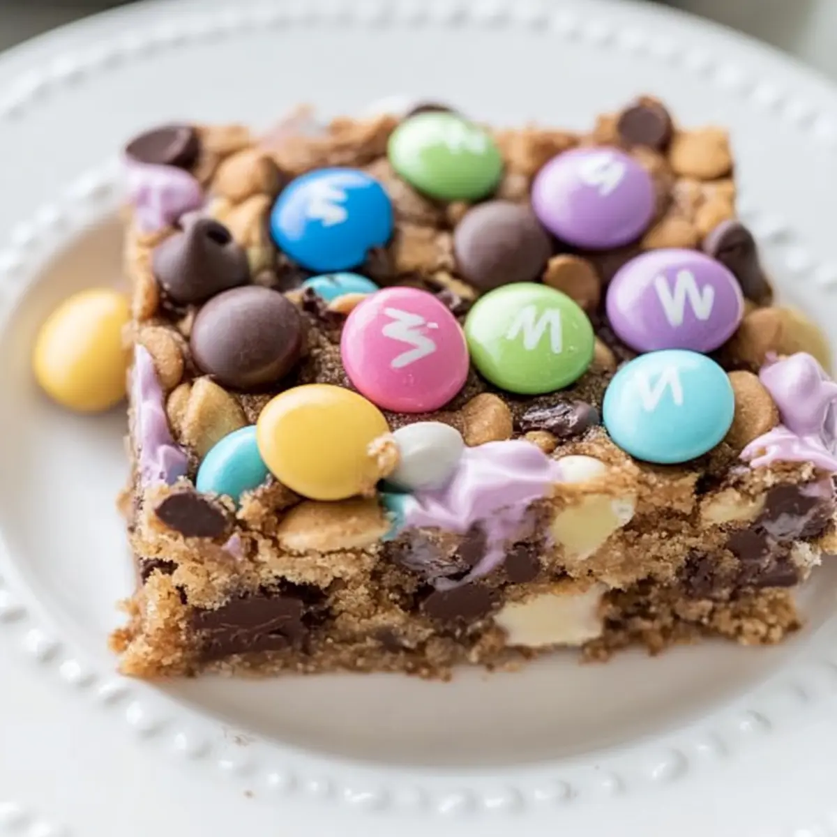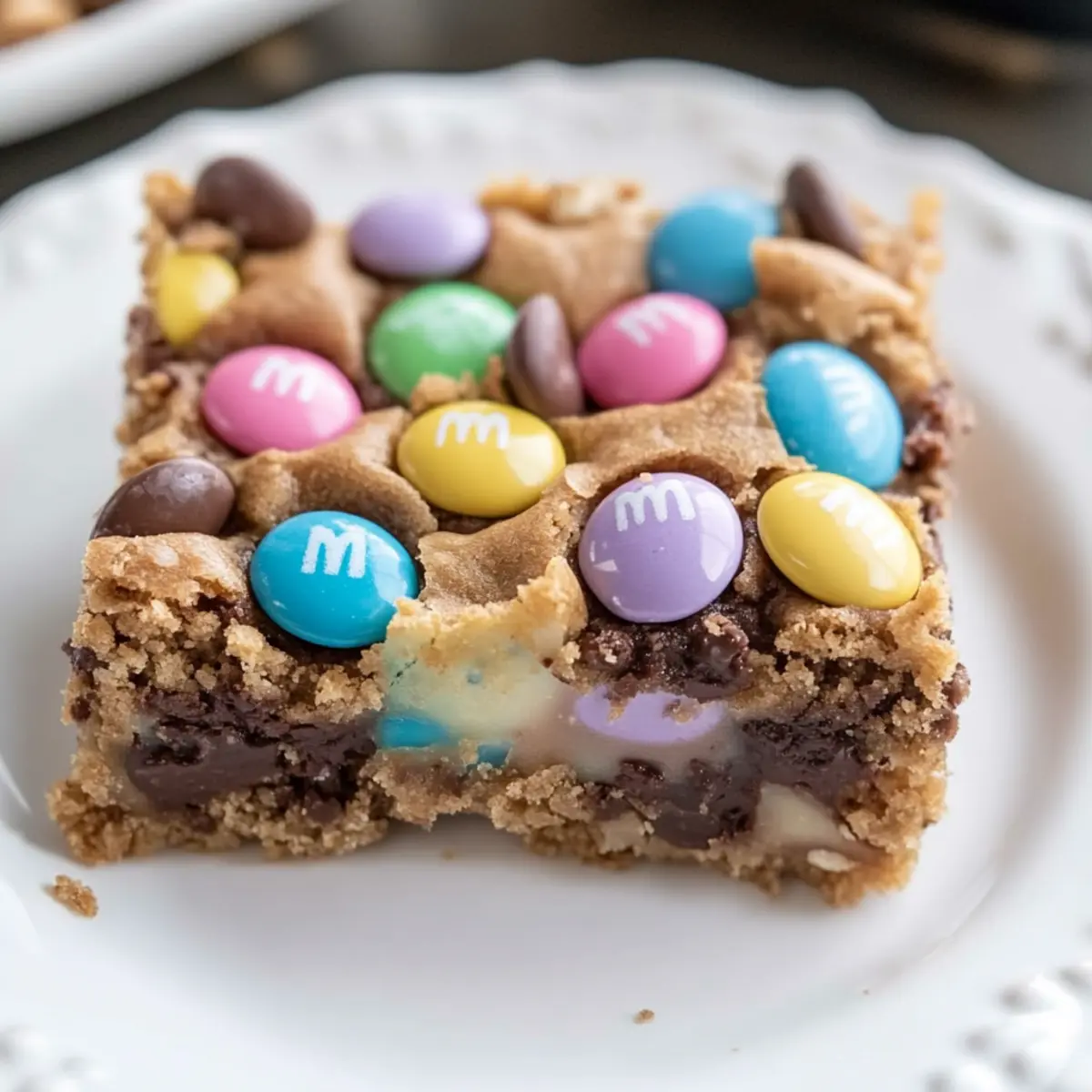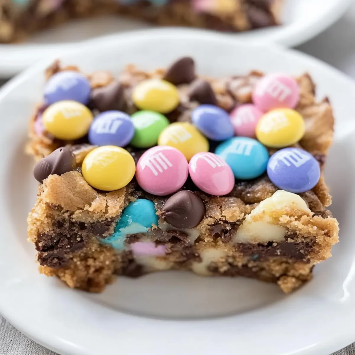 Jump to Recipe Print RecipeSpring is here, and with it comes the sweet promise of colorful treats! If you’re looking to elevate your Easter celebrations, my M&M Easter Cookie Bars are a delightful blend of graham crackers, creamy chocolate, and cheerful pastel candies that will brighten any gathering. Not only are these cookie bars incredibly quick to whip up, but they’re also among the most family-friendly desserts you’ll find, guaranteed to make both kids and adults smile. The beauty of this recipe lies in its customization; you can easily adapt it to fit your favorite flavors or dietary needs. So, why settle for store-bought when you can create something homemade that radiates joy? What fun twist will you add to yours? What Makes These Bars a Must-Try? Vibrant Flavor Explosion: The combination of rich chocolate, buttery graham crackers, and festive M&M’s brings together a mouthwatering medley that’s hard to resist. Quick & Easy: With just a few steps, you can whip up these delicious bars in no time, making them perfect for last-minute gatherings. Customizable Delight: Feel free to switch out ingredients for your favorites, like using peanut butter chips or adding nuts, ensuring everyone gets a treat they’ll love. Family-Friendly Appeal: These cookie bars are a sure-fire winner with kids and adults alike, making them a highlight at any spring celebration. Perfect for Sharing: Ideal for potlucks or family parties, they make serving dessert a breeze—cut them into small squares, and watch them disappear! You might also enjoy making these alongside Rhubarb Custard Bars for an unbeatable dessert table! M&M Easter Cookie Bars Ingredients For the Base • Graham Cracker Crumbs – Essential for the cookie base, can easily be made from crushed whole graham crackers. • Butter – Binds the mixture together; make sure it’s melted for the best consistency. For the Filling • Sweetened Condensed Milk – Adds moisture and sweetness; one 14 oz can is perfect for this recipe. • Quick Cook Oats – Gives a nice texture; can be replaced with rolled oats if preferred. For the Chocolate Layers • Chocolate Chips – Rich chocolate flavor; semi-sweet or dark works beautifully in these M&M Easter Cookie Bars. • Butterscotch Chips – Offers a sweet, contrasting flavor; feel free to replace with more chocolate chips if desired. For the Topping • Easter M&M’s – Adds a festive touch and crunchy sweetness; regular M&M’s are a fun alternative for year-round treats. Each ingredient plays an essential role in creating these delightful bars that are sure to become a family favorite! Step‑by‑Step Instructions for M&M Easter Cookie Bars Step 1: Preheat the Oven Begin by preheating your oven to 350°F (175°C), ensuring it reaches the perfect temperature for baking. This step is crucial as it sets the stage for your M&M Easter Cookie Bars to bake evenly. While the oven heats up, prepare your baking dish by lining it with parchment paper for easy removal later. Step 2: Combine the Crust Ingredients In a medium bowl, blend your melted butter with graham cracker crumbs until they are fully combined and resemble wet sand. This mixture should hold together when squeezed. Use a sturdy spatula or your hands for the best results, making sure the butter coats every crumb well, creating a deliciously buttery base for your cookie bars. Step 3: Press the Crust into the Dish Transfer the graham cracker mixture into your prepared 9×13 baking dish, pressing it firmly and evenly into the bottom to form a solid crust. This step is important as it will provide a sturdy foundation for your M&M Easter Cookie Bars. Use the flat bottom of a measuring cup or your fingers to ensure it’s tightly packed. Step 4: Add the Sweetened Condensed Milk Once the crust is in place, pour the sweetened condensed milk evenly over the graham cracker layer. Spread it gently to cover the surface completely, allowing the milk to seep into the crust slightly. This layer adds moisture and binds the bars together beautifully, setting up a delightful sweetness for your cookie bars. Step 5: Layer the Toppings Now it’s time to sprinkle the oats, chocolate chips, butterscotch chips, and colorful Easter M&M’s over the sweetened condensed milk layer. Distribute them evenly to ensure that each bite of your M&M Easter Cookie Bars is filled with a medley of textures and flavors. The vibrant M&M’s will also add a festive look to your dessert. Step 6: Bake the Cookie Bars Carefully place the baking dish in the preheated oven and bake for 25-30 minutes. You’ll know the bars are done when the edges are golden brown and the center is bubbly. Keep an eye on them towards the end of baking, as ovens vary, to prevent over-baking, which could make the bars too dry. Step 7: Cool and Cut After baking, remove the pan from the oven and let the bars cool in the dish for at least 10-15 minutes. This cooling period is essential for the structure, making them easier to cut. Once cooled, lift the bars out using the parchment paper and slice into squares for serving. Enjoy your deliciously festive M&M Easter Cookie Bars! Make Ahead Options These M&M Easter Cookie Bars are a fantastic choice for meal prep, saving you time on busy days! You can prepare the graham cracker crust and layer it with sweetened condensed milk up to 24 hours in advance; just cover it tightly with plastic wrap and refrigerate to maintain its freshness. If you’d like, you can also measure and mix the dry toppings—oats, chocolate chips, butterscotch chips, and M&M’s—storing them in separate airtight containers for up to 3 days. When you’re ready to bake, simply layer your toppings on the chilled milk layer and pop it in the oven for delicious results that are just as delightful as if freshly made! Expert Tips for M&M Easter Cookie Bars Butter Coating: Ensure the graham cracker crumbs are fully coated with melted butter for optimal adhesion; this helps the crust h