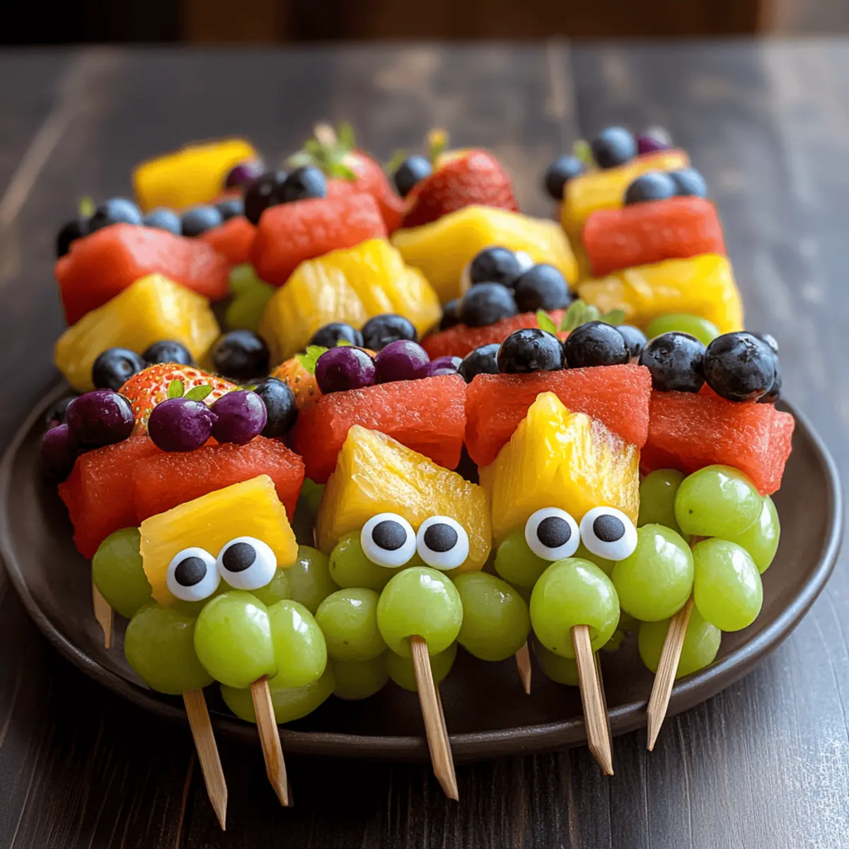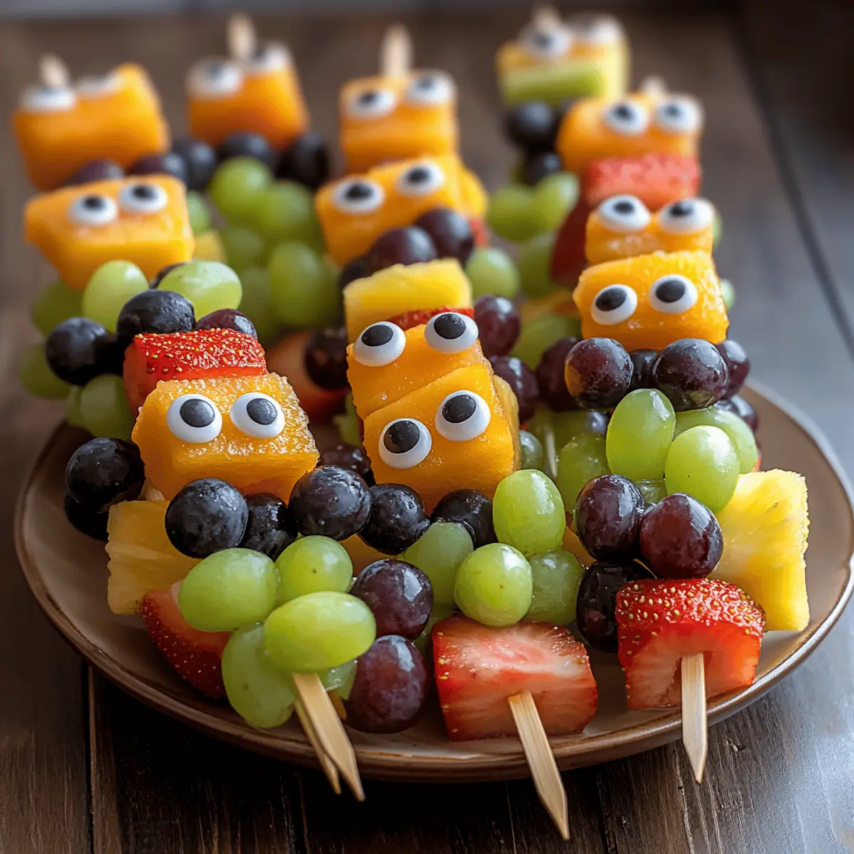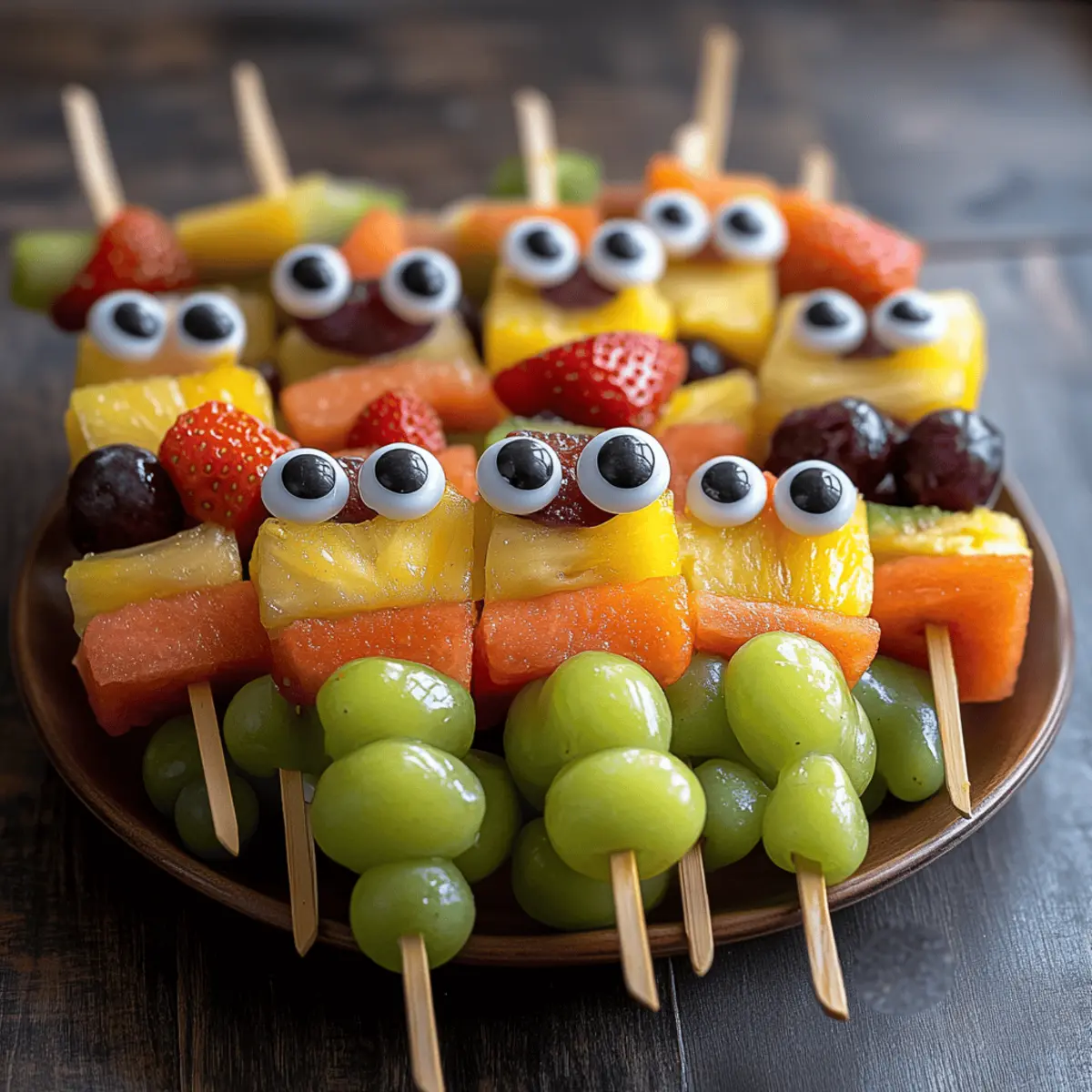 Jump to Recipe Print RecipeWith a playful flick of my wrist, I transformed an ordinary afternoon into a Halloween adventure filled with cheer and creativity. Enter Monster Fruit Skewers, the ultimate healthy Halloween snack that brings together juicy fruits and a sprinkle of whimsy. Not only are these colorful creations a breeze to whip up in just 15 minutes, but they also double as a fun activity for the kids, fostering their love for fresh, healthy foods. Each skewer is like a miniature work of art, perfect for parties or a spooky family gathering. You’ll love how this vibrant treat invites smiles, making it a go-to recipe for all ages when the spooky season rolls around. Curious about how to construct these delightful goblins of goodness? Let’s get started! Why Are Monster Fruit Skewers a Hit? Bright, Colorful Presentation: These skewers not only taste great but are visually stunning, making them a hit at any Halloween gathering. Healthy Snack Option: Packed with vitamins and natural sugars, they make a guilt-free alternative to traditional Halloween treats. Easy to Customize: Use your favorite fruits or seasonal options to keep it fresh; you can even turn them into a fun DIY activity for the kids! Instant Kid Appeal: With playful candy eyes, these skewers transform fruit into spooky monsters, drawing in even the pickiest of eaters. Quick and Simple: Ready in just 15 minutes, they are perfect for busy parents looking for a tasty snack without the hassle. For more fun and healthy Halloween inspiration, check out our Tropical Fruit Salad or the delightful High Protein Monster Energy Bites. Monster Fruit Skewers Ingredients For the Skewers • Green Grapes – Ideal for freshness and crunch; substitute with any firm, sweet grape variety. • Purple Grapes – Adds a lovely visual contrast and sweetness; any grape variety works! • Watermelon – A juicy base fruit that’s perfect for creative shapes; use cubed or balled pieces. • Pineapple – Provides a delightful balance of acidity and sweetness; replace with mango for a tropical twist. • Cantaloupe or Honeydew – Optional fruits for extra color and flavor; feel free to switch with any melon available. • Strawberries or Blueberries – Optional for a vibrant pop of color; choose any small, firm fruit you enjoy. For Decoration • Candy Eyes – These playful elements transform fruit into “monsters”; edible markers can work as a fun alternative. Assembly Tools • Wooden Skewers – Perfect for assembling your delicious fruit creations; metal skewers can be used for sturdiness. For Adhesive • Honey or Nut Butter – Great for attaching candy eyes securely; cream cheese or yogurt can also serve as tasty substitutes. Get ready to create some creepy yet delightful Monster Fruit Skewers that everyone will love! Step‑by‑Step Instructions for Monster Fruit Skewers Step 1: Wash and Prepare the Fruits Begin by washing 2 cups each of green and purple grapes, along with 1 cup of watermelon, and 1 cup of pineapple. Cut the watermelon and pineapple into bite-sized cubes or balls. If you choose to include cantaloupe, honeydew, or berries, prepare these as well. Make sure everything is dry and ready for assembly, as this will help the candy eyes stick better. Step 2: Assemble the Skewers Take your wooden skewers and start threading the prepared fruits onto them. Alternate colors and shapes for a visually exciting presentation, beginning with a piece of watermelon at the base, followed by grapes and a cube of pineapple. Aim to fill each skewer with a delightful mix of textures and flavors until you reach the top, leaving a little space for ease of handling. Step 3: Attach the Candy Eyes Grab your honey or nut butter and a small spoon. Use a dab of your adhesive on select fruit pieces where you want to place the candy eyes. Press the candy eyes onto the adhesive gently, ensuring they adhere well. This fun step transforms your fruit into spooky monsters, so get creative with placement, adding eyes wherever you feel whimsy strikes! Step 4: Serve and Display Arrange your finished Monster Fruit Skewers on a decorated platter, enhancing the Halloween theme with colorful napkins or spooky decorations. Consider placing them in a hollowed-out pumpkin for an extra festive touch. These vibrant skewers are not only fun to look at but also offer a healthy treat that both kids and adults will love during your Halloween celebrations. How to Store and Freeze Monster Fruit Skewers Fridge: Store any leftover Monster Fruit Skewers tightly covered in an airtight container for up to 3 days. This will help maintain their freshness and flavor. Prep Ahead: Feel free to prepare the fruits up to a day in advance by washing, cutting, and keeping them in airtight containers in the refrigerator. Assemble the skewers a few hours before serving. Freezer: It’s not recommended to freeze Monster Fruit Skewers as the textures of the fruits, especially watermelon and berries, may become mushy once thawed. Reheating: Since these skewers are served cold, simply take them out of the fridge and display them on a festive platter for instant enjoyment! What to Serve with Monster Fruit Skewers Brighten up your Halloween gathering with a delicious spread that pairs well with these fun and healthy snacks! Cheesy Garlic Bread: This crunchy, buttery treat adds a savory contrast, balancing the sweetness of the fruit skewers delightfully. Spooky Veggie Platter: Fresh, crunchy vegetables with dip create a colorful and healthy option that complements the fruit’s sweetness while offering variety. Chocolate-Dipped Pretzels: Combining sweet and salty, these treats add a fun crunch and a touch of indulgence to the festive spread. Fruit Dip: A creamy yogurt-based dip pairs beautifully with the skewers, enhancing the experience with a rich, smooth texture. Halloween Punch: A refreshing drink, ideally with a bit of fizz, complements the fruity theme and keeps guests cool and satisf
