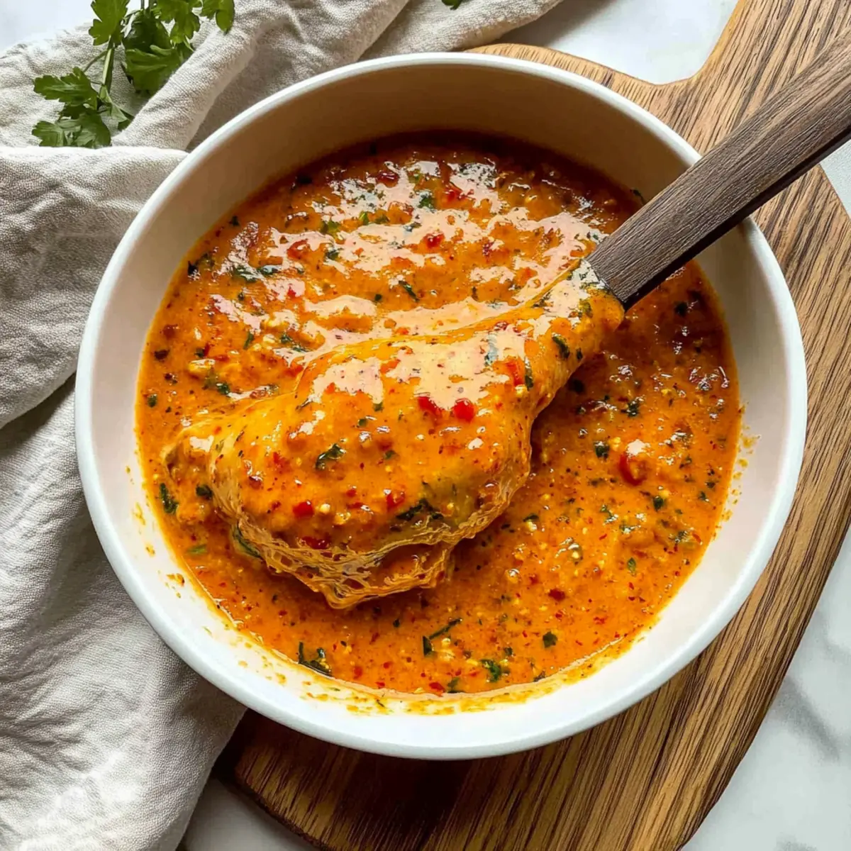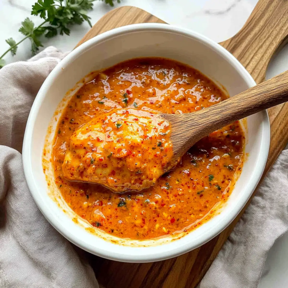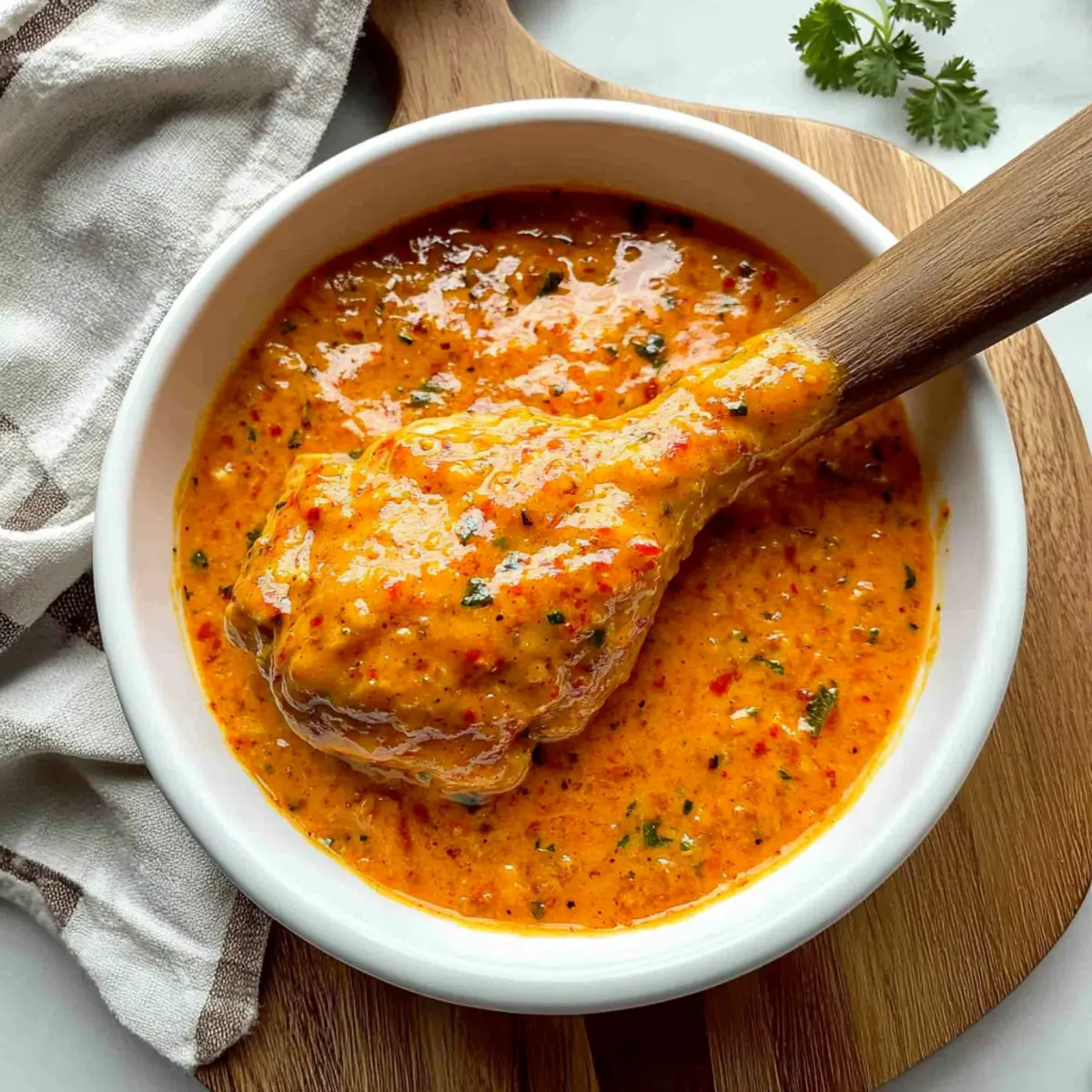 Jump to Recipe Print Recipe“Have you ever pondered the secret behind that unforgettable flavor from Nando’s? With this copycat Nando’s Peri Peri Sauce recipe, you won’t have to wonder any longer! In just five quick minutes, you’ll blend Thai red chilies, garlic, and a few other simple ingredients into a vibrant, spicy homemade sauce that’s perfect for marinating chicken, fish, or even drizzling on roasted veggies. Not only is this recipe a time-saver, but it also allows you to control the heat level to suit your taste buds! So, are you ready to elevate your meals and impress your family with this sensational homemade sauce? Let’s dive in and uncover the deliciousness together!” Why Make Homemade Peri Peri Sauce? Flavor Explosion: The moment you taste this homemade sauce, you’ll be delighted by the perfect balance of spice and smokiness. Customize to Your Liking: Adjust the heat level by varying the number of Thai red chilies, making it suitable for everyone’s palate. Quick and Easy: With just five minutes in a food processor, this recipe is a breeze, freeing up your time for other culinary adventures. Versatile Use: Not just for chicken! Drizzle it over roasted vegetables or use it as a zesty dipping sauce for fried snacks. Budget-Friendly: Skip the takeout and create Nando’s flavor at home without breaking the bank! Enjoy it as a marinade for your favorite meats or drizzle over a salad for added zest. If you’re craving something creamy, you might also explore our Cheesy Chicken Sauce for a different twist! Nando’s Peri Peri Sauce Ingredients • Get ready to spice up your cooking with these simple ingredients! For the Sauce Thai Red Chilies – These bring the heat; adjust the quantity (3-8) based on your spice preference. Red Bell Pepper – Adds a touch of sweetness and vibrant color; feel free to substitute with yellow or orange bell pepper for a different twist. Onion – Gives depth of flavor and texture; a small onion works best for a smooth sauce consistency. Lemon – Freshly zested and juiced, it brightens the sauce; always choose fresh lemons for optimal zing. White Vinegar – Offers a tangy kick; adjust the amount (1-2 tablespoons) to match your taste. Olive Oil (or Canola Oil) – Ensures a silky texture; any neutral oil can be swapped in as needed. Garlic – A vital flavor booster; use about 9 cloves for a robust taste, or reduce for a milder garlic flavor. Smoked Paprika – This is essential for authenticity, adding a smoky profile that’s reminiscent of traditional Peri Peri sauce. Dried Oregano – Adds a lovely herbal note; substitute with dried thyme if you can’t find oregano. Coarse Kosher Salt – Enhances the overall flavor; adjust based on your personal salt preference. Embrace the zest and flair of Nando’s Peri Peri Sauce with these delightful ingredients! Step‑by‑Step Instructions for Nando’s Peri Peri Sauce Step 1: Blend Ingredients Start by adding all your vivid ingredients into a food processor or blender—Thai red chilies, red bell pepper, onion, lemon zest and juice, white vinegar, olive oil, garlic, smoked paprika, dried oregano, and coarse kosher salt. Blend the mixture for 30–60 seconds until you achieve a desired texture; aim for a chunky consistency that will caramelize beautifully when used. Step 2: Taste and Adjust After blending, take a moment to taste your homemade Nando’s Peri Peri Sauce. It’s time to adjust the heat level; if you prefer more kick, add additional Thai red chilies and blend again for a few seconds. This step lets you customize the sauce to your perfect level of spice, ensuring it suits your taste buds just right. Step 3: Transfer and Store Once you’re happy with the flavor, carefully transfer the sauce into a clean jar or airtight container. Seal tightly and refrigerate for at least 30 minutes to allow the flavors to meld beautifully. This homemade Peri Peri Sauce can be stored in the refrigerator for up to a week, making it a quick go-to option whenever you need a flavor boost. Step 4: Marinate Chicken To use your zesty Nando’s Peri Peri Sauce, take chicken legs and place them in a large bowl. Generously coat the chicken with the sauce, ensuring every piece is well-covered. For the best flavor infusion, let the chicken marinate in the refrigerator for at least 4 hours, although a longer marinating time of up to 24 hours is ideal. Step 5: Cooking Method (Air Fryer) Preheat your air fryer to 400°F (204°C). Once ready, arrange the marinated chicken in the basket, skin side up. Lightly drizzle with oil to promote crispiness and cook for 15–18 minutes. Afterward, flip the chicken and cook for an additional 5–8 minutes, checking that the internal temperature reaches 165°F (74°C) for perfectly juicy, flavorful meat. Step 6: Oven Alternative If using an oven, preheat it to 425°F (218°C). Prepare a baking sheet lined with parchment paper for easy cleanup. Place the marinated chicken on the sheet and roast for 30–40 minutes, turning halfway through to ensure even cooking. The chicken should reach 165°F, giving you tender meat imbued with that delicious Nando’s Peri Peri flavor. What to Serve with Homemade Spicy Peri Peri Sauce? Elevate your culinary adventure with sides that perfectly balance the vibrant, spicy flavors of this homemade sauce. Grilled Corn on the Cob: The charred sweetness of grilled corn adds a delightful contrast to the heat of the sauce, making every bite pop with flavor. Cilantro Lime Rice: This fragrant and zesty rice serves as a perfect base, absorbing the sauce’s spicy kick while adding refreshing brightness. Roasted Vegetables: Tossed in olive oil and herbs, roasted veggies provide a hearty, earthy companion that complements the zing of Peri Peri. Creamy Coleslaw: Creamy coleslaw cools the palate and balances the spiciness of the sauce, creating a satisfying crunch with every bite. Avocado Salad: A fresh avocado salad brings a creamy texture to your p
