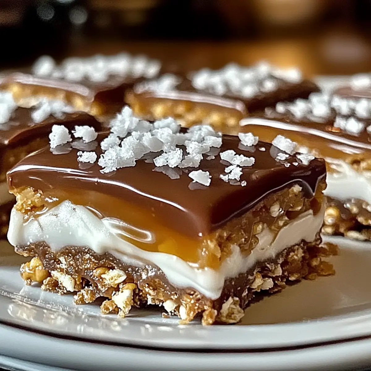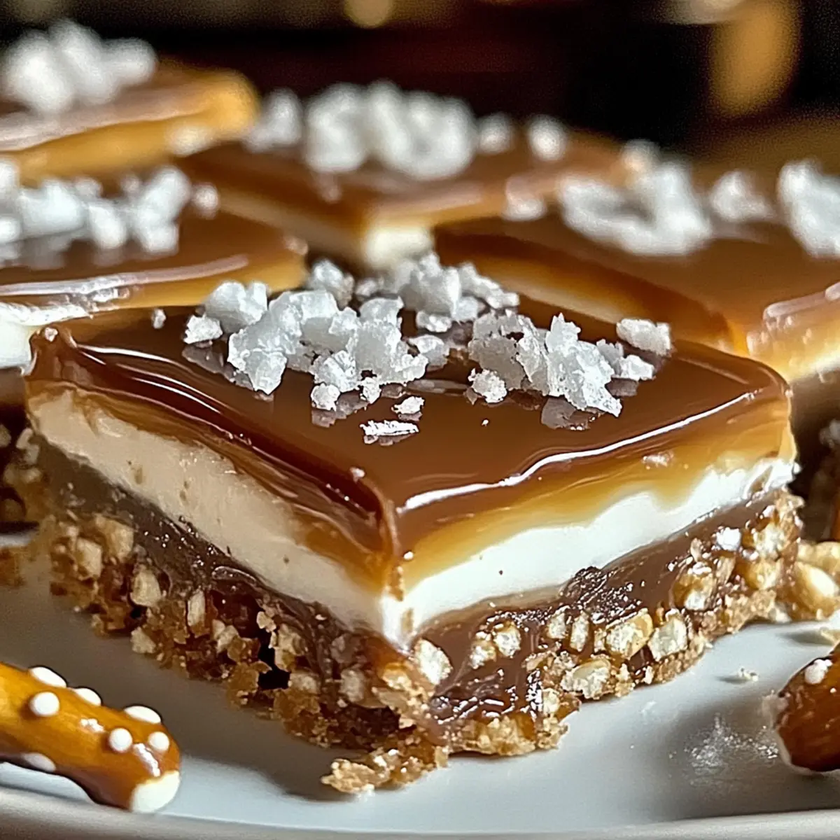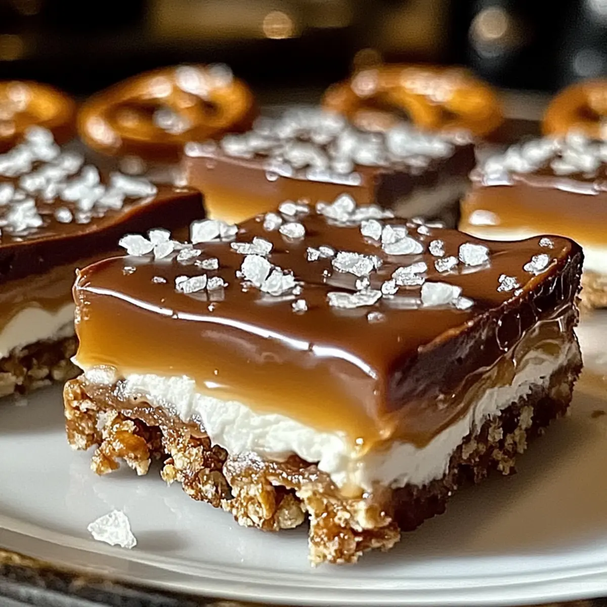 Jump to Recipe Print RecipeEvery home chef has those moments when simple and satisfying is the way to go. Let me introduce you to my No-Bake Salted Caramel Pretzel Bars, a stunning treat that balances sweet and salty with effortless charm. Not only is this recipe remarkably quick to make, but it also invites your creative spirit—customizing flavors and textures is an absolute breeze! Imagine serving them at your next gathering or enjoying them on a quiet evening in. Each bite offers a delightful crunch from the pretzels, paired with the gooey richness of caramel and a chocolatey finish that will make you swoon. Ready to whip up this easy, crowd-pleasing dessert that transforms your sweet cravings into a heavenly experience? Let’s dive into the indulgence! Why are these bars a must-try? Deliciously Unique: These No-Bake Salted Caramel Pretzel Bars combine salty pretzels and rich caramel, offering a flavor profile that’s both exciting and satisfying. Customizable Delight: With variations like graham cracker bases or nutty twists, you can make this treat your own! Quick and Easy: Made without an oven, you can whip these bars up in no time—perfect for last-minute gatherings. Crowd-Pleasing Treat: Their irresistible flavor and texture will enchant everyone, making them a standout at any party. Versatile Indulgence: Pair them with a scoop of ice cream or fresh berries for an elevated dessert experience that fits any occasion. You’ll fall in love with the effortless charm and delicious outcome of these treats! No-Bake Salted Caramel Pretzel Bar Ingredients For the Base Pretzels – Provides the crunchy texture; for a sweeter option, swap with crushed graham crackers. Unsalted Butter – Binds everything together and adds richness; use dairy-free margarine for a vegan twist. For the Caramel Layer Salted Caramel Sauce – The luscious star of the show; whether store-bought or homemade, it brings gooey sweetness to each bite. For the Topping Chocolate – Enhances the flavor and adds a rich finish; choose between dark or milk chocolate to cater to your palate. Feel free to get creative with these ingredients while making your No-Bake Salted Caramel Pretzel Bars! Step‑by‑Step Instructions for No-Bake Salted Caramel Pretzel Bars Step 1: Prepare the Base Begin by crushing 3 cups of pretzels into coarse crumbs using a food processor or by placing them in a zip-top bag and rolling over them with a rolling pin. In a medium saucepan, melt ½ cup of unsalted butter over low heat, ensuring it doesn’t brown. Once melted, combine the pretzel crumbs with the butter until evenly coated and all crumbs are moist. Step 2: Press Mixture Line an 8×8-inch baking dish with parchment paper, allowing some overhang for easy removal later. Pour the pretzel-butter mixture into the dish and use the back of a measuring cup or your hands to press it down firmly. Ensure the base is compact and even, creating a solid foundation for your No-Bake Salted Caramel Pretzel Bars. Step 3: Add Caramel Layer Take 1 cup of your favorite salted caramel sauce and drizzle it evenly over the pressed pretzel base. Use a spatula to gently spread the caramel, ensuring it covers the entire surface without disturbing the pretzel layer beneath. The gooey caramel should create a delightful contrast with the crunchy base, enhancing the overall texture of your bars. Step 4: Chill Cover the baking dish with plastic wrap or an airtight lid and place it in the refrigerator. Let it chill for 30-60 minutes, or until the caramel is set and firm to the touch. This cooling step is crucial for easy cutting later, as it allows the layers to meld together beautifully. Step 5: Top with Chocolate Melt ½ cup of chocolate (dark or milk, depending on your preference) in a microwave-safe bowl. Heat in 20-second intervals, stirring in between until smooth and fully melted. Once melted, drizzle the chocolate over the chilled caramel layer, creating a rich topping that complements the sweet and salty flavors of the No-Bake Salted Caramel Pretzel Bars. Step 6: Cut and Serve After the chocolate has set slightly, carefully lift the bars from the baking dish using the parchment overhang. Place them on a cutting board and slice into squares or rectangles with a sharp knife. Enjoy these delicious no-bake treats as a delightful snack or dessert, sharing them with friends and family for an indulgent experience! No-Bake Salted Caramel Pretzel Bars: Delicious Customizations Get ready to unlock your culinary creativity with these delightful No-Bake Salted Caramel Pretzel Bars, perfect for making them your own! Nutty Crunch: Substitute pretzels with crushed nuts like almonds or walnuts for a heartier texture. Mixing in more chopped nuts gives each bite a delightful crunch! Graham Cracker Base: Swap pretzels for crushed graham crackers to create a sweeter base. This twist will add a delightful cookie-like flavor that pairs beautifully with the caramel. Chocolate Options: Experiment with white, milk, or caramel-flavored chocolate for drizzling. This simple change can transform the bars into a charming variation that excites the palate. Spicy Kick: Add a dash of cayenne pepper to the melted chocolate for a surprising heat. The sweet and spicy combo will keep everyone guessing as to your secret ingredient! Vegan Option: Use dairy-free margarine and vegan chocolate to cater to plant-based diets. The end result remains indulgent and satisfying—everyone will love them! Fruit Infusion: Layer fresh bananas or strawberries on top before chilling for a fruity freshness. Not only does this add color, but it also complements the caramel beautifully. Sea Salt Finish: After drizzling the chocolate, lightly sprinkle with flaky sea salt to elevate the salty-sweet balance. This final touch makes each bar taste even more special. As you explore these variations, consider pairing your bars with a scoop of vanilla ice cream or a dollop of whipped cream for an extra indulgent experie