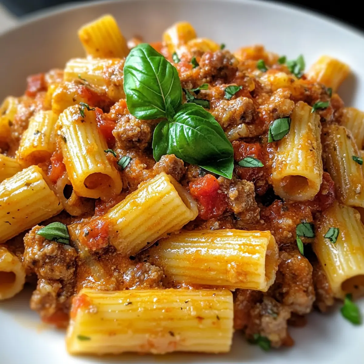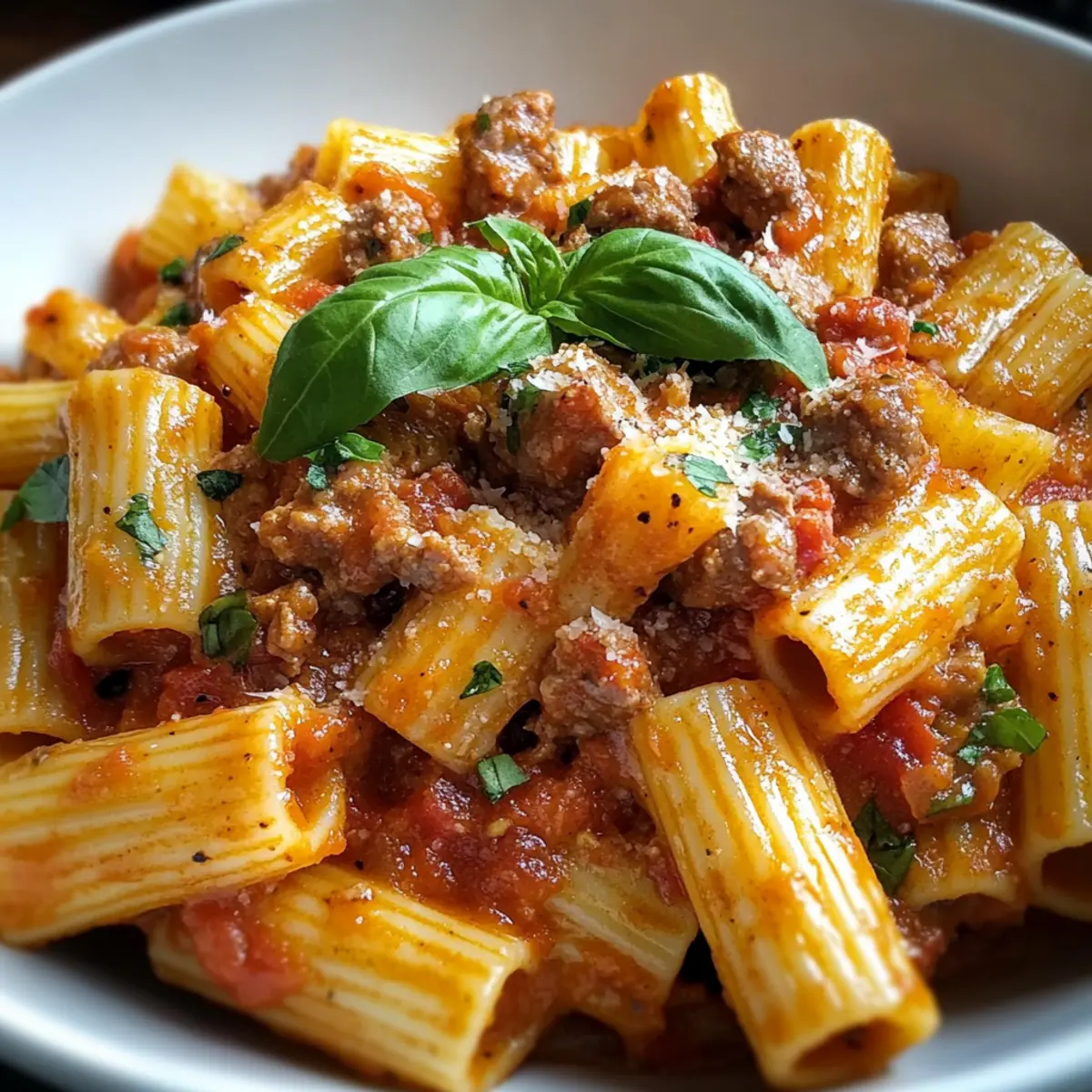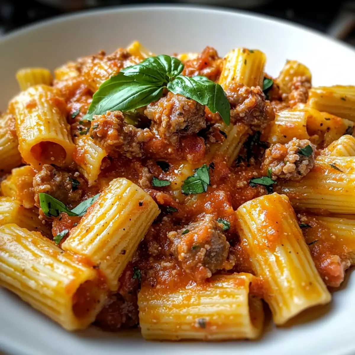 Jump to Recipe Print RecipeAs I add the final touches to a simmering pot of One Pot Spicy Rigatoni, the tantalizing aroma of garlic and spicy Italian sausage wafts through my kitchen, instantly elevating my mood. This beginner-friendly, one-pot meal is a lifesaver on those hectic weeknights when time feels scarce. The rigatoni perfectly soaks up the creamy tomato sauce, creating a comforting dish that’s both quick to prepare and packed with bold flavors. One of the best perks? You’ll enjoy minimal cleanup while impressing your loved ones with a gourmet experience right at home. Ready to transform your dinner routine into something thrilling? Let’s dive into this delicious recipe! Why is One Pot Spicy Rigatoni a Must-Try? Simplicity is key! With just one pot, you can whip up this delightful meal without the hassle of multiple dishes. Flavorful layers come from the combination of spicy Italian sausage, crushed tomatoes, and creamy goodness, making each bite a taste sensation. Versatility shines here—swap in plant-based sausage for a vegetarian twist or experiment with your favorite pasta shapes. Time-saving at its finest, this dish is ready in under 30 minutes, perfect for busy weeknights. Plus, it has serious crowd-pleasing potential—serve it at dinner parties, and watch everyone rave about it! For more easy ideas, check out our Cheesy Hamburger Potato casserole or the refreshing Feta Cranberry Rigatoni. One Pot Spicy Rigatoni Ingredients Experience the joy of cooking with these simple yet essential ingredients! For the Pasta Rigatoni pasta – Perfectly absorbs the creamy sauce; feel free to swap for penne or gluten-free pasta! For the Base Olive oil – Adds richness while sautéing; can be replaced with canola oil for a lighter option. Onion (1 medium, finely chopped) – Provides sweetness; yellow or sweet onions work best for this dish. Garlic (3 cloves, minced) – Aromatic flavor enhancer; you can adjust the quantity based on your taste preference. For the Protein Spicy Italian sausage (1 pound, casings removed) – Infuses bold, hearty flavor; substitute with mild sausage or plant-based alternatives for a vegetarian version. For the Sauce Red pepper flakes (1 teaspoon) – Increases the spice factor; omit for a milder, family-friendly dish. Crushed tomatoes (1 can, 28 ounces) – Core of your creamy sauce; try tomato puree as a substitute if needed. Chicken broth (1 cup) – Adds depth and umami; vegetable broth works well for a vegetarian twist. Heavy cream (½ cup) – Elevates the sauce’s creaminess; consider coconut milk for a dairy-free alternative. For the Finish Salt and pepper – Essential for balancing flavors; taste and adjust as needed. Grated Parmesan cheese (½ cup) – Enriches the dish with nutty flavor; use nutritional yeast for a vegan option. Fresh basil leaves – Great for garnishing and adds a refreshing touch to the finished meal. Step‑by‑Step Instructions for One Pot Spicy Rigatoni Step 1: Boil the Pasta Begin by bringing a large pot of salted water to a rolling boil over high heat. Once boiling, add the rigatoni and cook for about 10-12 minutes or until al dente, stirring occasionally to prevent sticking. Once cooked, drain the pasta and set it aside, letting it rest while you prepare the flavorful sauce. Step 2: Sauté the Onions In the same pot used for the pasta, heat 2 tablespoons of olive oil over medium heat. Add the finely chopped onion and sauté for 3-4 minutes until translucent and fragrant, stirring occasionally to avoid browning. This will create a lovely base for your One Pot Spicy Rigatoni, adding sweetness to balance the spices. Step 3: Add Garlic Next, stir in the minced garlic and sauté for an additional 30 seconds, allowing it to release its aromatic flavor. Keep a close eye to ensure the garlic does not brown, as this can make it bitter. The wonderful aroma will fill your kitchen, signaling that it’s time to move on to the next step. Step 4: Cook the Sausage Crumble the spicy Italian sausage into the pot and cook for 5-7 minutes, breaking it apart with a spoon until fully browned and cooked through. Stir occasionally to ensure even cooking and to allow the flavors to meld. This meat will add hearty richness to your creamy sauce, making your One Pot Spicy Rigatoni even more delicious. Step 5: Toast the Spices Sprinkle in the red pepper flakes and toast for about 1 minute. This step will enhance the flavors, making the dish pleasantly spicy. Be cautious not to overdo it on the heat level—adjust the amount based on your personal spice preference. Step 6: Combine Tomatoes and Broth Incorporate the crushed tomatoes and chicken broth into the pot, stirring well to combine all the ingredients. Bring the mixture to a gentle simmer and allow it to simmer for about 5–6 minutes, letting the sauce thicken slightly and the flavors develop. Your One Pot Spicy Rigatoni is coming together beautifully! Step 7: Add Cream and Season Lower the heat to medium-low, then pour in the heavy cream and season with salt and pepper to taste. Stir everything together until well combined and heated through. The cream will add a luscious texture to the sauce, making it rich and velvety. Step 8: Toss in the Pasta Return the drained rigatoni back into the pot, tossing it thoroughly to coat in the creamy sauce. Allow it to heat for another 2-3 minutes, so the pasta warms up nicely and absorbs some of that amazing flavor. Watch as the sauce clings lovingly to each piece of rigatoni. Step 9: Finish with Cheese Fold in the grated Parmesan cheese, stirring continuously until it melts into the sauce, creating an incredibly creamy and cheesy finish. The combination of flavors and textures will transform your One Pot Spicy Rigatoni into a comforting feast that’s hard to resist. Step 10: Serve and Garnish Serve your One Pot Spicy Rigatoni hot, garnished with fresh basil leaves for a pop of color and a hint of freshness. The delightful aromas and colorful 