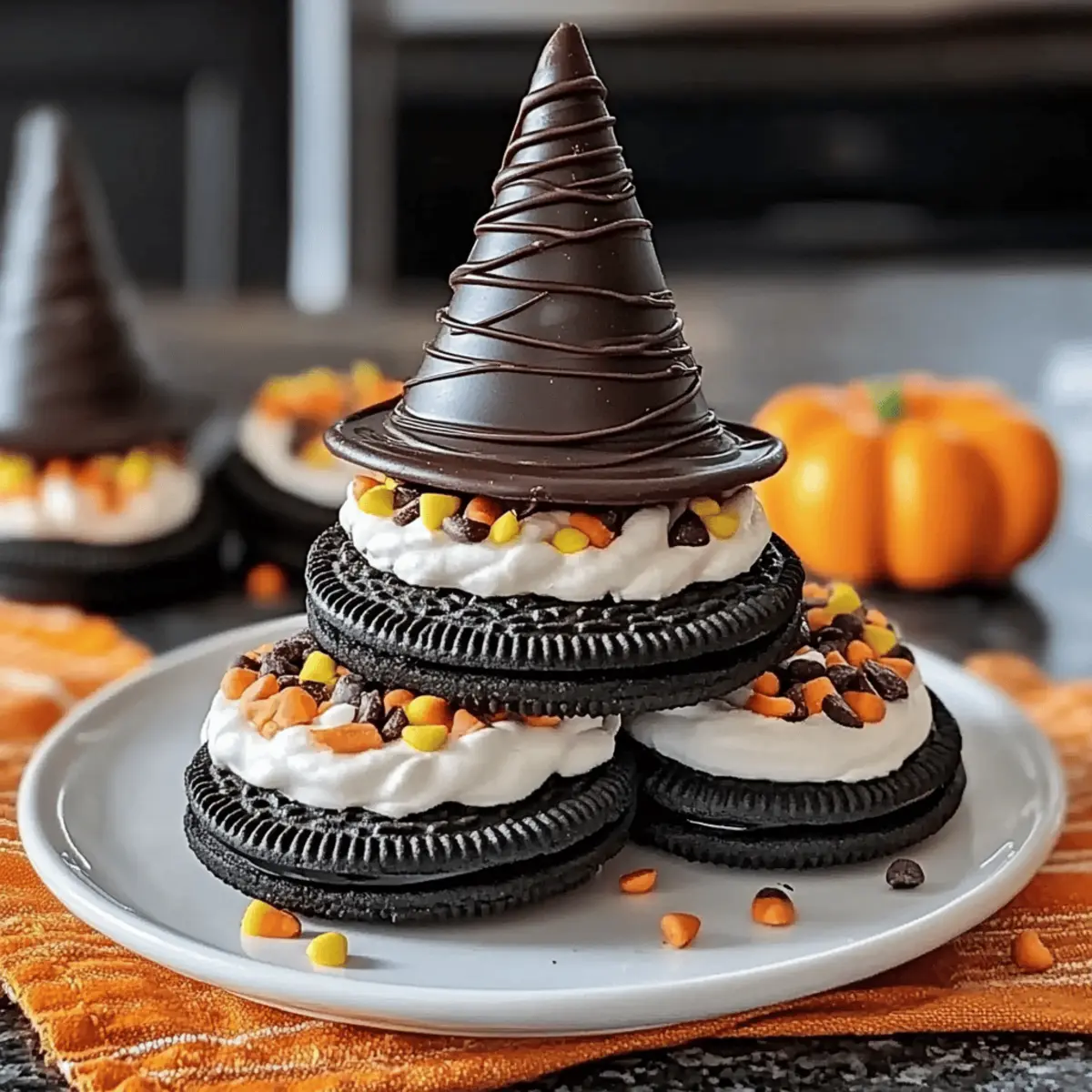 Oreo Witch Hat Cookies are delightful no-bake treats featuring crunchy Oreos, creamy filling, and chocolate kisses, perfect for Halloween gatherings.