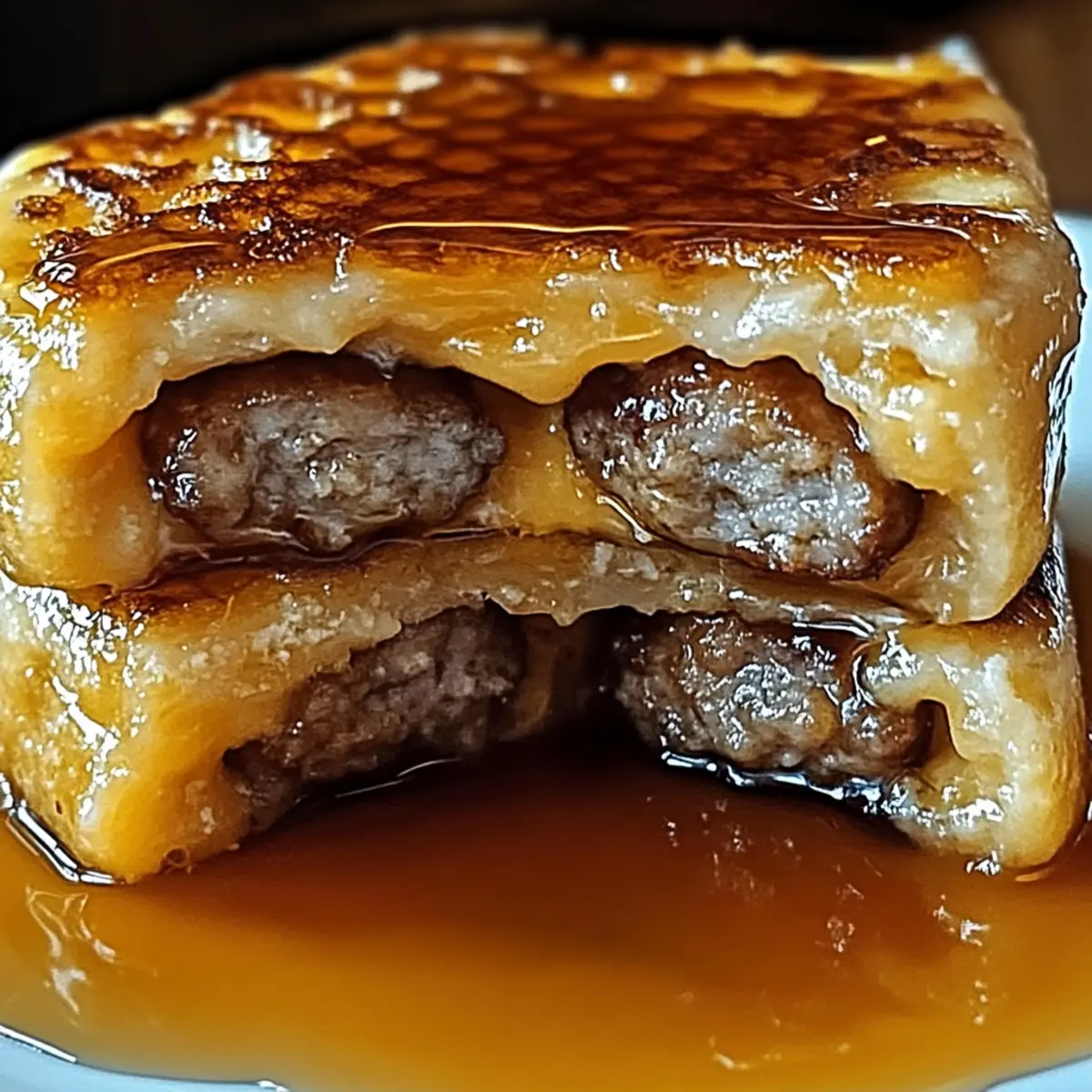 Jump to Recipe Print RecipeAs the aroma of breakfast wafts through the kitchen, I can’t help but smile at the thought of my go-to weekend dish: Pancake Sausage Casserole. This comforting recipe brings together the beloved flavors of fluffy pancakes and savory sausage into one warm, inviting bite. With its quick prep time, it’s an absolute lifesaver for those busy mornings or leisurely brunches, effortlessly feeding a crowd or just your hungry family. Plus, it’s wonderfully customizable—whether you prefer turkey sausage, plant-based options, or a handful of fresh veggies, the possibilities are endless. What delicious twists will you add to make this dish your own? Why is Pancake Sausage Casserole a Must-Try? Unmatched Convenience: This casserole is prepped and baked in under an hour, making it a fantastic option for busy mornings. Endless Customization: Whether you love classic pork sausage or prefer turkey or plant-based varieties, this recipe accommodates all. Savory-Sweet Perfection: The delightful balance of fluffy pancakes and savory sausage creates a comforting dish that satisfies every craving. Crowd-Pleasing Delight: Perfect for brunch gatherings or breakfast-for-dinner nights—everyone will want seconds (or thirds!). Make-Ahead Magic: Assemble the casserole a day in advance for effortless entertaining—simply pop it in the oven when you’re ready! You can easily pair it with some fresh fruit salad or serve it alongside a classic Cheesy Broccoli Casserole for a hearty breakfast spread. Why not try adding whipped cream and berries for a hotel-style brunch experience? Pancake Sausage Casserole Ingredients For the Casserole Base Pancake Mix – The fluffy structure is key; buttermilk pancake mix enhances lightness and flavor. Eggs – Acts as a binder, providing richness; use fresh eggs for the best results. Milk – Contributes creaminess; whole milk is ideal, but use what you have on hand. Butter – Greases the baking dish for a non-stick finish and adds delicious flavor. For the Savory Layer Breakfast Sausage – Adds savory goodness; feel free to use turkey or plant-based options for variety. For Sweetness Maple Syrup – Offers a sweet contrast to the savory sausage; opt for pure maple syrup for authentic flavor. Optional Fresh Additions Fresh Fruit – Serve on the side for a refreshing contrast to the casserole, enhancing the breakfast experience. With these ingredients, your Pancake Sausage Casserole will be deliciously comforting and adaptable to your taste! Step‑by‑Step Instructions for Pancake Sausage Casserole Step 1: Preheat and Prepare Begin by preheating your oven to 350°F (175°C). While the oven warms, greasing a large baking dish with butter is essential to prevent sticking. Use a paper towel or a brush to ensure every corner is covered, creating a canvas for your delicious Pancake Sausage Casserole. Step 2: Cook the Sausage In a large skillet over medium heat, add your choice of breakfast sausage. Cook for about 8–10 minutes, breaking it apart with a spatula as it browns. Ensure it’s evenly cooked and reaches a nice golden hue. Once ready, drain any excess grease, allowing the savory flavor to shine in the casserole. Step 3: Combine Wet Ingredients In a mixing bowl, combine the pancake mix, milk, and eggs. Gently stir the mixture until just combined, avoiding overmixing to maintain fluffiness. The batter should have a smooth consistency with a few small lumps. This step creates the delightful base for your Pancake Sausage Casserole. Step 4: Add Sausage and Syrup Next, fold in half of the cooked sausage and half of the maple syrup into the pancake batter. Stir gently until the sausage pieces are evenly distributed. The sweetness of the syrup balanced with savory sausage will elevate your casserole, ensuring every bite is a delicious experience. Step 5: Layer in the Baking Dish Pour half of the batter into the prepared baking dish, spreading it out evenly. Layer the remaining sausage over this base, ensuring even coverage for a savory bite in every serving. Finally, add the rest of the batter on top, creating a fluffy pancake layer that ties the casserole together. Step 6: Bake the Casserole Place the assembled Pancake Sausage Casserole in the preheated oven and bake uncovered for 30–35 minutes. You’ll know it’s done when the casserole is golden brown on top and springs back lightly when touched. A toothpick inserted in the center should come out clean, ensuring the batter is fully cooked. Step 7: Cool and Serve Once baked, remove the casserole from the oven and let it cool for about 5–10 minutes. This resting time allows the casserole to set, making it easier to slice and serve. Garnish with additional maple syrup and fresh fruit to enhance the presentation and flavor of your warm, inviting Pancake Sausage Casserole. Make Ahead Options These Pancake Sausage Casserole is perfect for busy home cooks! You can prepare the entire casserole up to 24 hours in advance—simply assemble the dish, cover it, and refrigerate it overnight. This allows the flavors to meld beautifully. To maintain its wonderful texture, let the casserole sit at room temperature for about 30 minutes before popping it into the oven. When you’re ready to bake, simply follow the original instructions and cook it directly from the fridge; it may need an additional 5-10 minutes in the oven. This make-ahead option not only saves you precious time but also ensures you can enjoy a delicious, comforting breakfast with minimal effort! Pancake Sausage Casserole Variations Feel free to make this Pancake Sausage Casserole your own with these delightful twists and turns! Turkey Sausage: Swap traditional breakfast sausage for turkey for a leaner option. This adds a lighter touch without sacrificing flavor. Plant-Based Delight: Use plant-based sausage for a tasty vegetarian version. It’s just as savory and perfect for accommodating meat-free diets. Veggie Boost: Incorporate chopped