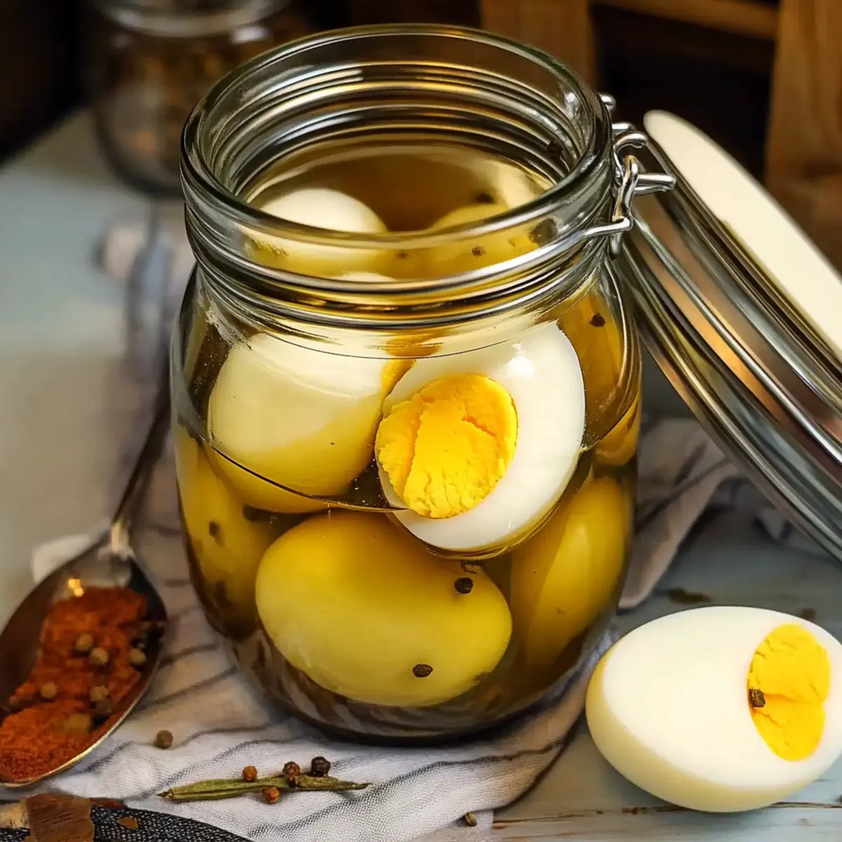 • Spicy Kick: Toss in sliced jalapeños or crushed red pepper flakes for a bold, flavorful punch. The heat mingles brilliantly with the tang of the brine, bringing excitement to every egg.