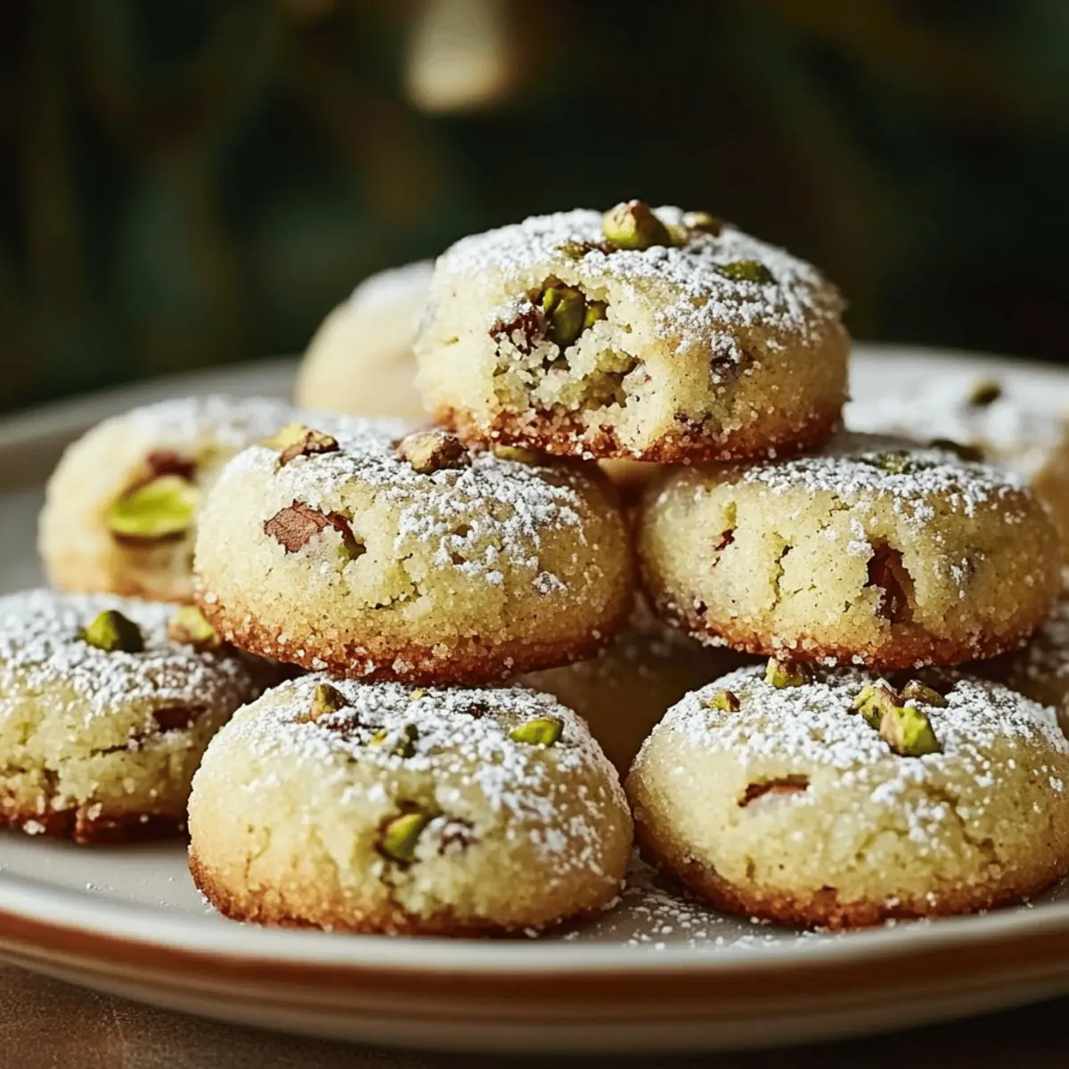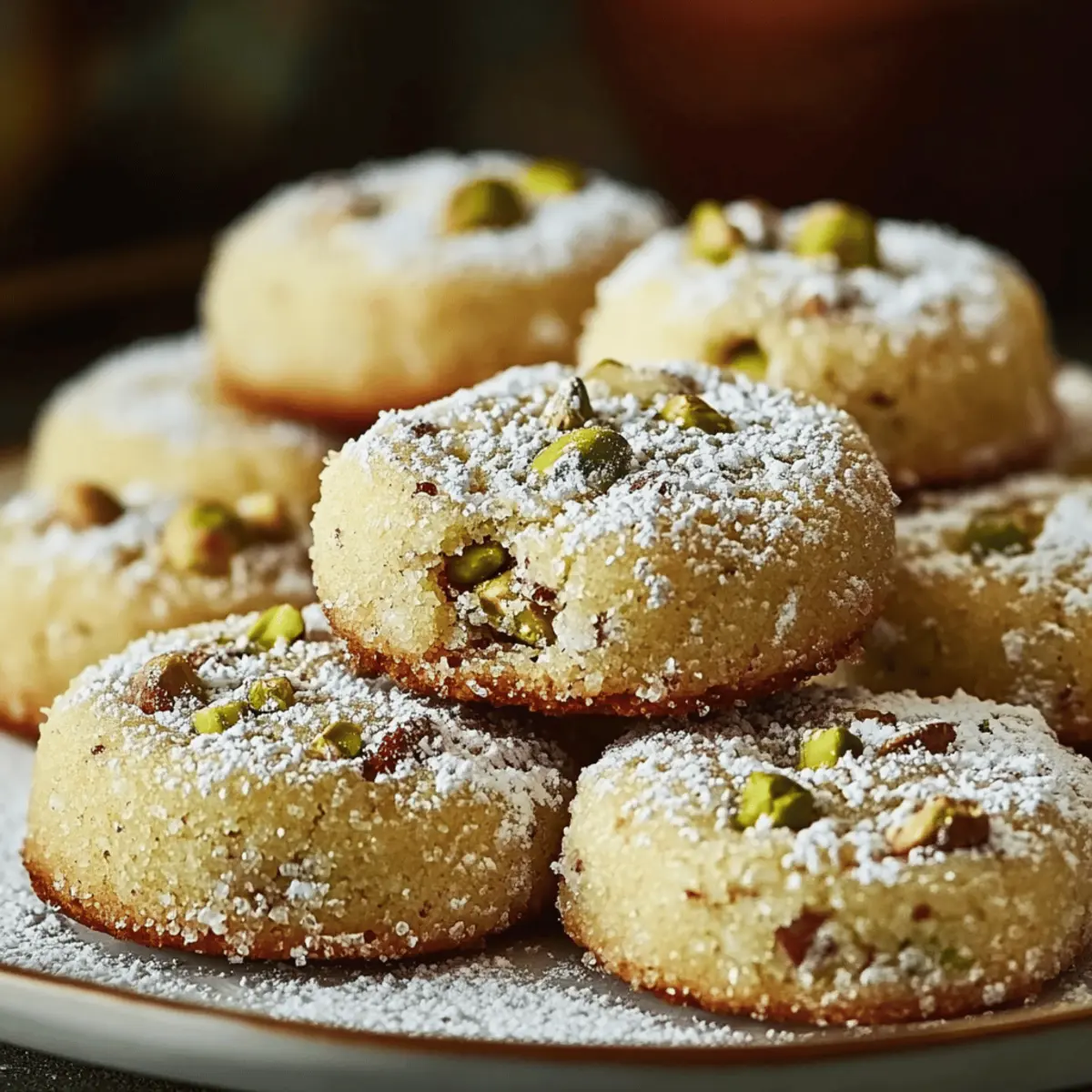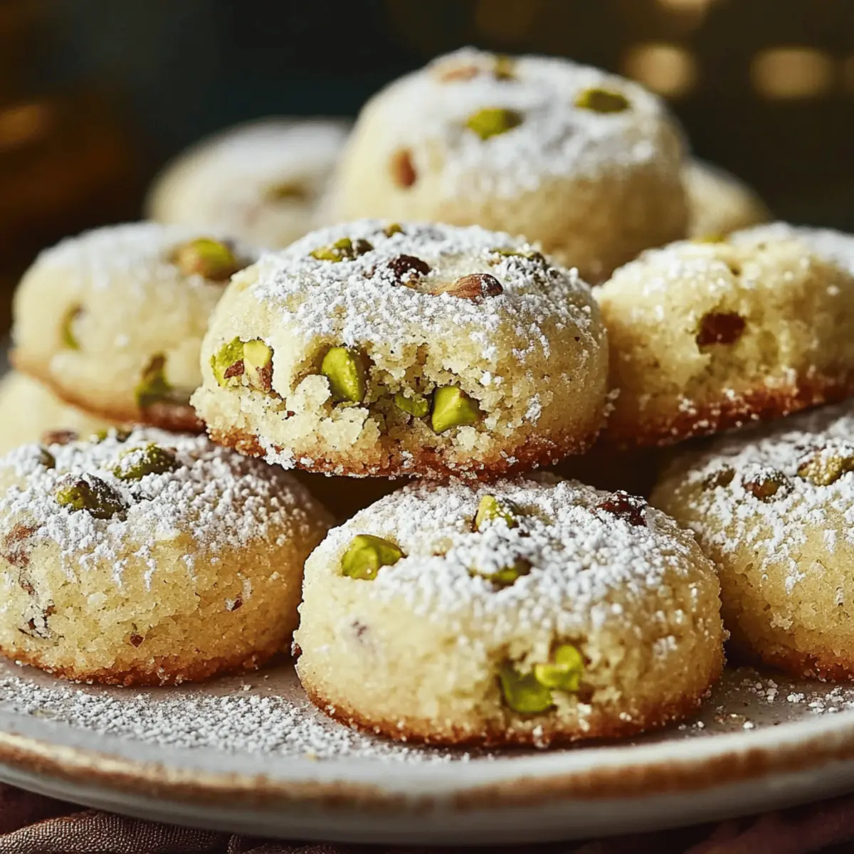 Jump to Recipe Print RecipeAs the warm scent of baking fills the air, I can’t help but smile at the thought of enjoying delightful Pistachio Wedding Cookies. These lovely little treats combine a subtle nuttiness with a light, crumbly texture that practically melts in your mouth. What’s even better is how easy they are to whip up—perfect for both seasoned bakers and those just beginning their culinary journey. With minimal ingredients and the option to customize with flavors like almond extract or even a decadent white chocolate dip, they become a versatile dessert for any occasion. Whether you’re celebrating a special event or simply seeking a cozy afternoon snack, these cookies are sure to bring a touch of elegance and joy to your table. Ready to create something delicious? Let’s dive into this delightful recipe! Why are Pistachio Wedding Cookies irresistible? Decadent, Nutty Flavor: The ground pistachios provide a unique nuttiness that elevates these cookies to a new level of deliciousness. Light, Crumbly Texture: Each bite offers a melt-in-your-mouth experience, reminiscent of traditional treats yet delightfully different. Simple and Quick: With just a handful of ingredients, whipping these up takes minimal time, so you can enjoy your homemade treats without a fuss. Versatile Presence: Whether served at weddings, holiday gatherings, or a simple tea time, these cookies impress every time. Try pairing with Chocolate Chip Cookies for a delightful dessert spread! Easy Customizations: From adding aromatic almond extract to dipping in white chocolate, feel free to experiment and make them your own! Pistachio Wedding Cookies Ingredients Get ready to bake these delightful treats! For the Cookies Unsalted Butter (1 cup) – Ensure it’s softened for easy creaming, which adds richness and moisture. Granulated Sugar (½ cup) – This ingredient sweetens the cookies and helps them rise perfectly. Powdered Sugar (¼ cup) – It not only sweetens but also contributes to the light, delicate texture of these Pistachio Wedding Cookies. Vanilla Extract (1 teaspoon) – Enhances the overall flavor with its warm notes. Almond Extract (½ teaspoon) – Offers a fragrant touch; feel free to replace it with other extracts for some variety. All-Purpose Flour (2 ¼ cups) – This acts as the main structure of the cookies; gluten-free flour requires adjustments for the best results. Baking Powder (½ teaspoon) – Essential for creating those light and airy cookies. Salt (¼ teaspoon) – Balances out the sweetness and amplifies the flavors of the other ingredients. Finely Ground Pistachios (1 cup) – The star of the show! Provides an earthy, nutty taste and a delightful texture. Powdered Sugar (for dusting) – A lovely finishing touch to add sweetness and charm to your cookies. Step‑by‑Step Instructions for Pistachio Wedding Cookies Step 1: Cream the Butter and Sugars In a large mixing bowl, beat 1 cup of softened unsalted butter with ½ cup granulated sugar and ¼ cup powdered sugar using an electric mixer. Mix on medium speed for 3-5 minutes until the mixture is light and fluffy, creating a pale, creamy texture that indicates it’s ready for the next step. Step 2: Add Extracts Next, add 1 teaspoon of vanilla extract and ½ teaspoon of almond extract to the creamed butter and sugars. Mix on low speed just until combined, allowing the warm notes of flavor to enhance the richness of your Pistachio Wedding Cookies without overmixing the batter—you’re looking for a smooth blend. Step 3: Combine Dry Ingredients In a separate bowl, whisk together 2 ¼ cups of all-purpose flour, ½ teaspoon of baking powder, and ¼ teaspoon of salt. This mixture serves as the backbone of your cookies, so ensure that it’s well mixed. Look for an even distribution of the dry ingredients before proceeding to the next step. Step 4: Grind Pistachios Take 1 cup of shelled pistachios and pulse them in a food processor until finely ground, resembling coarse flour. Be sure to stop before they turn into a paste; you want a crumbly texture that will add that delightful, nutty flavor to your cookies. Set the ground pistachios aside for the next step. Step 5: Incorporate Dry Ingredients Slowly add the flour mixture and the ground pistachios to the butter mixture, using a spatula or wooden spoon. Stir gently until just combined, ensuring not to overmix, which can make the cookies dense. The dough should begin to come together, leaving the sides of the bowl clean. Step 6: Chill the Dough Wrap the dough in plastic wrap and refrigerate for at least 30 minutes. This chilling process is crucial as it firms up the dough, preventing the cookies from spreading too much while baking. You’re aiming for a dough that’s easy to handle and holds its shape well in the oven. Step 7: Preheat Oven While the dough is chilling, preheat your oven to 350°F (175°C). Line two baking sheets with parchment paper to prepare for your beautifully shaped Pistachio Wedding Cookies. Your kitchen will soon be filled with a lovely aroma, so get ready for some baking magic! Step 8: Shape the Cookies Once chilled, remove the dough from the refrigerator. Roll it into 1-inch balls and arrange them evenly spaced on your prepared baking sheets. Be sure to leave about 2 inches between each ball, as they will spread slightly while baking, creating those lovely round shapes. Step 9: Bake Bake the cookies in your preheated oven for 10-12 minutes. Keep an eye on them; they are done when the edges turn lightly golden, while the centers stay soft. The contrast between the textures will give your Pistachio Wedding Cookies that delicious melt-in-your-mouth experience. Step 10: Cool the Cookies Once baked, let the cookies cool on the baking sheets for about 5 minutes before carefully transferring them to a wire rack. This step allows them to firm up slightly without losing their delicate texture—perfectly setting the stage for the final touches. Step 11: Dust wit