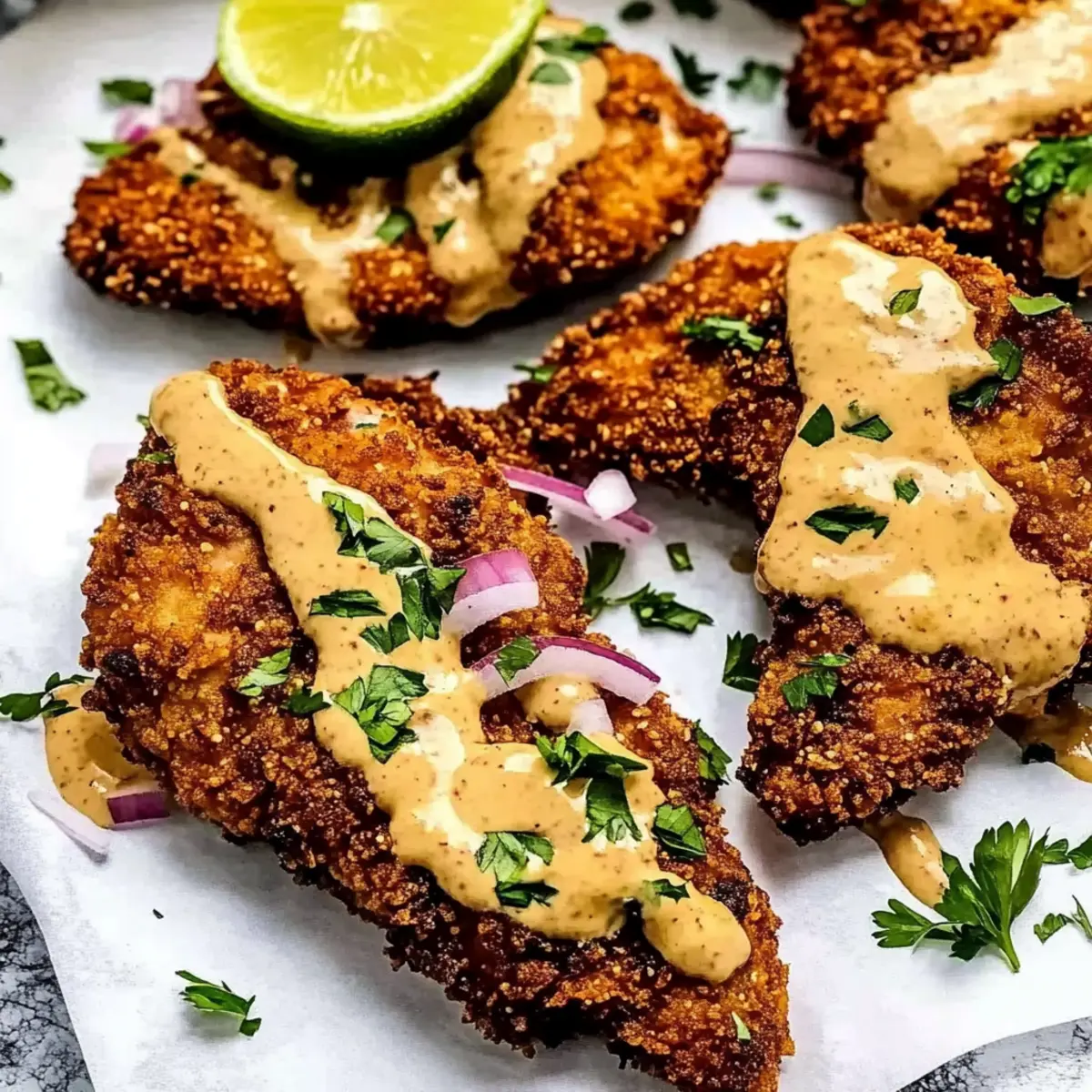 Jump to Recipe Print RecipeAs I stood at the kitchen counter, the aroma of frying chicken filled the air, taking me back to the comforting eatery around the corner from my childhood home. With a clever twist that elevates traditional fried chicken, this Crispy Pretzel Crusted Chicken with Cheddar-Mustard Sauce brings a delightful crunch and creamy richness right to your dining table. Not only is this recipe incredibly quick to whip up in just 30 minutes, but it’s also fully customizable, allowing you to play with flavors and textures to suit your mood. Whether you serve it with a crunchy salad or a side of roasted veggies, it guarantees warmth and satisfaction—perfect for busy weeknights or casual gatherings. Ready to try something deliciously different tonight? Let’s dive in! Why is Pretzel Crusted Chicken Amazing? Unparalleled Crunchiness: This recipe transforms ordinary chicken into a crunchy masterpiece with crispy pretzel coating that adds texture and flavor. Quick to Make: Ready in just 30 minutes, it’s an easy weeknight meal that doesn’t sacrifice taste for speed. Customizable: Experiment with various cheeses or grains—try it with pepper jack for a kick or panko for an alternative crunch! Flavor Harmony: The tangy Cheddar-Mustard Sauce beautifully complements the savory pretzel crust, creating a balance that’s simply irresistible. Family Favorite: This dish is sure to please both kids and adults alike, making it perfect for family dinners or casual gatherings. For more delicious chicken ideas, check out our Chicken Bacon Ranch or Cheesy Chicken Enchiladas recipes! Pretzel Crusted Chicken Ingredients • Get ready to create a crunchy delight! For the Chicken Chicken Breasts – Choose boneless and skinless for a hassle-free cooking experience. Crushed Pretzels – This ingredient delivers an unmatched crunch; use panko breadcrumbs for a different texture. Paprika & Cayenne Pepper – These spices add warmth and depth; adjust the cayenne for your heat preference. Salt & Pepper – Essential seasonings to enhance the overall flavor of your Pretzel Crusted Chicken. Eggs – Two beaten eggs will help the pretzel coating stick beautifully to the chicken. Vegetable Oil & Butter – Combining these is key for frying; it provides both flavor and crispiness. For the Cheese Sauce Flour – All-purpose flour is used to thicken the sauce for a luxuriously creamy texture. Milk – Any milk (whole, skim) works as a rich base for the cheese sauce. Sharp Cheddar Cheese – The star of the show! While sharp cheddar shines, feel free to experiment with pepper jack or Swiss. Mustard – Whole grain mustard adds a robust flavor; standard mustard can substitute if necessary. For the Garnish Fresh Parsley – Offers a splash of color and freshness to finish your dish beautifully. Red Onion – Finely chopped, it gives an optional crunch and adds a bit of bite to the dish. Now that you have all your ingredients lined up, let’s get cooking and savor the incredible flavors of this Pretzel Crusted Chicken! Step‑by‑Step Instructions for Crispy Pretzel Crusted Chicken Step 1: Prepare the Chicken Start by butterflying your boneless, skinless chicken breasts for even cooking. Place them in a zip-top bag and gently pound them with a meat mallet until they’re about ½ inch thick. This ensures that your crispy pretzel crust will adhere well and cook evenly. Step 2: Process the Pretzels In a food processor, pulse the crushed pretzels until they resemble coarse breadcrumbs. This should only take a few pulses—be careful not to turn them into a fine powder! Transfer the pretzel crumbs to a shallow dish, where they’ll be ready for coating your chicken. Step 3: Season the Breading In the dish with pretzel crumbs, mix in paprika, salt, and pepper to taste, ensuring even distribution. This seasoned coating not only adds flavor but also enhances the crunchiness of your Pretzel Crusted Chicken. Set the mixture aside, ready for the next step. Step 4: Prepare the Egg Wash In a separate bowl, beat the two eggs with a splash of water, creating a frothy mixture that will help the pretzel crumbs stick to the chicken. This step is crucial for achieving that perfect golden-brown crust, so be sure to mix thoroughly for an even consistency. Step 5: Heat the Oil In a large skillet, pour vegetable oil to a depth of ¼ inch and set the heat to medium-high. Allow the oil to heat until shimmering, which usually takes about 3-5 minutes. This ensures that your chicken will fry up crisp and delectable without absorbing too much oil. Step 6: Coat the Chicken Once the oil is hot, dip each chicken cutlet into the egg wash, allowing any excess to drip off. Then, press the chicken into the seasoned pretzel crumbs, coating both sides generously. This double-dipping technique is key to achieving a crunchy exterior on your Pretzel Crusted Chicken. Step 7: Fry the Chicken Carefully place the coated chicken cutlets into the hot oil, frying them for about 3-4 minutes on each side. Make sure they are golden brown and reach an internal temperature of 165°F for thorough cooking. Keep an eye on them to avoid burning while you fry. Step 8: Make the Cheese Sauce As the chicken cooks, melt 2 tablespoons of butter in a saucepan over medium heat. Whisk in 2 tablespoons of flour, stirring until smooth, and gradually add in 1 cup of milk. Continue whisking until the mixture thickens, which should take about 3-5 minutes. Step 9: Add Cheese and Mustard Once the milk mixture has thickened, reduce the heat and gradually stir in 1 cup of sharp cheddar cheese and 2 tablespoons of whole grain mustard. Mix until the cheese is fully melted and the sauce is creamy. This will be the perfect rich accompaniment to your crunchy chicken. Step 10: Serve and Garnish Plate your crispy pretzel crusted chicken and generously drizzle the cheddar-mustard sauce over the top. For a fresh touch, sprinkle chopped parsley and chopped red onion, if using. The comb