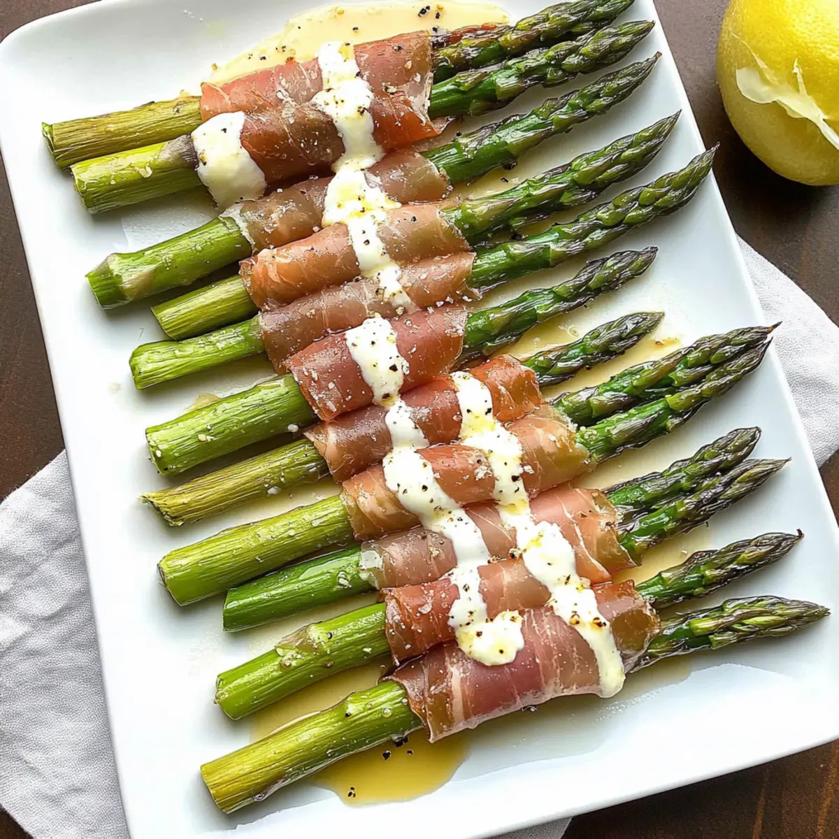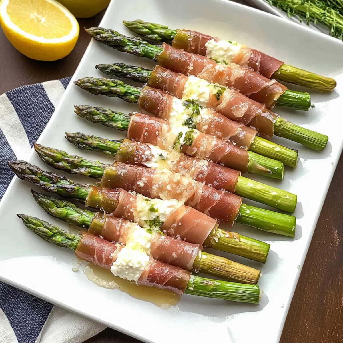 • Experiment with Garnishes: Get creative: Besides Parmesan and balsamic glaze, consider adding herbs for a unique flavor twist to your Prosciutto Wrapped Asparagus.