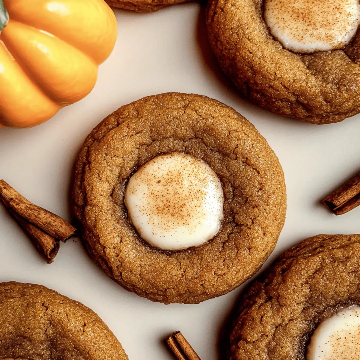 Jump to Recipe Print RecipeThe scent of cinnamon and nutmeg fills the air as autumn leaves dance outside my window, stirring memories of cozy gatherings and festive feasts. Today, I’m thrilled to share my cherished recipe for Pumpkin Cheesecake Cookies—an irresistible fall dessert that marries the warm, comforting flavors of pumpkin with the creamy delight of cheesecake. These cookies are not only quick to whip up but also guarantee to impress guests and family alike with their chewy texture and rich filling. Whether you’re hosting a harvest celebration or snuggling up with a warm drink, these cookies will certainly elevate your dessert game. What’s your favorite way to enjoy pumpkin treats during this season? Why are Pumpkin Cheesecake Cookies a must-try? Unique Flavor Fusion: These cookies blend pumpkin and creamy cheesecake filling into every bite, creating a delightful treat that captures the essence of fall. Quick and Simple: Perfect for anyone, even those new to baking. Just mix, chill, and bake for a fuss-free dessert that’s ready in no time! Crowd-Pleasing Delight: With their chewy texture and aromatic pumpkin spice sugar coating, these cookies are sure to impress at any gathering or cozy night in. Versatile Variations: Feel free to experiment! Try swapping pumpkin puree for sweet potato, or add a hint of cocoa for a chocolate twist, ensuring there’s always something new to discover. Ideal for Pairing: Enjoy with a cup of coffee or hot chocolate for the ultimate cozy dessert experience. You might also love the Bake Cheesecake Discover or some delectable Chocolate Chip Cookies on the side! Pumpkin Cheesecake Cookies Ingredients For the Cheesecake Filling Cream Cheese – Provides the creamy cheesecake filling; using full-fat ensures the best texture. Granulated Sugar – Sweetens the filling; you can substitute with brown sugar for a deeper flavor. Vanilla Extract – Enhances the filling’s overall flavor; no substitutes needed here. For the Cookie Dough Butter – Adds richness and helps achieve a soft cookie texture; opt for unsalted butter for better control over salt levels. Dark Brown Sugar – Contributes moisture and a richer flavor; light brown sugar is a suitable alternative. Pumpkin Puree – The star ingredient; adds moisture and flavor but make sure to drain excess moisture before use. Egg – Binds the ingredients; it’s crucial not to substitute this as it affects the cookie structure. All-Purpose Flour – Provides necessary structure; gluten-free flour can be used, just note modifications may be needed. For the Spices Ground Cinnamon, Allspice, Nutmeg, Ginger – These spices create the quintessential fall flavor combo; 1 tablespoon of pumpkin spice can replace all if needed. Baking Powder & Baking Soda – Leavening agents for the cookies; ensure they’re fresh for the best rise. Salt – Balances out sweetness and enhances flavors, essential for a well-rounded taste. Now you’re all set to create these delightful Pumpkin Cheesecake Cookies that will warm your heart! Step‑by‑Step Instructions for Pumpkin Cheesecake Cookies Step 1: Prepare Cheesecake Filling In a mixing bowl, combine the cream cheese, granulated sugar, and vanilla extract. Using an electric mixer, blend the ingredients on medium speed until the mixture is smooth and creamy, about 3-4 minutes. This rich filling will provide a delightful core for your Pumpkin Cheesecake Cookies, so ensure there are no lumps. Set aside while you make the cookie dough. Step 2: Make Cookie Dough In a medium saucepan, melt the unsalted butter over low heat, then allow it to cool slightly. In a large mixing bowl, whisk together the granulated sugar and dark brown sugar until combined. Stir in the cooled butter, followed by pumpkin puree, egg, and vanilla extract. Mix until all ingredients are seamlessly blended, creating a rich, flavorful base for the cookies. Step 3: Combine Dry Ingredients In a separate bowl, whisk together the all-purpose flour, baking powder, baking soda, ground cinnamon, allspice, nutmeg, ginger, and salt until evenly mixed. Gradually fold this dry mixture into the wet ingredients from Step 2 using a spatula, stopping when just combined. Avoid overmixing to keep your Pumpkin Cheesecake Cookies soft and chewy! Step 4: Chill Dough Cover the cookie dough with plastic wrap or a clean kitchen towel and refrigerate it for at least 1 hour. Chilling the dough is crucial as it helps firm up the texture, making it easier to shape the cookies and preventing them from spreading too much during baking. Step 5: Shape Cookies Preheat your oven to 350°F (175°C) and line a baking sheet with parchment paper. Using a cookie scoop, portion out the chilled dough and roll each piece into a ball. Once formed, roll the dough balls in a mixture of pumpkin spice sugar to coat them. This will add an aromatic, flavorful outer layer to your Pumpkin Cheesecake Cookies. Step 6: Fill with Cheesecake Flatten each dough ball gently on the prepared baking sheet, then create a small indent in the center of each cookie. Spoon a small dollop of the cheesecake filling into each indent, ensuring it’s centered. This step makes your cookies irresistibly delightful, with that creamy surprise inside every bite. Step 7: Bake Bake the cookies in the preheated oven for 9-11 minutes, or until the edges are lightly golden while the centers appear soft. Don’t overbake; the cookies will continue to firm up as they cool. Once done, allow them to cool on the tray for a few minutes before transferring them to a wire rack to cool completely, ensuring the perfect texture. What to Serve with Pumpkin Cheesecake Cookies? Elevate your cozy autumn gatherings with delightful additions that enhance every bite of these scrumptious cookies. Creamy Hot Chocolate: The rich chocolate flavor pairs beautifully with pumpkin, delivering a warm and inviting treat that feels like a hug in a mug. Spiced Apple Cider: Enjoy the comforting flavors of