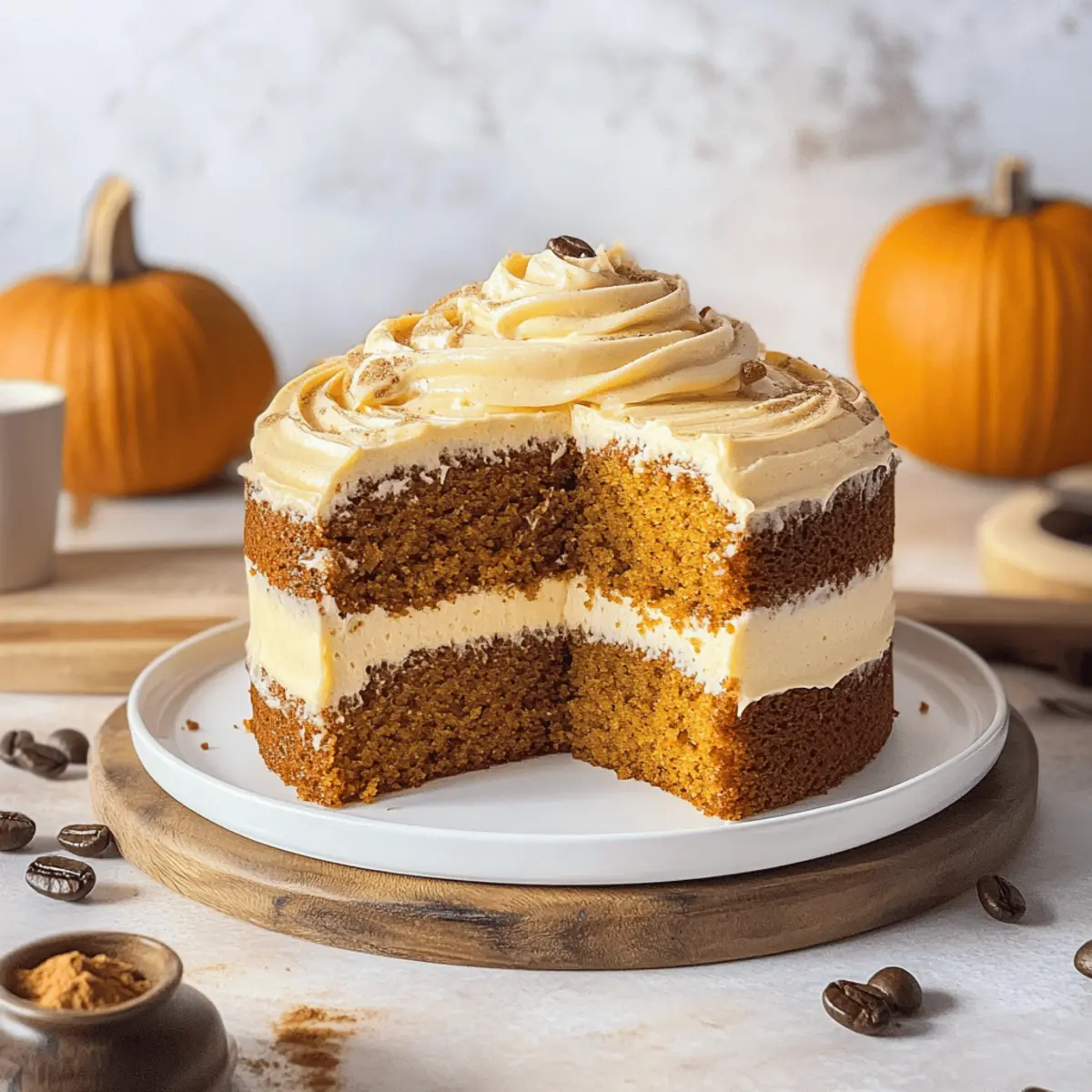 Jump to Recipe Print RecipeAs autumn blankets the world with its warm hues, the scent of pumpkin spice dances through the air, evoking cozy memories and heartfelt gatherings. I can’t help but smile when I think about my Pumpkin Spice Latte Cake—a delightful fusion of rich pumpkin puree and a homemade blend of spices that captures the essence of fall. This cake is not only a crowd-pleaser but also a breeze to prepare, making it the perfect centerpiece for your next gathering. With layers of moist cake smothered in luscious coffee cream cheese frosting, it’s a comforting masterpiece that will enchant both friends and family. Are you ready to embrace the flavors of the season? Let’s dive into this delightful recipe! Why is Pumpkin Spice Latte Cake a Must-Try? Irresistible Flavors: The delightful blend of pumpkin and spices creates a taste sensation that’s perfect for cozy gatherings. Easy to Make: This recipe simplifies baking—perfect for both novice and experienced chefs alike. Perfectly Moist: Thanks to the pumpkin puree, each slice remains incredibly moist and tender, ensuring no dry bites here! Stunning Presentation: Layering with cream cheese frosting not only elevates the flavor but also makes for a show-stopping dessert. Hello, Autumn: Celebrate the essence of fall with a cake that’s perfect for any festive occasion. Pair it with a steaming cup of coffee or tea for the ultimate experience, and check out other delicious options like Bake Oreo Cheesecake to complement your dessert table! Pumpkin Spice Latte Cake Ingredients For the Cake Self-raising flour – Acts as the structural base for a light and fluffy cake; you can substitute with all-purpose flour mixed with 2 teaspoons of baking powder if needed. Pumpkin spice mix – Infuses the cake with warm and cozy flavors; making your own with cinnamon, nutmeg, and allspice adds a personal touch. Vegetable oil – Keeps the cake moist and tender; melted butter can be used for a richer flavor if you prefer. Eggs – Essential for giving structure and moisture; remember to use room temperature eggs for the best emulsion. Vanilla extract – Enhances the overall flavor; opt for pure vanilla extract for the most aromatic and authentic taste. Light brown sugar – Adds a hint of caramel sweetness; feel free to substitute with granulated sugar, but note that it will slightly alter the flavor. Canned pumpkin puree – Provides a rich pumpkin flavor and moisture; for an alternative, freshly baked and pureed pumpkin works just as beautifully. For the Frosting Instant coffee granules – Adds a delightful coffee flavor to the cream cheese frosting; decaf granules can be used if you’re looking for a caffeine-free option. Unsalted butter – Serves as the primary fat for the frosting; ensure it’s softened for easy mixing and spreading. Icing sugar – Sweetens the frosting and gives it a smooth texture; adjust to your desired level of sweetness. Full-fat cream cheese – Contributes creaminess to the frosting; keep it cold until you’re ready to mix for the best consistency. Now you have all the essential ingredients ready to create your Pumpkin Spice Latte Cake, a delightful treat that encapsulates the flavors of fall with every bite! Step‑by‑Step Instructions for Pumpkin Spice Latte Cake Step 1: Preheat the Oven Begin by preheating your oven to 160°C fan or 180°C conventional. While it’s heating, grease and line two 7-inch round cake tins with parchment paper to ensure easy release after baking. This initial preparation will help set the stage for a beautifully baked Pumpkin Spice Latte Cake. Step 2: Combine Dry Ingredients In a medium bowl, sift together the self-raising flour and homemade pumpkin spice mix. Whisk these dry ingredients until evenly combined, ensuring there are no lumps. This step is crucial for achieving a light and fluffy cake texture, which perfectly complements the autumnal flavors of the Pumpkin Spice Latte Cake. Step 3: Mix Wet Ingredients In a separate, larger bowl, whisk together the vegetable oil, room temperature eggs, vanilla extract, and light brown sugar until well combined and slightly frothy. Next, gently fold in the canned pumpkin puree, which adds moisture and depth of flavor to the batter. This rich mixture will create a base for your delightful cake layers. Step 4: Combine Wet and Dry Mixtures Now, carefully pour the wet mixture into the bowl containing the dry ingredients. Use a spatula to mix everything together gently until just combined; avoid overmixing to keep the cake light and airy. The key is to see a uniform batter without dry streaks—your Pumpkin Spice Latte Cake batter is now beautifully prepared. Step 5: Bake the Cakes Divide the batter equally between the two prepared cake tins, spreading it evenly with a spatula. Place them in the preheated oven and bake for 45-50 minutes. The cakes are done when they spring back lightly when pressed and a toothpick inserted into the center comes out clean. Let them cool in the tins for about 15 minutes before transferring to a wire rack. Step 6: Prepare the Frosting While the cakes cool, prepare your frosting. Dissolve the instant coffee granules in a small bowl with a couple of tablespoons of boiling water. Allow this mixture to chill for 10 minutes. Meanwhile, in a mixing bowl, beat the softened unsalted butter until pale and creamy, then gradually mix in the icing sugar until smooth. Step 7: Finish the Frosting Now, gently fold in the cooled coffee mixture and the full-fat cream cheese until perfectly combined and smooth. Be careful not to overmix to prevent the frosting from becoming too runny. This luscious coffee cream cheese frosting is what will take your Pumpkin Spice Latte Cake to the next level. Step 8: Assemble the Cake To assemble, place one layer of the cooled cake on a serving stand. Spread half of the frosting evenly over the top, creating a beautiful layer of creamy goodness. Then, gently place the second cake layer 