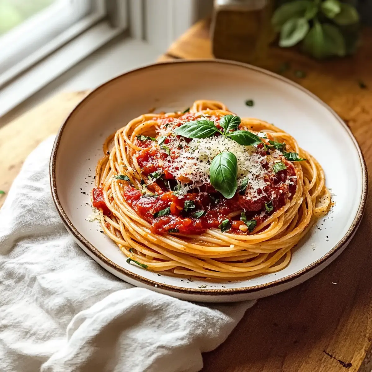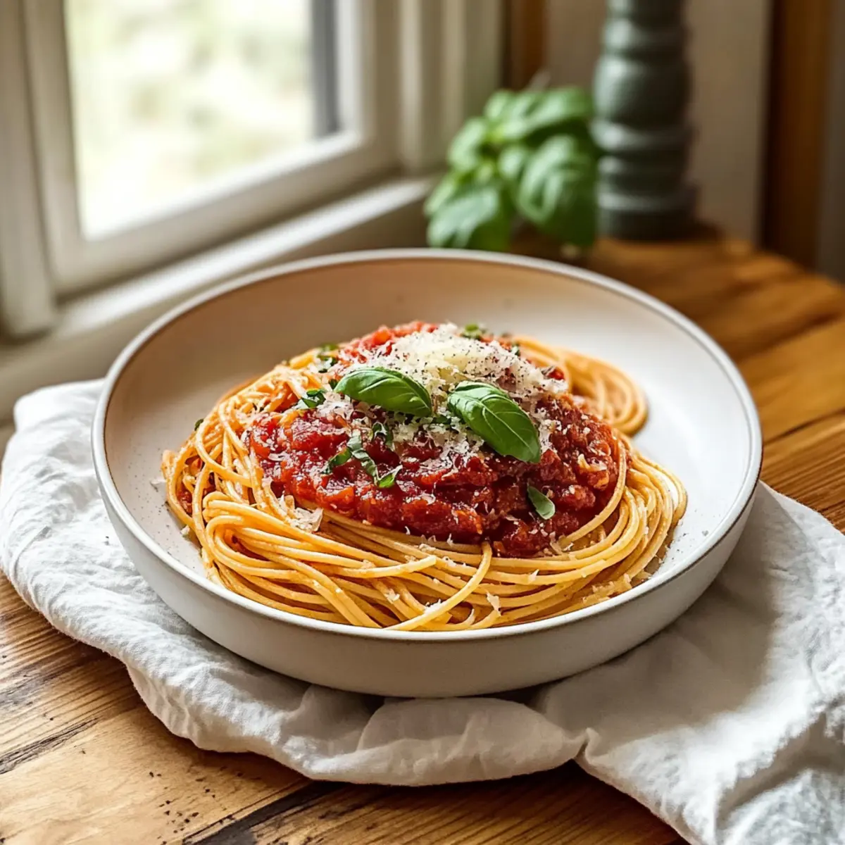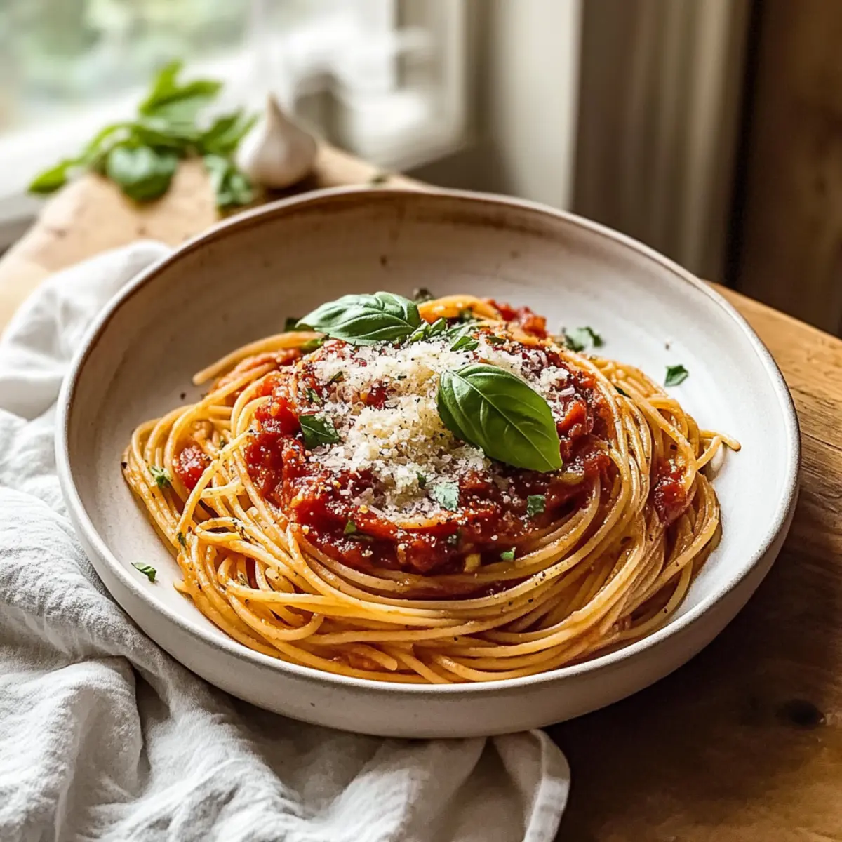Jump to Recipe Print RecipeAs the clock ticks away on a hectic afternoon, the need for a nourishing meal looms large. That’s when I turn to my 20-Minute Quick Tomato and Garlic Pasta—a delightfully simple dish that transforms pantry staples into a warm embrace of comfort food. This quick lunch pasta recipe is not only speedy but also welcomes the vibrancy of fresh tomatoes and the aromatic allure of garlic. It’s perfect for those days when you crave a homemade meal without sacrificing your precious time. Plus, it’s a vegetarian option that pleases the palate and warms the soul. Want to know how to whip up this easy Italian classic? Let’s dive into the delicious details! Why is this Quick Lunch Pasta Recipe a Game-Changer? Speedy Preparation: In just 20 minutes, you can have a delicious meal ready to go, making it perfect for busy weekdays. Flavor Packed: The use of fresh garlic and ripe tomatoes elevates this dish to restaurant-quality, all from the comfort of your kitchen. Versatile Base: Feel free to customize with your favorite pasta shapes or add veggies, like spinach or mushrooms, for extra nutrition. Pantry Staples: With simple, everyday ingredients, it’s a recipe that ensures you don’t have to rely on fast food when time is tight. Crowd Pleaser: This quick lunch pasta recipe is a hit for both family dinners and casual gatherings, offering something for everyone, including vegetarians! If you’re keen on more delicious pasta ideas, check out my Italian Pasta Salad. Enjoy the flavors and simplicity! Quick Lunch Pasta Recipe Ingredients • Here’s what you need for this delightful dish! For the Pasta Spaghetti or Penne – The main carbohydrate base; any pasta shape will work wonderfully in this quick lunch pasta recipe. For the Sauce Olive Oil – Adds richness and helps sauté the garlic; go for high-quality olive oil for the best flavor. Garlic – Provides aromatic depth; consider using shallots for a sweeter touch if desired. Crushed Tomatoes – Forms the base of the sauce; fresh tomatoes can replace them, just simmer longer to get the right consistency. Chili Flakes – Introduces warmth and spice; adjust according to your heat preference or skip for a milder sauce. Salt & Black Pepper – Essential for seasoning; taste as you go to achieve your perfect flavor balance. For the Finish Parmesan Cheese – Adds creamy richness and a savory flavor; nutritional yeast is a fantastic alternative for a dairy-free option. Fresh Basil Leaves – Provides a burst of freshness; fresh parsley or dried oregano can also work well if basil isn’t available. Enjoy creating this easy and satisfying meal that’s perfect for any busy day! Step‑by‑Step Instructions for Quick Lunch Pasta Recipe Step 1: Boil the Pasta Start by bringing a large pot of salted water to a rolling boil over high heat. Add your spaghetti or penne, cooking it according to the package instructions until it’s al dente, usually around 8-10 minutes. Stir occasionally and test for doneness 1-2 minutes before the suggested time. Reserve 1 cup of the starchy pasta water, then drain the pasta in a colander. Step 2: Sauté the Garlic In a large skillet, heat 2 tablespoons of olive oil over medium heat until it shimmers. Add the minced garlic and sauté it for about 1-2 minutes, stirring frequently, until fragrant but not browned. The garlic will turn a light golden color, which means it’s ready for the next ingredient. This step sets the aromatic base for your Quick Lunch Pasta. Step 3: Create the Sauce Stir in a 28-ounce can of crushed tomatoes and a pinch of chili flakes into the skillet with the sautéed garlic. Allow the mixture to simmer for about 5 minutes, stirring occasionally. You want the sauce to thicken slightly and the flavors to meld beautifully. Season generously with salt and black pepper, checking for your desired taste as you go. Step 4: Combine Pasta with Sauce Once the sauce is ready, add the drained pasta directly into the skillet, tossing it well to coat with the sauce. Gradually add your reserved pasta water, a little at a time, until achieving a silky and cohesive sauce that clings to the noodles. This step transforms the quick lunch pasta recipe into a comforting dish. Step 5: Add Finishing Touches Remove the skillet from heat and stir in freshly shaved Parmesan cheese, allowing the residual heat to melt the cheese into the sauce for added creaminess. The combination of cheese and sauce will create an enticing richness that complements the pasta perfectly. Taste again and adjust any seasonings if necessary. Step 6: Serve and Garnish Plate your Quick Lunch Pasta, ensuring each serving is generously coated with sauce. Top with torn fresh basil leaves and an optional sprinkle of extra chili flakes for more heat. The vibrant colors and inviting aroma make this dish a delightful sight on your table, ready to be enjoyed immediately. Quick Lunch Pasta Recipe Variations Feel free to get creative and customize this recipe to suit your palate and pantry! Gluten-Free: Substitute traditional pasta with gluten-free pasta varieties like brown rice or chickpea pasta for a delicious twist. Protein-Packed: Add cooked shrimp, shredded chicken, or chickpeas for a protein boost that takes this dish to the next level. Creamy Addition: Stir in a splash of heavy cream or a dollop of mascarpone for a rich, velvety sauce that’s simply irresistible. Veggie-Loaded: Toss in sautéed spinach, mushrooms, or zucchini to enhance the nutrition and add vibrant color to your dish. Herb-Infused: Experiment with fresh herbs like thyme, dill, or oregano instead of basil for varied flavor notes each time you make the dish. Spicy Kick: Amp up the heat by incorporating sautéed jalapeños or a dash of hot sauce to create a fiery pasta that tantalizes the taste buds. Mediterranean Flair: Add olives, artichoke hearts, or sun-dried tomatoes for a Mediterranean homage that pairs beautifully with the garlic and tomato base.