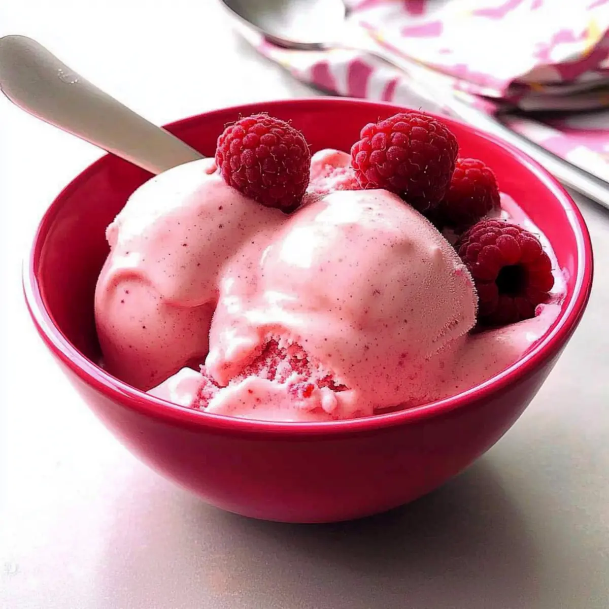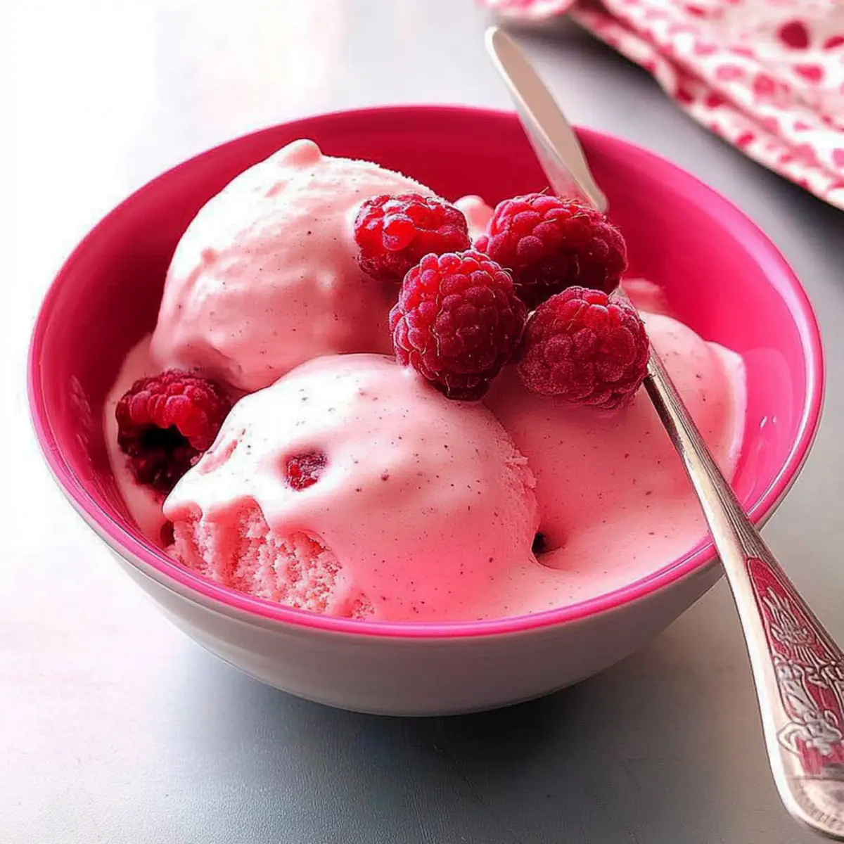 Jump to Recipe Print RecipeOn a sweltering summer afternoon, I stumbled upon a delightful way to satisfy my sweet tooth without any guilt. Enter the creamy Raspberry-Banana Soft Serve, a heavenly blend of ripe bananas and fresh raspberries that harmoniously dance on your taste buds. This recipe boasts a simple prep and a quick freeze, making it the perfect solution for a wholesome, homemade dessert that doesn’t require an ice cream maker. With no added sugars and a dairy-free twist, it’s not only a treat for your palate but also a healthy option that everyone in the family can enjoy. Plus, it’s versatile enough to be customized with varying ripeness of bananas, allowing you to tweak the flavor and texture to your liking. Ready to indulge in a refreshing scoop? Let’s dive into this delightful recipe! Why is Raspberry-Banana Soft Serve a Game Changer? Simplicity: This recipe is incredibly easy to make, requiring just a few ingredients and minimal prep time for a delicious dessert any day of the week. Health-Conscious: Packed with fresh fruit, this Raspberry-Banana Soft Serve is a guilt-free treat. With no added sugars and options for dairy-free yogurt, it’s suitable for various dietary preferences. Customizable: You can easily adapt this recipe by experimenting with different ripeness of bananas or substituting with other berries, allowing for a fun and personalized dessert each time. Crowd-Pleasing: Whether it’s a hot summer day or a special family gathering, this vibrant soft serve is sure to impress both kids and adults alike! Quick & Fresh: In just a few minutes of blending, you can whip up a light and refreshing dessert that rivals any ice cream shop offering. Get ready to enjoy a delightful summer treat! Raspberry-Banana Soft Serve Ingredients • Get ready to blend up a delicious treat! For the Base Ripe Bananas – The key to this creamy soft serve, with overripe bananas providing a stronger flavor and sweetness. Fat-Free Plain Yogurt – Adds a creamy texture; opt for dairy-free yogurt to make this recipe vegan-friendly. Maple Syrup (1-2 tbsp) – A natural sweetener that enhances flavor; adjust based on banana ripeness, or swap with honey if preferred. For the Fruit Frozen Unsweetened Raspberries – Essential for that lovely berry flavor and gorgeous color; feel free to replace with other frozen berries. Fresh Raspberries (optional) – A delightful garnish that adds an extra burst of freshness to each serving. This easy-to-make Raspberry-Banana Soft Serve is perfect for those hot summer days when you’re craving something sweet yet healthy! Step‑by‑Step Instructions for Raspberry-Banana Soft Serve Step 1: Prepare Bananas Begin by peeling the ripe bananas and slicing them into thin rounds. Arrange the banana slices in a single layer on a baking sheet, making sure they are not overlapping. Place the baking sheet in the freezer and let the bananas freeze overnight or until they are completely solid. This will ensure a creamy texture for your Raspberry-Banana Soft Serve when blended. Step 2: Blend Ingredients Once the bananas are frozen, gather your food processor or high-powered blender. Add the frozen banana slices to the bowl, and pulse for about 30 seconds until they resemble coarse crumbs. Scrape down the sides as needed to ensure even chopping, and check for fine consistency. This initial blending will provide the creamy base for your Raspberry-Banana Soft Serve. Step 3: Incorporate Other Ingredients Next, add the fat-free plain yogurt, maple syrup, and frozen unsweetened raspberries to the blender. Blend on medium speed for approximately 1 to 2 minutes until the mixture becomes smooth and creamy. Stop occasionally to scrape down the sides of the bowl, ensuring everything is well combined. The vibrant color of the raspberries will transform your mixture into a stunning pink hue. Step 4: Serve Immediately Once blended to a smooth consistency, scoop the Raspberry-Banana Soft Serve into serving bowls using a spatula. For added flair, garnish with a few fresh raspberries on top. Serve immediately to enjoy the soft, creamy texture at its best. If desired, you could also add a drizzle of honey or maple syrup for extra sweetness. Expert Tips for Raspberry-Banana Soft Serve Banana Ripeness Matters: Use overripe bananas for a richer, sweeter flavor. Less ripe bananas give a fluffier texture; balance is key for the best Raspberry-Banana Soft Serve. Freeze Properly: Ensure banana slices are completely frozen before blending. This is crucial for achieving that creamy, soft-serve consistency everyone loves. Avoid Over-Blending: Stop blending as soon as the mixture is smooth. Over-processing can turn the soft serve icy, losing that delightful creamy texture. Flavor Boost: Consider adding a splash of vanilla extract or a pinch of cinnamon to the mix for an extra layer of deliciousness. Serve Fresh: Enjoy your Raspberry-Banana Soft Serve immediately for optimal texture and flavor. If storing, let it thaw for a few minutes before scooping. Make Ahead Options These Raspberry-Banana Soft Serve treats are perfect for those busy days when you need a quick and healthy dessert! You can slice your ripe bananas and freeze them up to 24 hours in advance, ensuring they’re fully frozen for a creamy texture. Additionally, feel free to blend your yogurt, maple syrup, and frozen raspberries ahead of time, storing the mixture in an airtight container in the refrigerator for up to 3 days. When you’re ready to serve, simply blend the frozen bananas until smooth and combine with your prepped mix for restaurant-quality results. This way, you can enjoy a delightful dessert without the rush! How to Store and Freeze Raspberry-Banana Soft Serve Room Temperature: The Raspberry-Banana Soft Serve is best enjoyed fresh, so avoid leaving it out at room temperature for an extended period to maintain its creamy texture. Fridge: If you have leftovers, store them in an airtight container in the fridge f