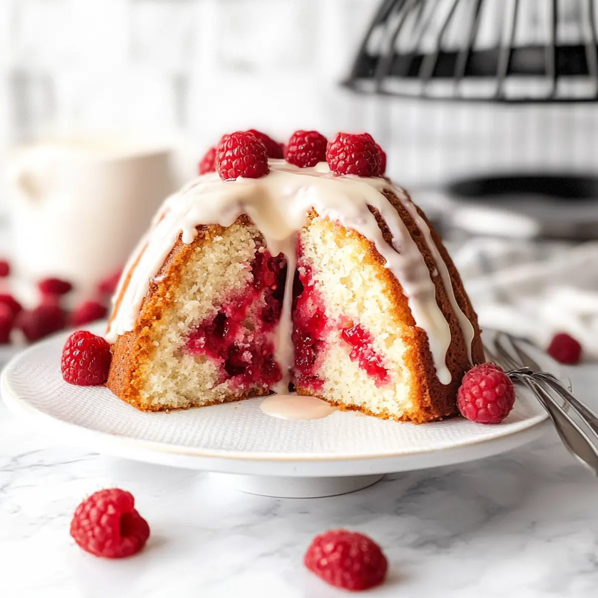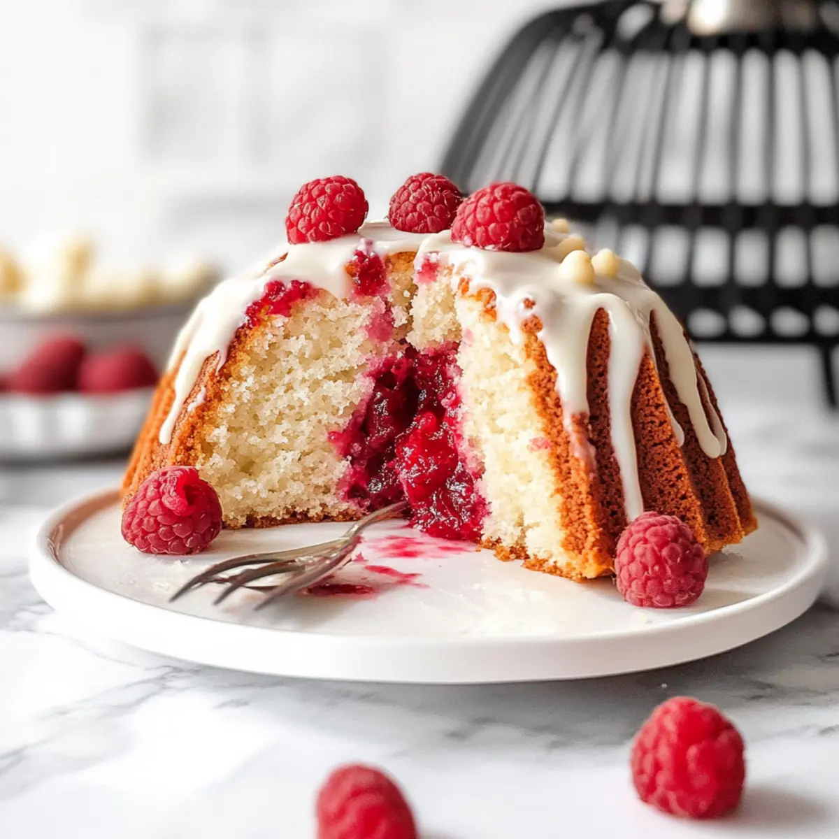 Jump to Recipe Print RecipeAs I pulled the warm, fragrant raspberry white chocolate bundt cake from the oven, a wave of nostalgia swept over me, reminiscent of cozy family gatherings filled with laughter and sweets. This gluten-free raspberry white chocolate bundt cake isn’t just a dessert; it’s an effortless way to impress your loved ones during special occasions like Valentine’s Day or any gathering where sweet indulgence is a must. With its moist texture, tart bursts of fresh raspberries, and a decadent white chocolate ganache, this cake offers a healthier alternative that everyone can enjoy. Whether you need a showstopper for your next celebration or simply crave a slice of homemade happiness, you’re just steps away from creating a masterpiece. What will you pair with this dreamy delight: a scoop of dairy-free ice cream or a dollop of coconut whipped cream? Why is this bundt cake a must-try? Irresistible Flavor: The explosion of tart raspberries combined with sweet white chocolate makes every bite a heavenly experience. Effortlessly Elegant: This cake’s stunning presentation and rich flavor are perfect for impressing guests without extensive baking skills. Versatile Joy: Ideal for any occasion from Valentine’s Day to casual get-togethers, this gluten-free treat is a delightful alternative to fast food desserts. Time-Saving Treat: With simple steps and straightforward ingredients, this recipe lets you whip up a standout dessert in no time. Crowd-Pleasing Appeal: Its moist texture and gorgeous swirls are not just eye-catching but satisfy various dietary preferences, making it a favorite for everyone. Pair with some refreshing raspberry lemonade to elevate your dessert experience even more! Raspberry White Chocolate Bundt Cake Ingredients For the Cake • 1 tablespoon lemon juice – Adds acidity to create vegan buttermilk; can substitute with vinegar for a similar effect. • 1 cup unsweetened plant milk – Acts as the liquid base in the batter; use almond, oat, or soy milk. • 2 ¾ cups gluten-free 1:1 flour – Provides structure; ensure the blend contains xanthan gum for binding. • 2 teaspoons baking powder – Serves as the leavening agent. • 1 teaspoon salt – Enhances flavor. • 1 cup vegan butter (softened) – Adds moisture and richness; can substitute with coconut oil. • 1 ¼ cup cane sugar or granulated sugar – Sweetens the cake; can use coconut sugar for a more caramel-like flavor. • ½ cup coconut sugar – Adds depth and moisture; replace with brown sugar if unavailable. • 3 eggs (room temperature) – Binds the ingredients and adds moisture; for egg-free, use flax eggs. • 1 teaspoon pure vanilla extract – Provides flavor. • ¾ cup vegan white chocolate chips – Adds sweetness and creaminess; substitute with dairy-free chocolate chips if needed. • 6 ounces fresh raspberries (about 1 ¼ cup) – Provides tart flavor and moisture; frozen raspberries work as an alternative but may alter texture slightly. • ½ cup raspberry jam – Creates a sweet central swirl; consider homemade or store-bought as alternatives. For the Ganache • ½ cup vegan white chocolate chips – Forms a creamy glaze. • ¼ cup unsweetened plant milk – Helps in achieving the desired glaze consistency. • 1 ⅔ cup powdered sugar – Thickens the ganache for drizzling. Dive into making this Raspberry White Chocolate Bundt Cake with these carefully selected ingredients! Step‑by‑Step Instructions for Raspberry White Chocolate Bundt Cake Step 1: Preheat and Prepare the Pan Preheat your oven to 350°F (175°C) and ensure your bundt pan is well-greased. Use softened vegan butter to coat all surfaces thoroughly, paying attention to the crevices; alternatively, choose non-stick spray and dust with flour for extra insurance against sticking. Step 2: Create Vegan Buttermilk In a small mixing bowl, combine 1 tablespoon of lemon juice with 1 cup of unsweetened plant milk. Allow this mixture to sit for about 10 minutes until it thickens slightly; this will serve as your vegan buttermilk and add moisture to your gluten-free raspberry white chocolate bundt cake. Step 3: Mix the Dry Ingredients In a large bowl, whisk together 2 ¾ cups of gluten-free 1:1 flour, 2 teaspoons of baking powder, and 1 teaspoon of salt. Make sure there are no lumps remaining, as this ensures an even texture in your batter. Set this bowl aside while you prepare the wet ingredients. Step 4: Prepare the Raspberries Gently toss 6 ounces of fresh raspberries with a few tablespoons of gluten-free flour from your dry ingredients. This will help prevent the berries from sinking to the bottom of the batter during baking, ensuring that every slice of your raspberry white chocolate bundt cake has delightful bursts of fruit. Step 5: Cream the Butter and Sugars In a mixing bowl, beat 1 cup of softened vegan butter with 1 ¼ cups of cane sugar and ½ cup of coconut sugar using an electric mixer. Continue mixing on medium speed for 2-3 minutes until the mixture is light, fluffy, and well combined. The creamed mixture will provide moisture and a rich flavor to your cake. Step 6: Incorporate Eggs and Vanilla Add 3 room temperature eggs one at a time, mixing well after each addition. Follow this with 1 teaspoon of pure vanilla extract. Beat until the mixture is smooth and creamy, ensuring an even distribution of ingredients for your raspberry white chocolate bundt cake. Step 7: Combine Wet and Dry Ingredients Gradually add the flour mixture and the prepared vegan buttermilk to the creamed mixture, alternating between the two. Begin and end with the dry ingredients and mix until just combined. Avoid overmixing to maintain the cake’s light texture, crucial for a perfect bundt. Step 8: Fold in the Chocolate and Raspberries Gently fold in ¾ cup of vegan white chocolate chips and the flour-coated raspberries into the batter. Use a spatula and be careful not to crush the raspberries too much, as you want to keep the