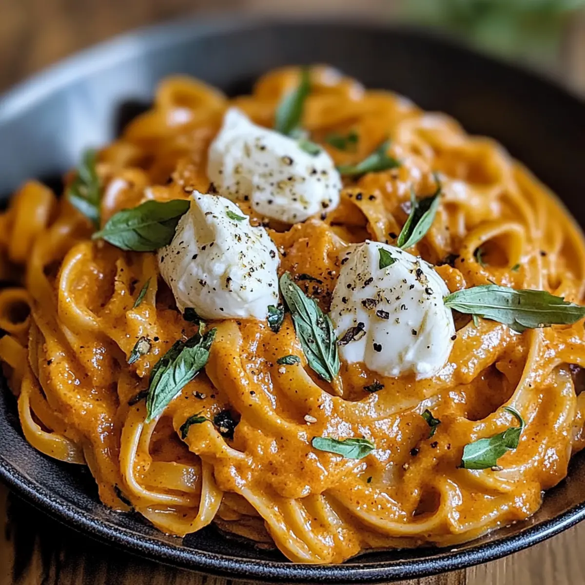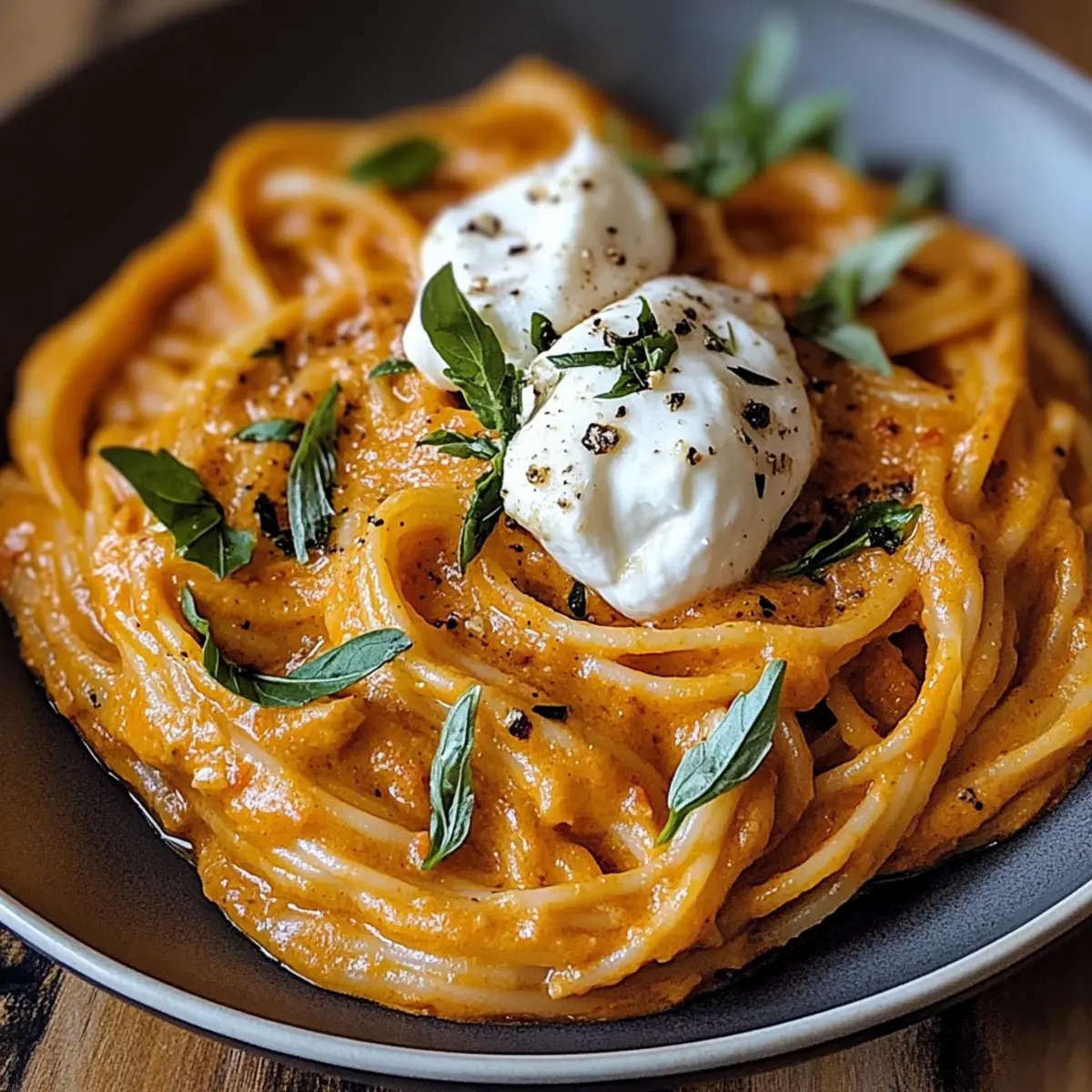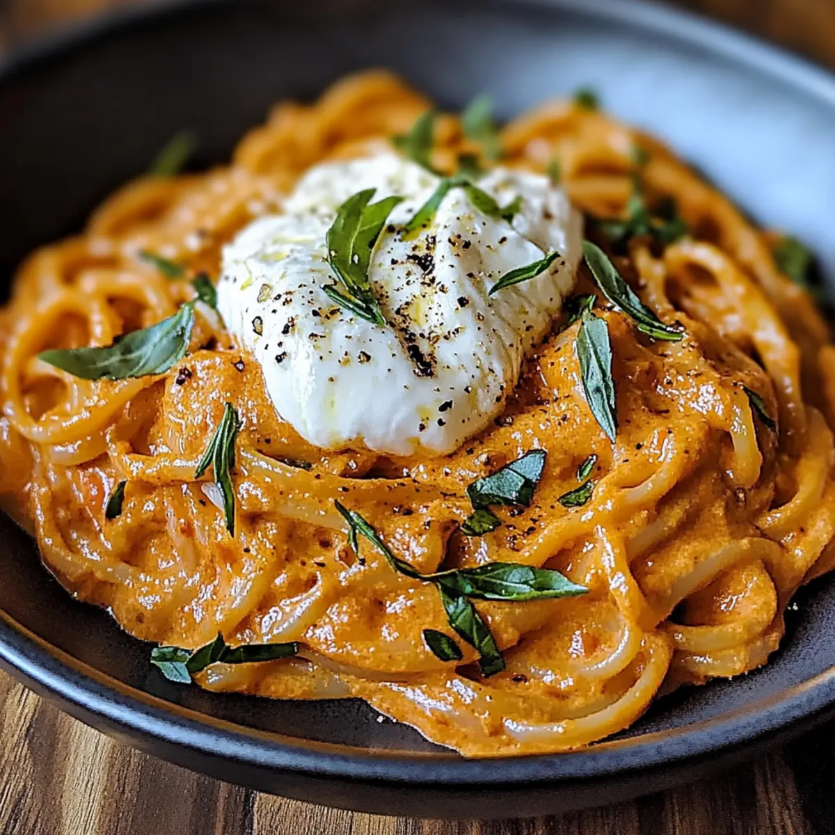 Jump to Recipe Print RecipeWith a hint of nostalgia swirling in the air, I found myself reminiscing about the cozy dinners of my childhood, when the aromas of roasted peppers wafted through the kitchen. That’s when I decided it was time to create a new family favorite: Creamy Red Pepper Pasta with Burrata & Herbs. This quick meal packs a punch of flavor into just 35 minutes, combining vibrant roasted bell peppers with the creaminess of burrata cheese. Not only is it a feast for the eyes, but it’s also the kind of dish that turns a regular weeknight into a special occasion. Trust me, this recipe will whisk you away from the mundane and make your dinner table sing. Curious how to elevate your pasta game? Let’s dive in! Why Is This Pasta Recipe Irresistible? Vibrant Colors: Creamy Red Pepper Pasta showcases a stunning array of hues, making it a feast for the eyes as well as the palate. Decadent Burrata: Adding burrata elevates the dish, making every bite indulgently creamy. Quick and Easy: In just 35 minutes, you can whip up a restaurant-quality meal, perfect for busy weeknights! Flavor Explosion: The roasted red peppers provide rich sweetness, while fresh herbs add a delightful kick. Crowd-Pleaser: Ideal for family dinners or impressing guests, it’s hard to resist this savory dish. For more tasty pasta ideas, consider exploring High Protein Pasta or our delightful Italian Pasta Salad. You won’t be disappointed! Red Pepper Pasta Burrata Ingredients For the Pasta Pasta – Choose spaghetti, fettuccine, or penne for the best texture. For the Sauce Red Bell Peppers – Roasting enhances their natural sweetness; yellow or orange can be good substitutes. Heavy Cream – Provides the dish’s luxurious creaminess; consider half-and-half for a lighter option. Garlic – Fresh minced garlic gives the best flavor; don’t be shy to use it generously. Olive Oil – Ideal for sautéing, this adds richness; avocado oil can be used if needed. Salt – A must for seasoning; adjust to your personal taste. Black Pepper – Freshly cracked pepper enhances flavor beautifully. Red Pepper Flakes – Optional heat factor; omit if you prefer a milder dish. For Topping Fresh Basil – Adds a pop of color and fresh flavor; parsley is a wonderful alternative if basil is unavailable. Burrata Cheese – The silky texture takes this dish to a new level; fresh mozzarella is a solid substitute. Parmesan Cheese – Optional for serving; pecorino cheese can be a tasty alternative. This Red Pepper Pasta Burrata recipe promises an explosion of flavors and textures that will quickly become a favorite at the dinner table! Step‑by‑Step Instructions for Red Pepper Pasta Burrata & Herbs Step 1: Roast the Peppers Preheat your oven to 400°F (200°C). Cut your red bell peppers in half and remove the seeds. Place them cut-side down on a baking sheet lined with parchment paper. Roast for 25-30 minutes until the skins are charred and blistered. Once done, remove them from the oven and let them cool while you prepare the pasta. Step 2: Cook the Pasta Bring a large pot of salted water to a rolling boil. Add your choice of pasta—spaghetti, fettuccine, or penne—and cook according to package instructions until al dente, about 8-10 minutes. Stir occasionally to prevent sticking. Once cooked, drain the pasta in a colander, reserving a cup of the pasta water for later use, and set it aside. Step 3: Prepare the Sauce Once the roasted red peppers are cool enough to handle, peel off the skins and discard them. Place the peeled peppers in a blender along with heavy cream, minced garlic, salt, black pepper, and optional red pepper flakes. Blend until you achieve a smooth, creamy sauce that embodies the essence of your Creamy Red Pepper Pasta. Step 4: Sauté the Sauce In a large skillet, heat olive oil over medium heat. Pour in the blended red pepper sauce and bring it to a gentle simmer. Cook for about 5 minutes, allowing the flavors to meld together and the sauce to thicken slightly. Stir occasionally to prevent it from sticking, creating a comforting, aromatic base for your pasta. Step 5: Combine Pasta and Sauce Add the drained pasta directly into the skillet with the creamy red pepper sauce. Gently toss the pasta in the sauce, ensuring each strand is evenly coated. If the sauce is too thick, add a splash of reserved pasta water to reach your desired consistency. This is where your Creamy Red Pepper Pasta truly comes to life! Step 6: Serve with Burrata Remove your skillet from the heat and transfer the creamy pasta to serving bowls. Tear pieces of burrata cheese and place them generously on top of each serving, allowing it to melt slightly into the pasta; this enhances the dish’s luxurious feel. Step 7: Garnish Finish your dish with a sprinkle of fresh basil, adding a pop of color and flavor. If you like an extra touch, freshly grated Parmesan can be added for an added depth of taste. This will elevate your Creamy Red Pepper Pasta with Burrata & Herbs to a whole new level, perfect for sharing or indulging solo. How to Store and Freeze Creamy Red Pepper Pasta Fridge: Store leftovers in an airtight container for up to 3 days. Reheat gently on the stove with a splash of water or cream to maintain the creamy texture. Freezer: Although best enjoyed fresh, you can freeze the sauce separately for up to 2 months. Thaw overnight in the fridge before reheating with freshly cooked pasta. Reheating: When reheating refrigerated pasta, add a tablespoon of water and microwave in 30-second intervals, stirring in between to prevent the sauce from separating. Enjoy this delightful Red Pepper Pasta Burrata warm! Separation Tip: If the sauce appears to separate during reheating, whisk in a little extra cream or reserved pasta water for a smoother consistency. Red Pepper Pasta Burrata Variations Feel free to personalize your creamy creation with these tantalizing twists and substitutions. Protein Boost: Add grilled chicken, shrimp, or chickpeas 