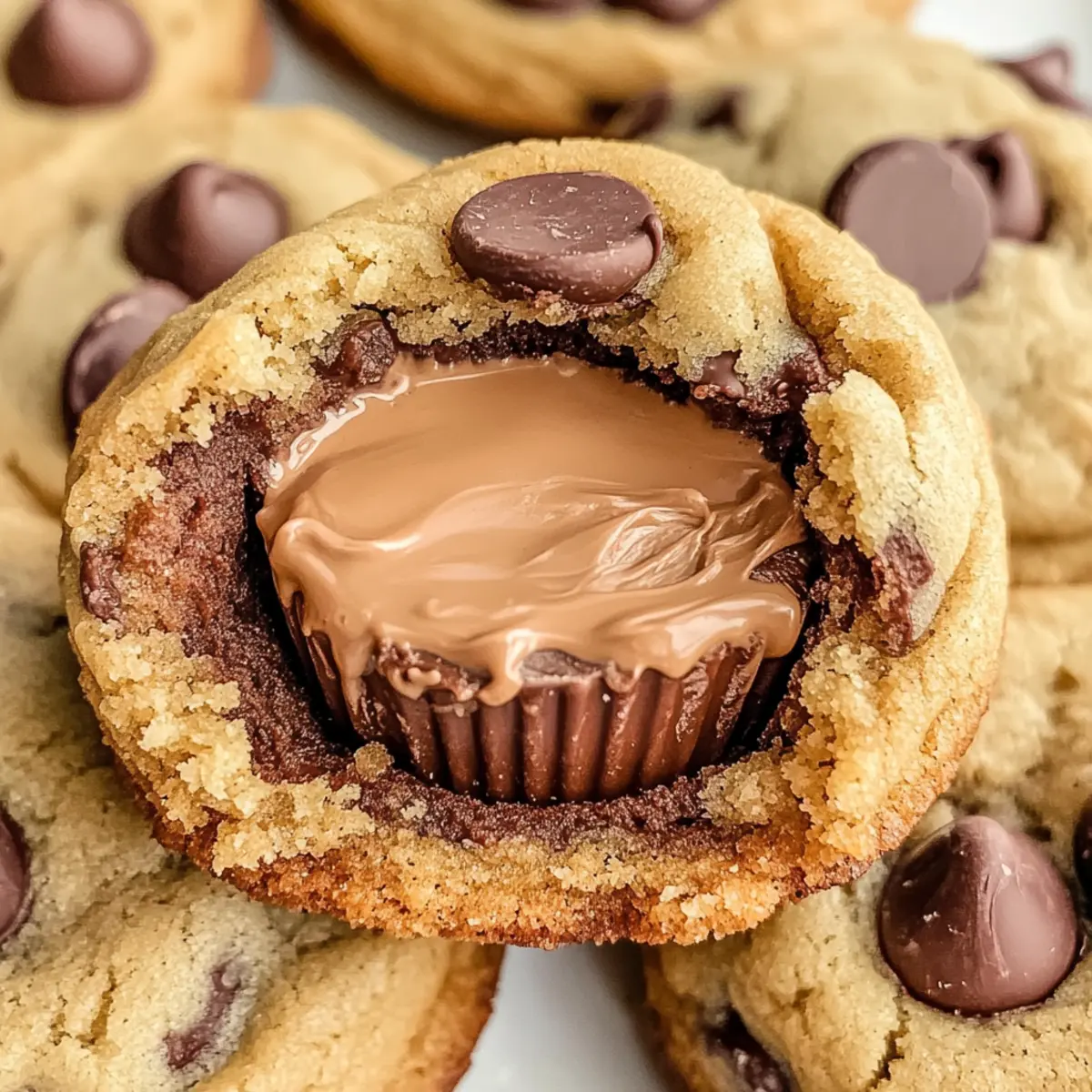 Jump to Recipe Print RecipeAs I stood in my kitchen, the fragrance of melting chocolate wafting around me, I realized that some moments are meant to be savored—like the ones spent baking these irresistible Reese’s Chocolate Chip Cookies. Imagine biting into a warm, chewy cookie, only to be greeted by the delightful surprise of a rich, creamy Reese’s cup nestled right in the center. Fast to prepare, with a baking time of just 10-12 minutes, these treats are the perfect answer for those sweet cravings or unexpected guests. Plus, they’re so versatile that you can easily customize them to fit dietary needs, making them a true crowd-pleaser. Ready to indulge in a cookie that’s not just a dessert, but a delightful experience? Let’s get baking! Why are these cookies a must-try? Decadent and Delightful: The creamy center of Reese’s cups takes your standard chocolate chip cookie to a whole new level of indulgence. Quick to Whip Up: With a baking time of only 10-12 minutes, you can satisfy your sweet tooth in no time. Customizable Flavor: Easily adapt this recipe for dairy-free or nut-free diets, allowing everyone to enjoy them. Crowd-Pleaser: Perfect for parties or family gatherings, these cookies are sure to impress with their unique surprise inside. Irresistible Warm: Whether enjoyed fresh out of the oven or paired with a scoop of vanilla ice cream, the flavors and textures are simply dreamy! For another delightful dessert, don’t miss out on our Chocolate Banana Protein to satisfy your cravings in a healthy way! Reese’s Chocolate Chip Cookies Ingredients • Perfect ingredients for a crowd-pleaser! For the Cookie Dough Brown Sugar – Adds a rich, caramel-like flavor; no substitution necessary. White Sugar – Balances sweetness and aids in texture; pairs wonderfully with brown sugar. Butter (½ cup, room temp) – Enhances moisture and chewiness; can substitute with coconut oil for a dairy-free option. Shortening (½ cup) – Creates a tender cookie that maintains its shape; use all butter or a non-dairy butter alternative. Eggs (3 units) – Provides structure and moisture; for vegan options, flax eggs (1 tbsp flaxseed meal + 2.5 tbsp water per egg) work well. Vanilla (2 tsp) – Infuses a delightful aroma; vanilla bean paste can elevate the flavor further. Flour (3 cups) – The backbone of the cookie, ensuring structure; whole wheat flour is a healthier alternative that may require slight liquid adjustments. Cornstarch (2 tsp) – Keeps cookies soft and chewy; can be omitted if unavailable, but texture may vary. Baking Soda (1 tsp) – Acts as a leavening agent for a perfect rise; no substitutions needed. Salt (½ tsp) – Balances sweetness and elevates flavors; essential to the overall taste. For the Chocolate Mini Chocolate Chips (1½ cups) – Adds pockets of chocolatey goodness throughout; opt for dark or dairy-free chips as desired. Semi-Sweet Chocolate Chips (1½ cups) – Rich dark chocolate flavor complements the cookie base; milk chocolate can be substituted for a sweeter result. Reese’s Cups (16 units) – The star of the show, melting into the cookie to provide a creamy surprise; choose nut-free chocolate alternatives for dietary concerns. Step‑by‑Step Instructions for Reese’s Chocolate Chip Cookies Step 1: Preheat the Oven Begin by preheating your oven to 350°F (175°C). This step ensures that your Reese’s Chocolate Chip Cookies will bake evenly and achieve that perfect golden-brown color. Meanwhile, line your baking sheets with parchment paper, which helps prevent sticking and makes cleanup a breeze. Step 2: Cream the Sugars and Fats In a large mixing bowl, combine ½ cup of softened butter and ½ cup of shortening with 1 cup of brown sugar and ½ cup of white sugar. Use a hand mixer or stand mixer to cream these ingredients together at medium speed for about 2-3 minutes until the mixture becomes light, fluffy, and pale in color. This key step adds moisture and structure to your cookie dough. Step 3: Incorporate Eggs and Vanilla Next, beat in 3 eggs, one at a time, ensuring each egg is fully incorporated before adding the next. Once all the eggs are mixed in, add 2 teaspoons of vanilla extract and continue mixing for another minute, allowing the vanilla to infuse its lovely aroma into the cookie base. This ensures that every bite of your Reese’s Chocolate Chip Cookies will be bursting with flavor. Step 4: Combine Dry Ingredients In a separate bowl, whisk together 3 cups of flour, 2 teaspoons of cornstarch, 1 teaspoon of baking soda, and ½ teaspoon of salt. This dry mixture provides the necessary structure and texture for your cookies. Whisking them together thoroughly will ensure that the leavening agents activate evenly when combined with the wet ingredients, resulting in perfectly risen cookies. Step 5: Mix Dry and Wet Ingredients Gradually add the dry ingredients to the wet mixture, mixing just until combined. It may take a minute or so of gentle folding to create a cohesive dough. Be careful not to overmix, as this can lead to tough cookies; you want a soft, pliable dough that will hold its shape yet be chewy in texture. Step 6: Fold in the Chocolate Chips Once your dough is ready, gently fold in 1½ cups of mini chocolate chips and 1½ cups of semi-sweet chocolate chips. This step adds rich chocolate pockets throughout the dough, ensuring that each bite of your Reese’s Chocolate Chip Cookies is brimming with chocolate goodness. Mix just until the chips are evenly distributed. Step 7: Shape the Cookies Using a cookie scoop or tablespoon, place rounded dough balls onto your prepared baking sheets, making sure to leave about 2 inches of space between them. This gives the cookies room to spread as they bake. Aim for a uniform shape for evenly baked cookies, and be sure to use a generous amount of dough for that ultimate chewy texture. Step 8: Add the Reese’s Cups For the show-stopping surprise, press one Reese’s cup into the center of eac