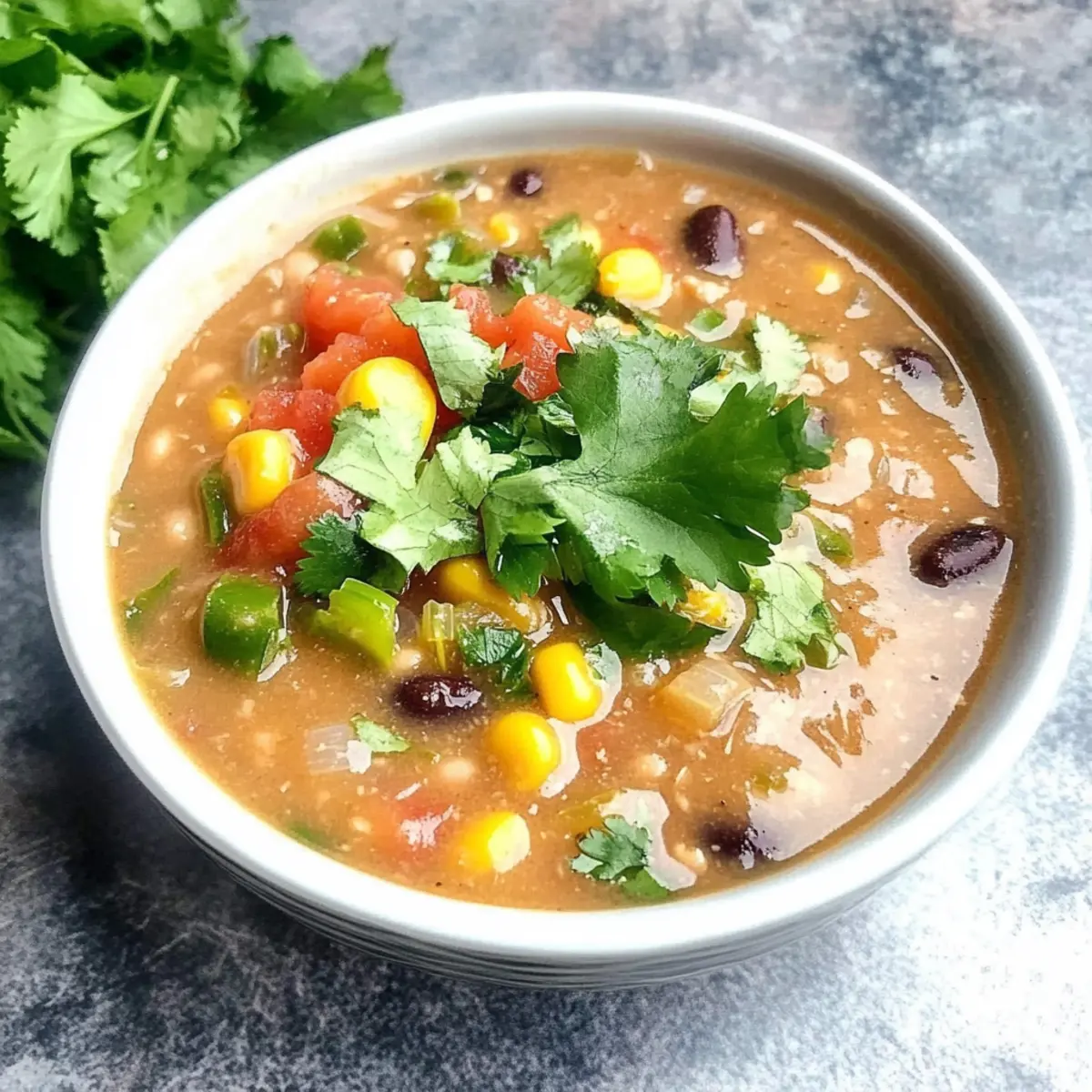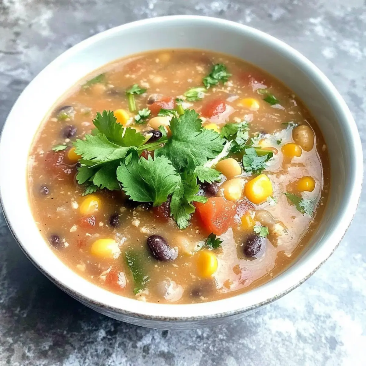 Jump to Recipe Print RecipeAs the chilly breeze brushes past, I find solace in a bowl of comforting Refried Bean Soup that warms both heart and home. This delightful Tex-Mex dish harmonizes the creamy goodness of refried beans with zesty tomatoes and spices, making it the perfect canvas for creativity in your kitchen. What I adore most about this easy recipe is that it’s not just a quick meal option; it’s also a versatile crowd-pleaser that welcomes ingredient swaps based on your cravings. Whether you’re hosting game night or simply looking for a hearty meal to enjoy, this soup meets all expectations with minimal fuss. Imagine diving into a creamy, savory blend that dances with flavor, perfect for vegetarians or those wanting to sneak in a bit of protein with chicken. Ready to discover the secrets of this cozy dish? Let’s dive into the details! What makes this soup a must-try? Comforting, Creamy Goodness: There’s nothing like a warm bowl of soup on a chilly night. This Refried Bean Soup offers creamy textures that wrap you in comfort and flavor. Versatility: You can easily customize it to suit your taste—add shredded chicken for protein, or keep it plant-based with vegetable broth and non-dairy toppings. Quick and Easy: Prep in under 10 minutes and let your slow cooker do the work, making it a win for busy weeknights or unexpected guests. Crowd-Pleaser: Perfect for game night, this soup appeals to everyone, ensuring no one leaves hungry. Pair it with crispy tortilla chips for dipping or a side of Mediterranean Bean Salad for a refreshing contrast! Nourishing Delight: Each bowl is not just tasty but also nutritious, making it a guilt-free indulgence you can feel great about serving. Refried Bean Soup Ingredients • Get ready to enjoy a flavorful delight! For the Soup Base Chicken Broth – Base liquid that adds flavor; substitute vegetable broth for a vegan option. Rosarita Traditional Refried Beans – Provides creaminess and protein; try black bean refried beans for a different flavor. Ro*Tel Original Diced Tomatoes & Green Chiles – Adds moisture and spice; can be replaced with diced tomatoes and a can of green chiles. Salsa – Enhances flavor with herbs and spices; choose mild or spicy based on your taste preference. For Texture and Heartiness Whole Kernel Corn – Adds sweetness and texture; use frozen corn for convenience. Black Beans – Brings heartiness and protein; feel free to use any beans of choice, such as pinto or kidney beans. For Garnishing Cilantro – Adds freshness; omit for an herb-free version. Shredded Cheese – Delivers creaminess; opt for dairy-free alternatives for vegan options. Green Onions – Adds a burst of crunch; chop finely for an even distribution. Sour Cream – Provides a creamy finish; substitute with Greek yogurt for a lighter option. Dive into this Refried Bean Soup and savor the delightful combination of flavors! Step‑by‑Step Instructions for Refried Bean Soup Step 1: Combine the Base Ingredients Begin by adding 4 cups of chicken broth and 2 cans of Rosarita Traditional Refried Beans to your slow cooker. Next, mix in 1 can of Ro*Tel Original Diced Tomatoes & Green Chiles and 1 cup of salsa. This combination creates a robust base for your Refried Bean Soup, bursting with flavor right from the start. Step 2: Mix and Incorporate Use a large spoon to stir all the ingredients in the slow cooker thoroughly. Ensure that the refried beans are well blended with the broth and tomatoes so you achieve a smooth consistency. The mixture should appear creamy as you combine everything, ensuring that all the flavors meld beautifully. Step 3: Add Heartiness with Corn and Beans Now, incorporate 1 cup of whole kernel corn and 1 can of black beans to the mixture. Stir everything together until the corn and beans are evenly distributed throughout the soup. This added texture will enhance your Refried Bean Soup, giving it a delightful crunch and heartiness that pairs wonderfully with the creamy base. Step 4: Heat and Simmer Cover the slow cooker and set it to low heat for 2 to 3 hours. This slow and gentle cooking allows all the flavors to develop fully. You’ll know your Refried Bean Soup is ready when it’s hot throughout and bubbling slightly around the edges. Step 5: Garnish and Serve Once the soup is heated through, ladle it into bowls and add your favorite garnishes. Sprinkle with fresh cilantro, green onions, shredded cheese, and a dollop of sour cream for creaminess. Serve accompanied by crispy tortilla chips for the perfect game day snack or cozy dinner treat. Make Ahead Options These Refried Bean Soup make ahead options are a total game-changer for busy weeknights! You can prepare the soup base (chicken broth, refried beans, diced tomatoes, salsa, corn, and black beans) and refrigerate it for up to 3 days. To maintain the soup’s delicious quality, let it cool completely before transferring it to an airtight container. When ready to serve, just reheat in your slow cooker or on the stovetop until hot, garnishing with fresh toppings like cilantro and cheese just before serving. This way, you’ll enjoy comforting, homemade flavors with minimal effort, perfect for a cozy dinner or game-day gathering! Refried Bean Soup Variations Feel free to get creative and give this delightful soup your own twist! The possibilities are endless. Vegan Version: Use vegetable broth and skip the cheese and sour cream for a delicious plant-based option. Protein-Packed: Stir in shredded rotisserie chicken or cooked ground turkey to amp up the protein content. This turns your soup into a heartier meal that’s still easy to whip up. Spicy Kick: Add fresh diced jalapeños or a few dashes of hot sauce to bring on the heat! Adjust to your spice comfort level for an extra flavorful punch. Creamy Avocado: Top each bowl with diced avocado for a rich, creamy texture that complements the soup perfectly. It adds a fresh taste and that silky mouthfeel! Multi-Bean Medley: S