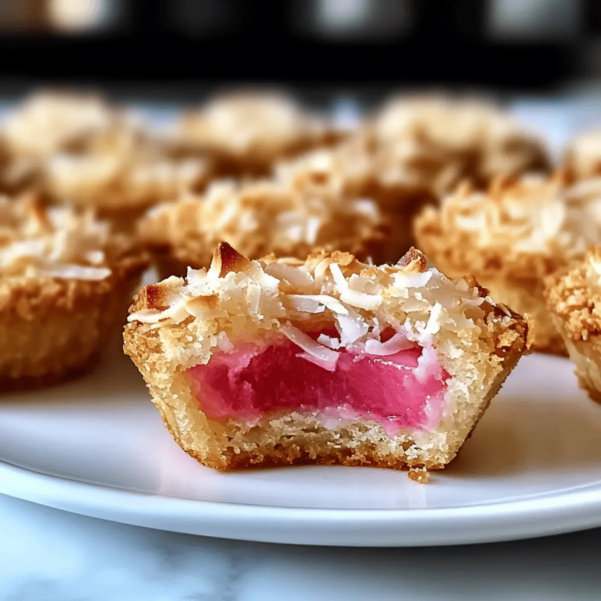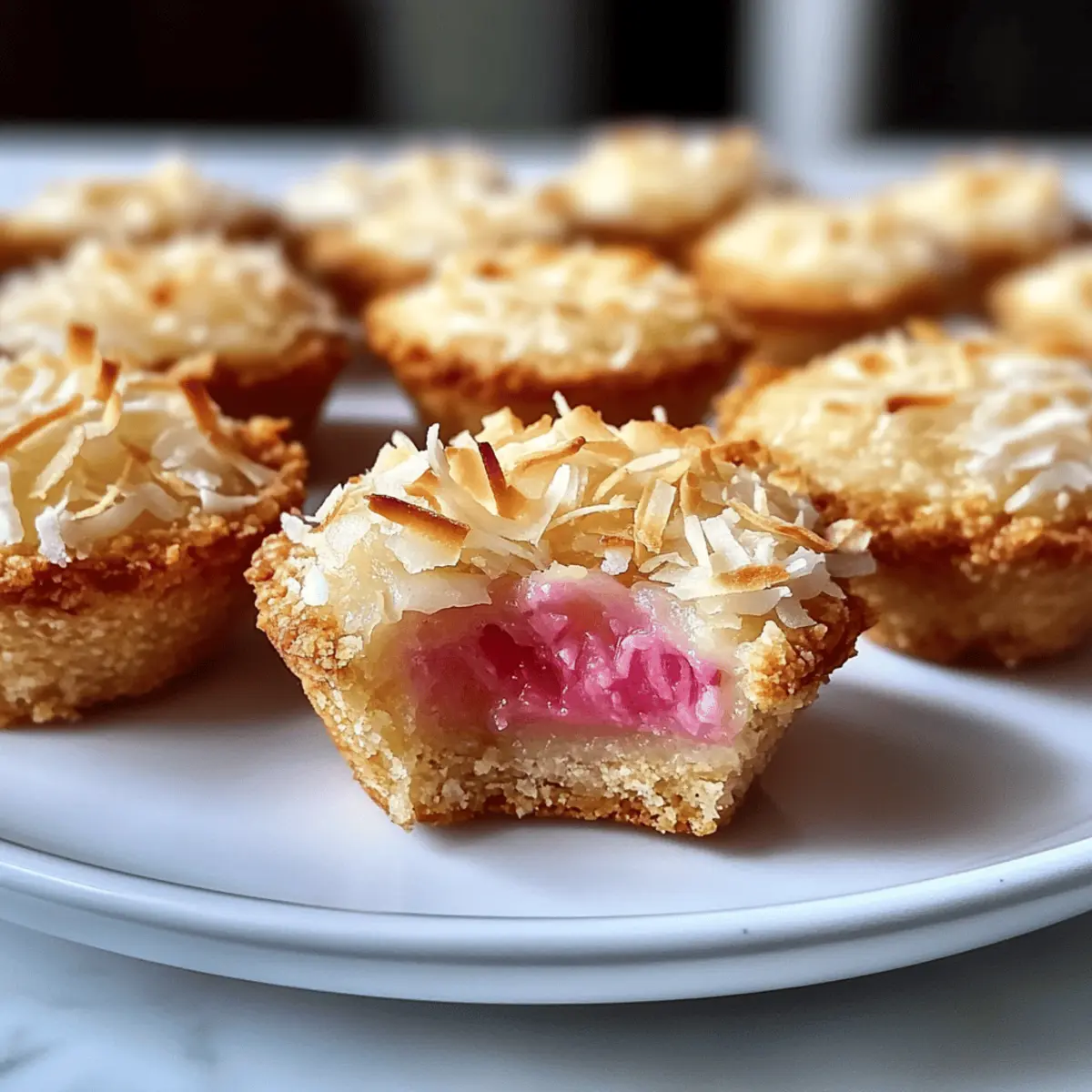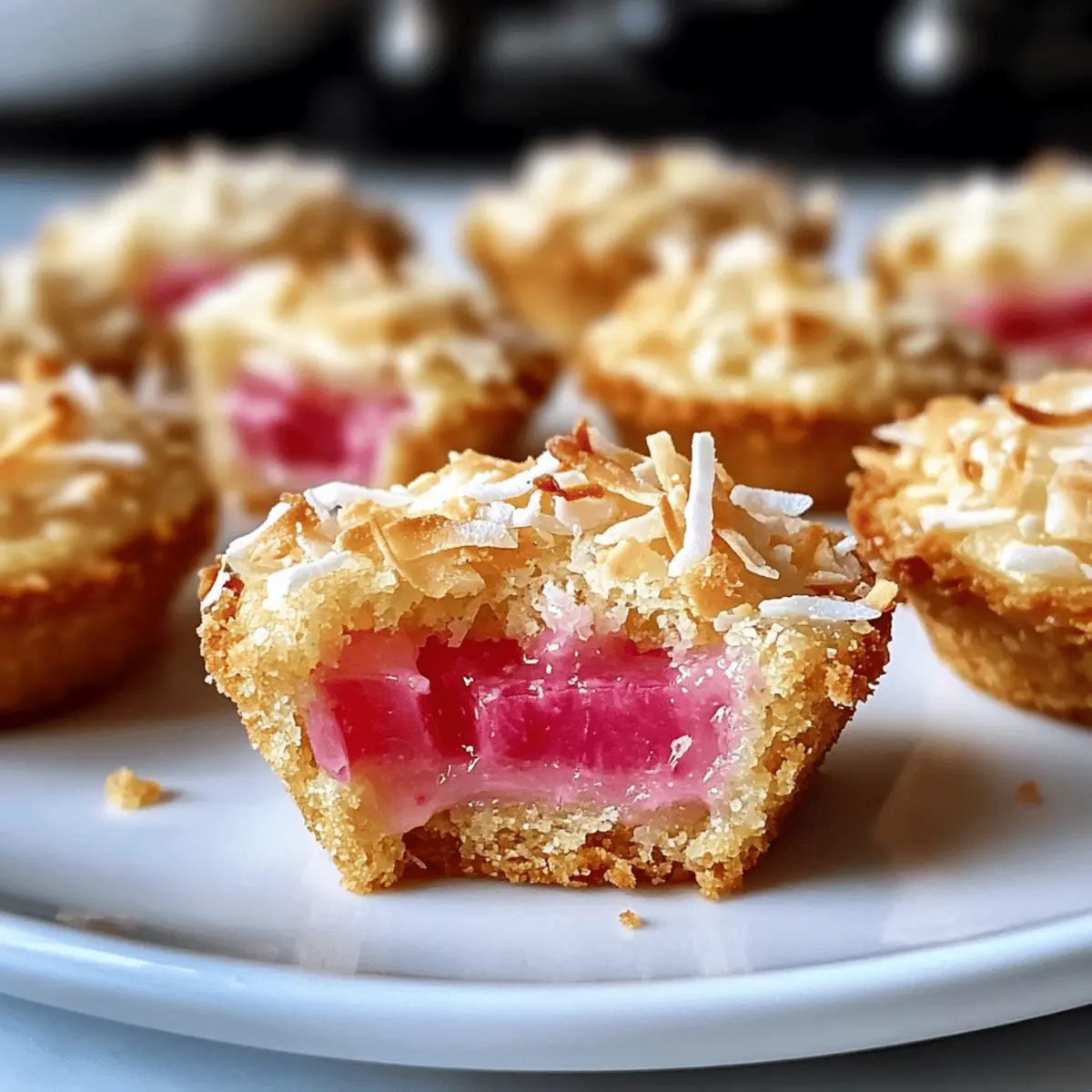 Jump to Recipe Print RecipeAs I stood in my kitchen, the scent of spring wafted through the open window, awakening my senses to the promise of fresh flavors. That’s when I decided to whip up these delightful Rhubarb Coconut Macaroon Tarts. The combination of tangy, soft rhubarb with a buttery crust and a chewy coconut topping is truly a match made in dessert heaven! Not only are these tarts easy to make and naturally gluten-free, but they’re also a fantastic treat for any gathering or a sweet pick-me-up during the afternoon. Plus, they can be frozen for when you need a quick, mouthwatering delight. So, are you ready to embrace the season and indulge in a slice of spring? Why Are Rhubarb Coconut Tarts Irresistible? Unique Flavor Combination: The tartness of rhubarb perfectly contrasts with the chewy sweetness of coconut, creating an unforgettable taste experience. Gluten-Free Delight: Made with oat or all-purpose flour, these tarts cater to gluten-sensitive eaters without sacrificing flavor or texture. Effortless Preparation: With simple steps and minimal prep time, these tarts are a breeze to whip up. Ideal for those busy afternoons! Versatile Options: Feel free to swap rhubarb for strawberries or spices for a personal twist. Customize to keep things exciting! Crowd-Pleasing Treat: Whether it’s a spring gathering or an afternoon snack, these Macaroon Tarts are sure to impress friends and family. Elevate your dessert game with this delightful recipe or pair it with other seasonal delights like Rhubarb Custard Bars for an unforgettable spread! Rhubarb Coconut Macaroon Tarts Ingredients • Below is everything you’ll need to create these delightful tarts bursting with flavor! For the Crust Unsalted Butter – Provides richness and helps create a tender, crumbly crust; feel free to substitute with a plant-based butter for a dairy-free option. Granulated Sugar – Adds sweetness; coconut sugar is a great healthier alternative. All-Purpose or Oat Flour – Forms the structure of the crust; oat flour is perfect for a gluten-free choice. Pinch of Salt – Enhances the flavors of both the crust and filling. For the Filling Chopped Fresh Rhubarb – The star ingredient contributing tanginess; adjust sugar to balance based on the rhubarb’s tartness. Lemon Juice – Brightens the flavor of the filling, perfectly complementing the rhubarb. For the Topping Egg Whites – Essential for achieving that chewy texture in the coconut topping; no substitutes if a vegan option is not preferred. Sweetened Shredded Coconut – Provides the luscious and chewy top layer that’s simply irresistible. Vanilla Extract – Adds depth of flavor to the coconut topping, making it extra delightful. Dive into this scrumptious recipe and enjoy the wonderful balance of textures in your homemade Rhubarb Coconut Macaroon Tarts! Step‑by‑Step Instructions for Rhubarb Coconut Macaroon Tarts Step 1: Preheat and Prepare Begin by preheating your oven to 350°F (175°C). While it’s heating, prepare a muffin tin by greasing it lightly or lining each cup with parchment paper. This ensures that your Rhubarb Coconut Macaroon Tarts will release easily after baking. Set the prepared tin aside while you work on the crust. Step 2: Make the Crust In a medium bowl, cream together 1/2 cup of softened unsalted butter and 1/4 cup of granulated sugar until the mixture is light and fluffy, about 3-5 minutes. Gradually add in 1 cup of all-purpose or oat flour along with a pinch of salt, mixing until a crumbly dough forms. Press this dough evenly into the bottom of each muffin tin section to form your delightful crust. Step 3: Prepare the Rhubarb Filling Move to the stovetop and combine 2 cups of chopped fresh rhubarb, 1/4 cup of sugar, and 1 tablespoon of lemon juice in a saucepan. Cook this mixture over medium heat, stirring occasionally, for about 5-7 minutes, or until the rhubarb has softened and thickened. Once done, remove from heat and allow it to cool slightly while you prepare the topping. Step 4: Whisk the Coconut Topping In a separate bowl, whisk 2 egg whites until they become frothy. Now, stir in 1 cup of sweetened shredded coconut, 1/4 cup of granulated sugar, 1 teaspoon of vanilla extract, and a pinch of salt. Mix until all the ingredients are well combined and the coconut is evenly coated; this will give your tarts that sweet, chewy layer. Step 5: Assemble the Tarts Once your fillings are ready, it’s time to assemble your Rhubarb Coconut Macaroon Tarts. Spoon about a teaspoon of the rhubarb mixture into each crust in the muffin tin, spreading it out to cover the base. Then, top each with a generous layer of the coconut mixture, gently pressing down to secure it atop the rhubarb. Step 6: Bake the Tarts Place the muffin tin in your preheated oven and bake the tarts for 20-25 minutes, or until the tops are beautifully golden brown and the coconut has formed a nice crust. Keep an eye on them towards the end to avoid over-baking, which can lead to a dry topping. Step 7: Cool and Serve Once baked, remove the tin from the oven and allow the tarts to cool completely in the muffin tin. This will help the coconut topping firm up for easy handling. Once cool, gently remove each tart and serve or store. Enjoy your delightful Rhubarb Coconut Macaroon Tarts with friends or family! How to Store and Freeze Rhubarb Coconut Macaroon Tarts Room Temperature: Store fully cooled tarts at room temperature in an airtight container for up to 3 days to maintain freshness. Fridge: For longer-lasting tarts, keep them in the fridge in an airtight container for up to 5 days, allowing them to retain their moisture. Freezer: Freeze fully cooled Rhubarb Coconut Macaroon Tarts in an airtight container or freezer bag for up to 2 months. Thaw at room temperature before enjoying. Reheating: To reheat, pop the tarts in a preheated oven at 350°F (175°C) for about 10 minutes, ensuring they’re warm and the coconut topping rejuvenates its lovely texture.
